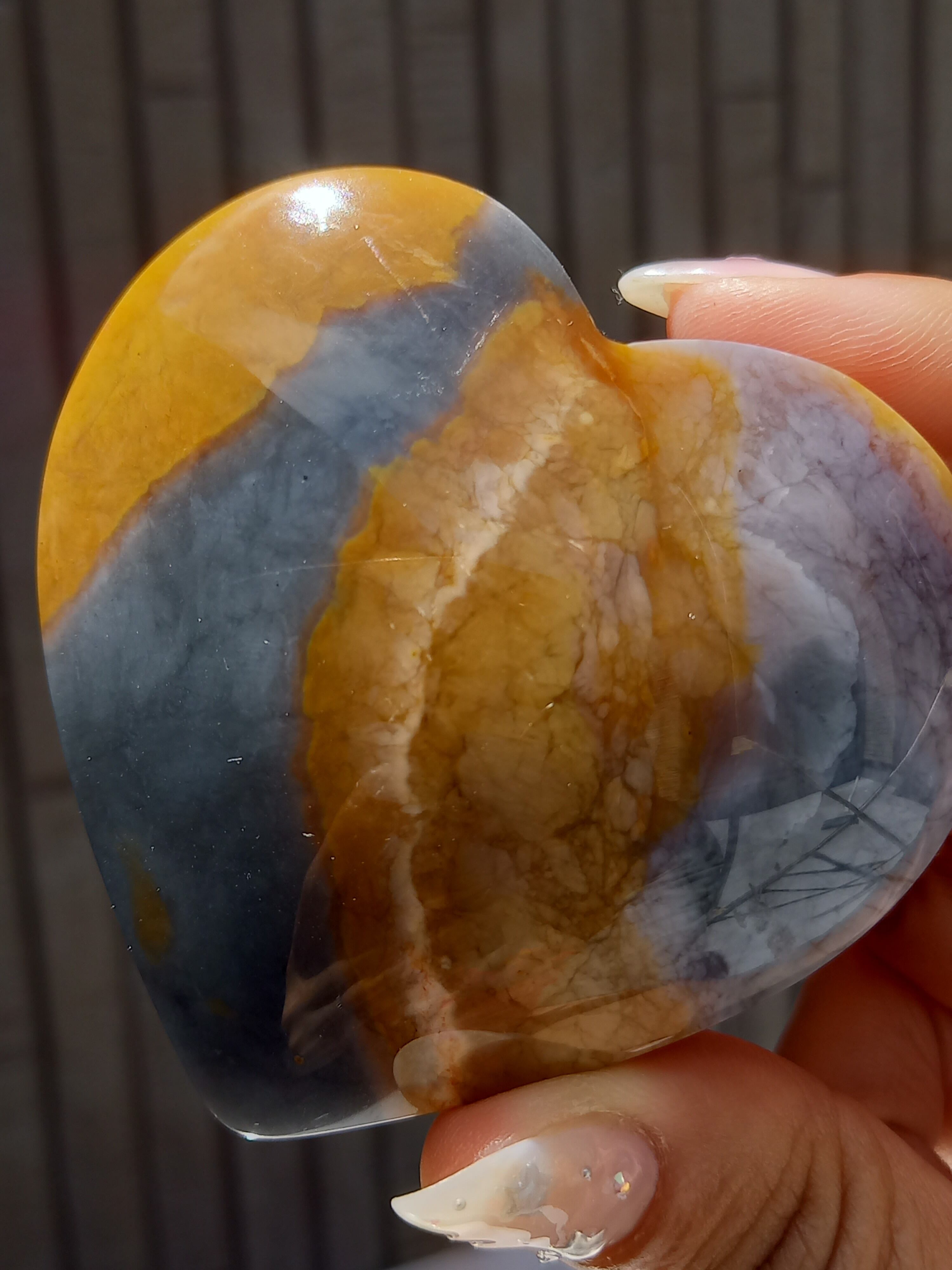 インドネシア産パープルジャスパーのハートパームになります。