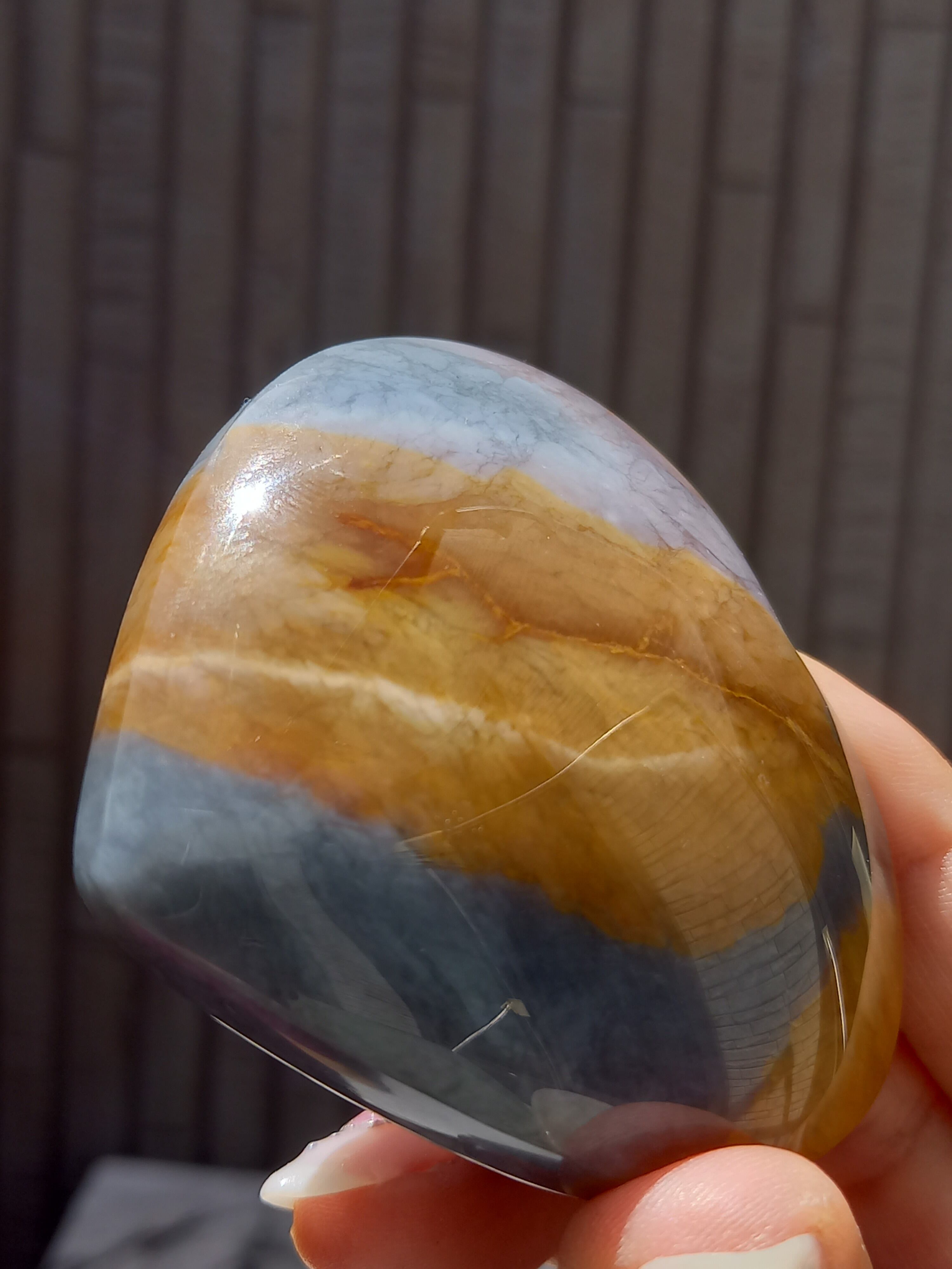 パープルジャスパーですが、ブルー×ブラウンがメインで、所々パープルが見られる子です。