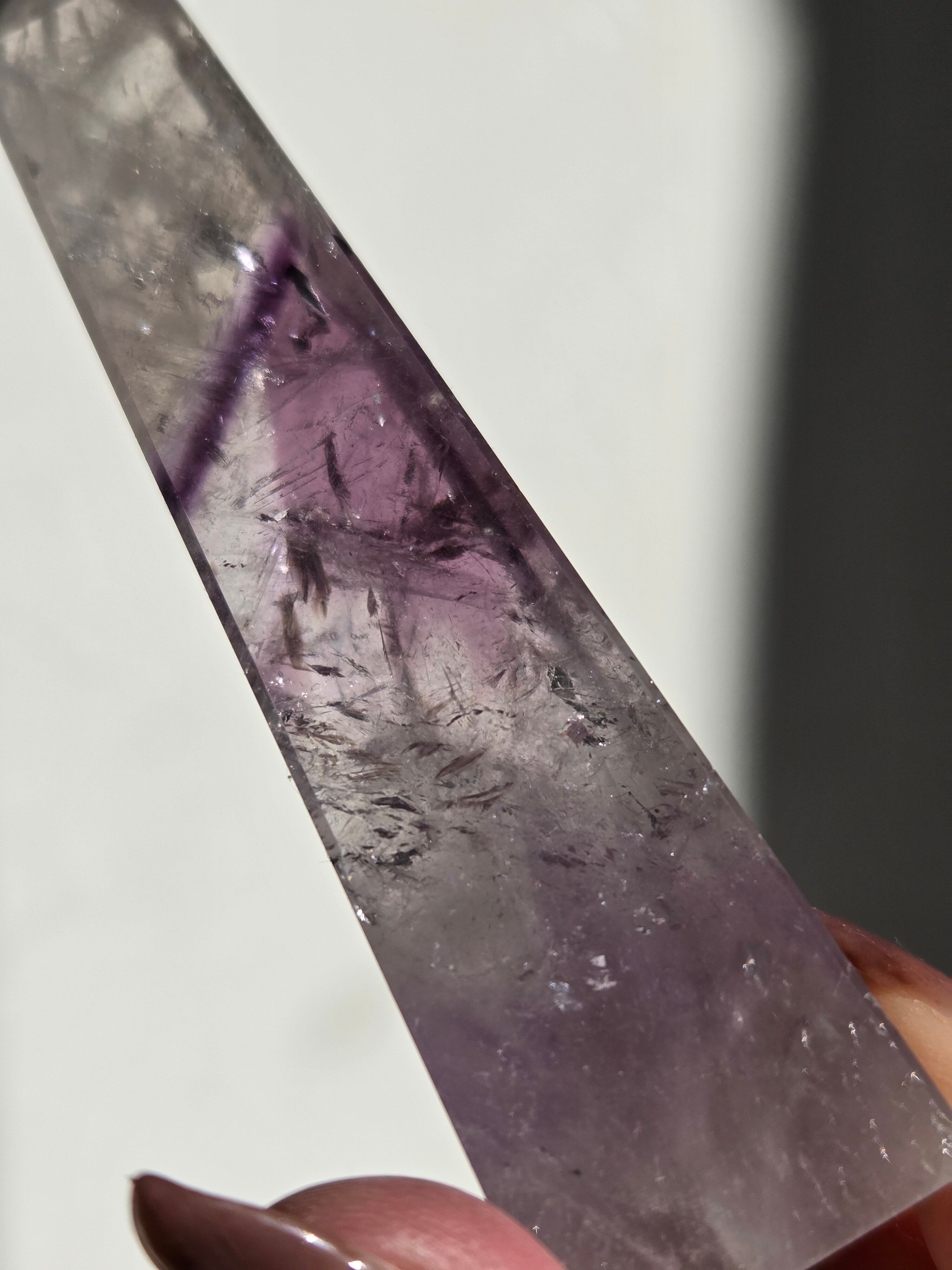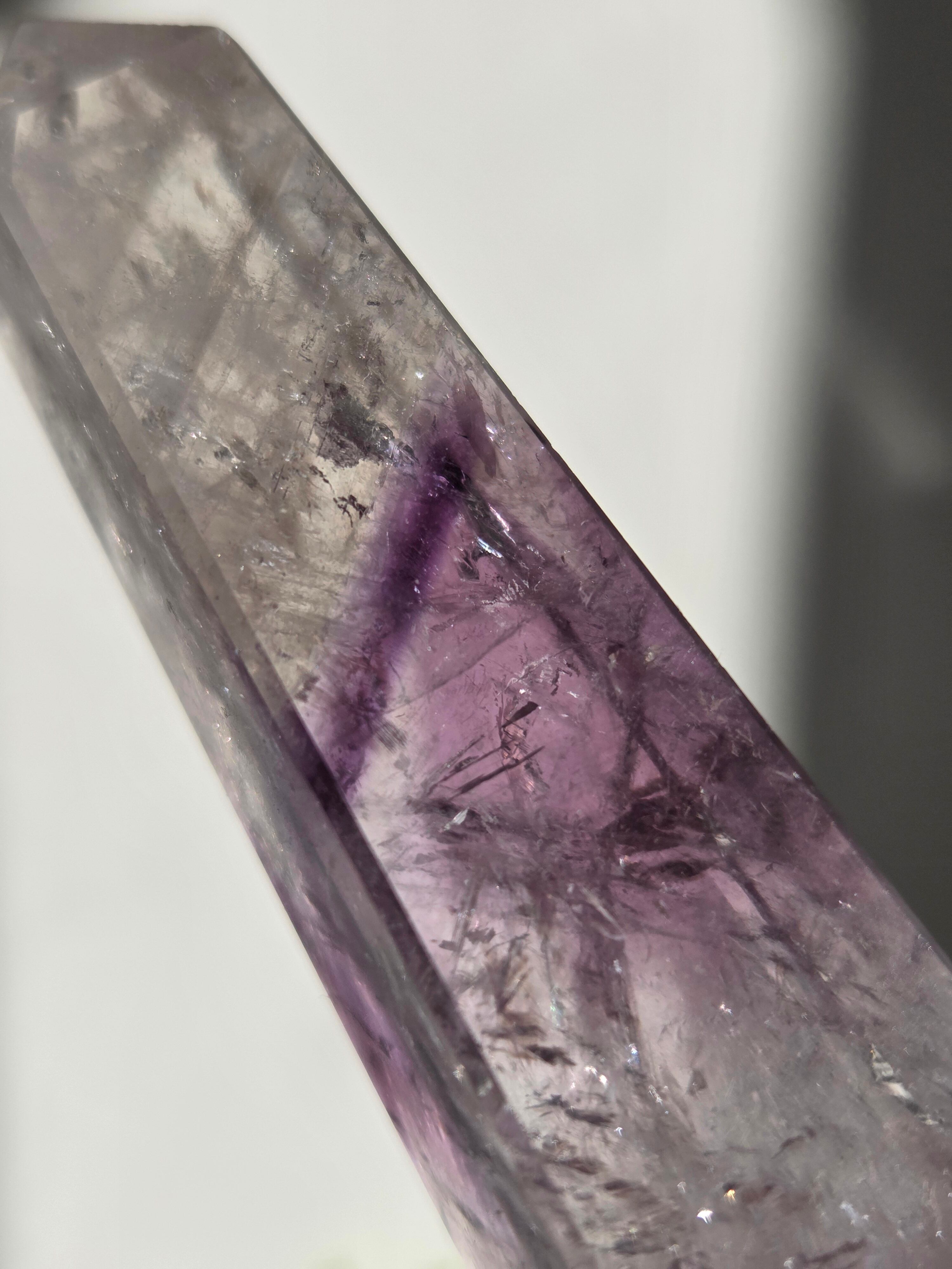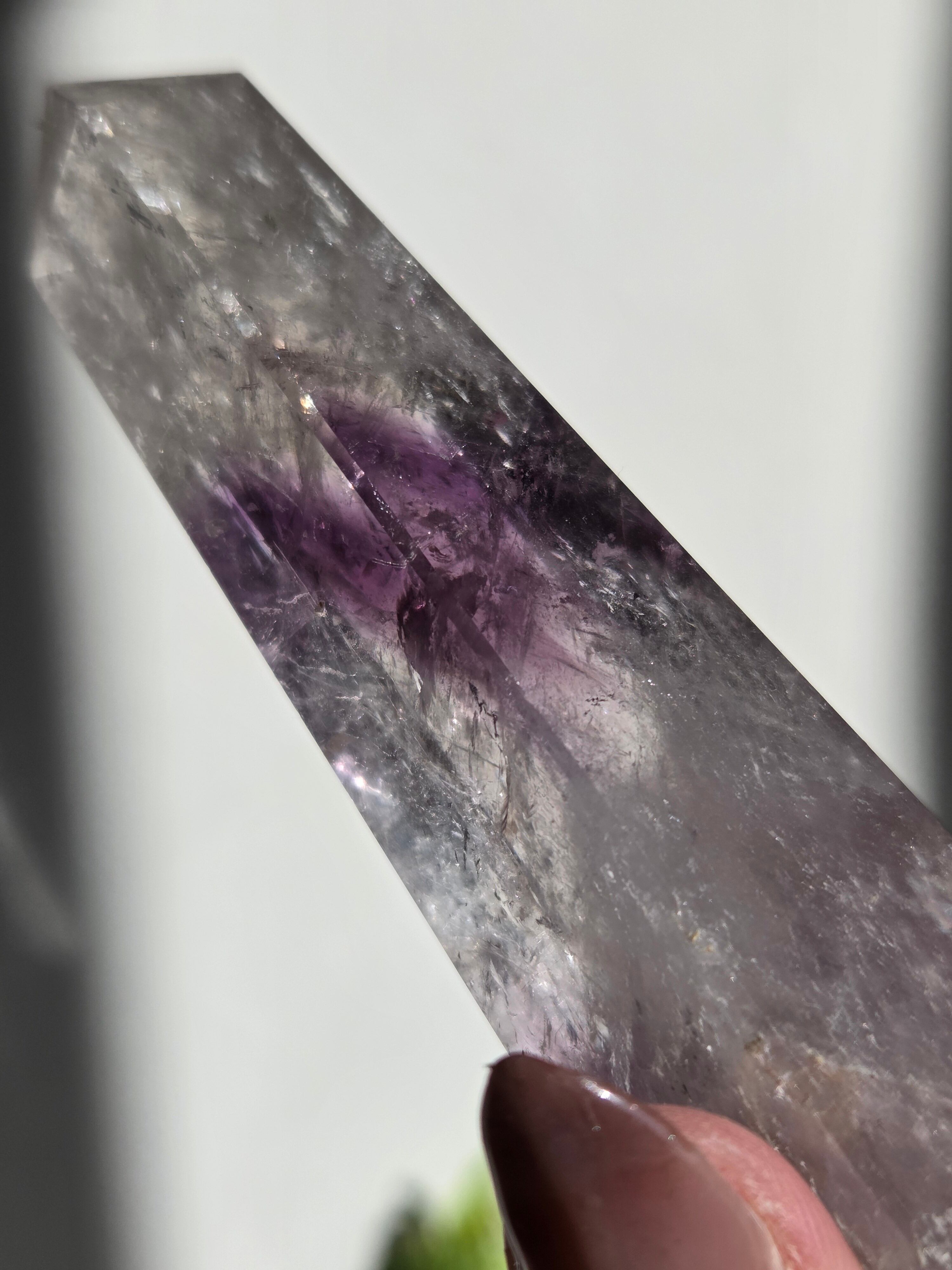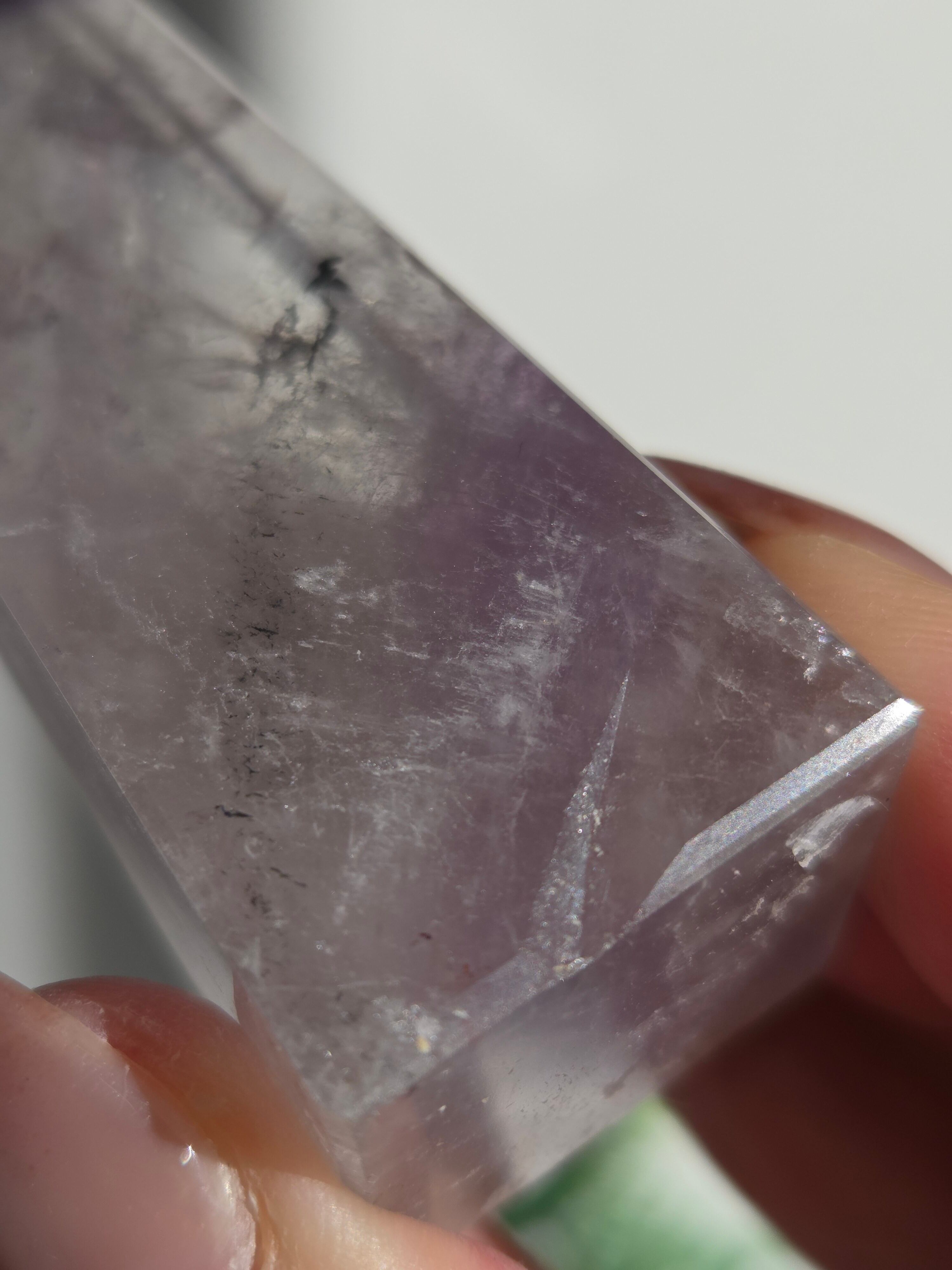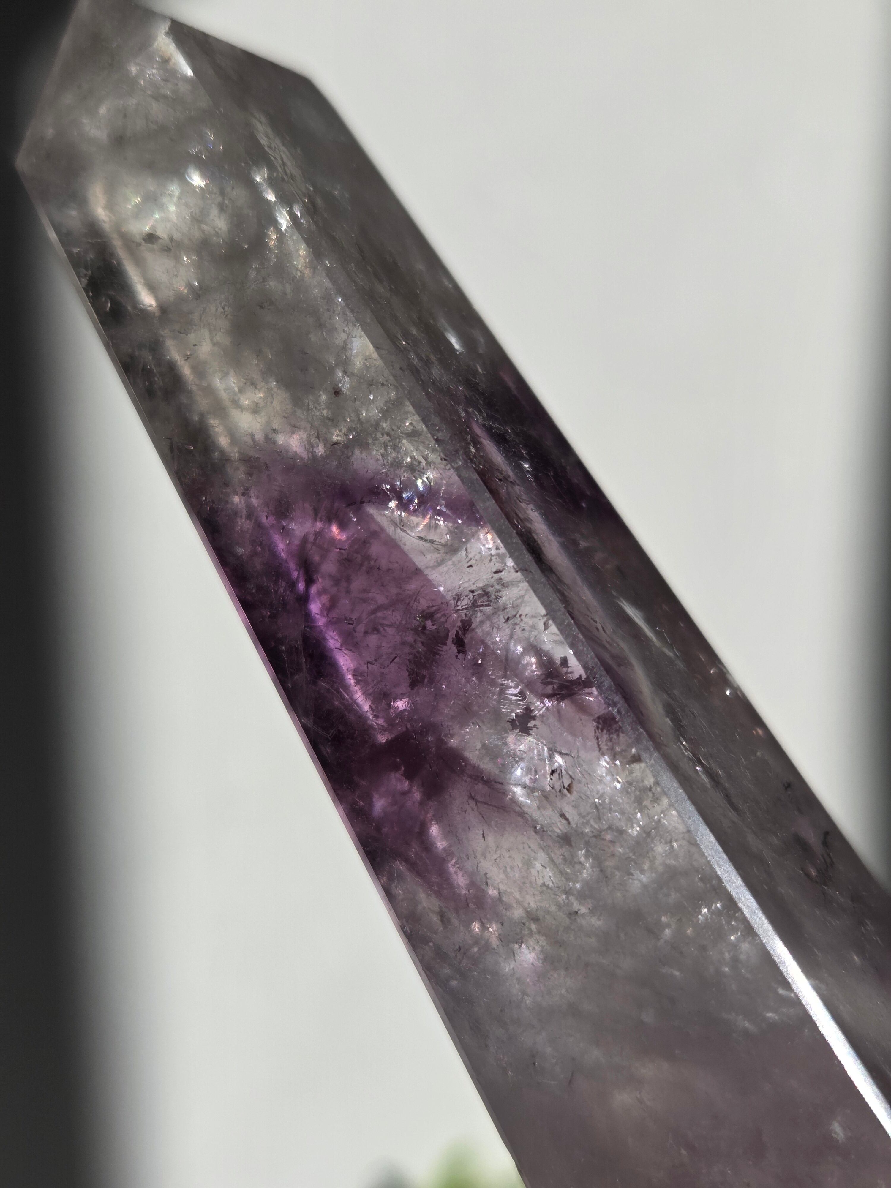 ファントム状に入ったアメジストのパープルラインと、透明感のあるクォーツが、キラキラ可愛いポイントタワーです。