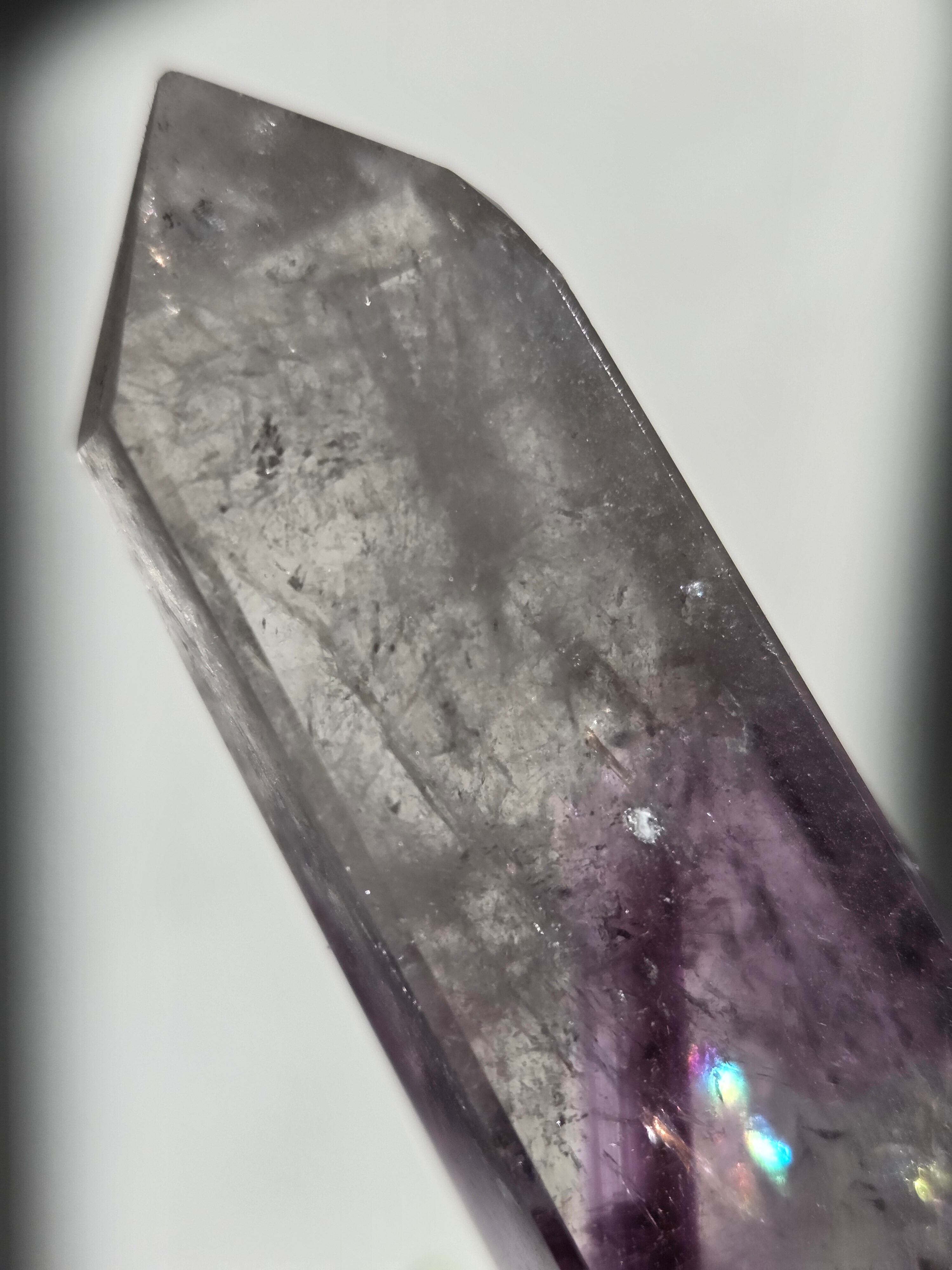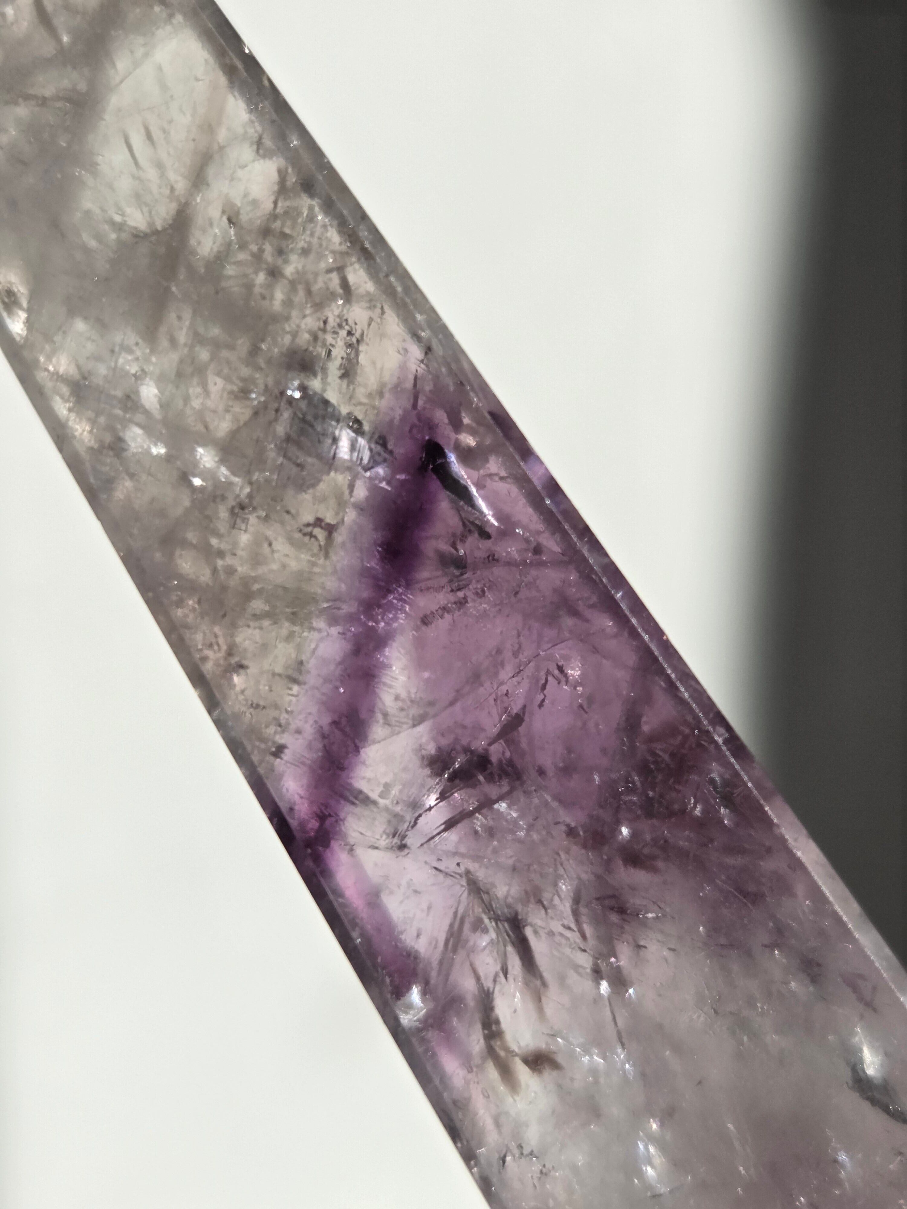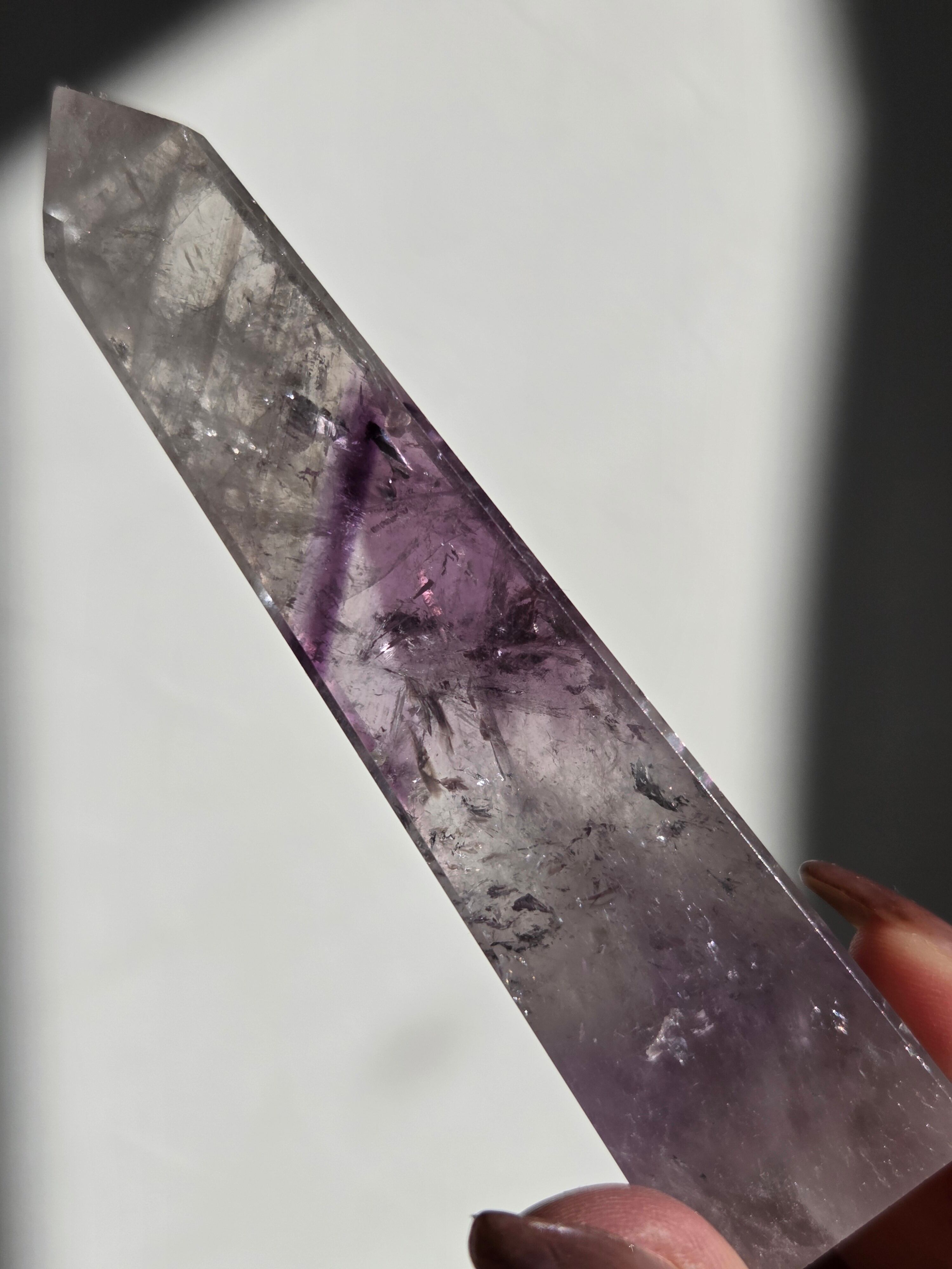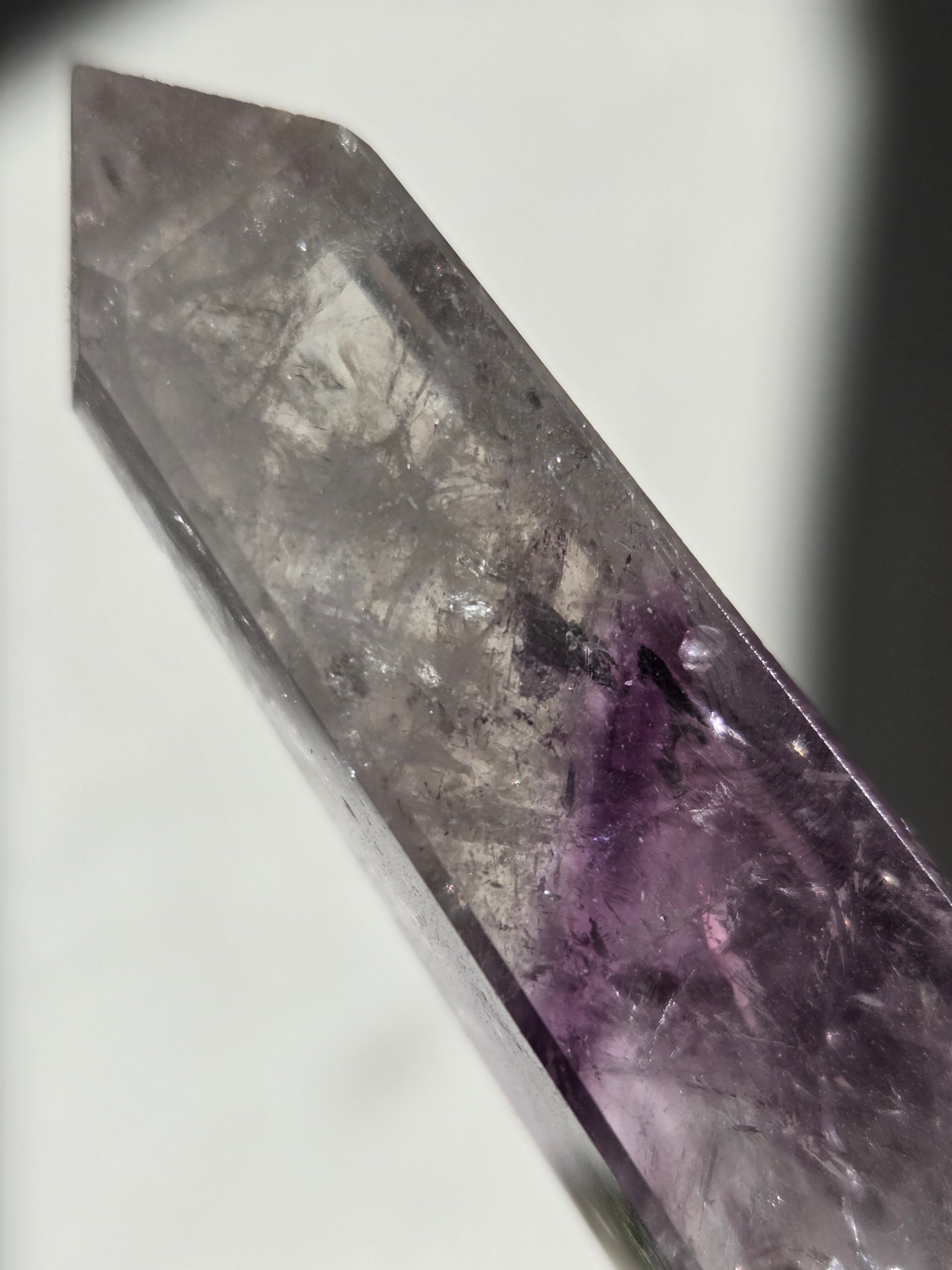 ファントム状に入ったアメジストのパープルラインと、透明感のあるクォーツが、キラキラ可愛いポイントタワーです。