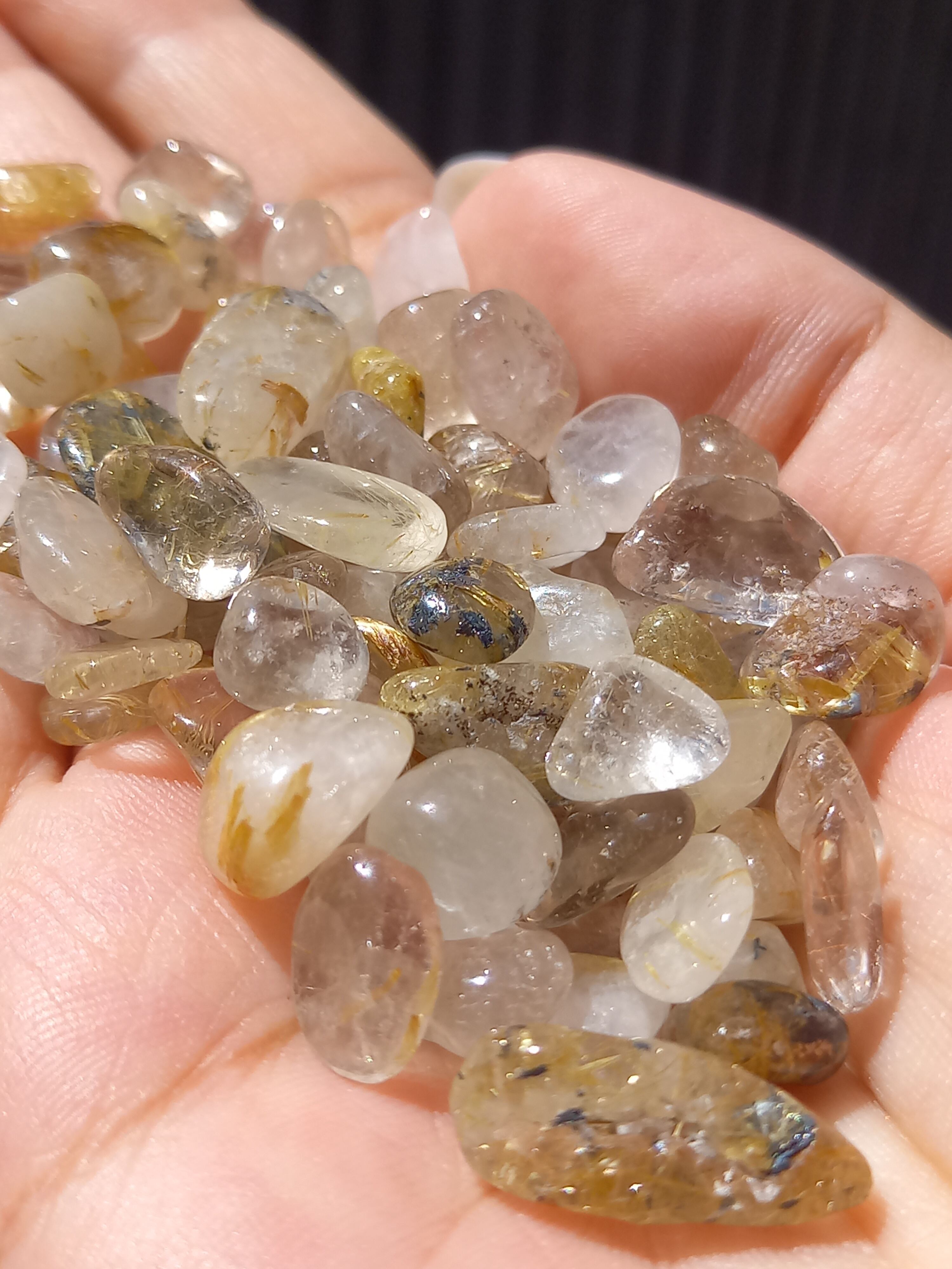 粒大きめ細石なので、細石ながらも、透明感や、ルチルクォーツ感も1つ1つしっかり見てとれます。