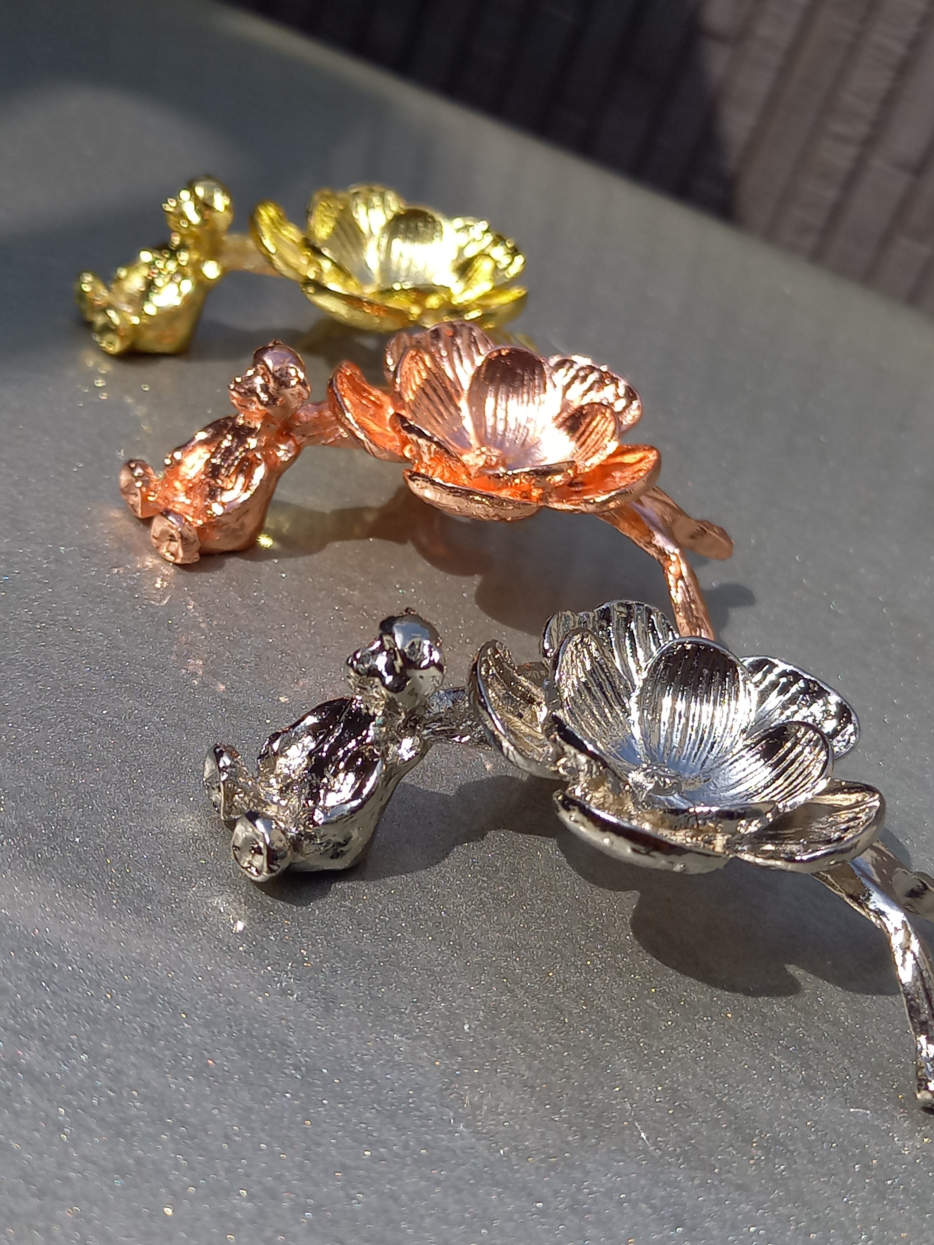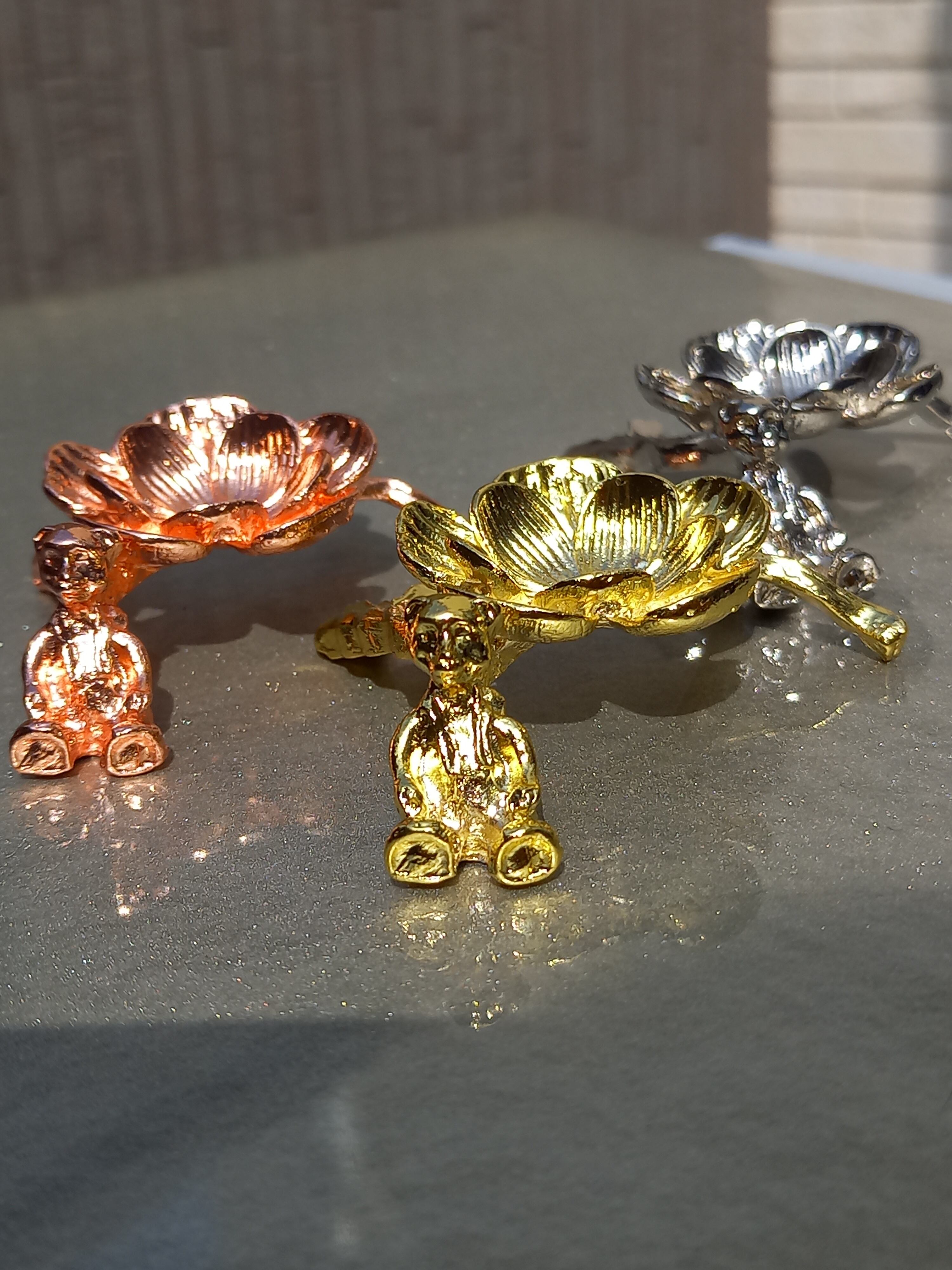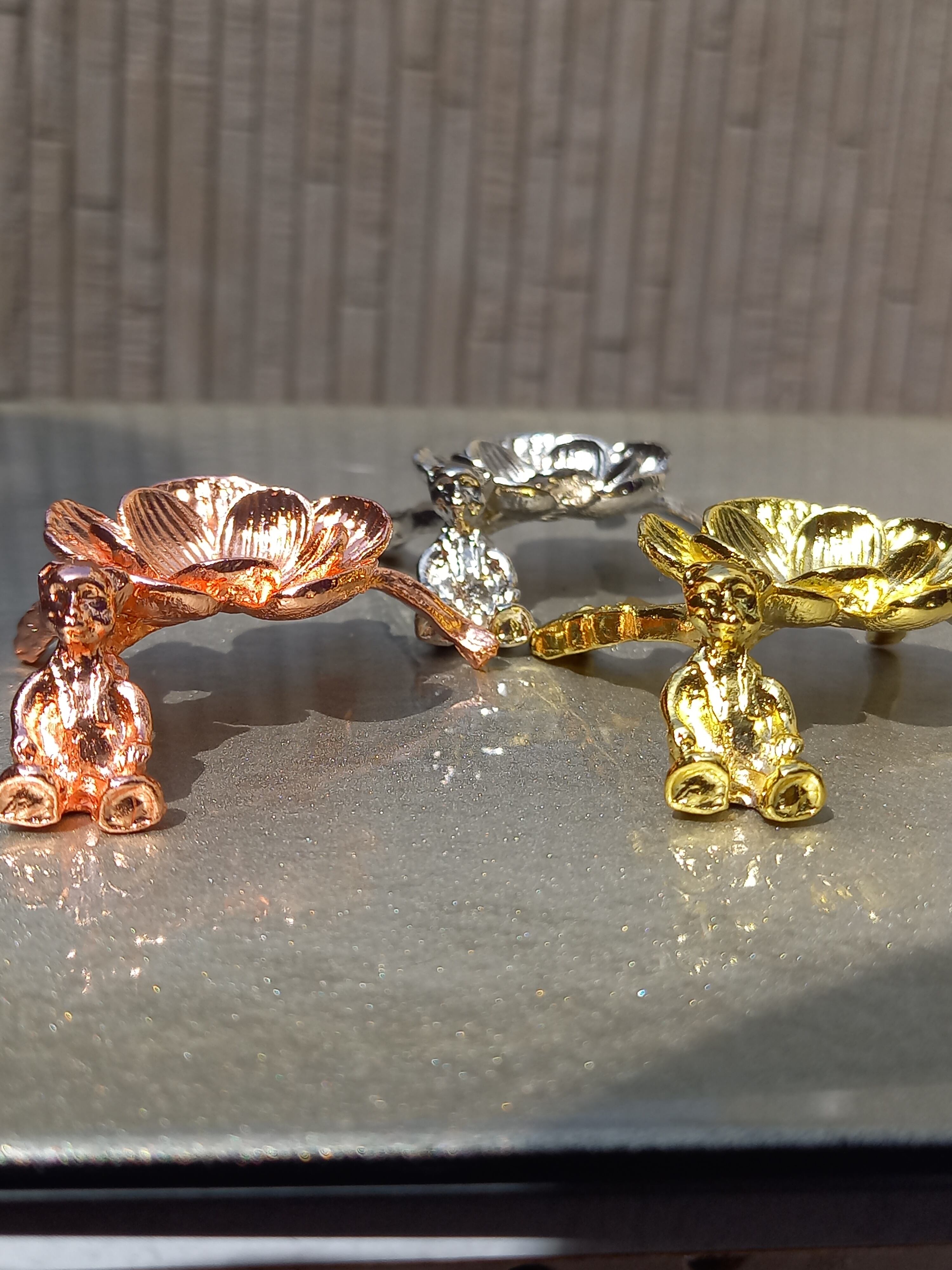 お花の傍に、ちょこんと可愛らしいクマちゃんが座っている台座になります。