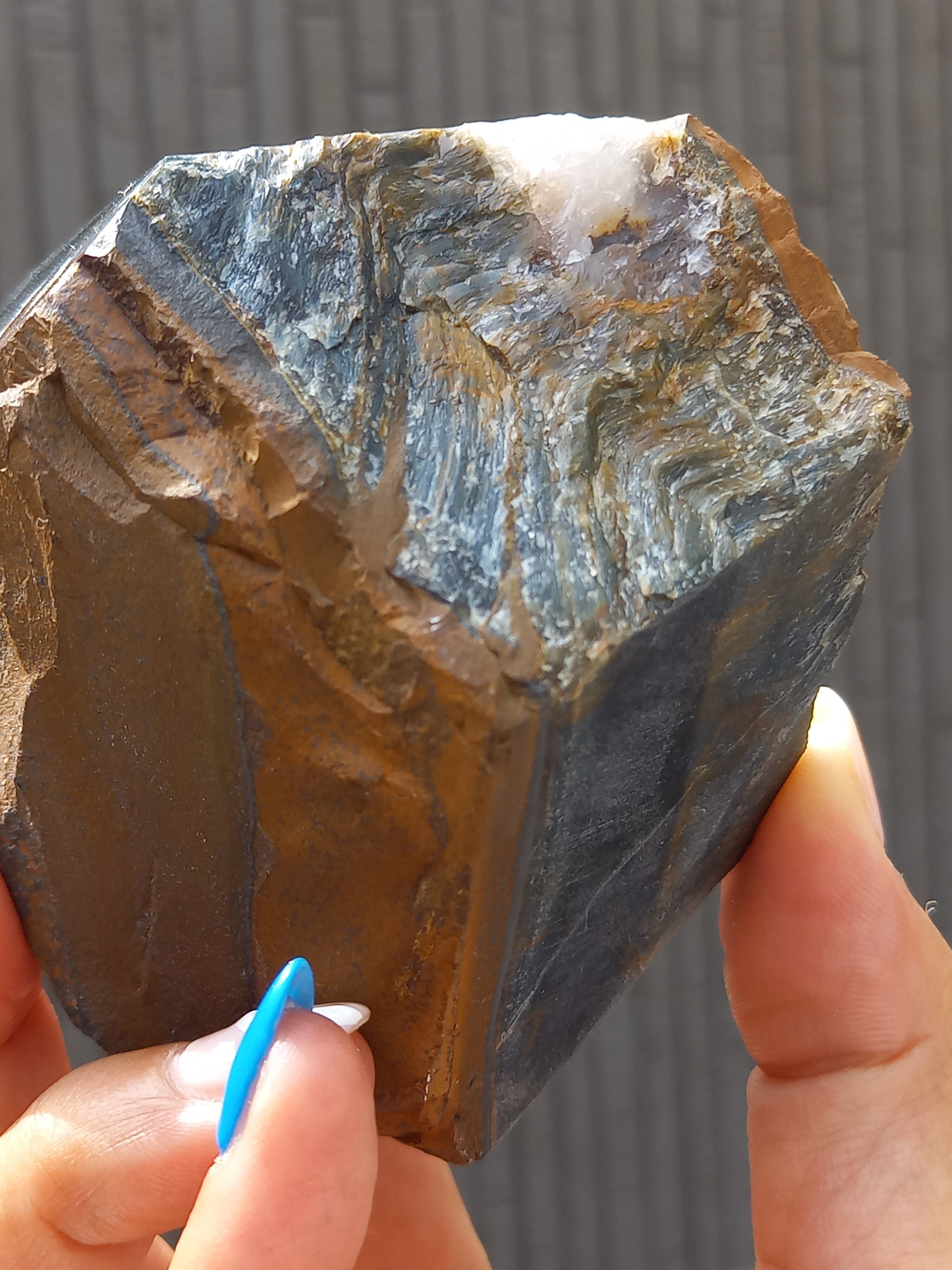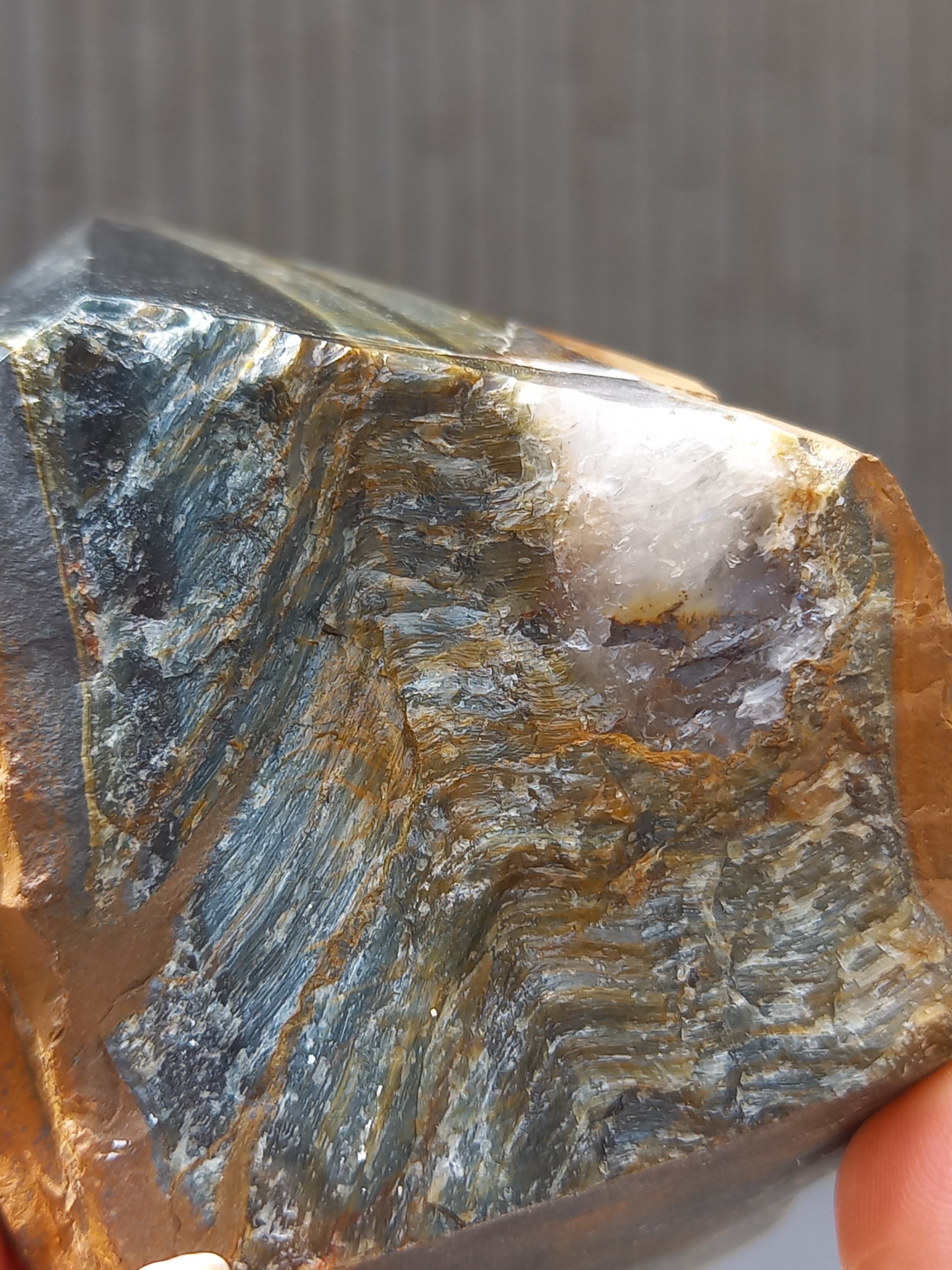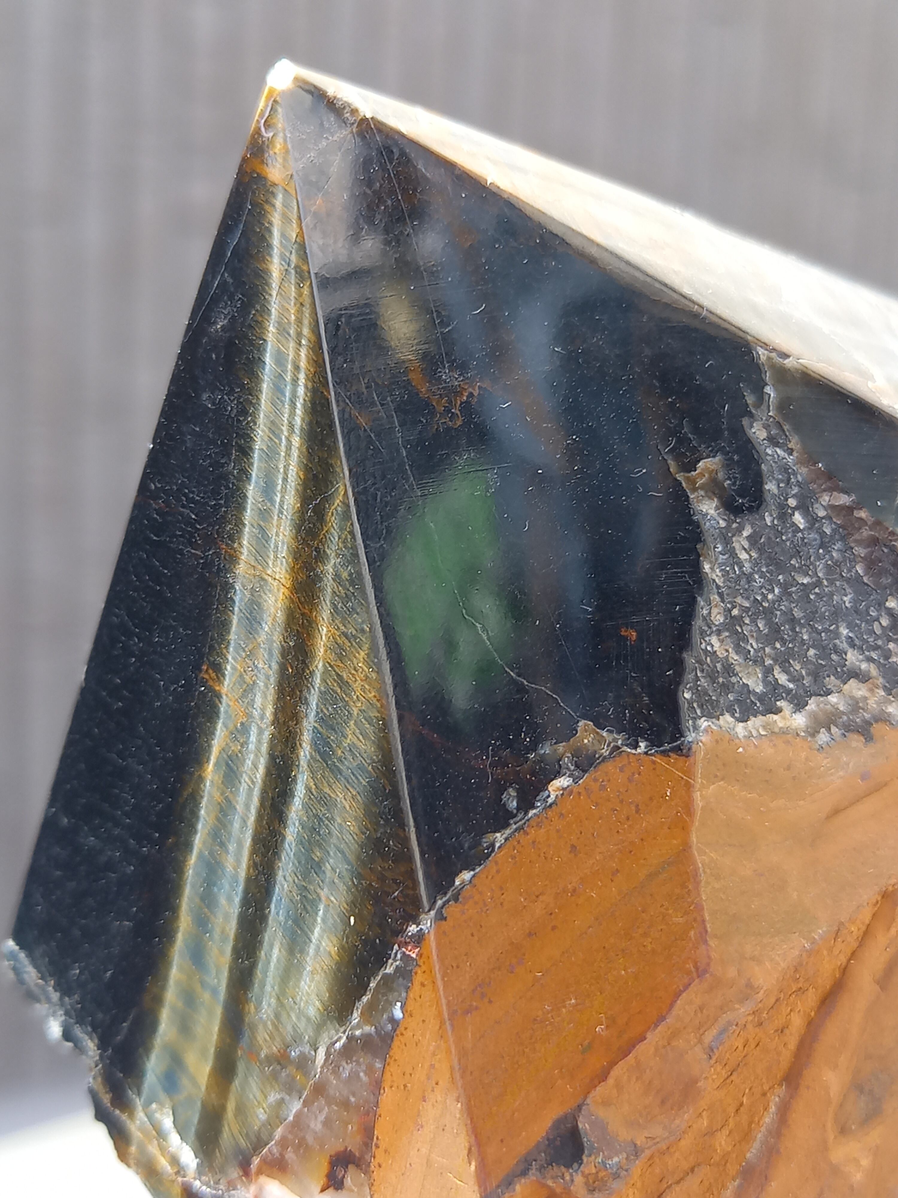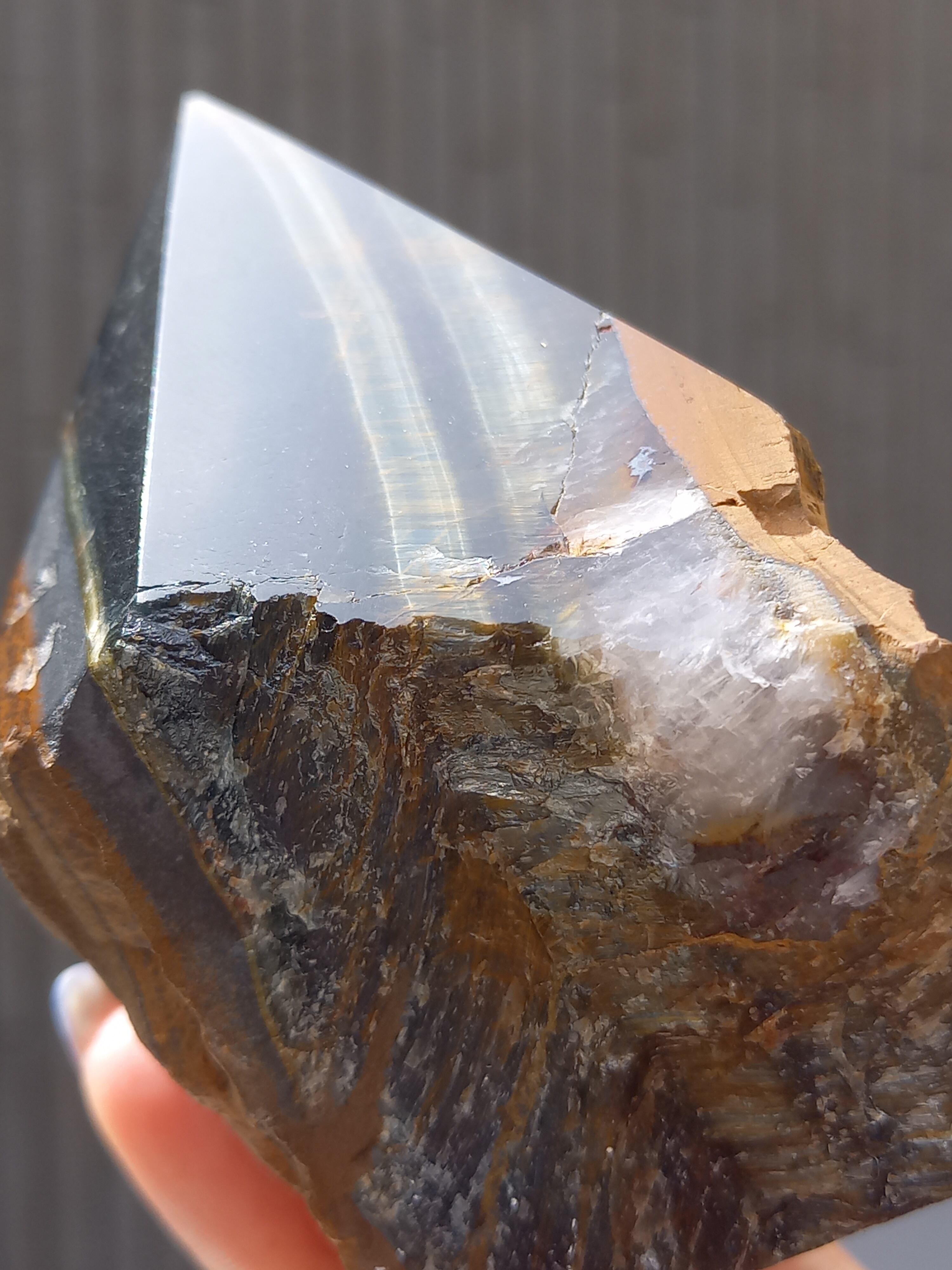 クォーツも共生しており、原石部分からポリッシュされた部分も、タイガーアイ特有の幻想的なギランとしたシラーがカッコイイです。