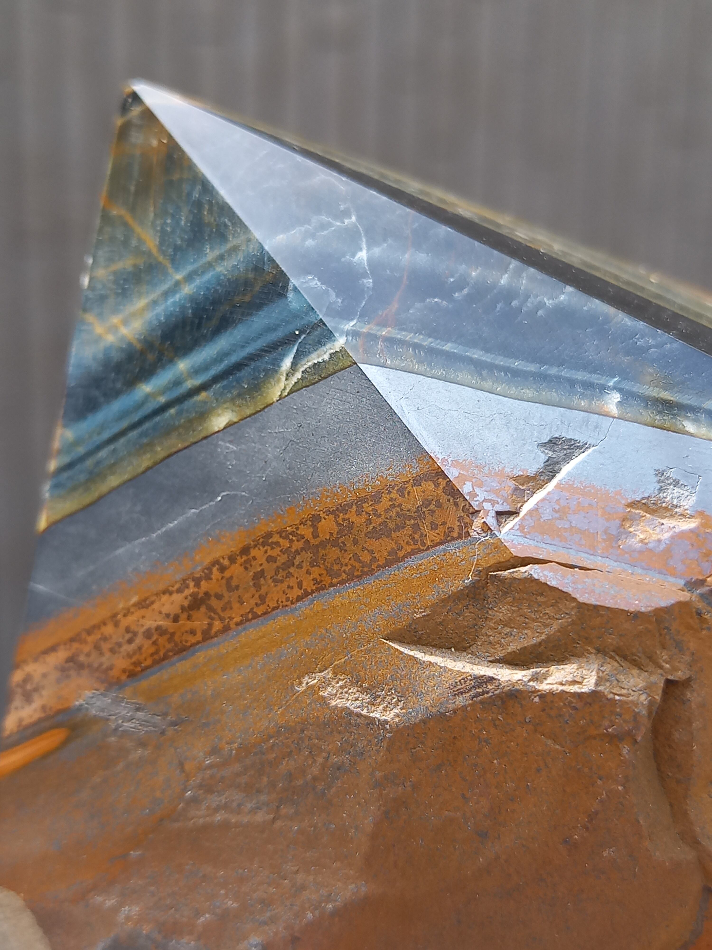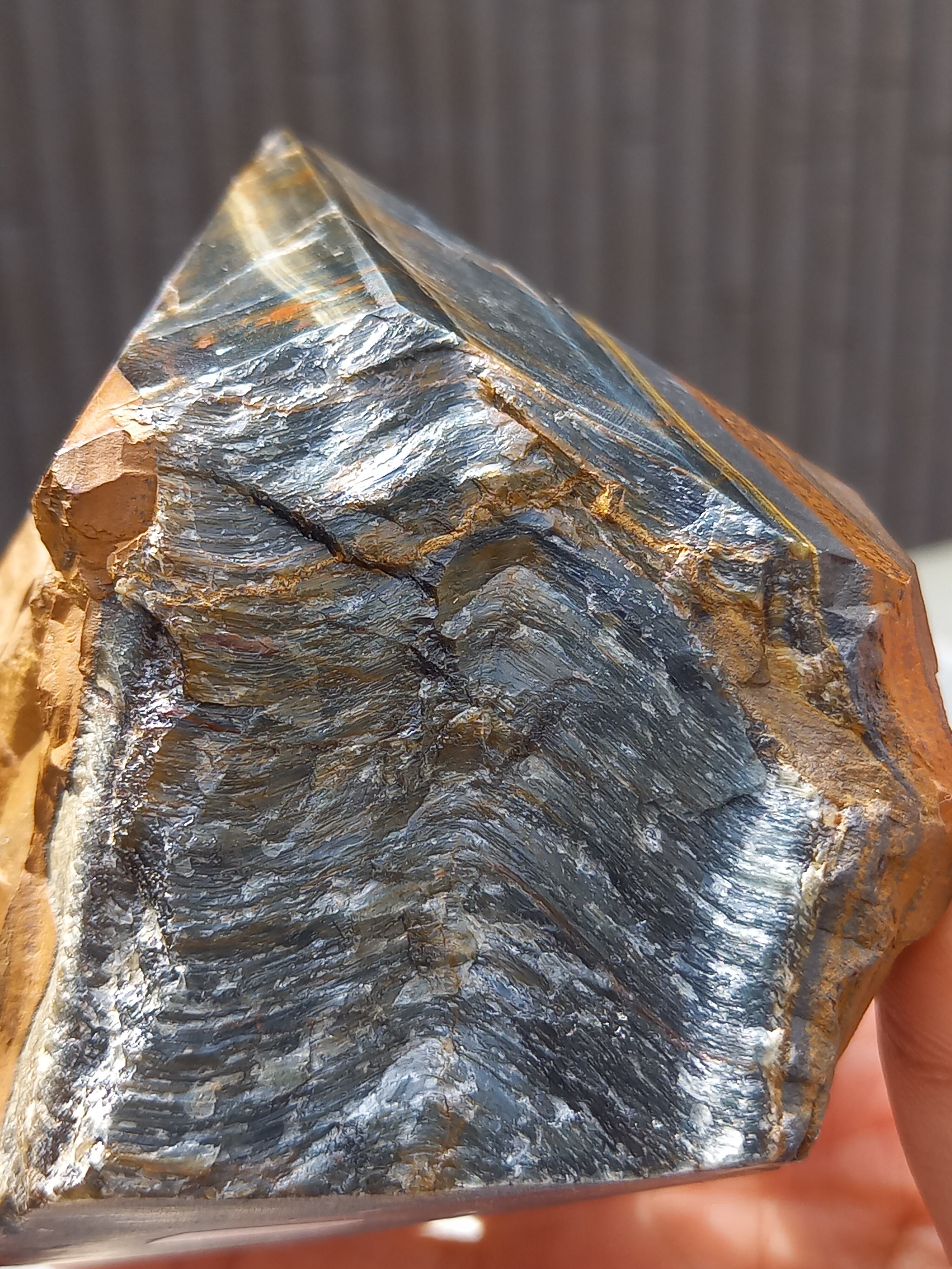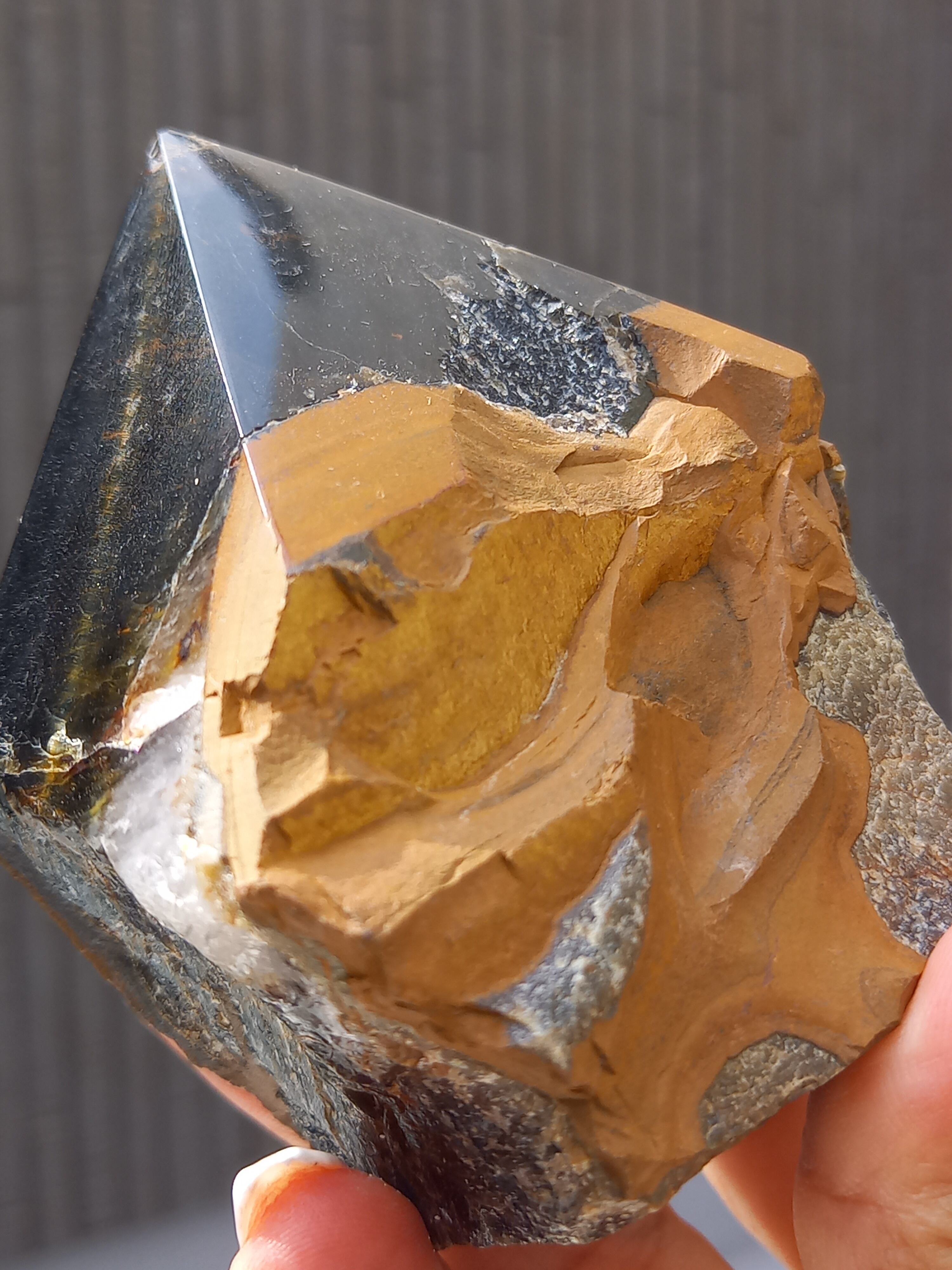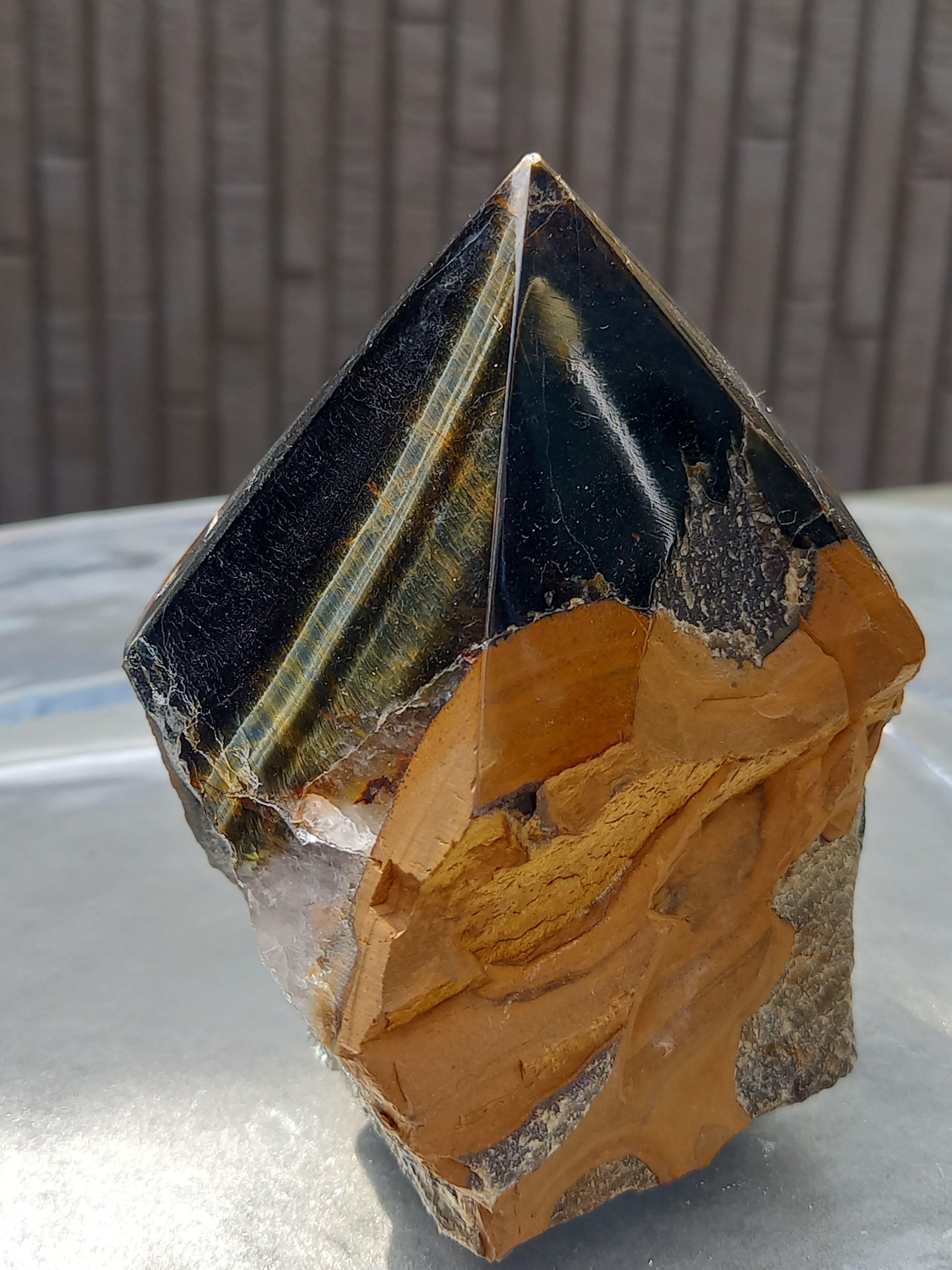 クォーツも共生しており、原石部分からポリッシュされた部分も、タイガーアイ特有の幻想的なギランとしたシラーがカッコイイです。