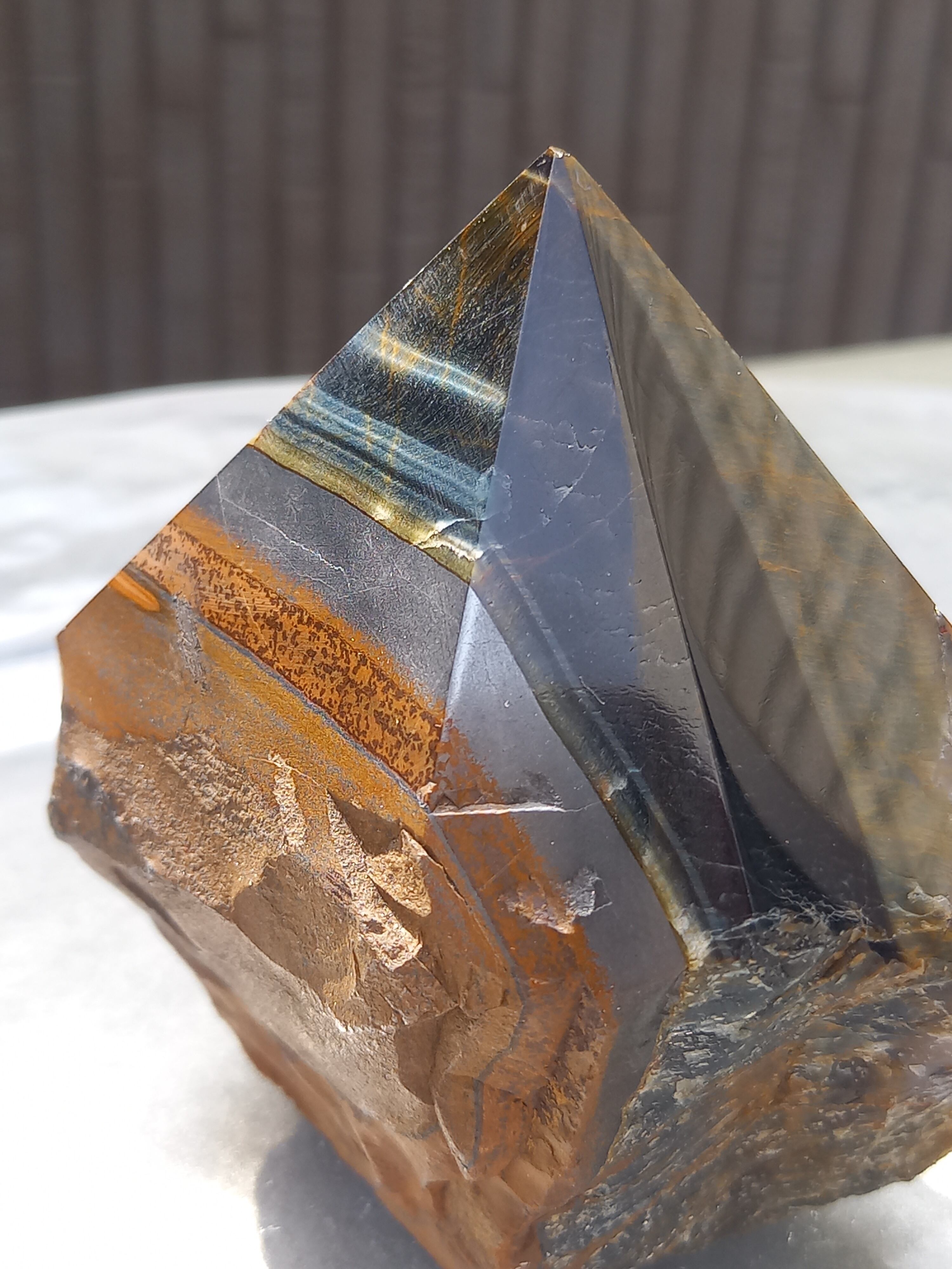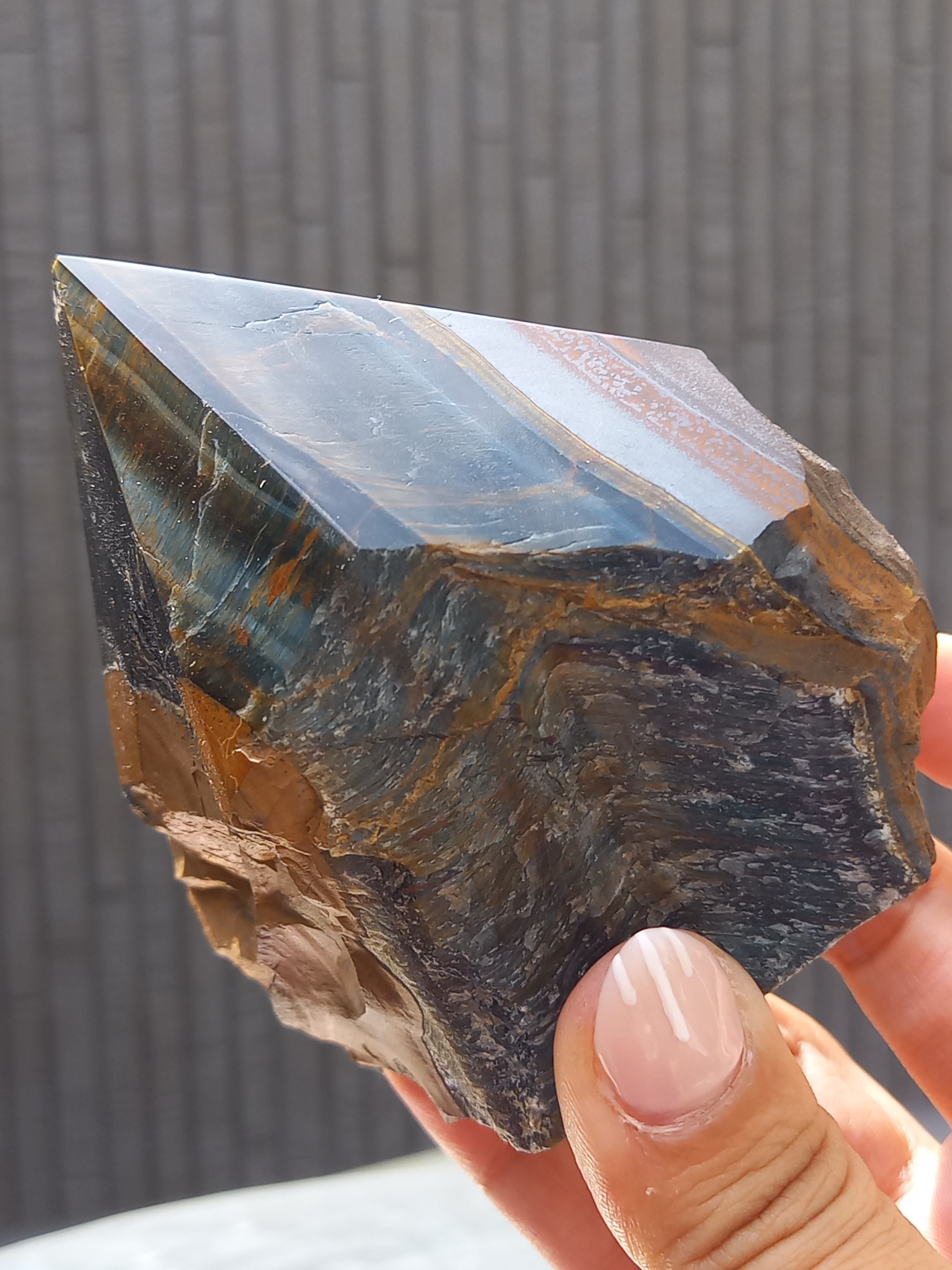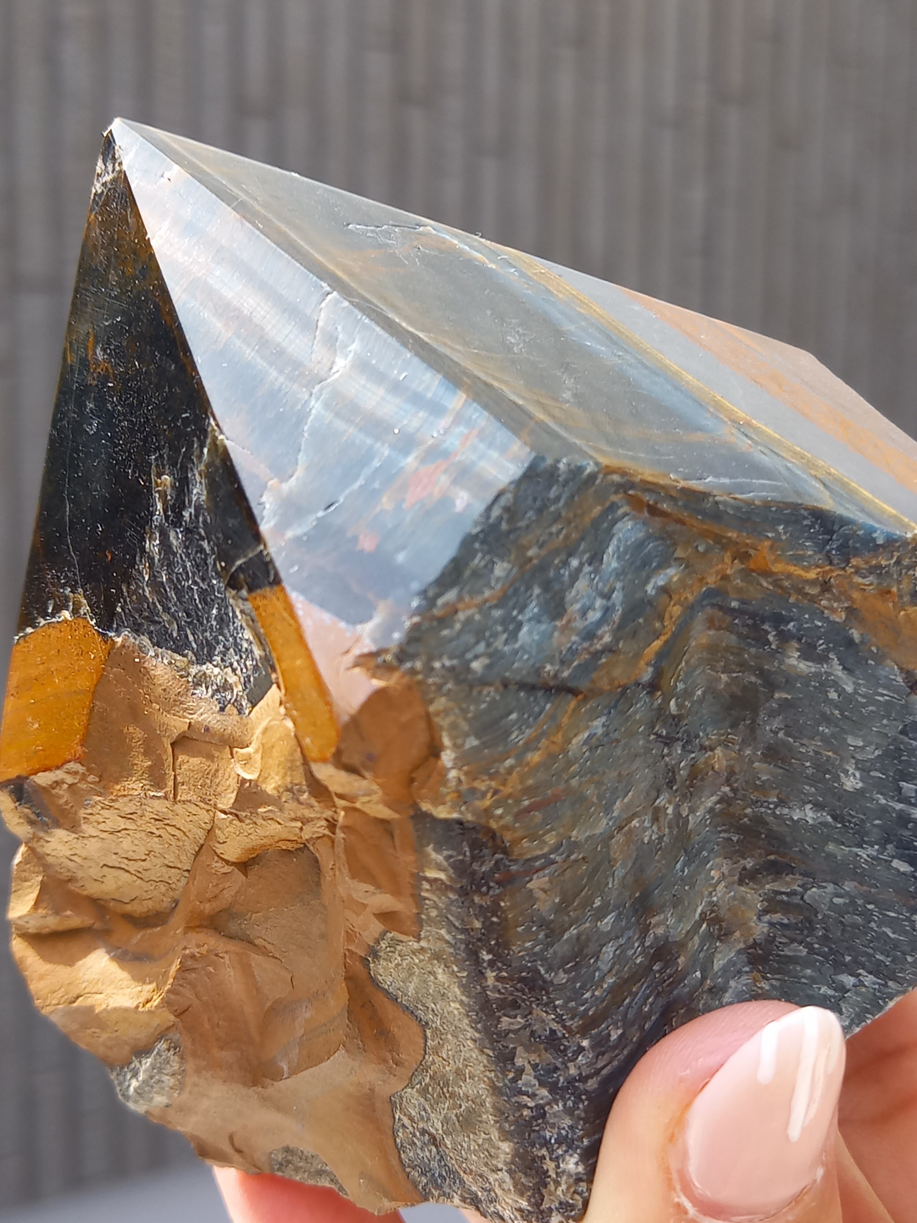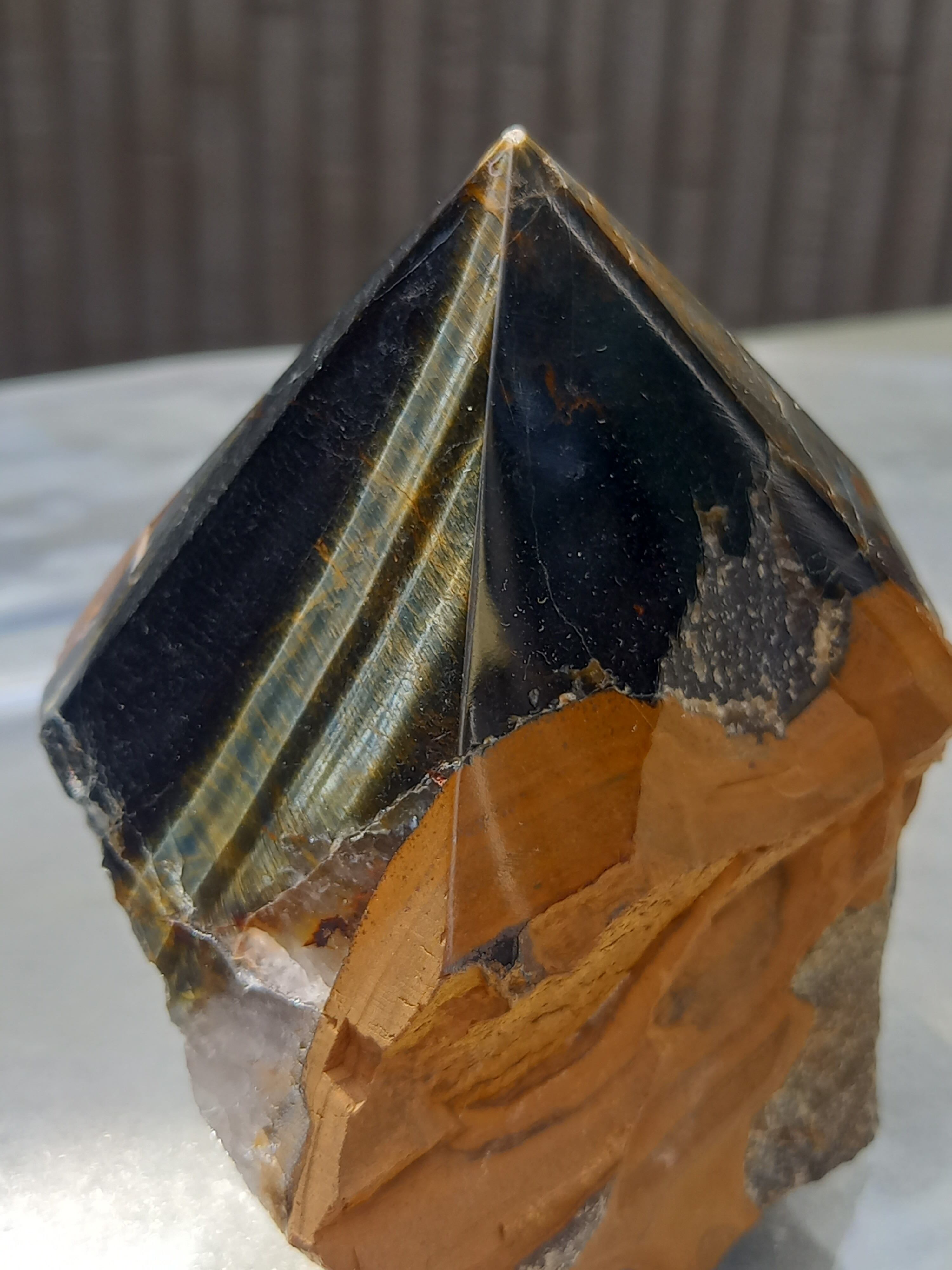 クォーツも共生しており、原石部分からポリッシュされた部分も、タイガーアイ特有の幻想的なギランとしたシラーがカッコイイです。