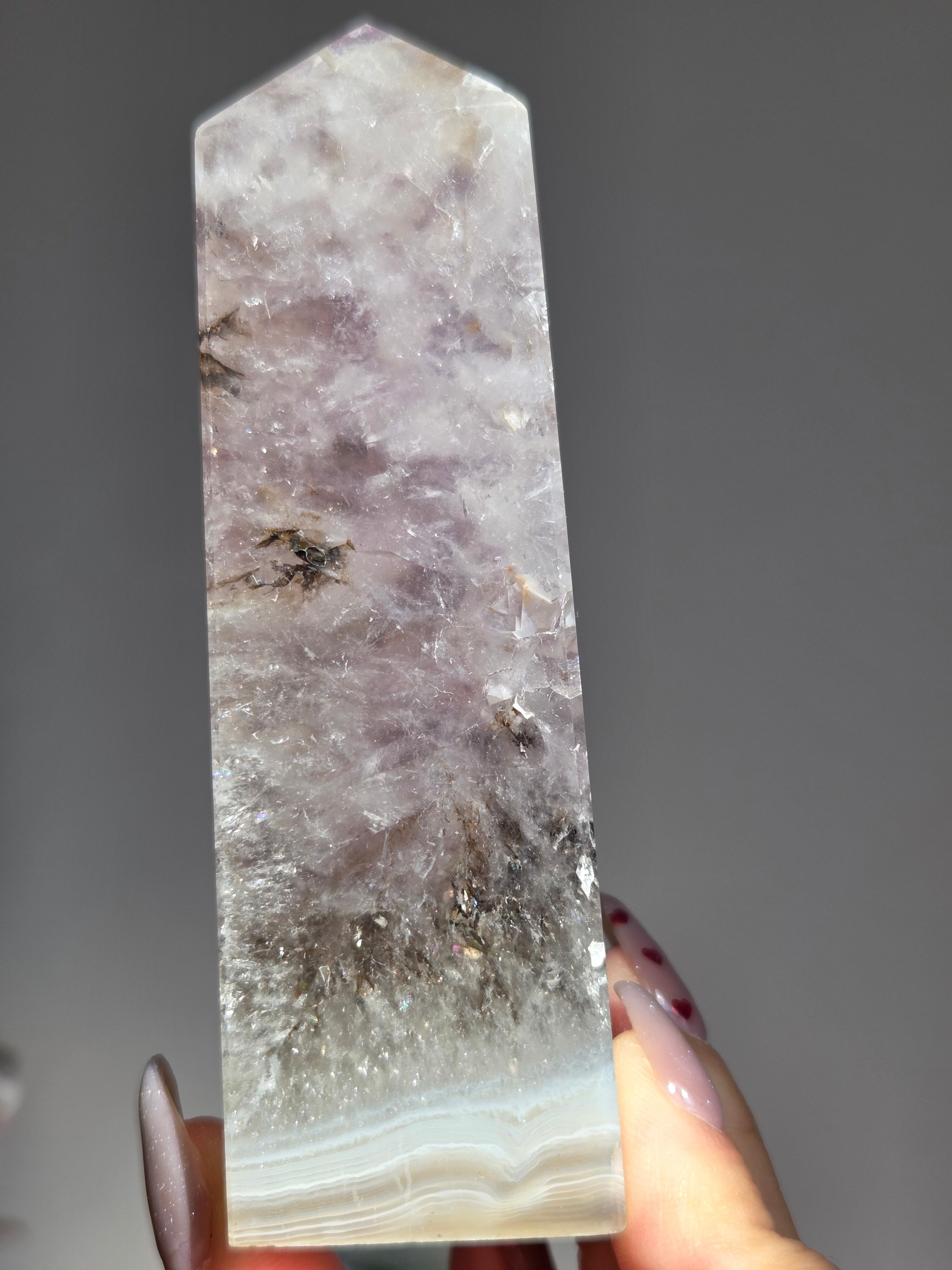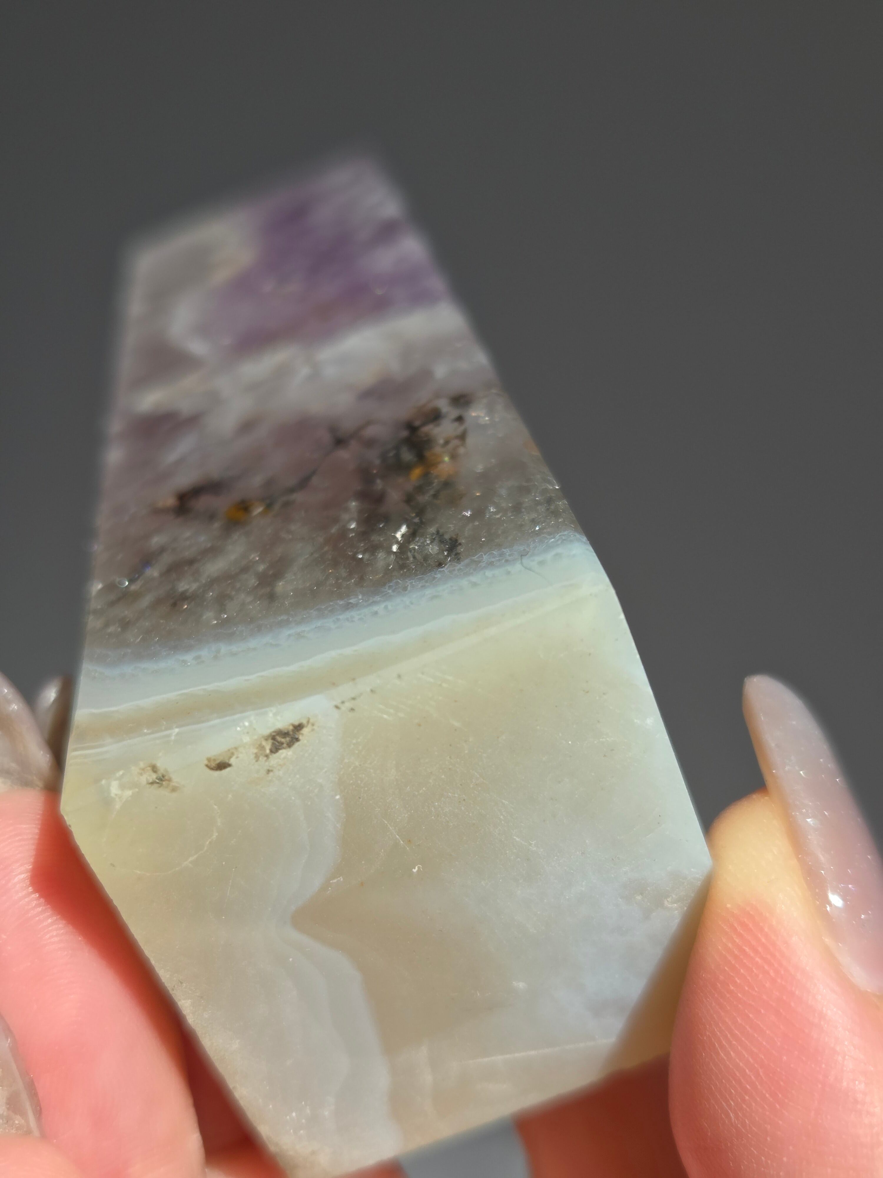 アゲートの模様部分と、アメジストの煌めきがとても美しいです。