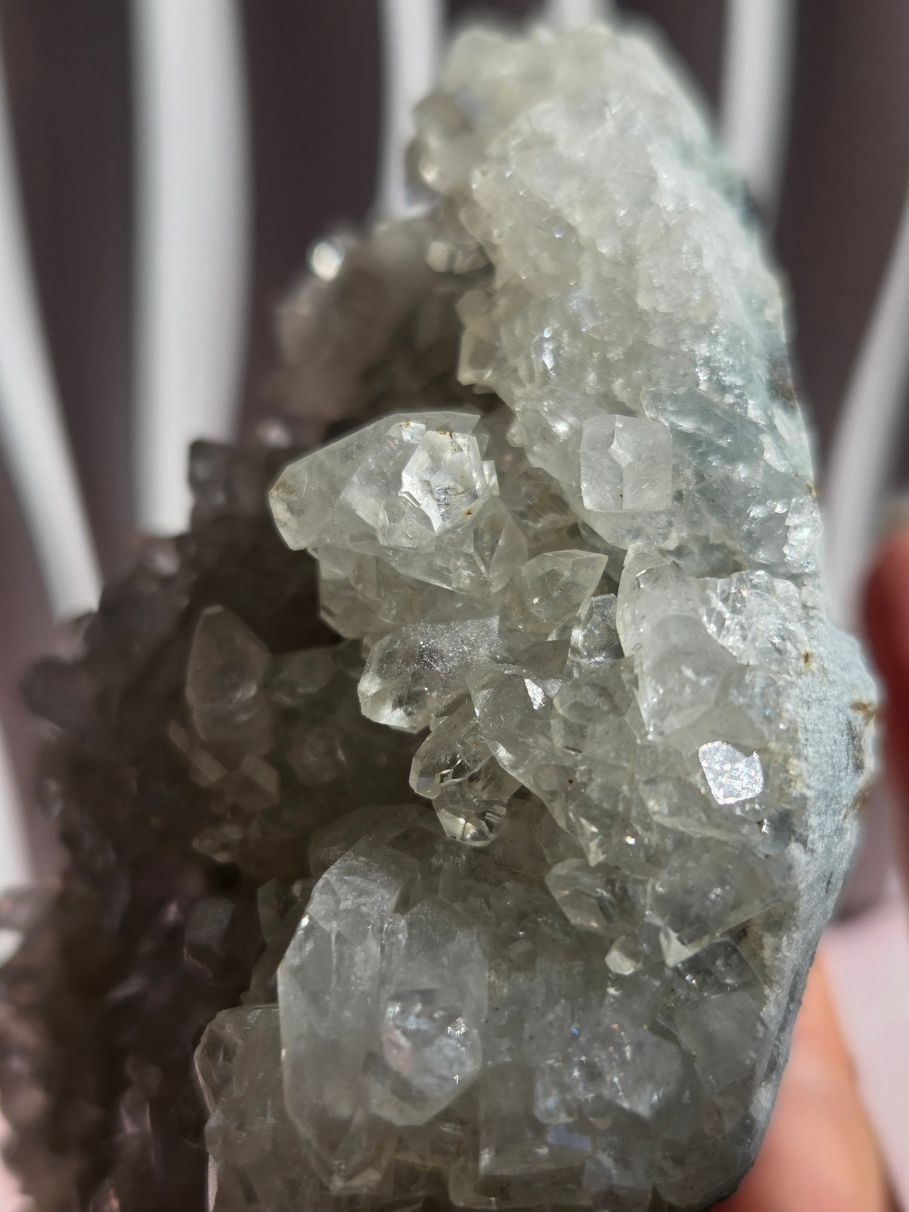 また強力な浄化作用があり、ストレスを軽減し、精神的な閉塞感や否定的な思考パターンを解放してくれます。 過去からの思い込みや習慣で思考や行動の基礎習慣など、自分を縛っているネガティブな固定観念を解放します。 アポフィライトは、目標に向かって進んでいく道を示し、新しい一歩を踏み出すサポートをしてくれます。