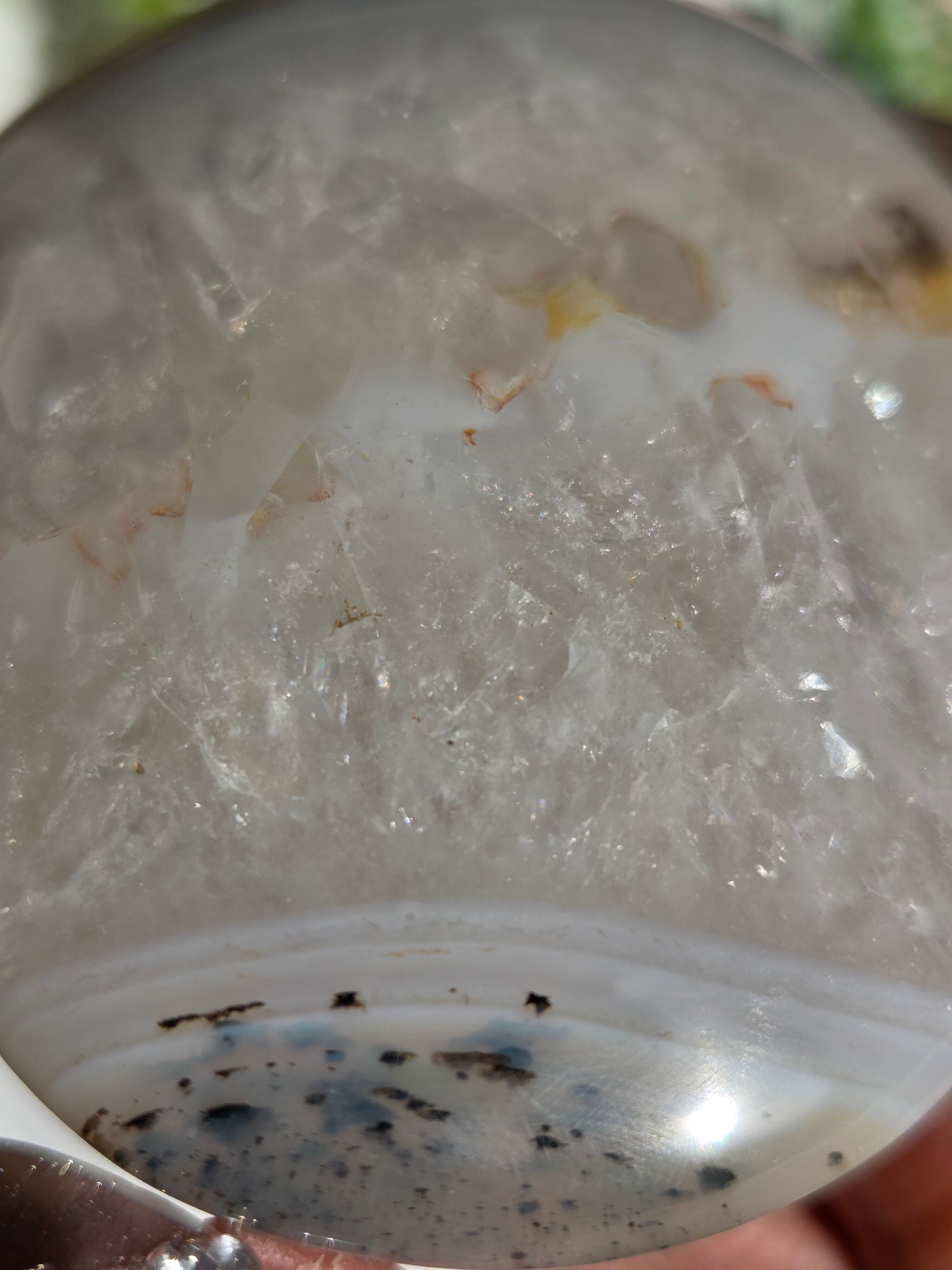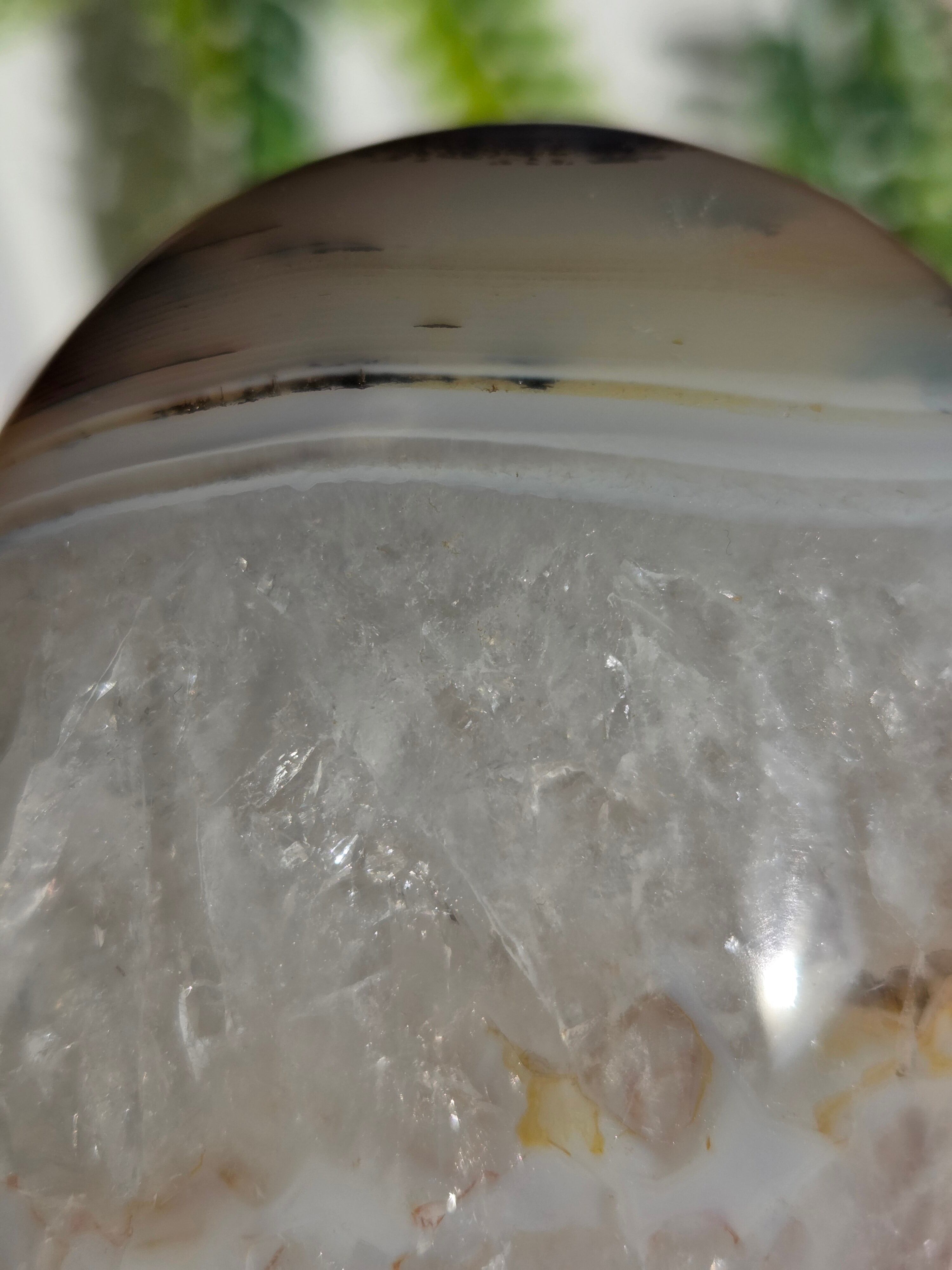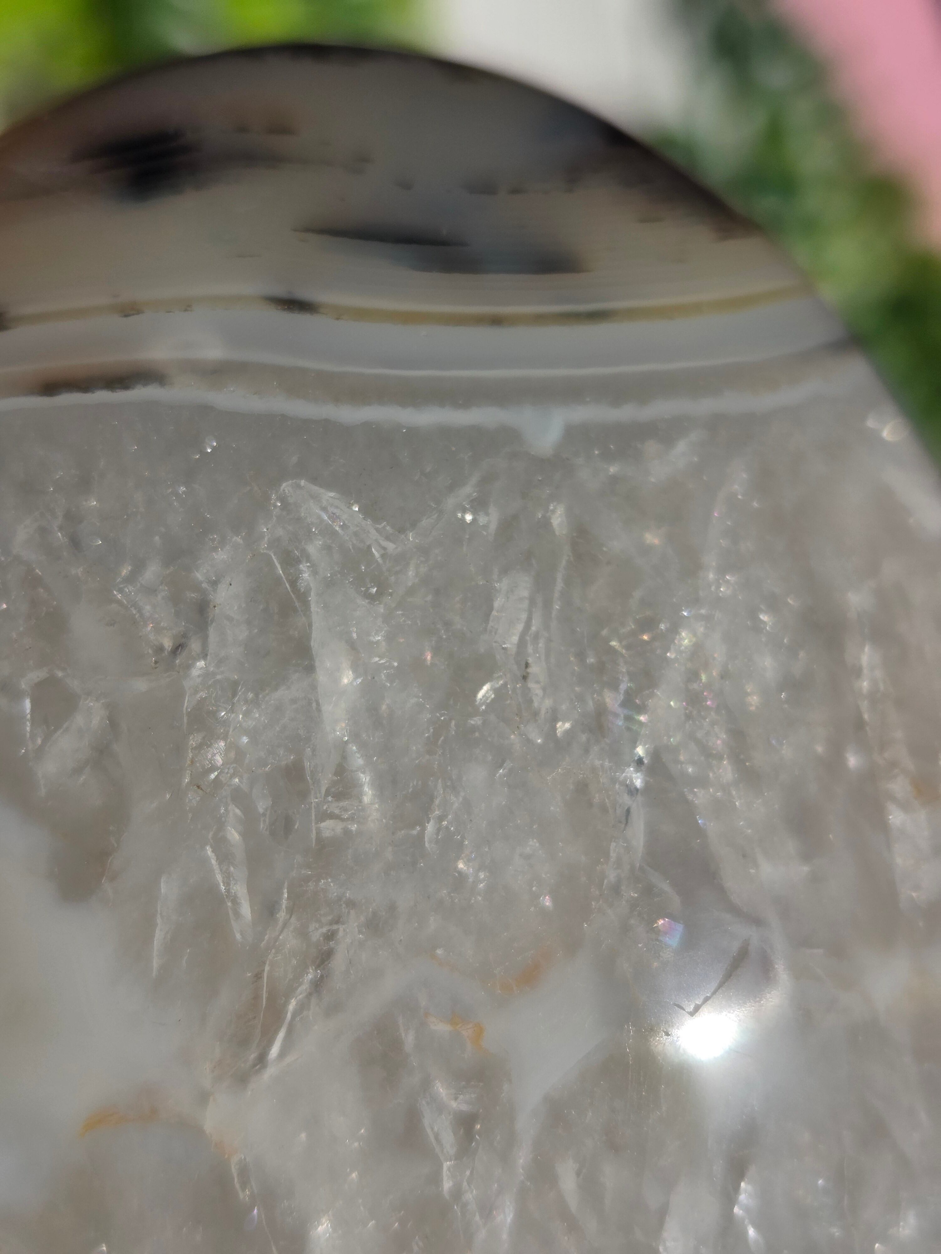 キラキラのクォーツに、サイドのアゲート模様が素敵な大きめパームです。