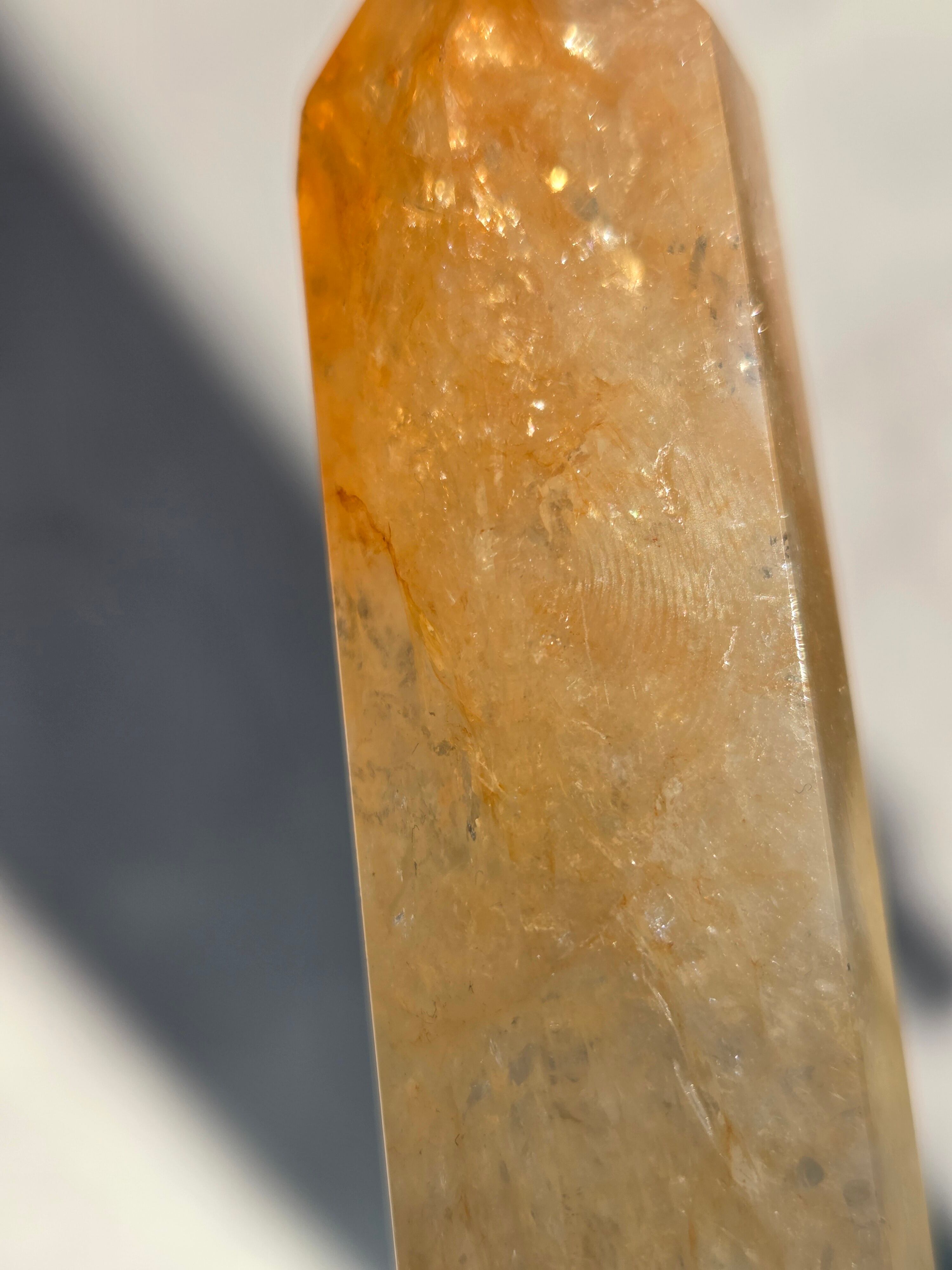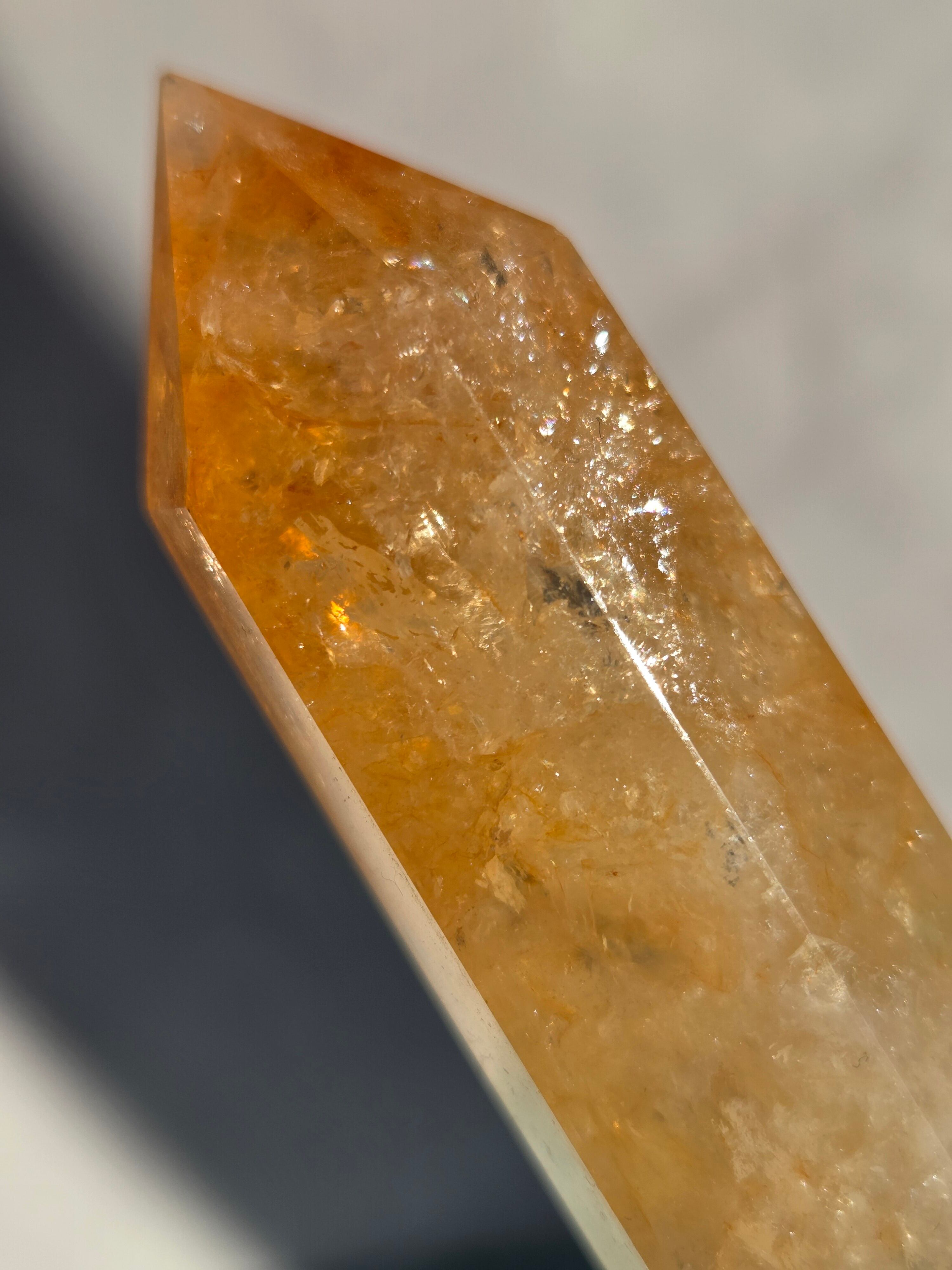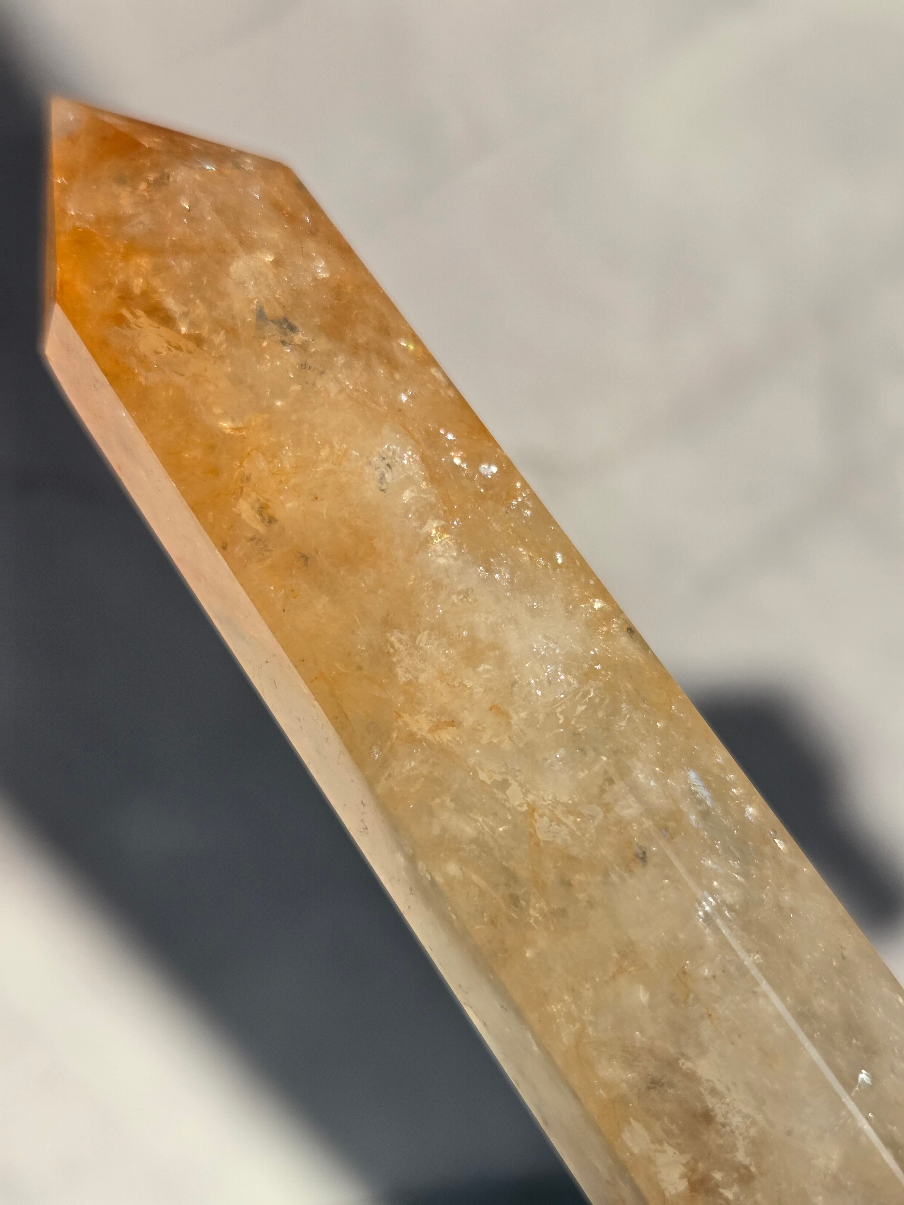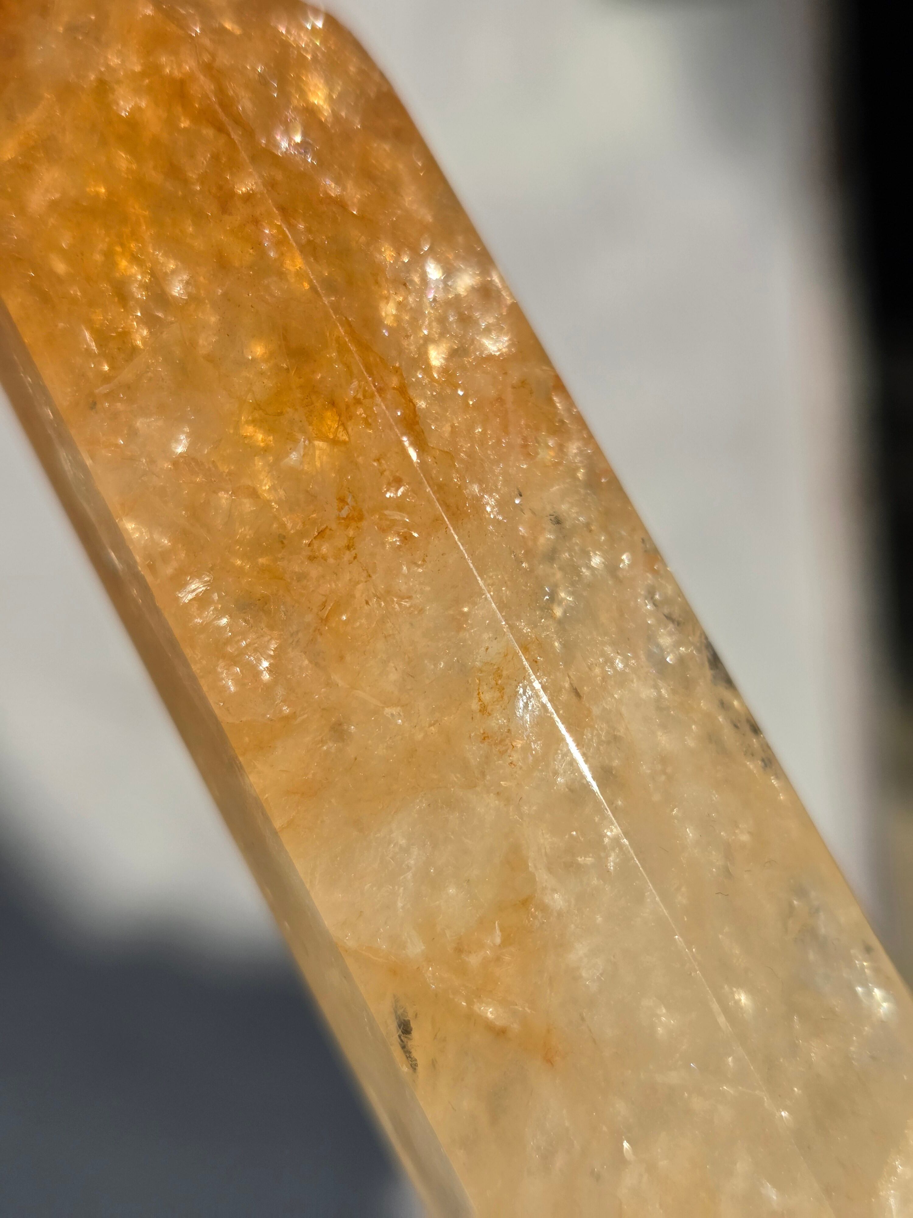 キラキラな虹が沢山で、クォーツの透明感と、ライモナイトのイエローオレンジレッドカラーがフレッシュで元気な気持ちにさせてくれます。