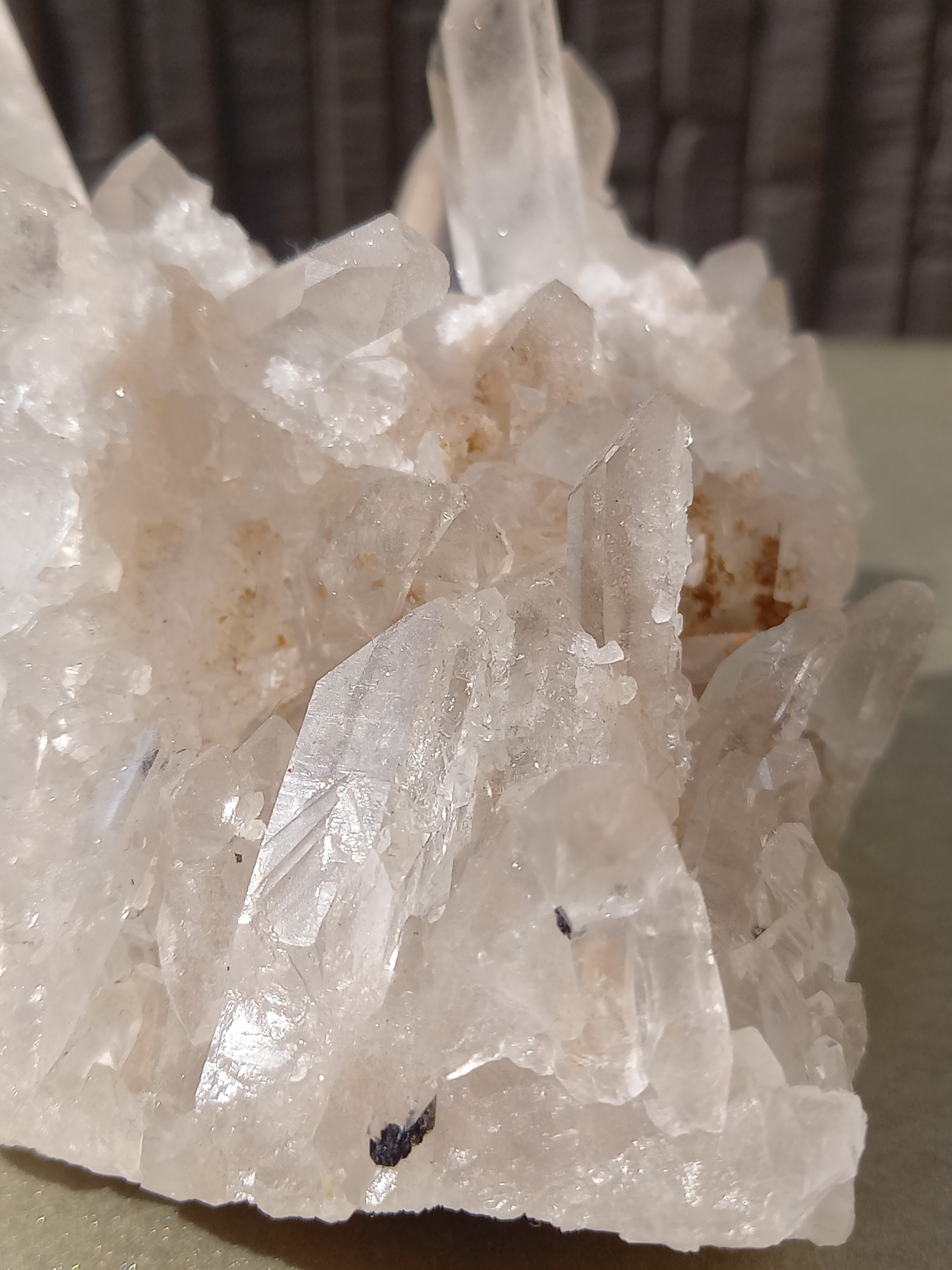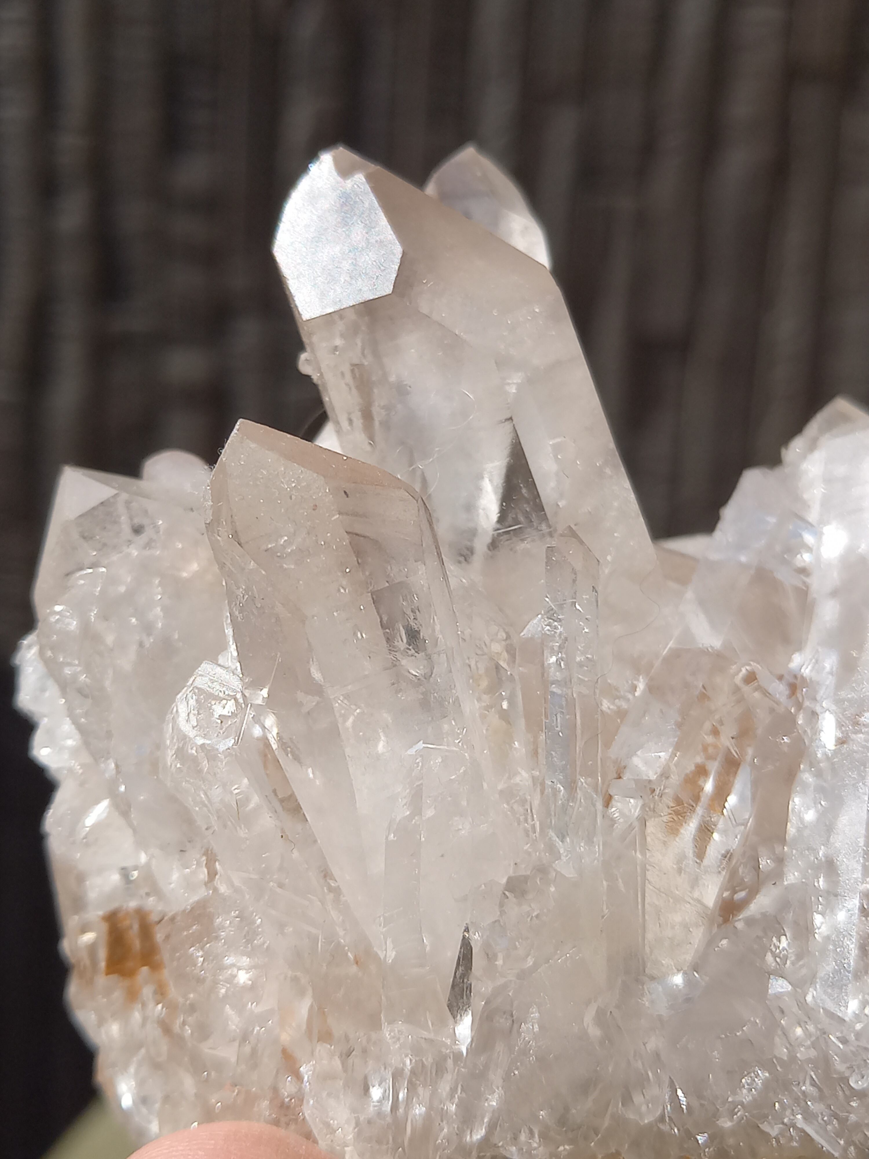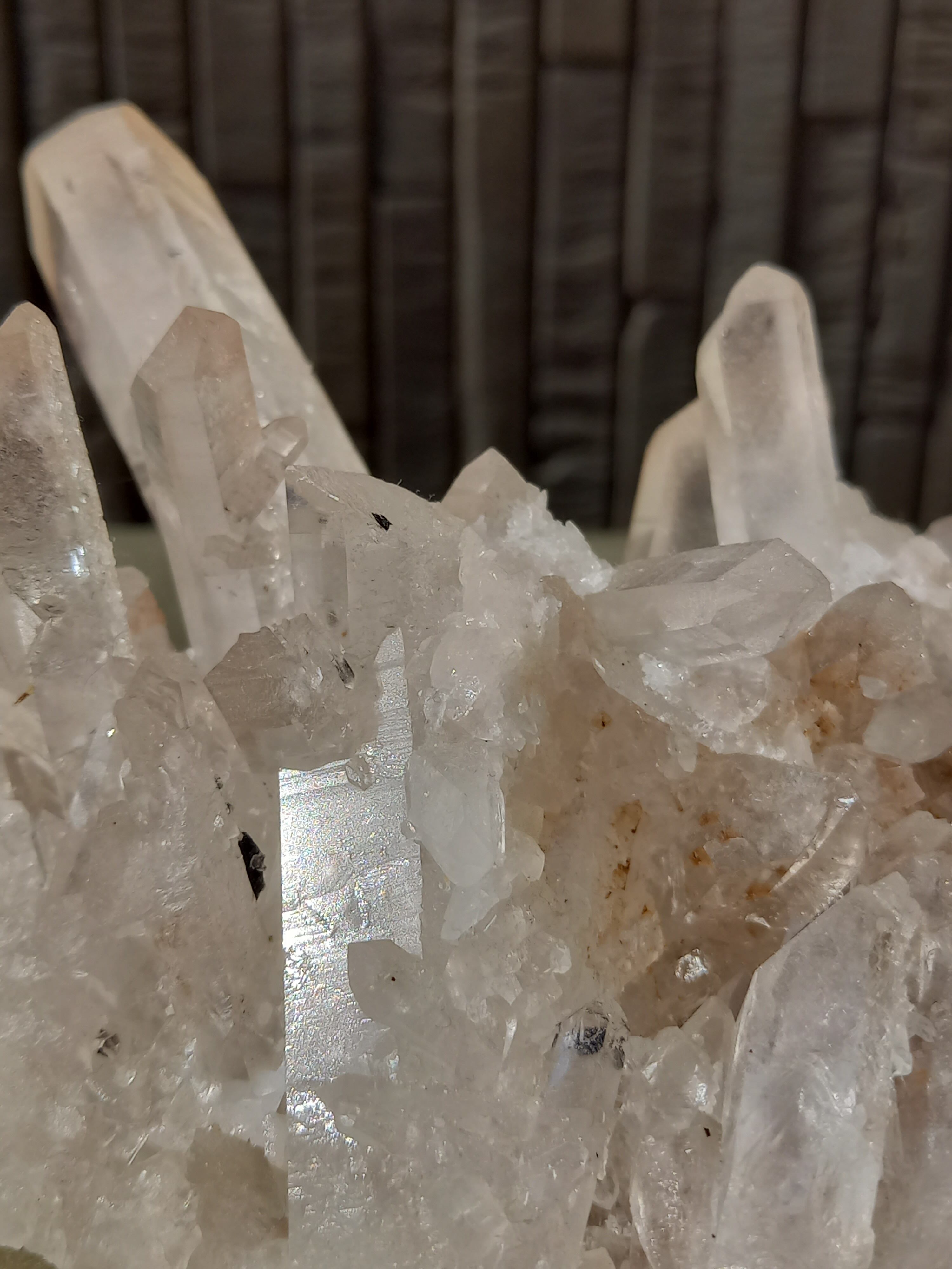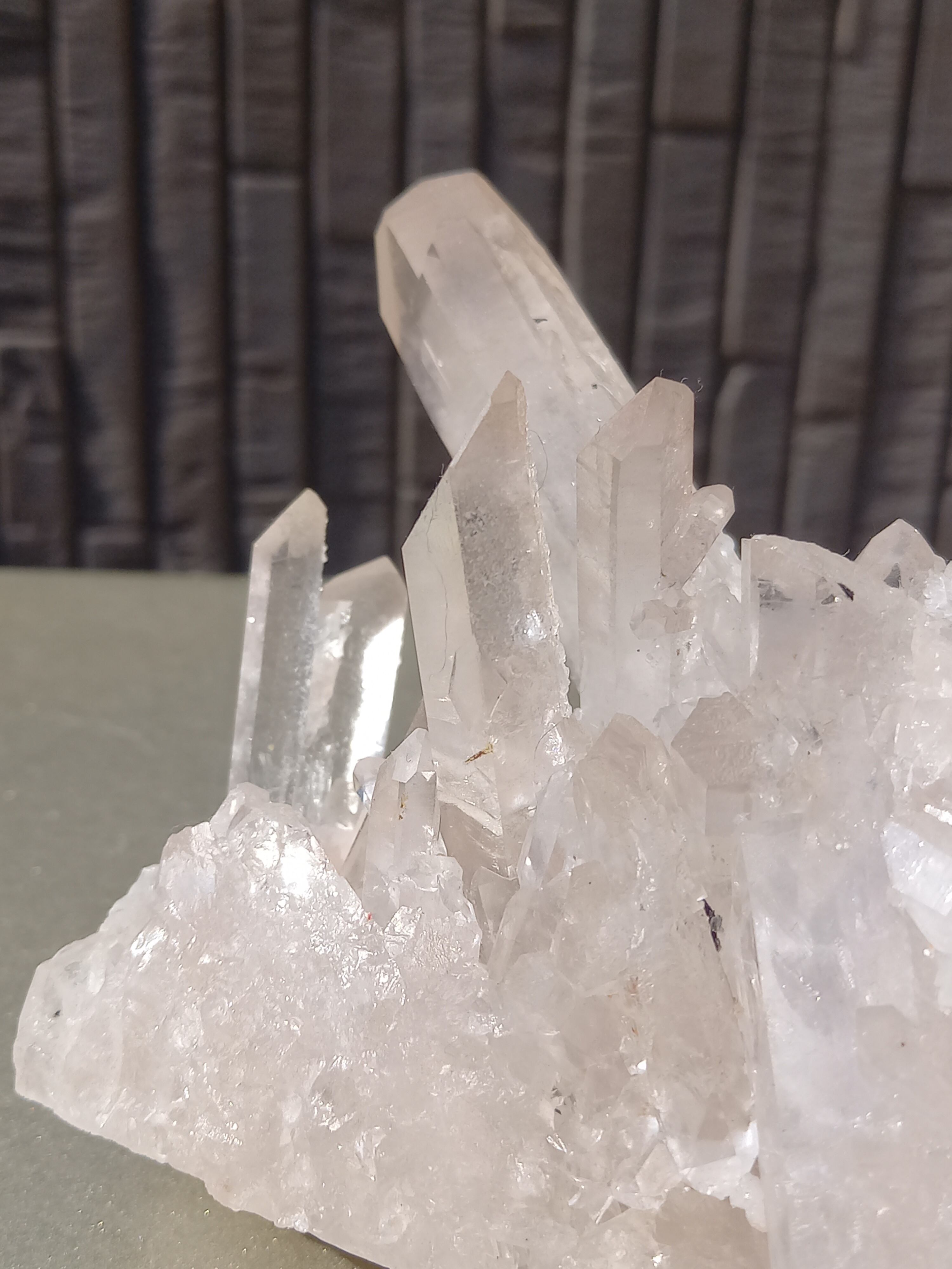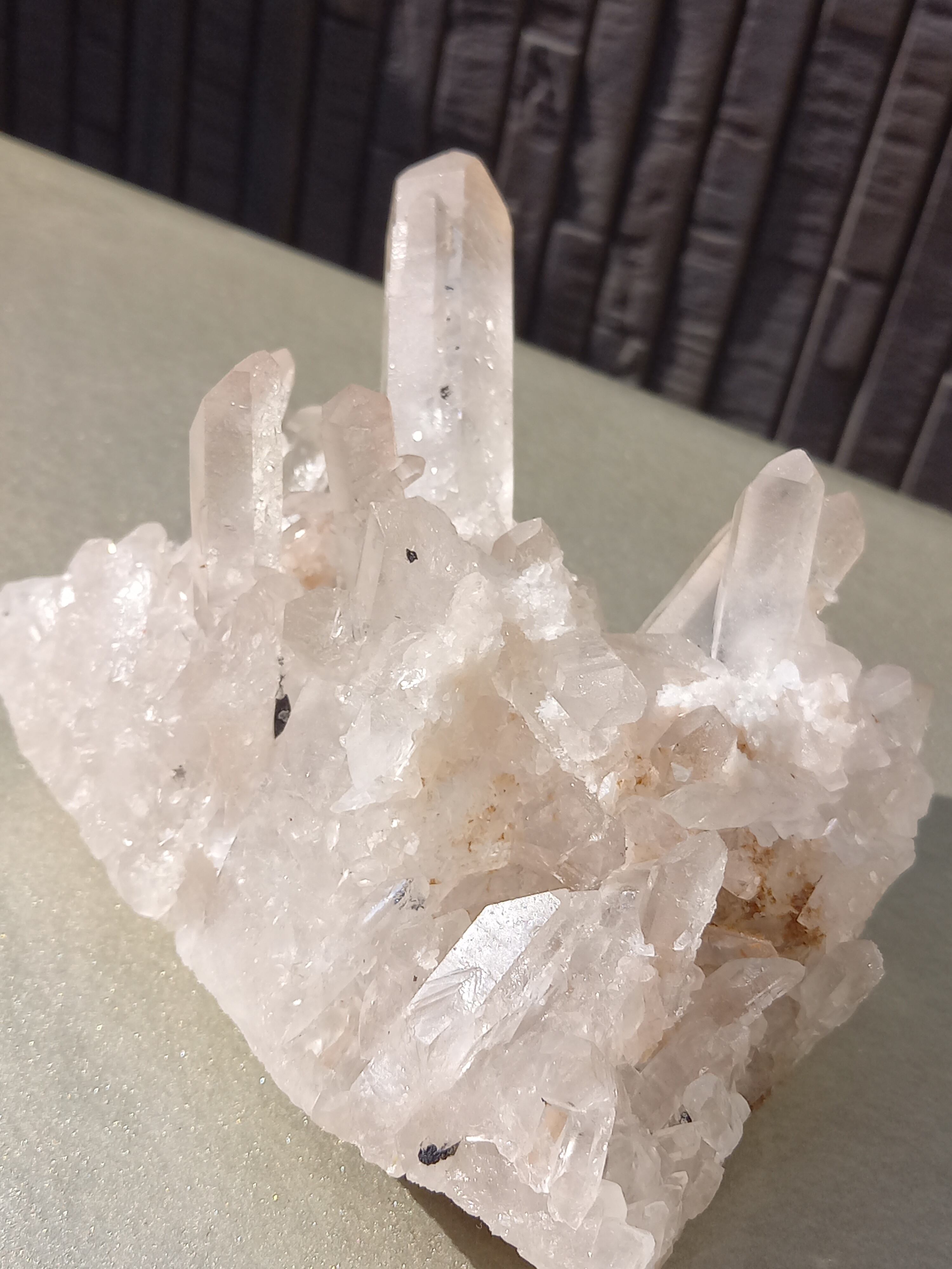 うっすらピンク色のクォーツが可愛らしく、それぞれのポイントの形も素晴らしいクラスターです。