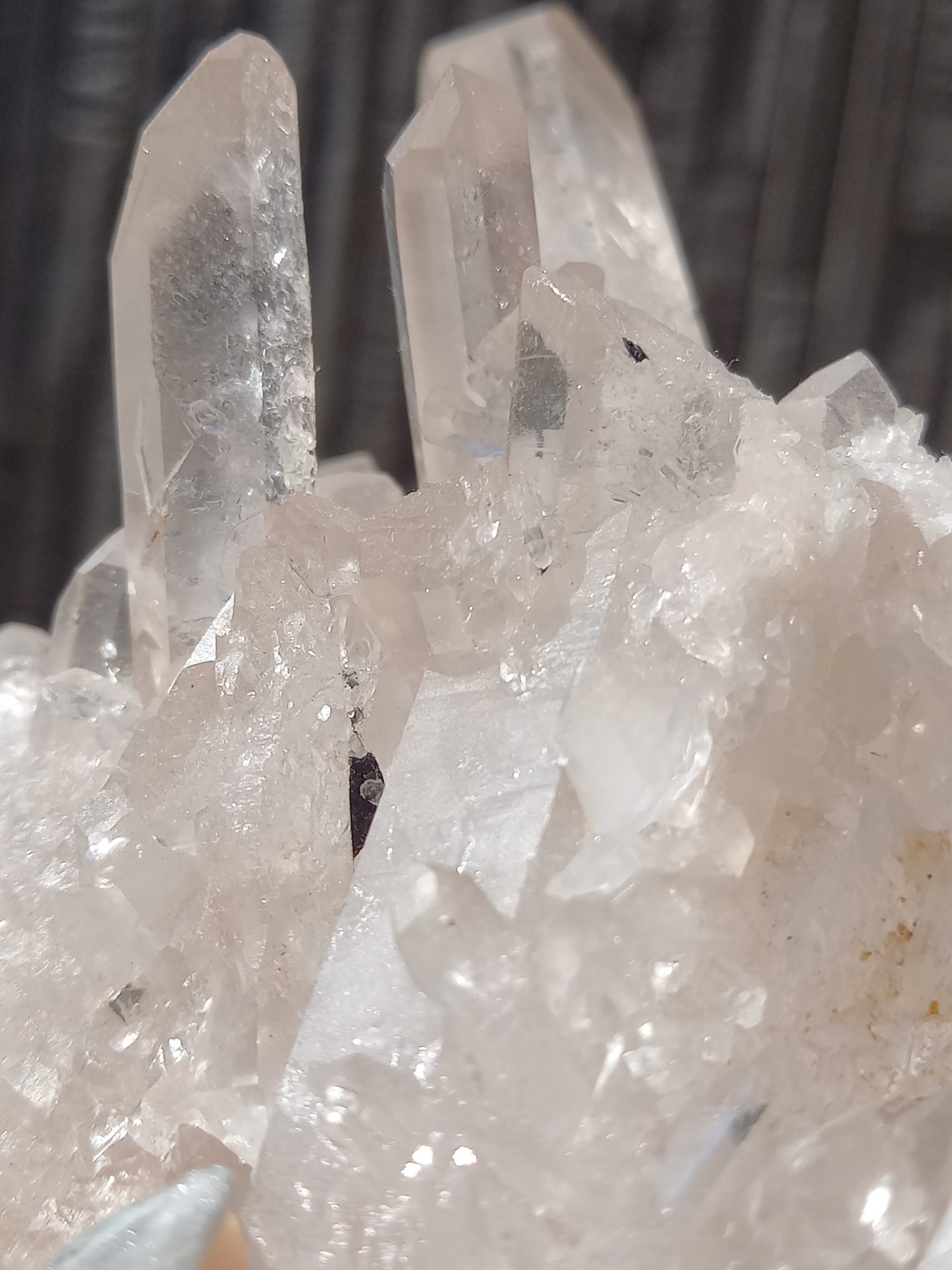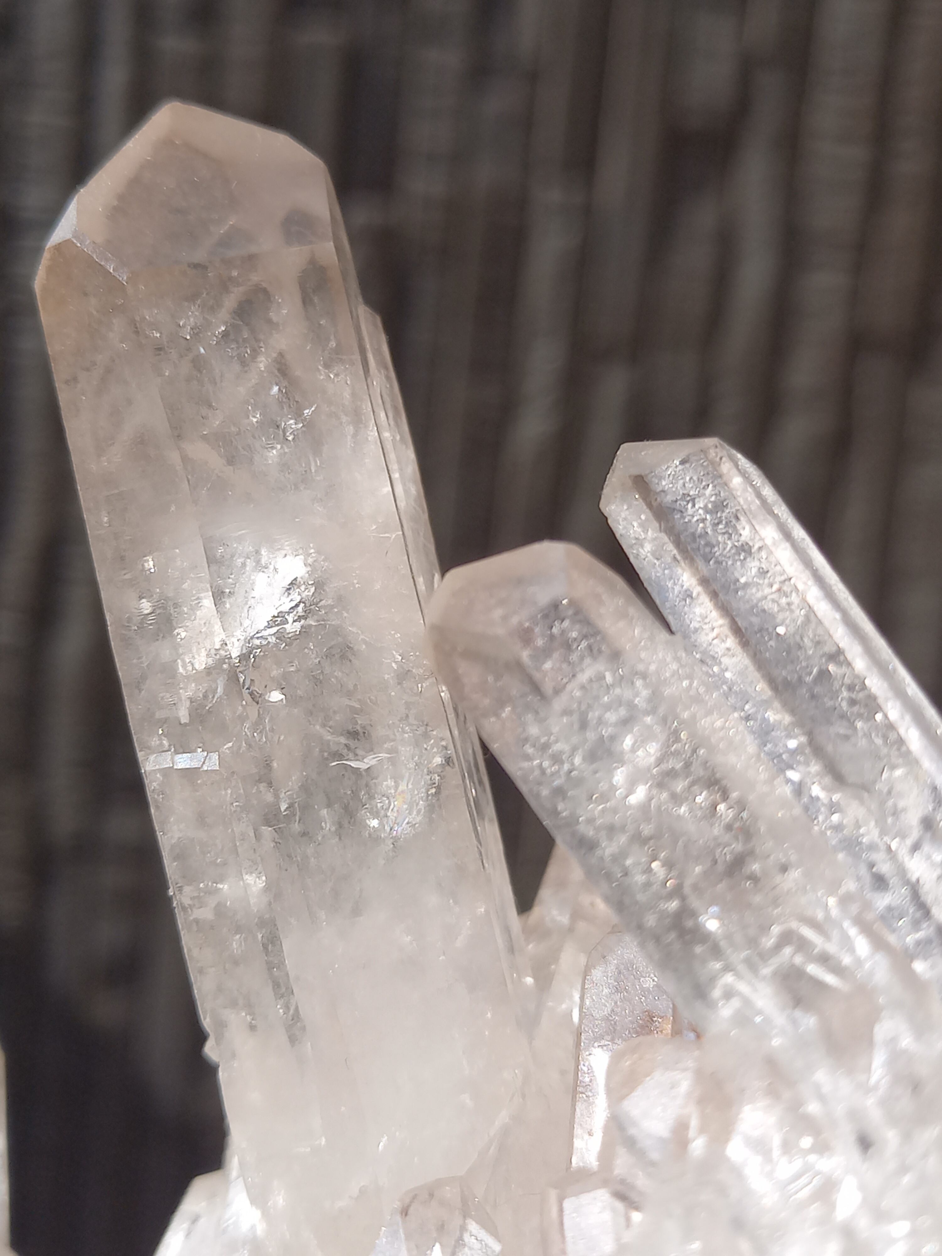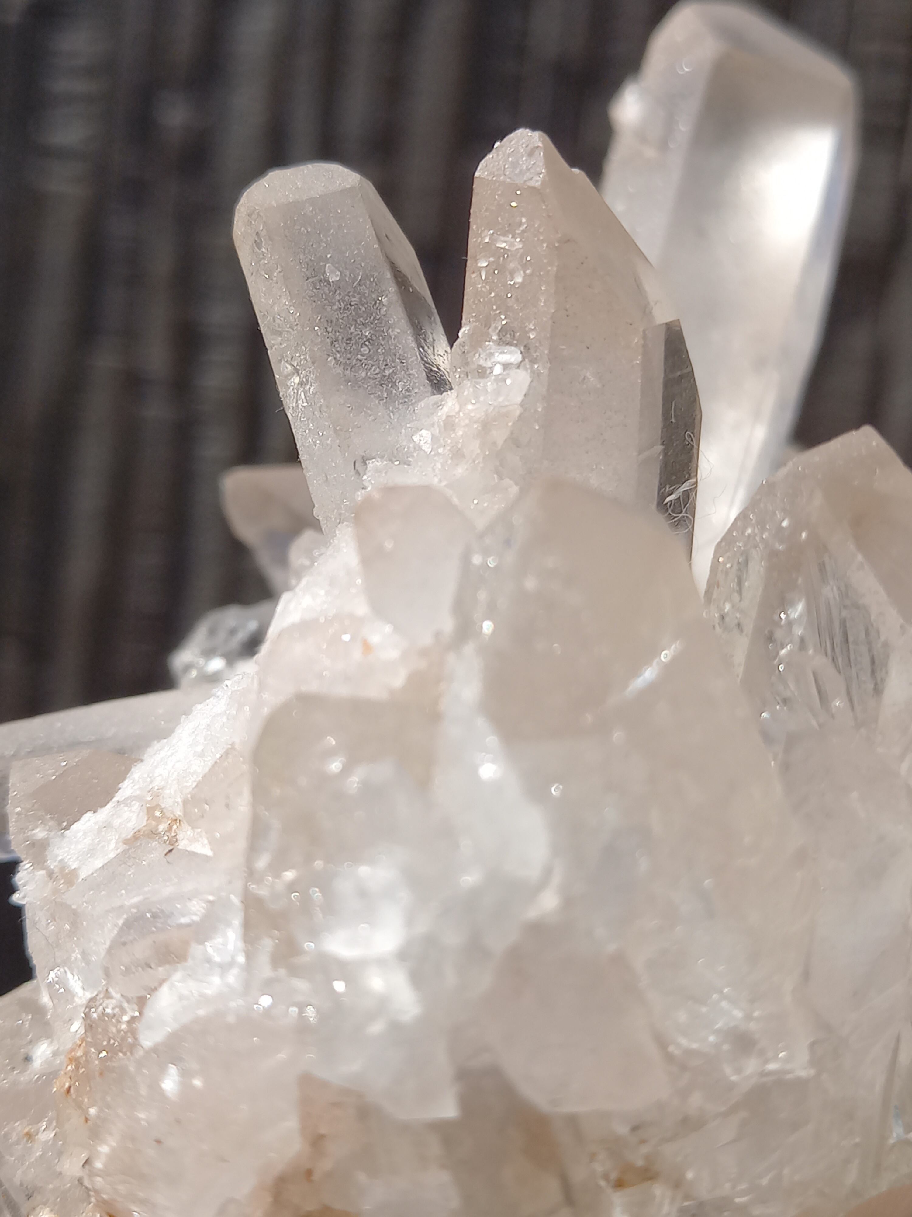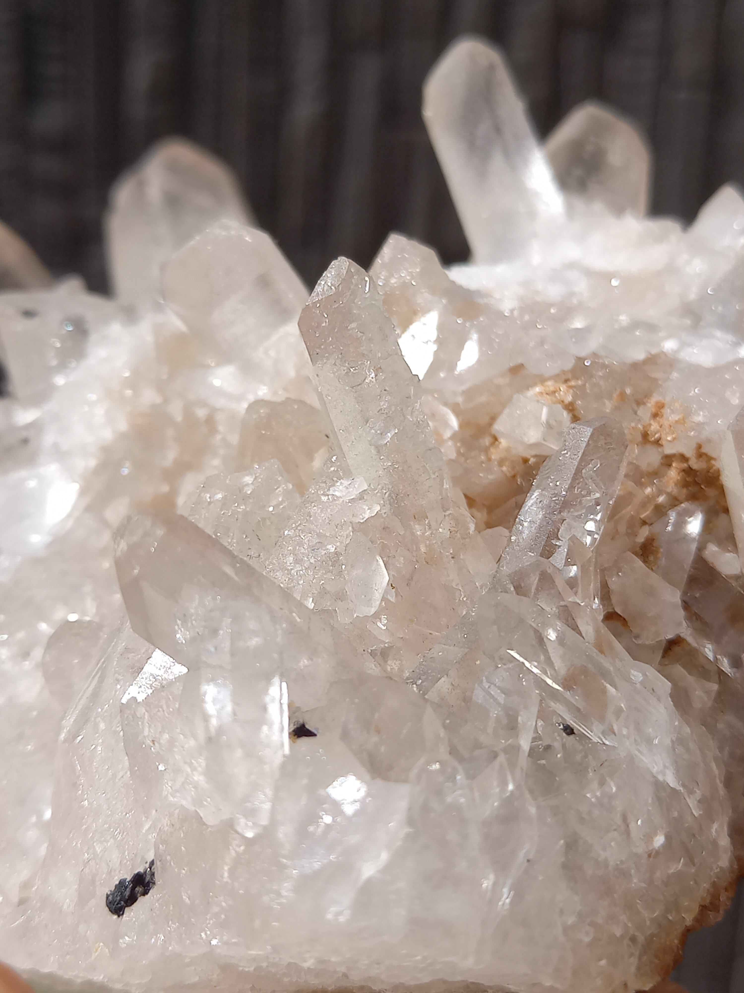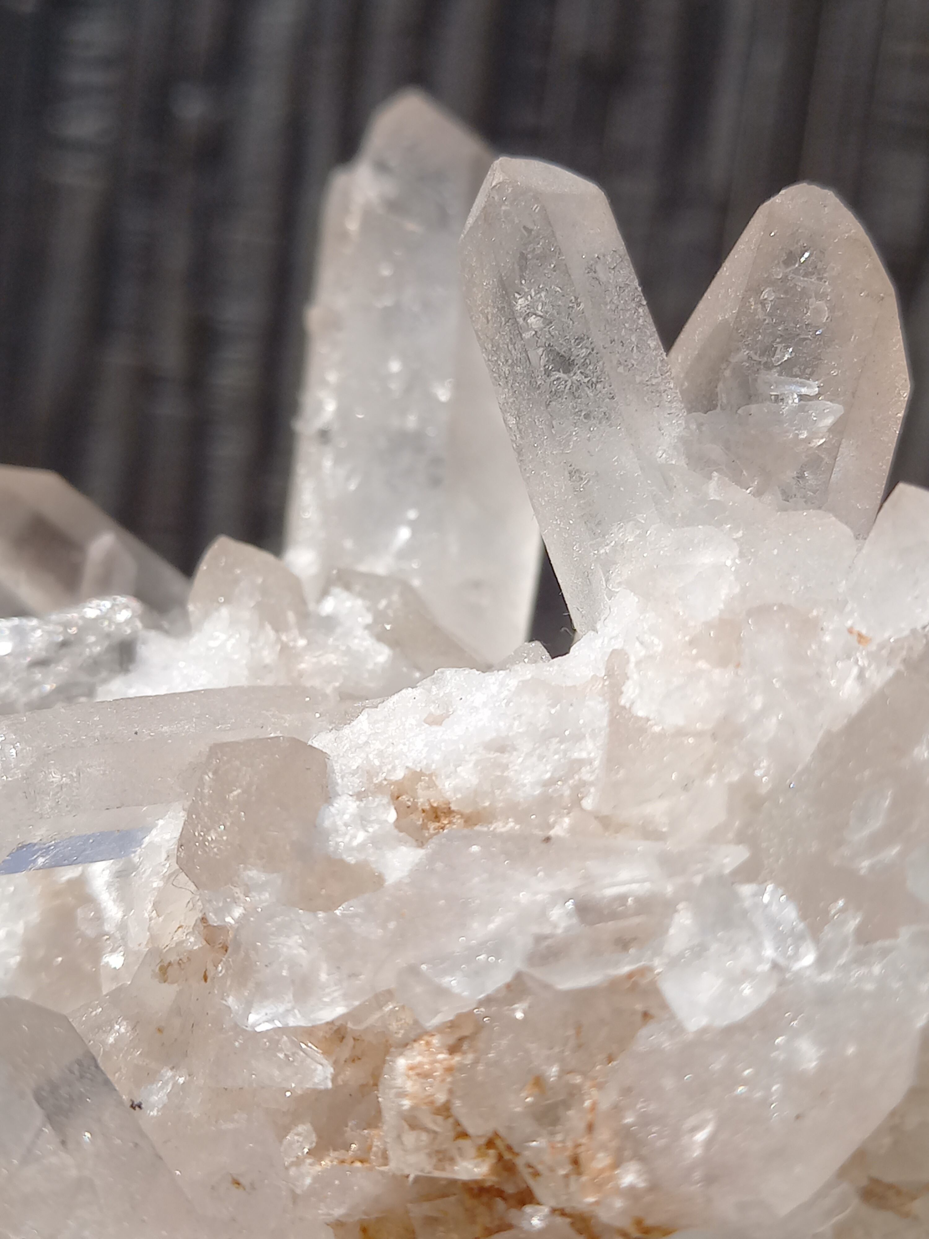うっすらピンク色のクォーツが可愛らしく、それぞれのポイントの形も素晴らしいクラスターです。