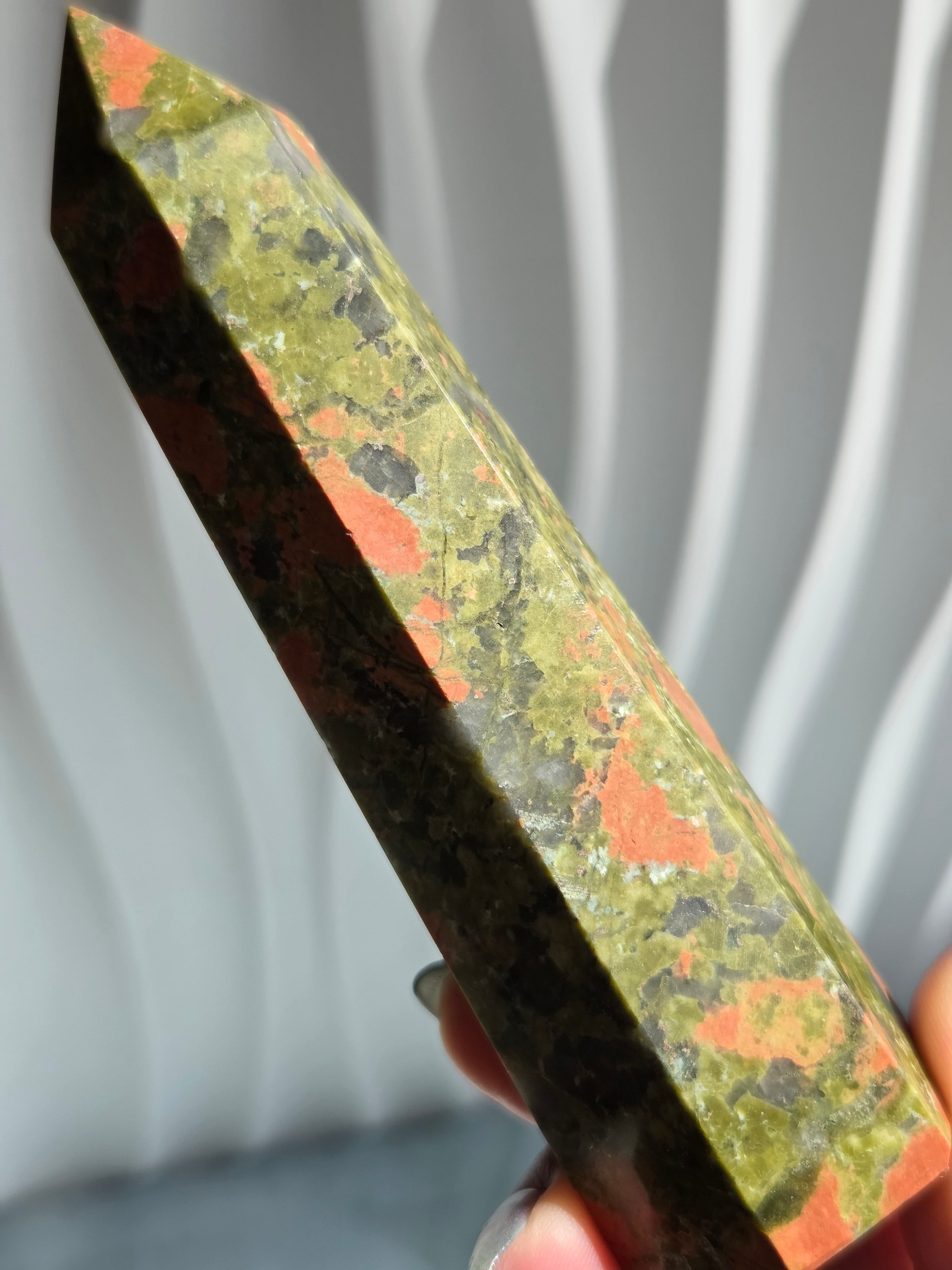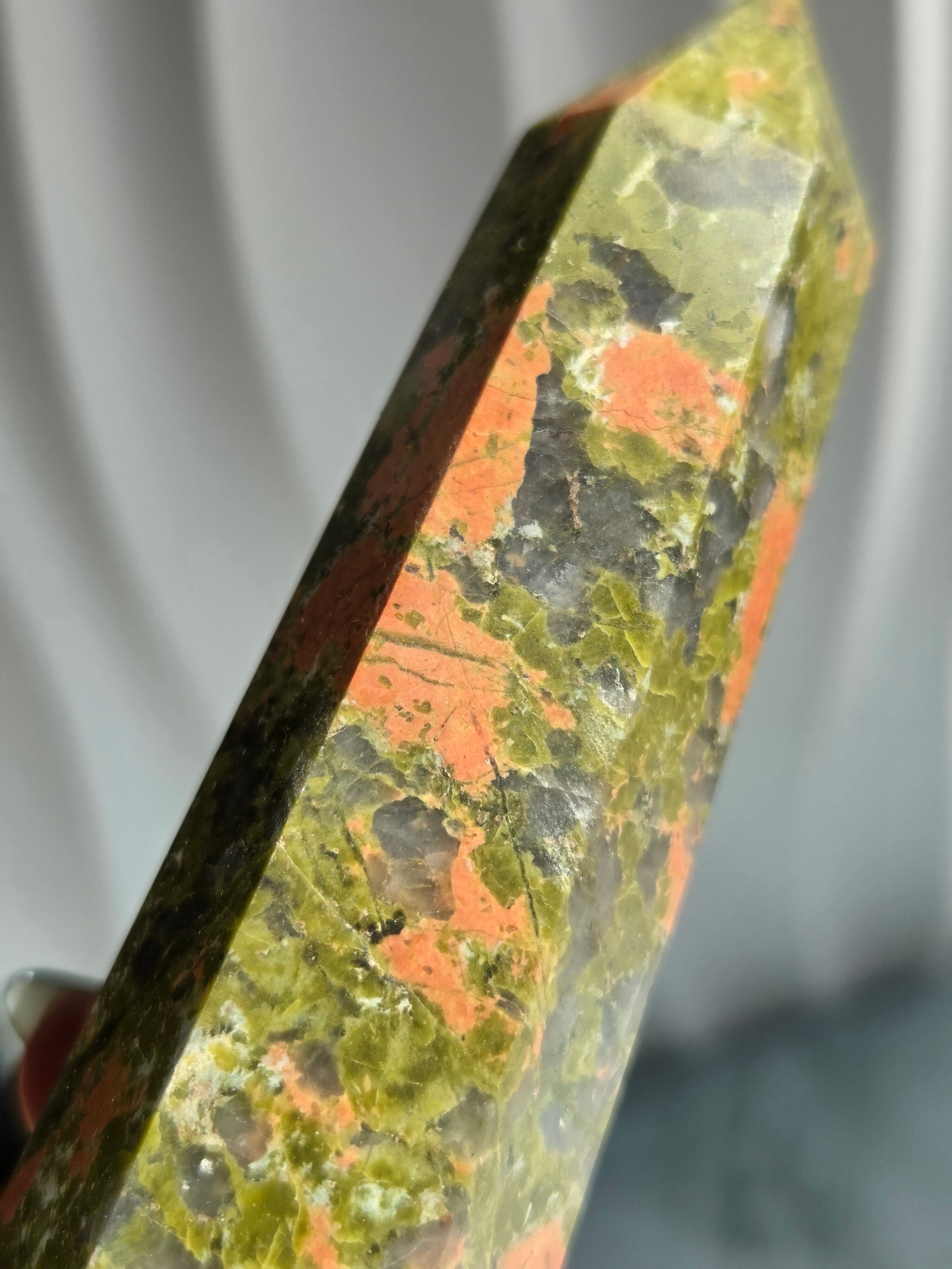 ユナカイトは、とてもリラックスパワーの高い石で、怒りや妬み、憎悪などのトラウマやネガティブな感情を取り去り、ポジティブな考え方ができるように導いてくれるでしょう。 ユナカイトの効果は、持ち主が悩みを抱えているとき、その原因を探り出して再生を促し、心に本来の明るさをもたらしてくれるといわれています。