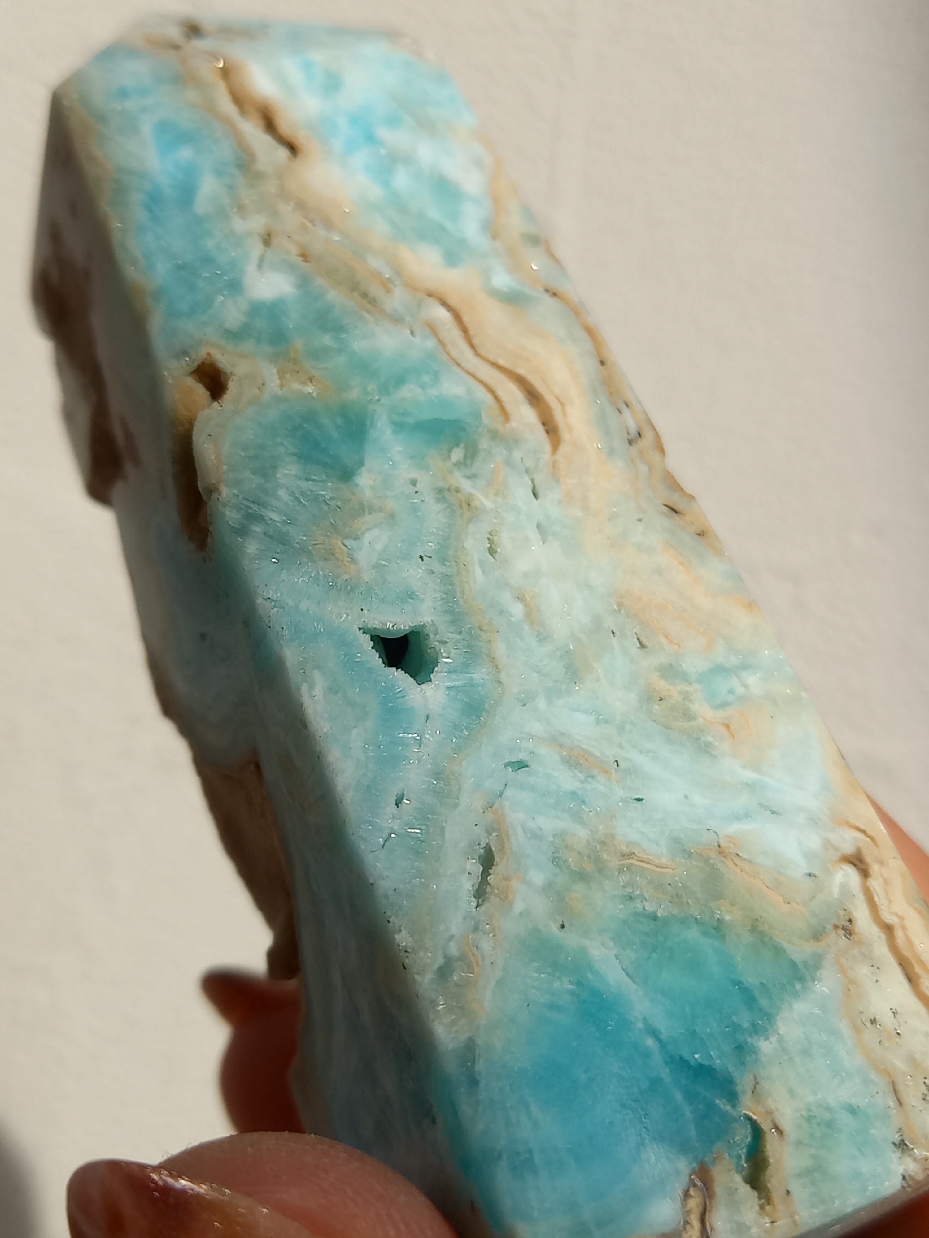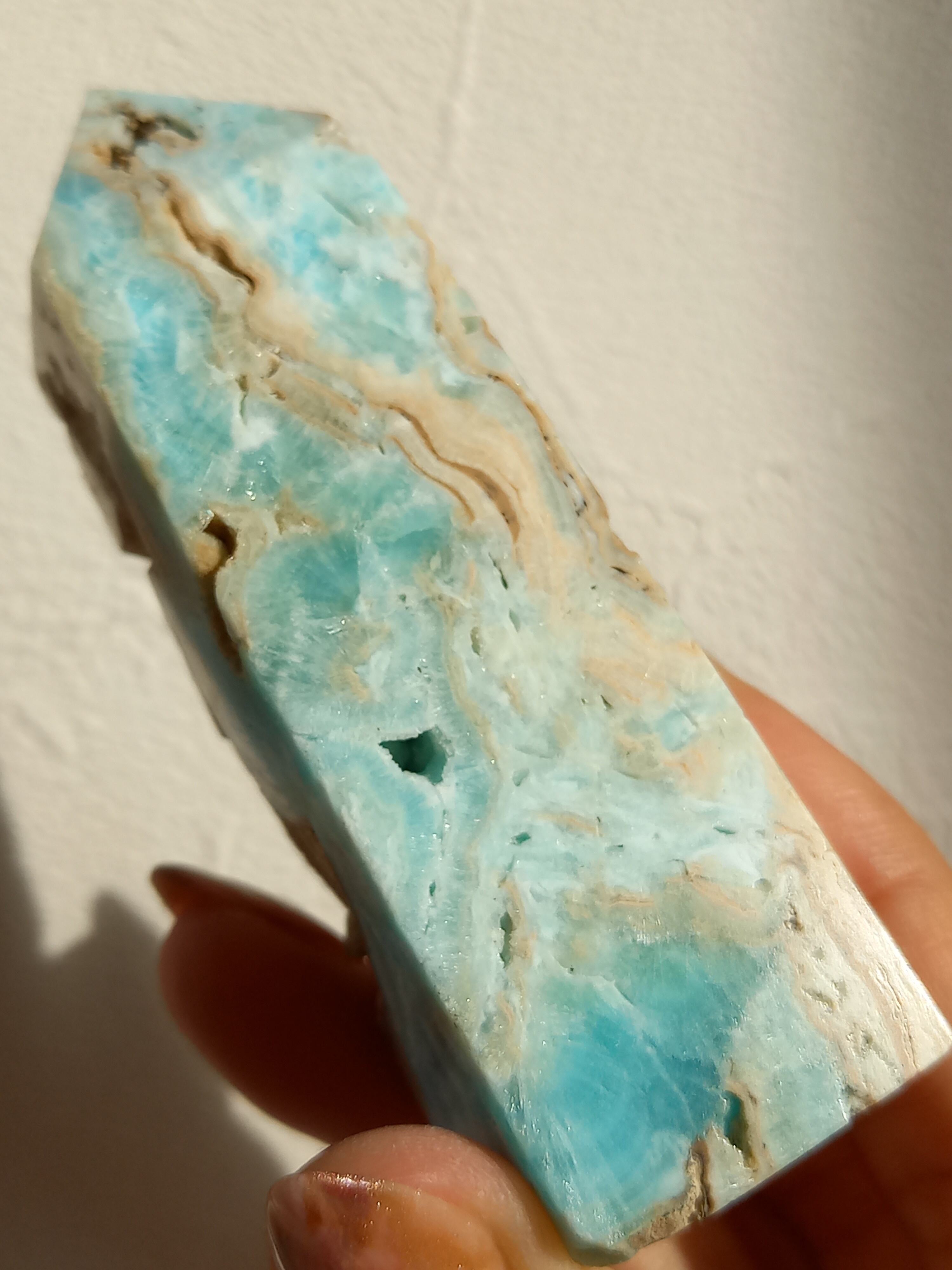 綺麗なブルーをしていて、その綺麗な淡いブルーは喉に作用する力があると言われています。それは第5チャクラへの影響という意味でもあります。第五チャクラはコミュニケーションや精神や肉体のコントロールをしてくれる場所です。