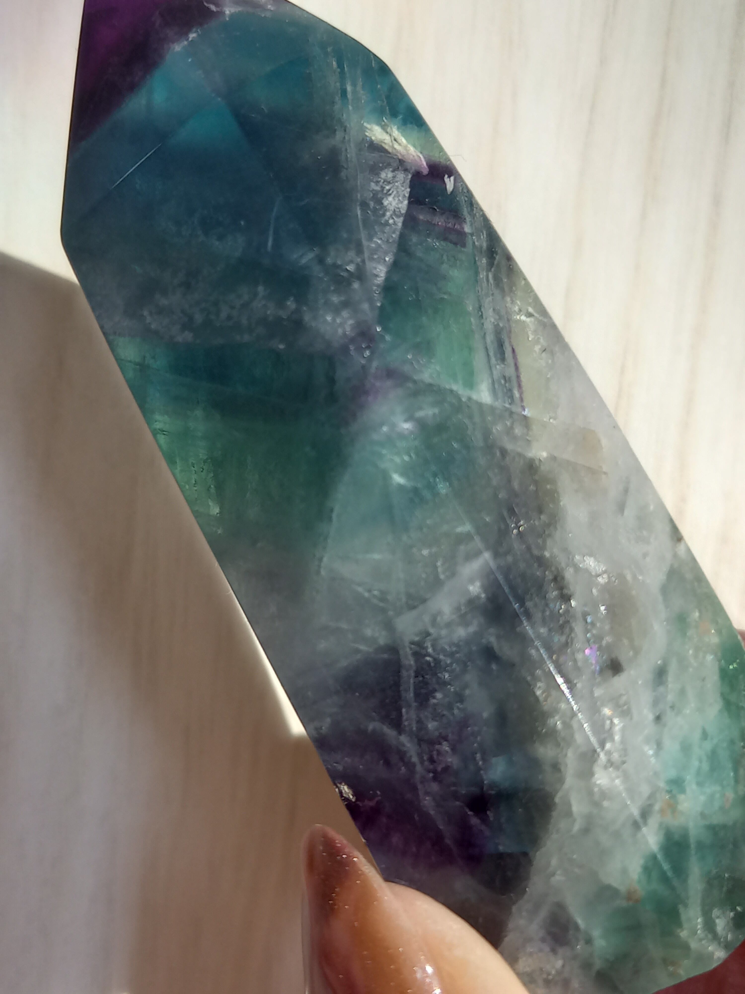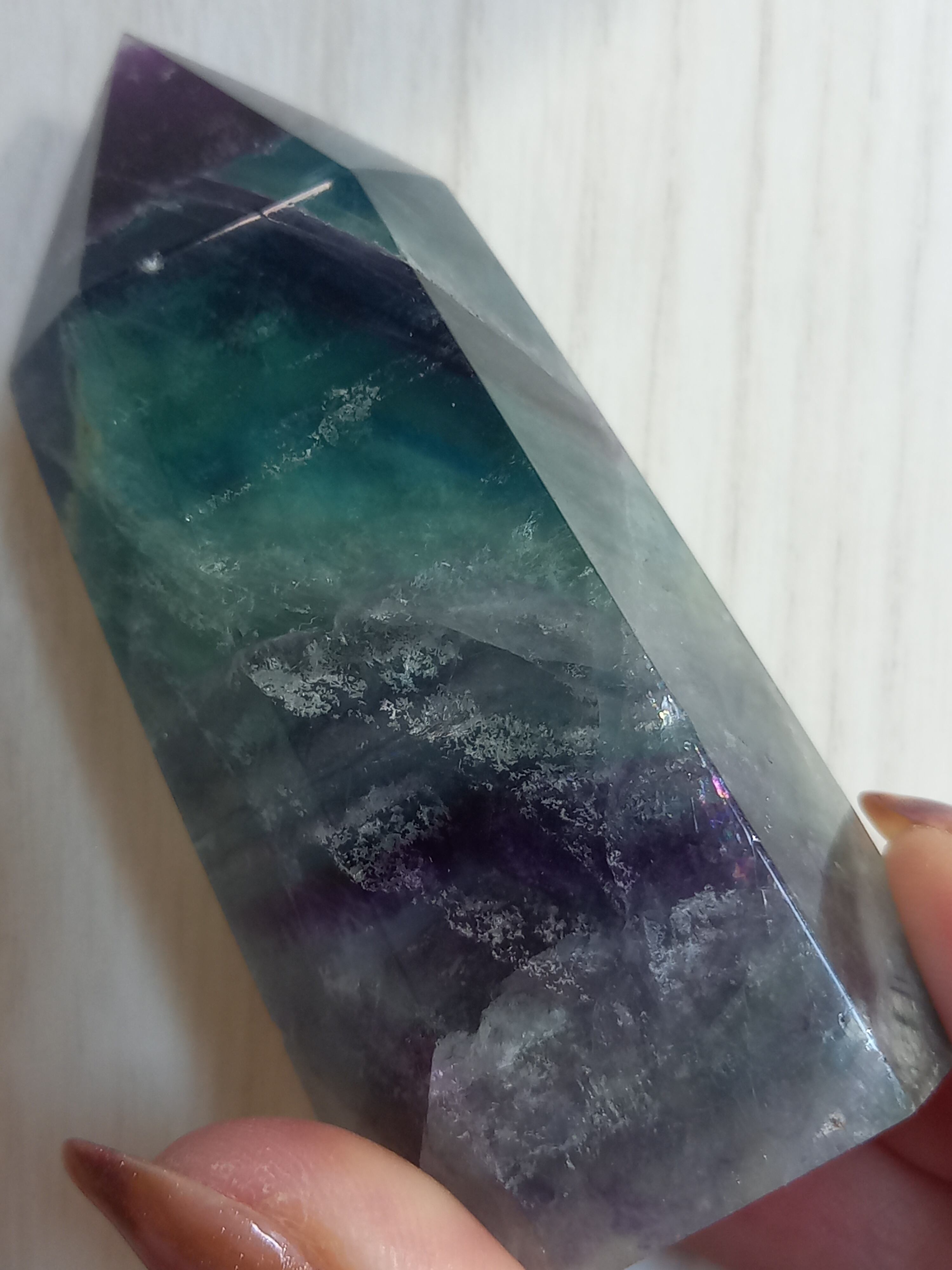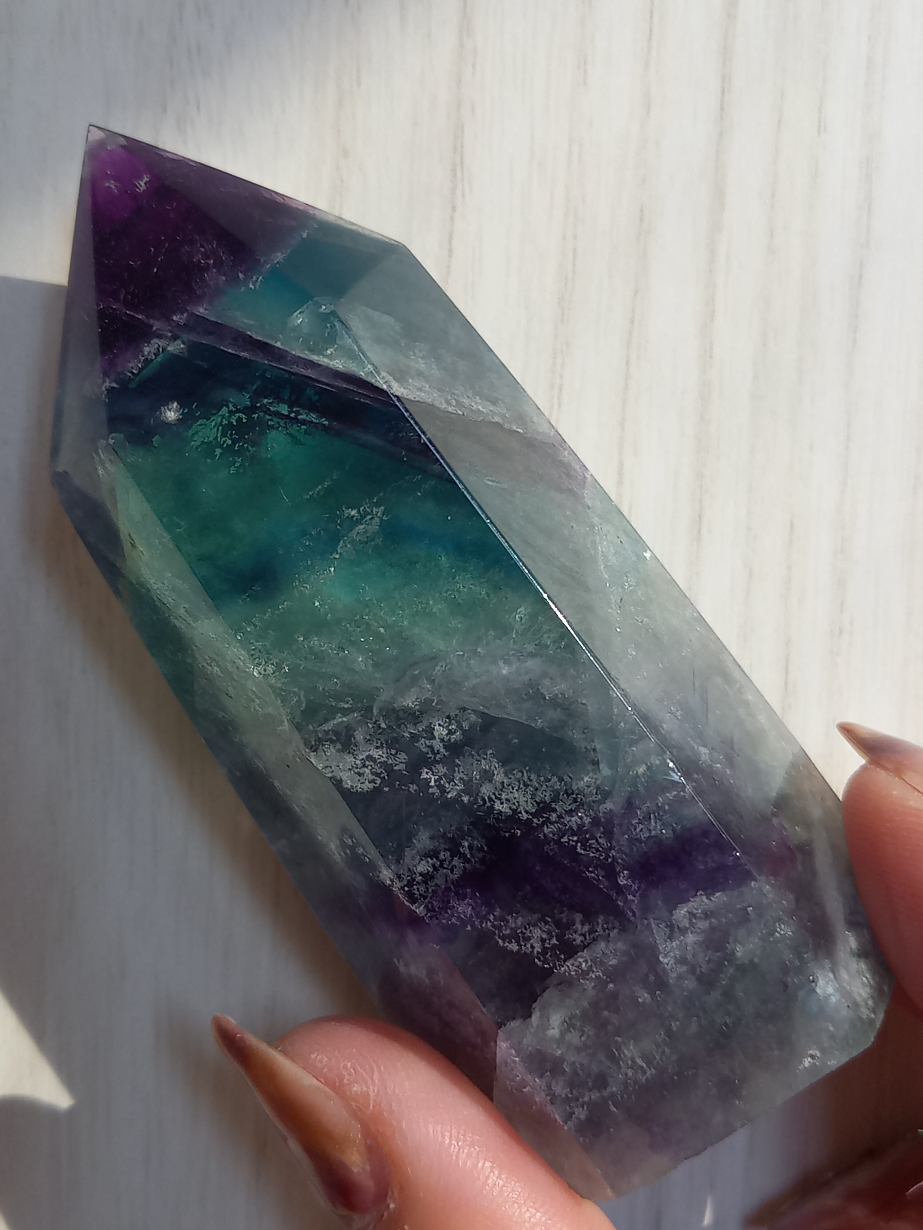 無色透明なフローライトは、水晶のように心身の浄化や邪気払いなど、お守りとしての効果が期待できます。