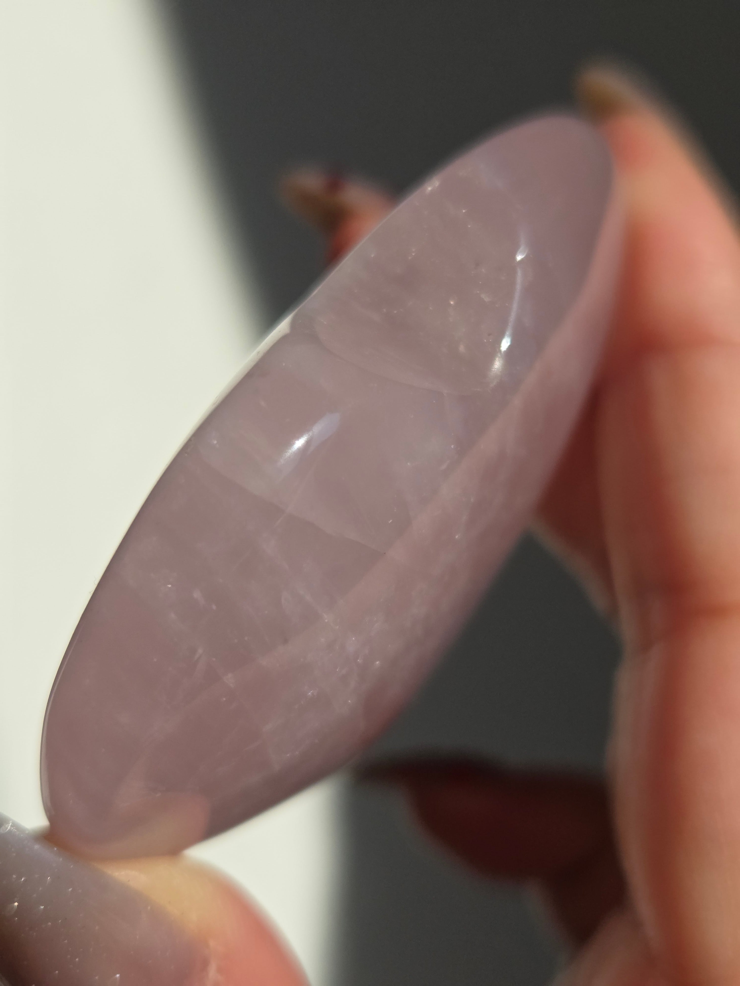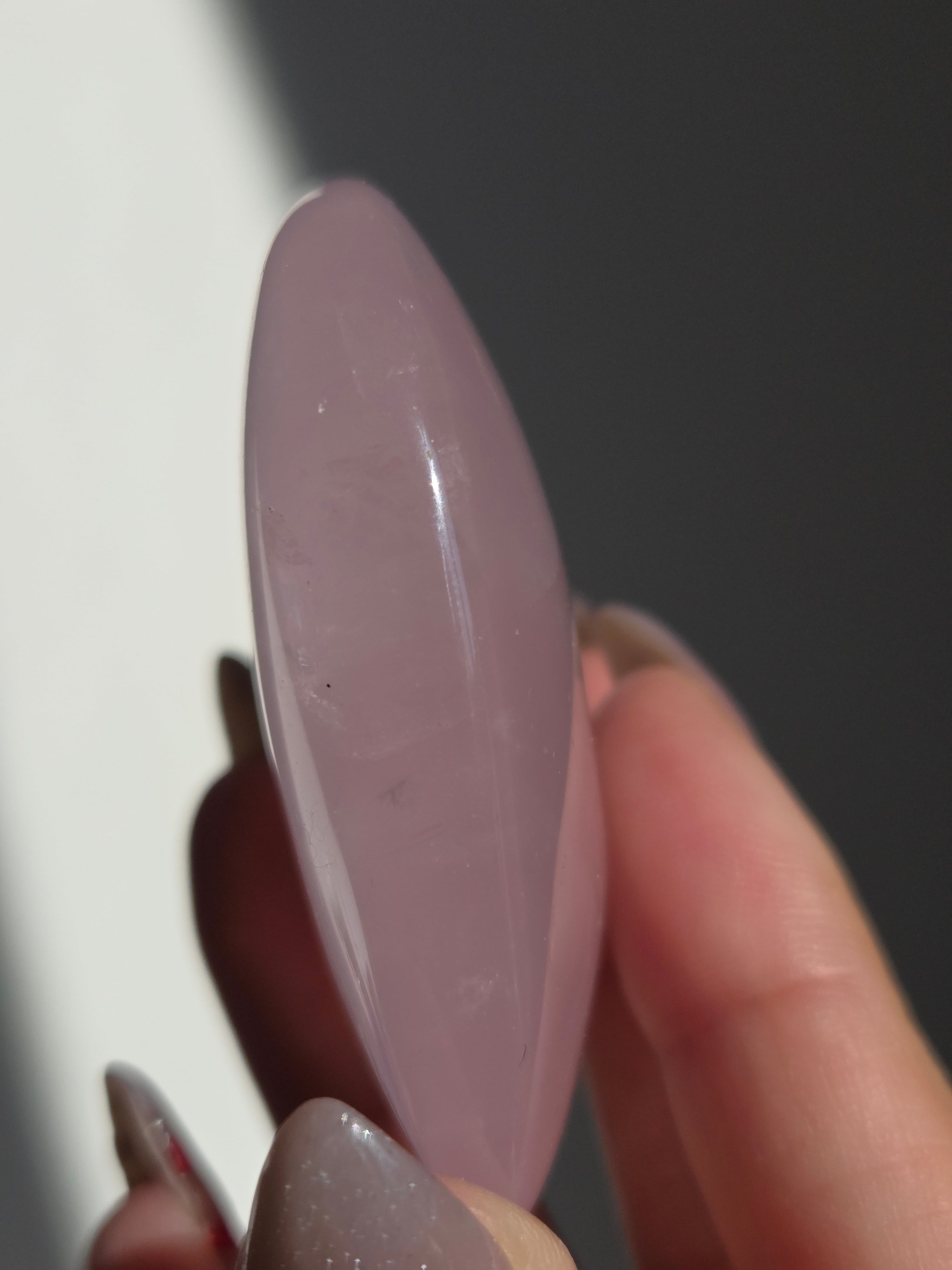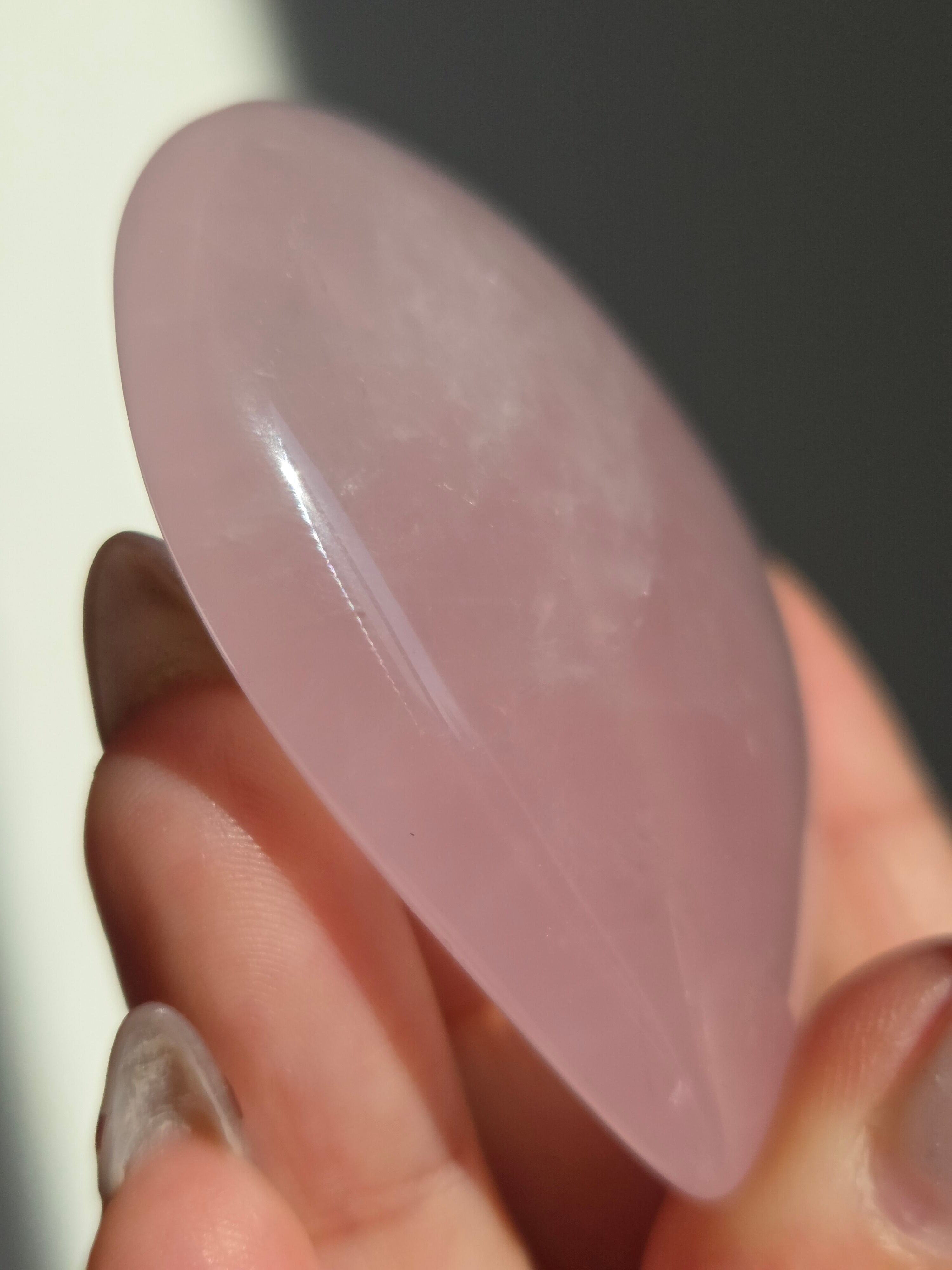 マダガスカル産ローズクォーツハートパームです。