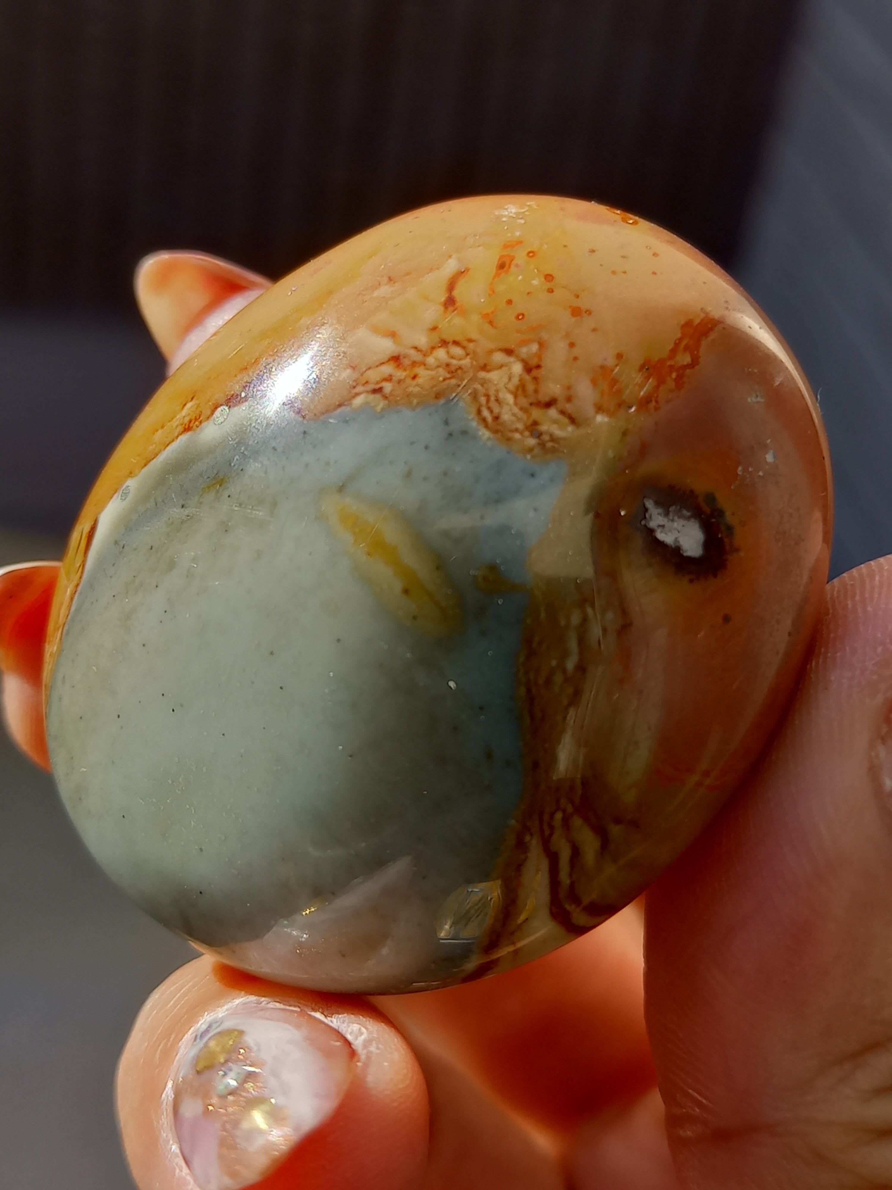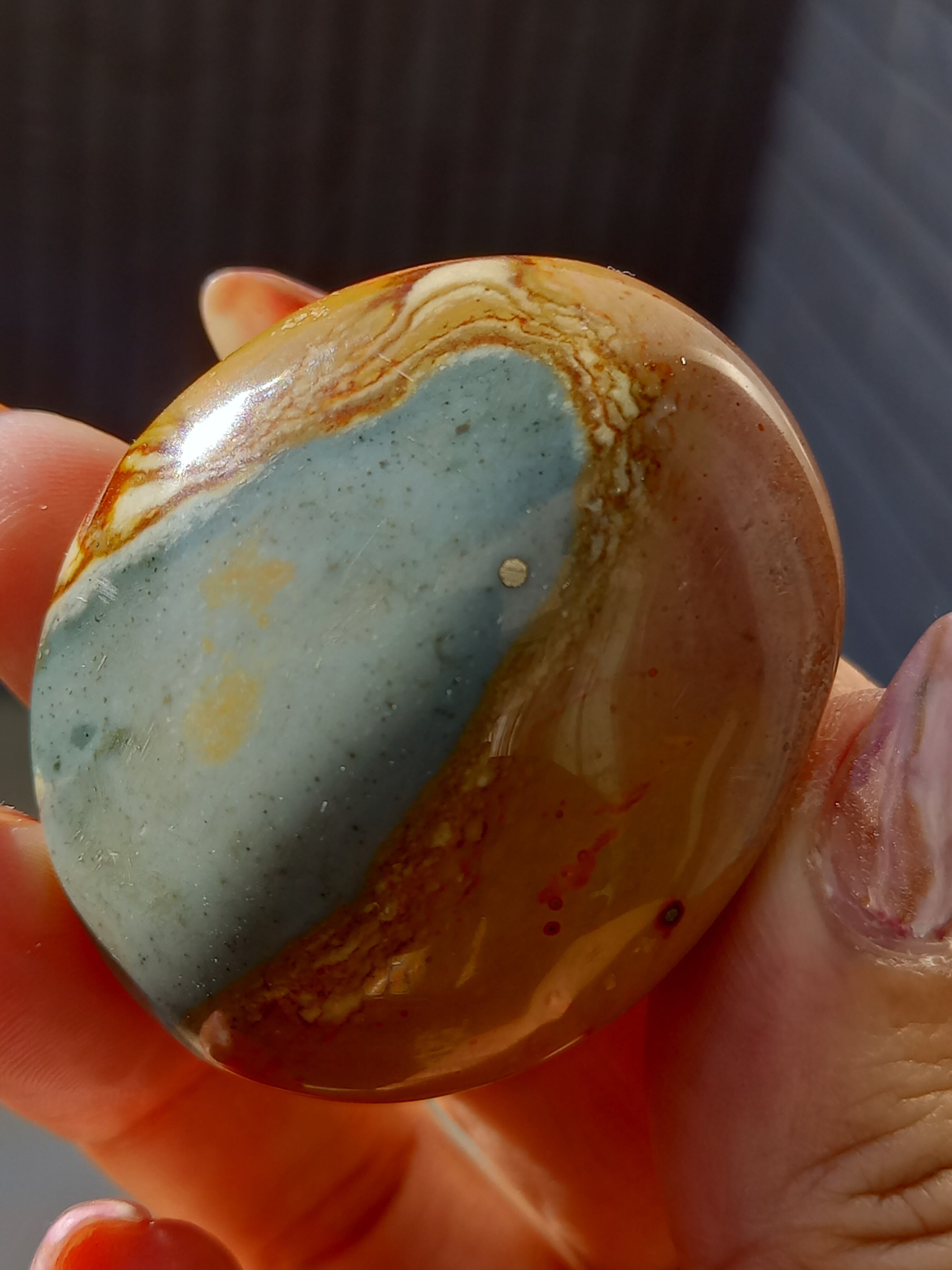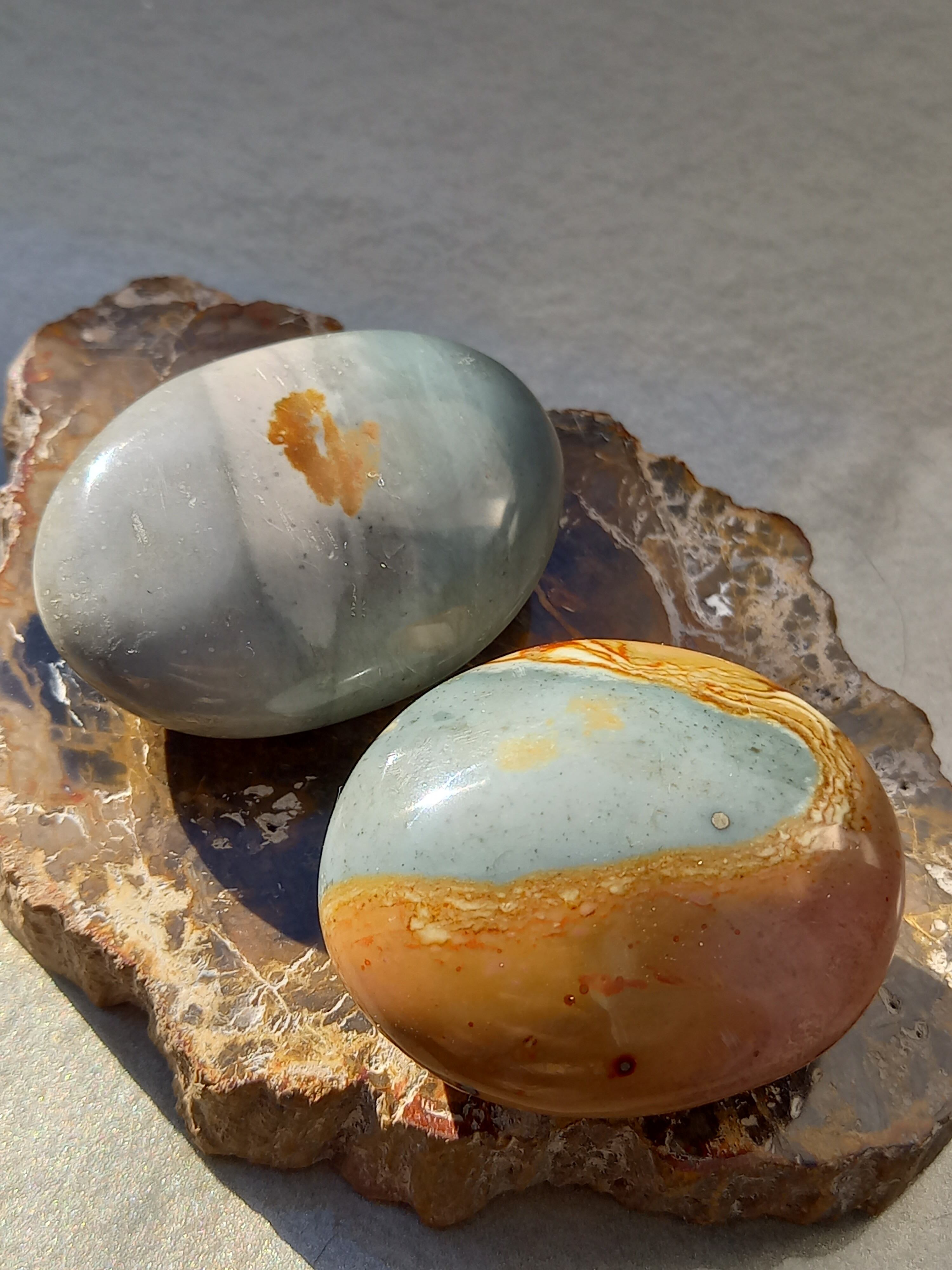 ポリクロームジャスパーは一つの石でも見る方向によって模様が変わる、芸術的な見た目をしています。
