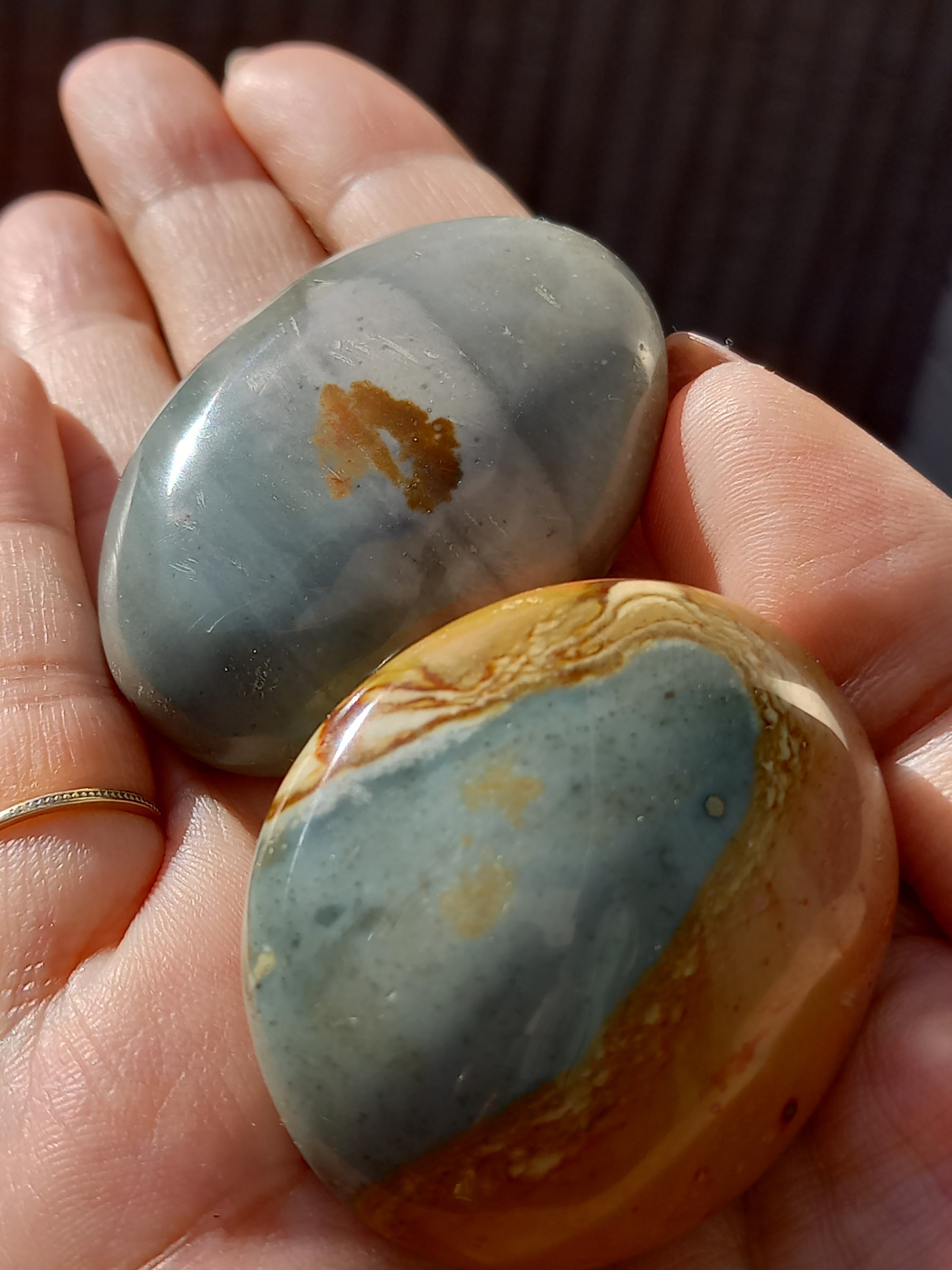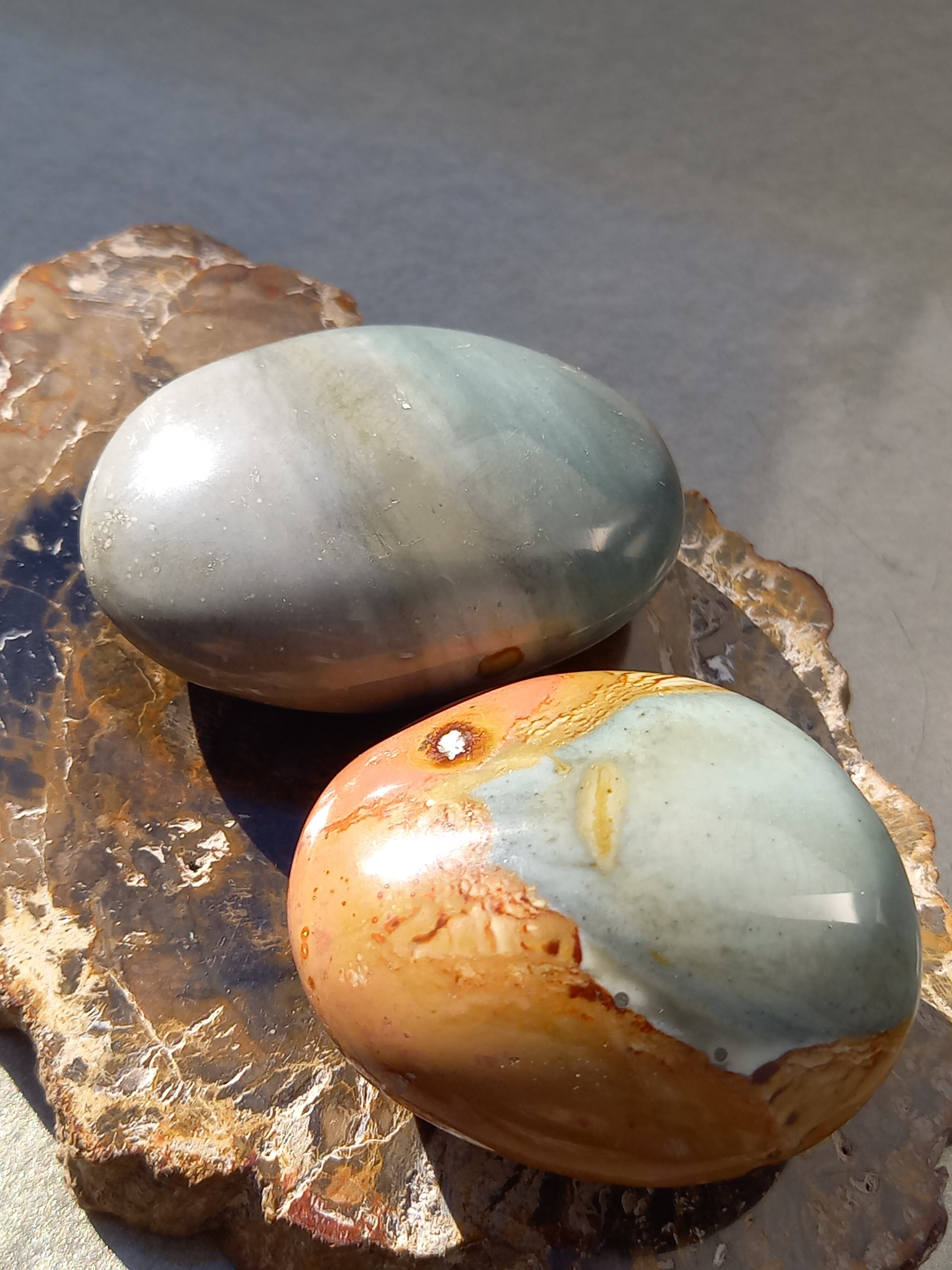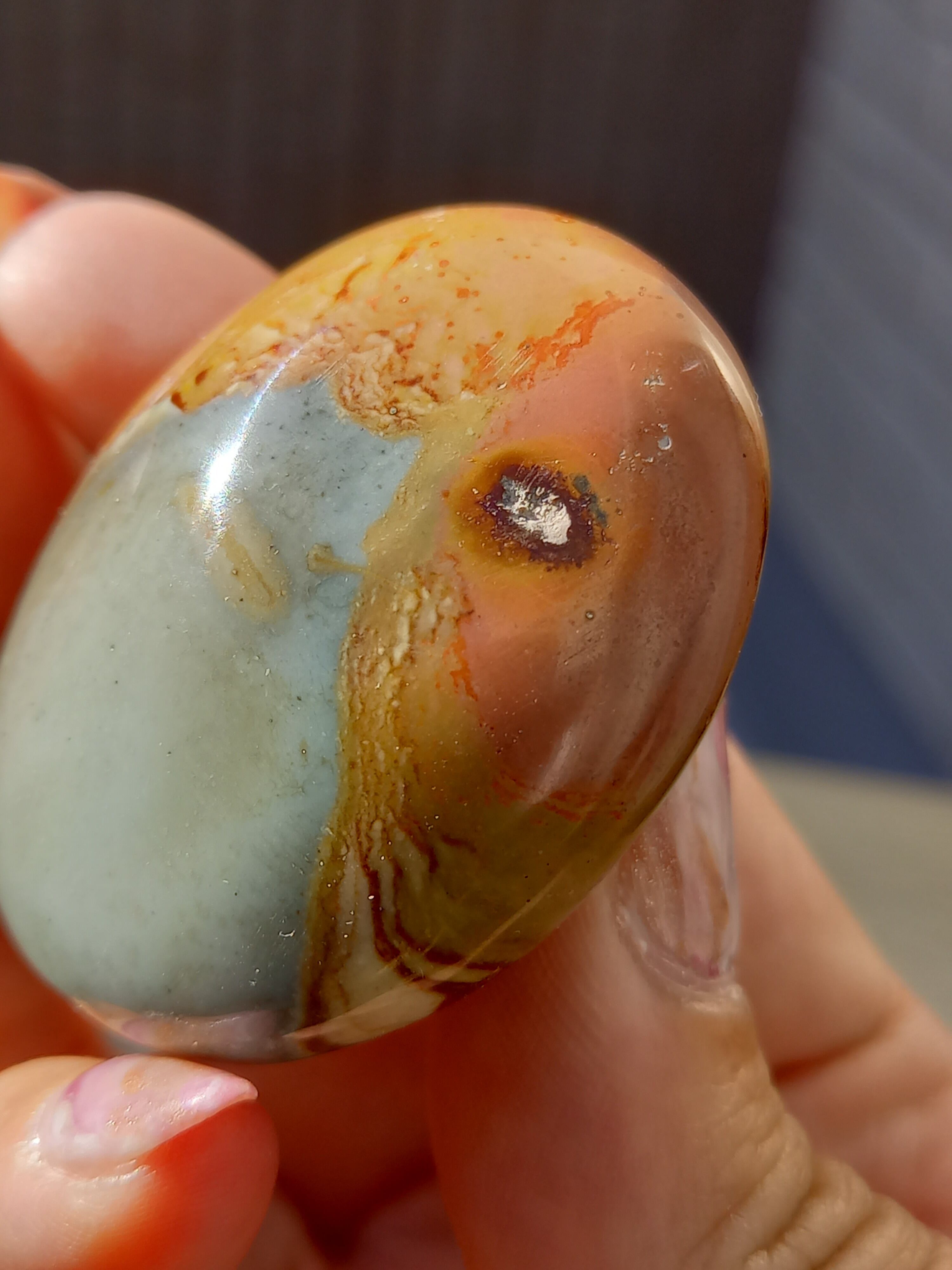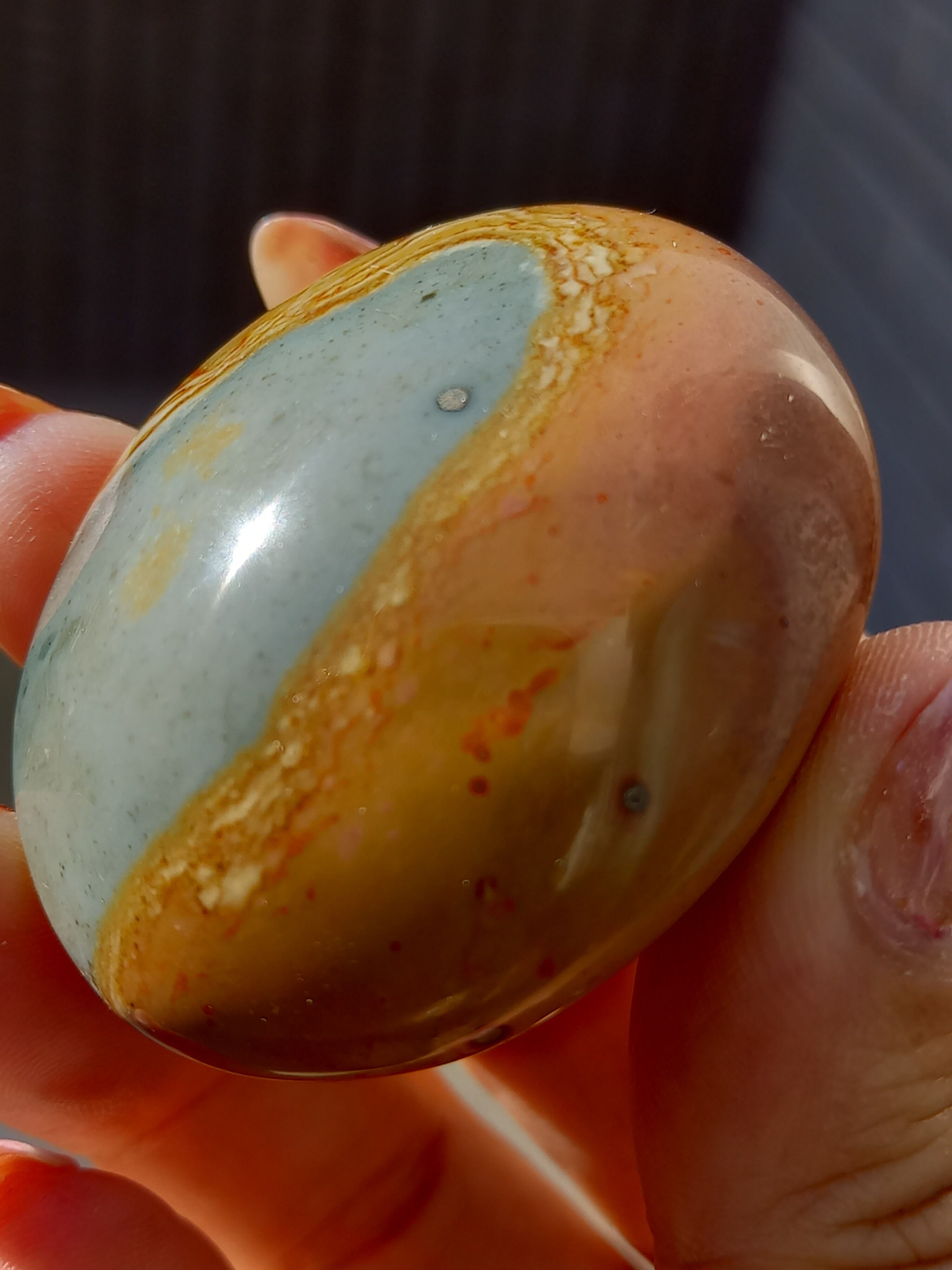 ポリクロームジャスパーは一つの石でも見る方向によって模様が変わる、芸術的な見た目をしています。