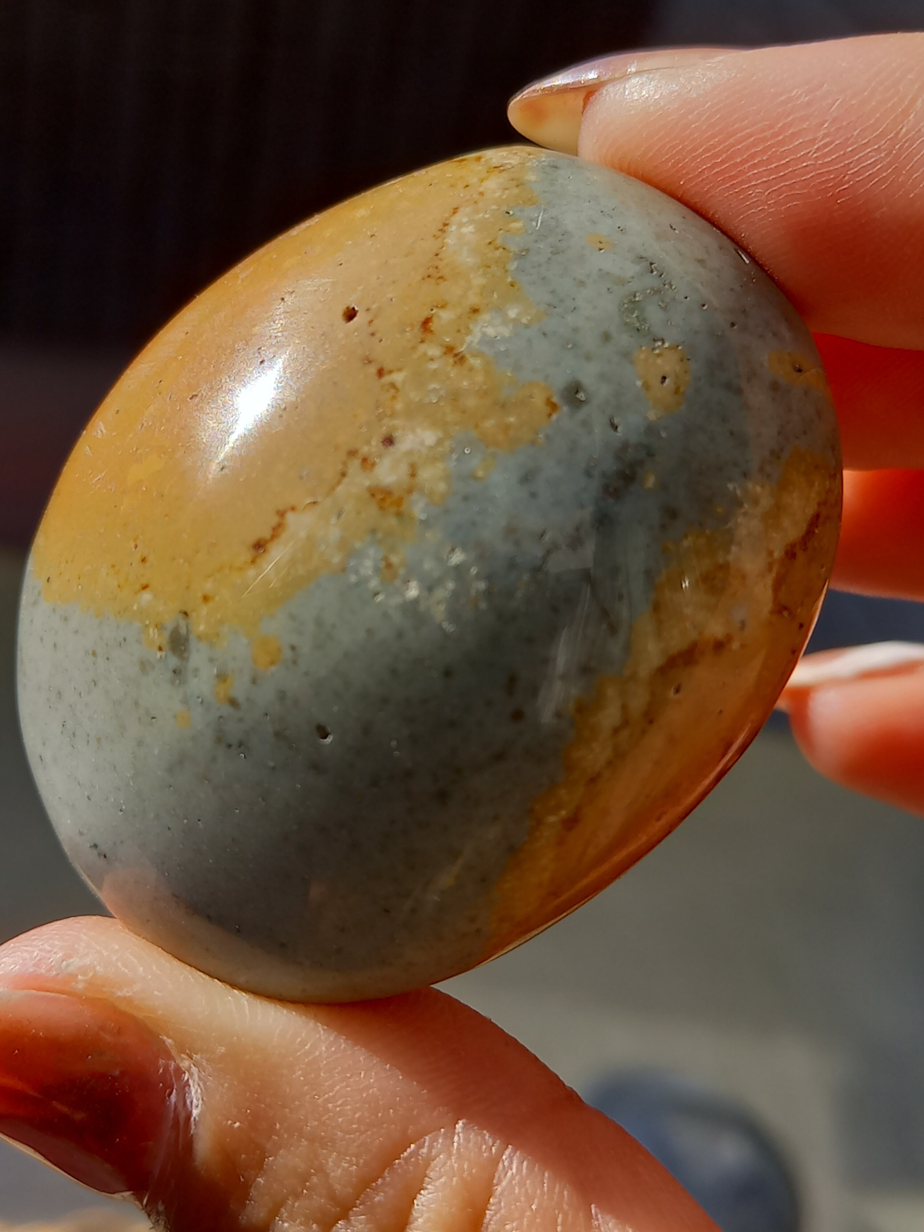 ポリクロームジャスパーは一つの石でも見る方向によって模様が変わる、芸術的な見た目をしています。