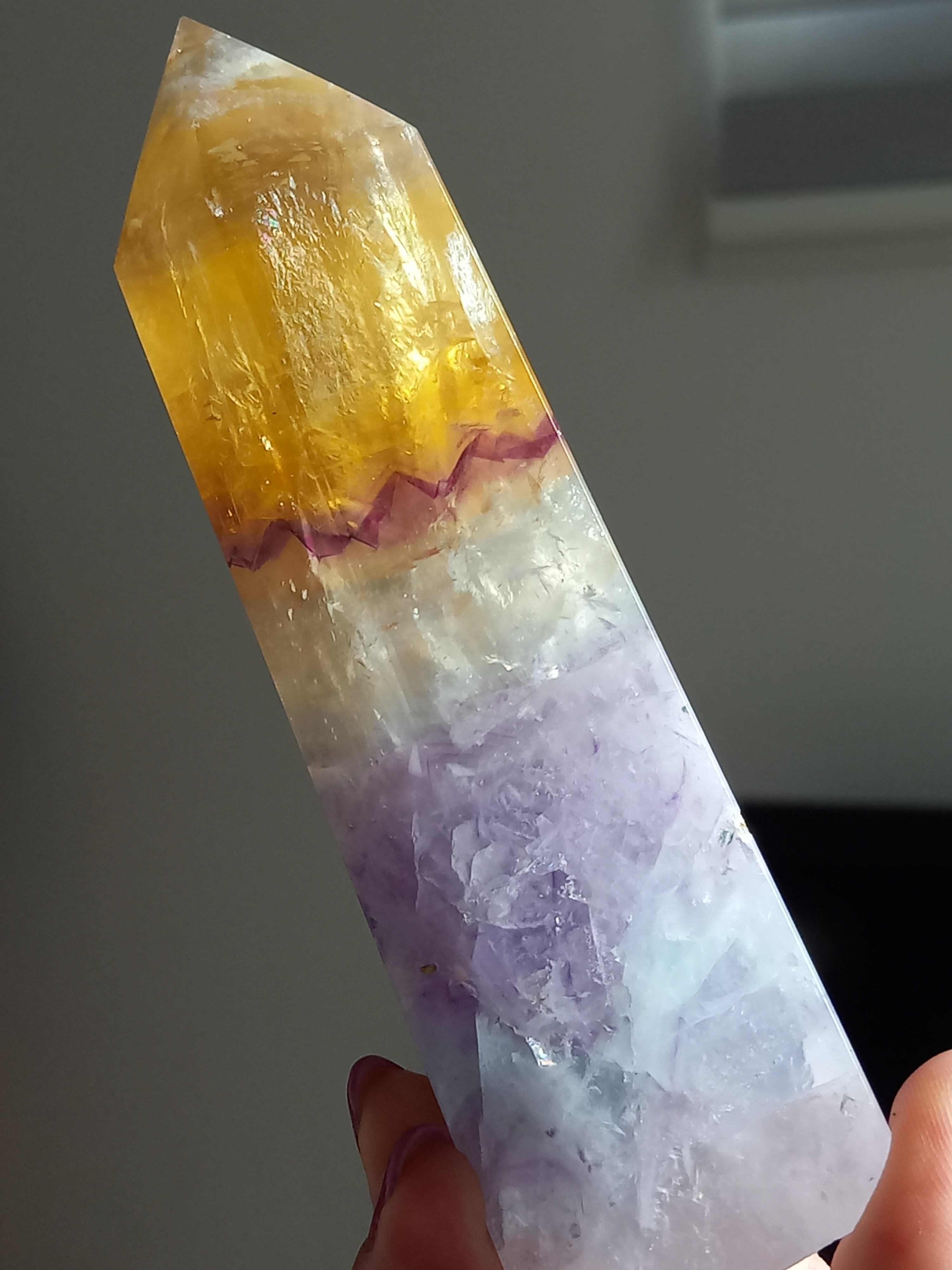 レインボーフローライトは含まれている色に合せて複数の意味が組み合わされています。 思考をクリアーにすることで、理解力や分析力を高める。 癒し・自然の力を持ち、高まっている感情を沈めたり安定させることで、温和な気持ちをもたらす。 物事に対して冷静に取り組めるようになり、知性や想像力を高めるといわれています。