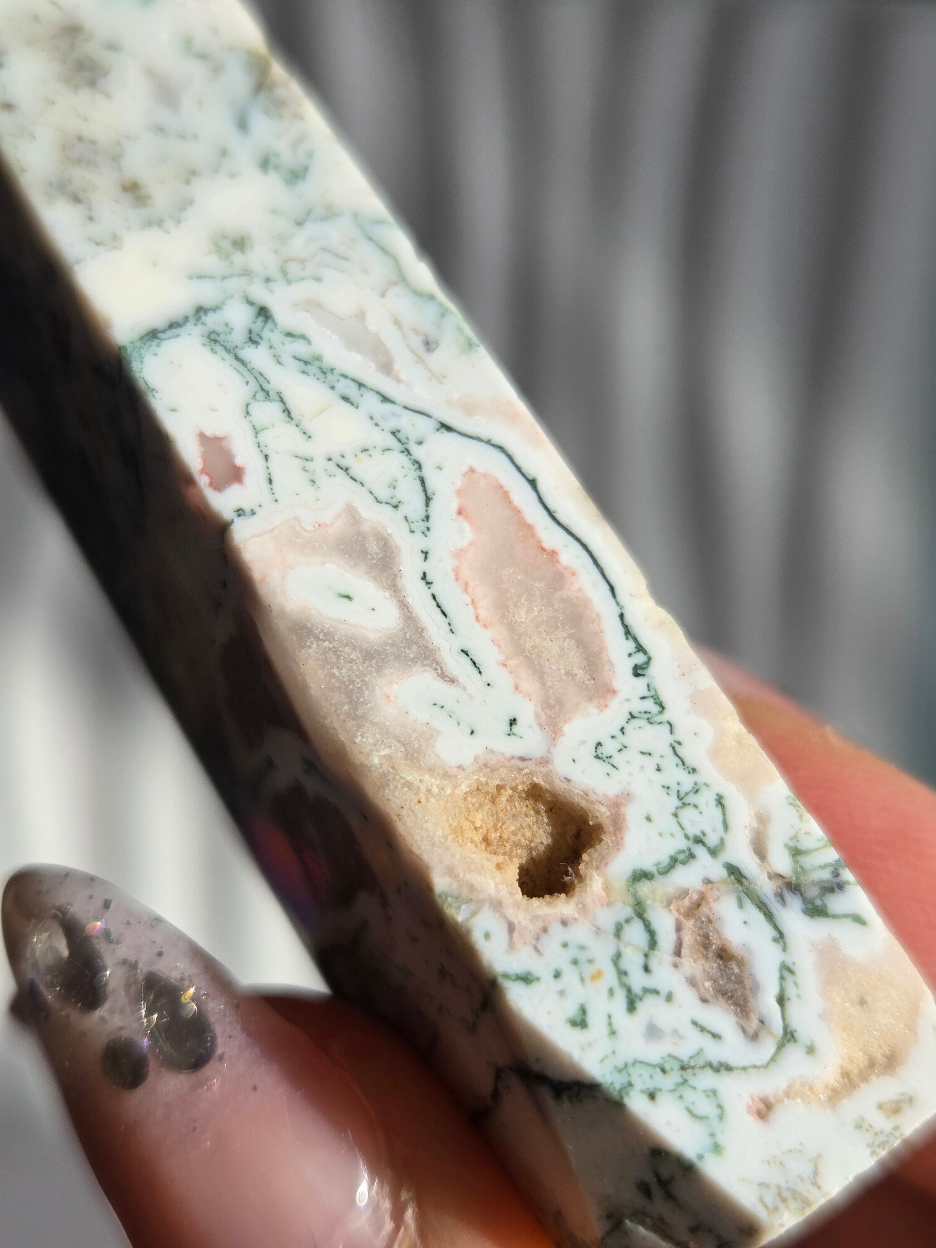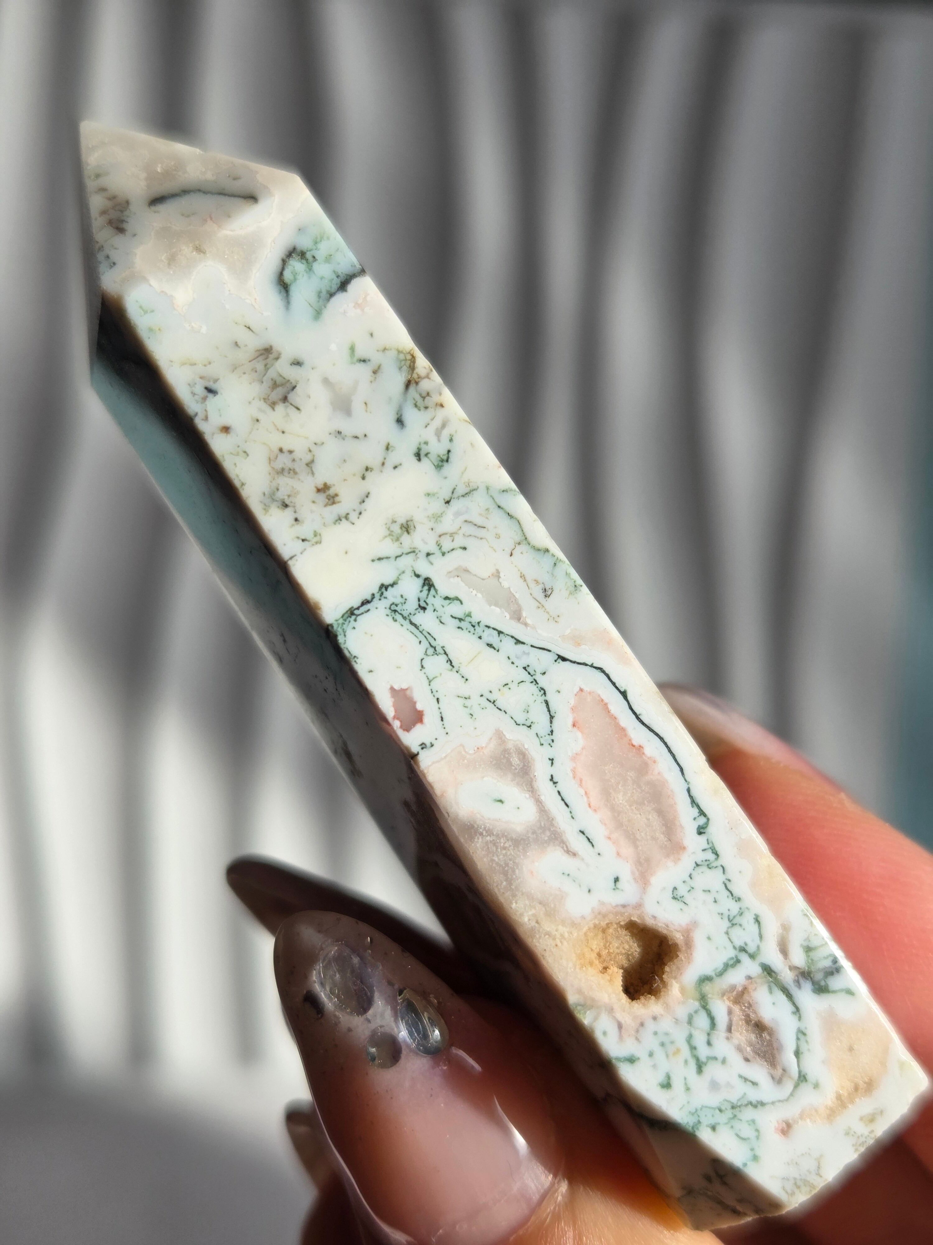 モスアゲートは、癒やしの石として知られており、感情の乱れを整え、エゴや執着を解き放ち、心身を安定した状態に保ってくれると言われています。