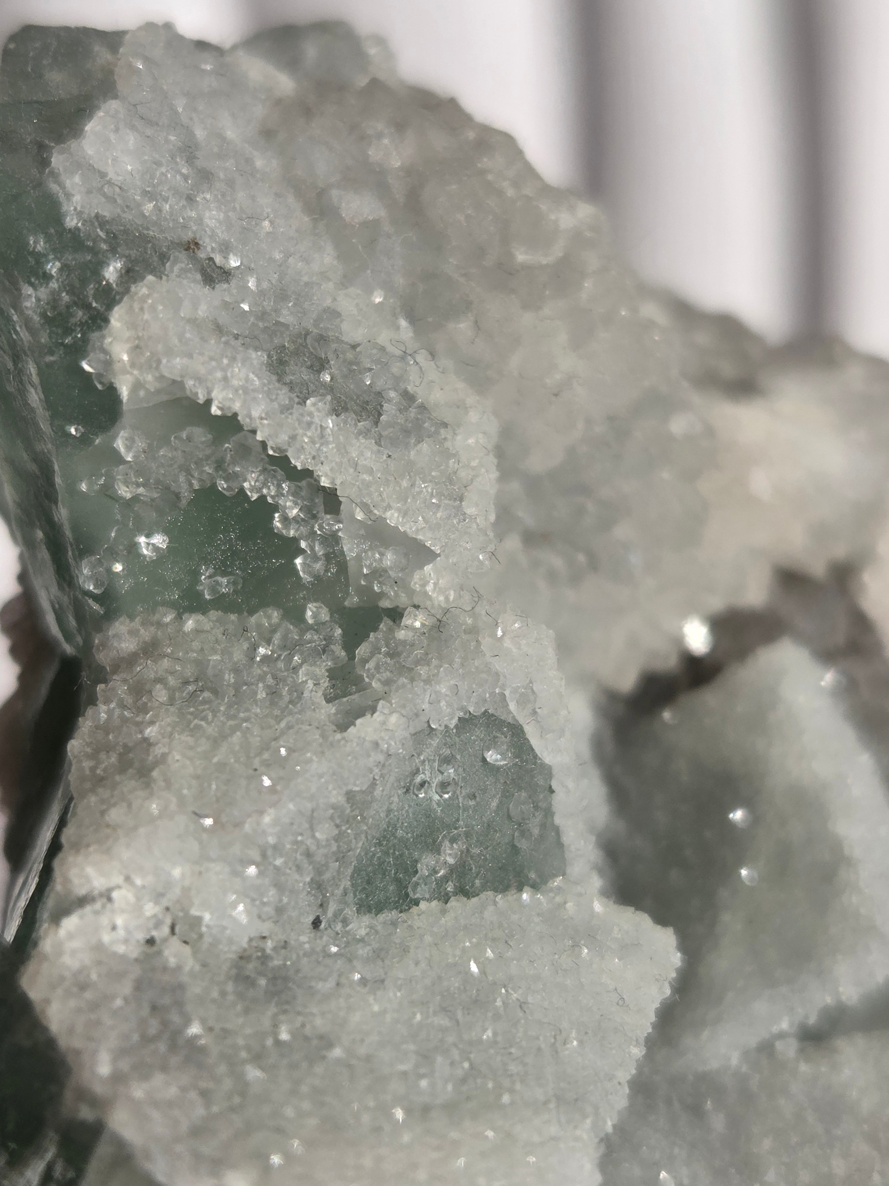 鮮やかなグリーンが目を引く、福建省産シュガーフローライト原石です。