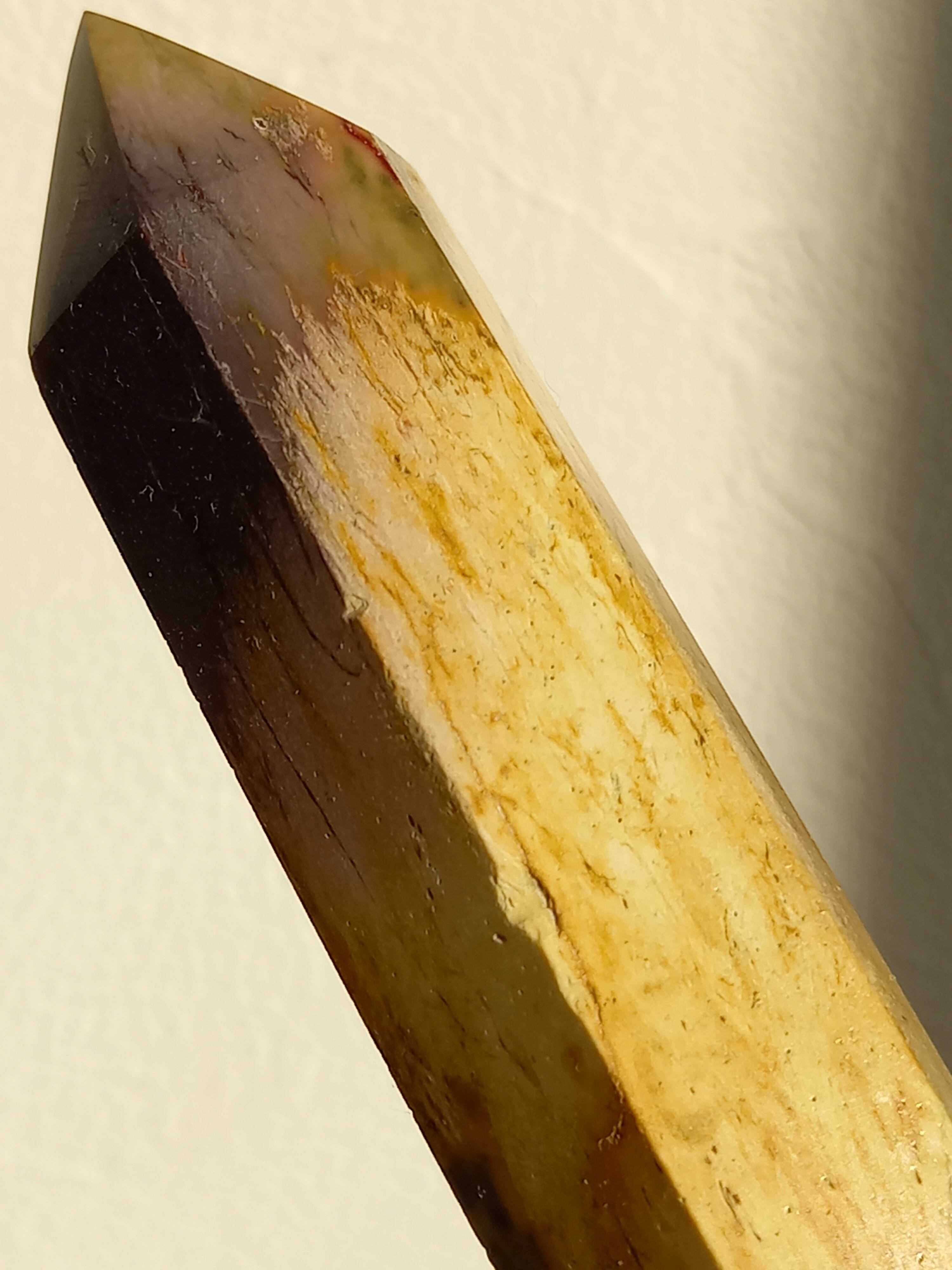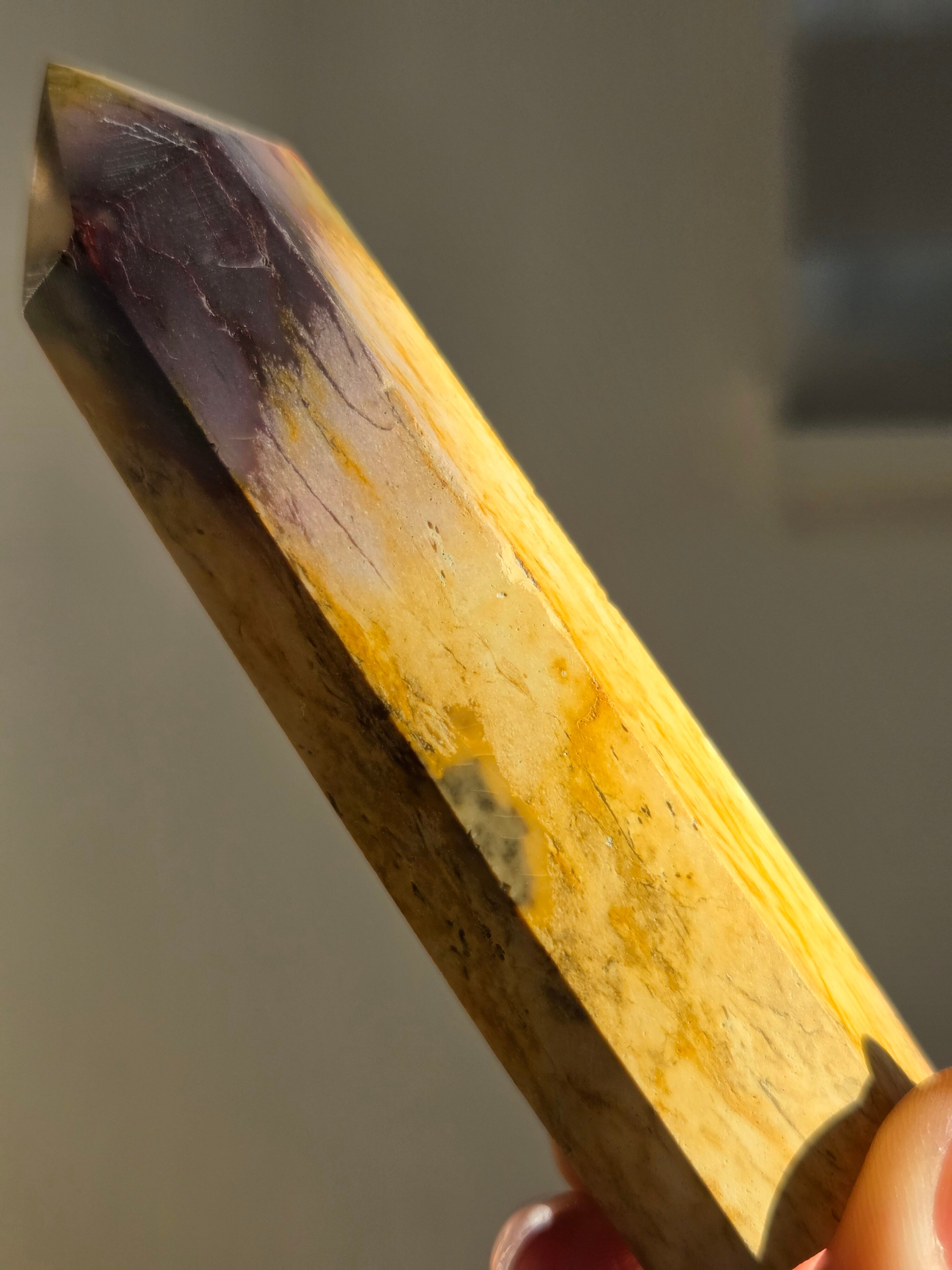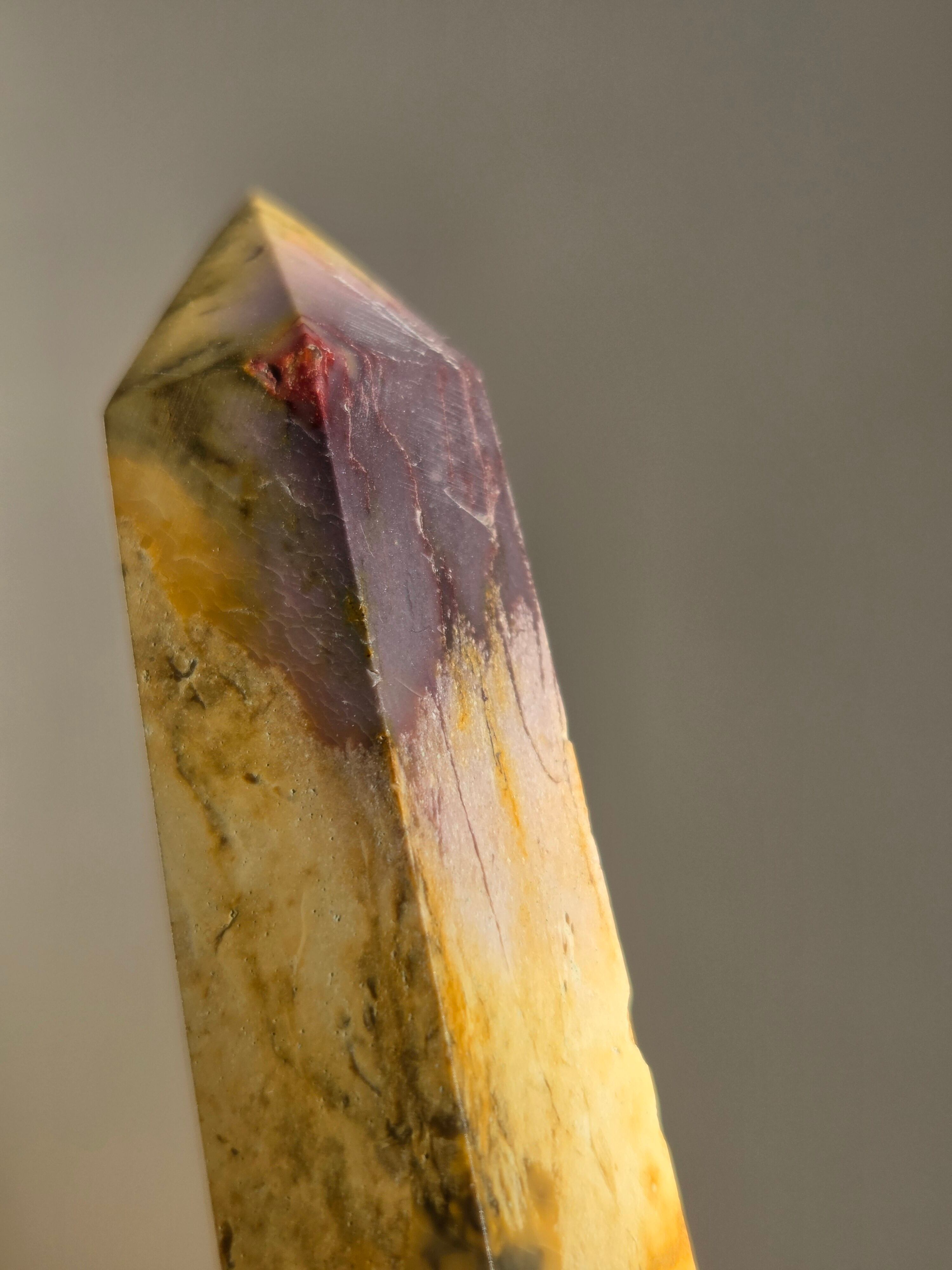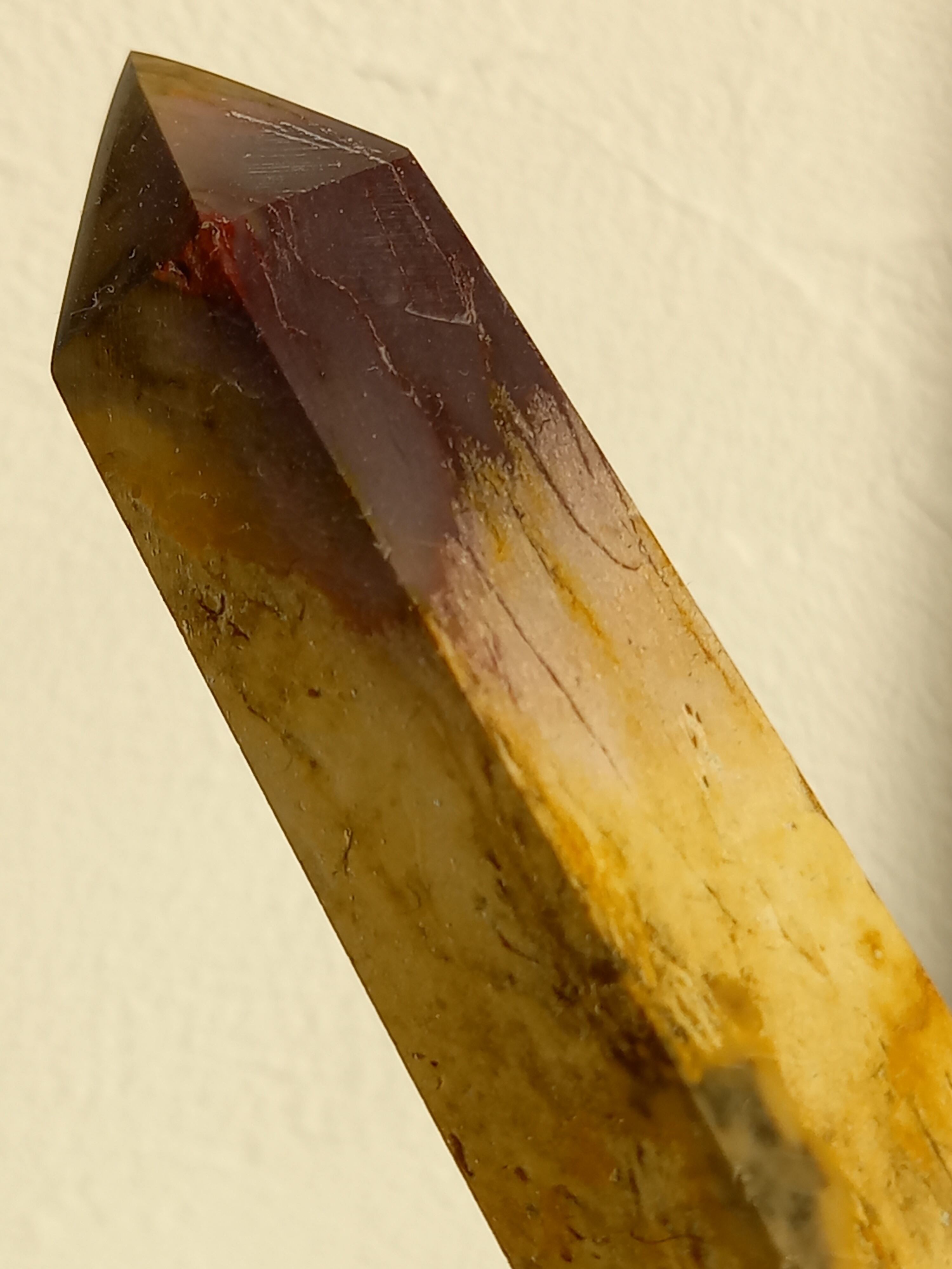 カラシ色に、イエロー、パープル、ホワイトと色味が入り、まるでキャンパスにアートを描かれたような、そんな雰囲気のある子です。