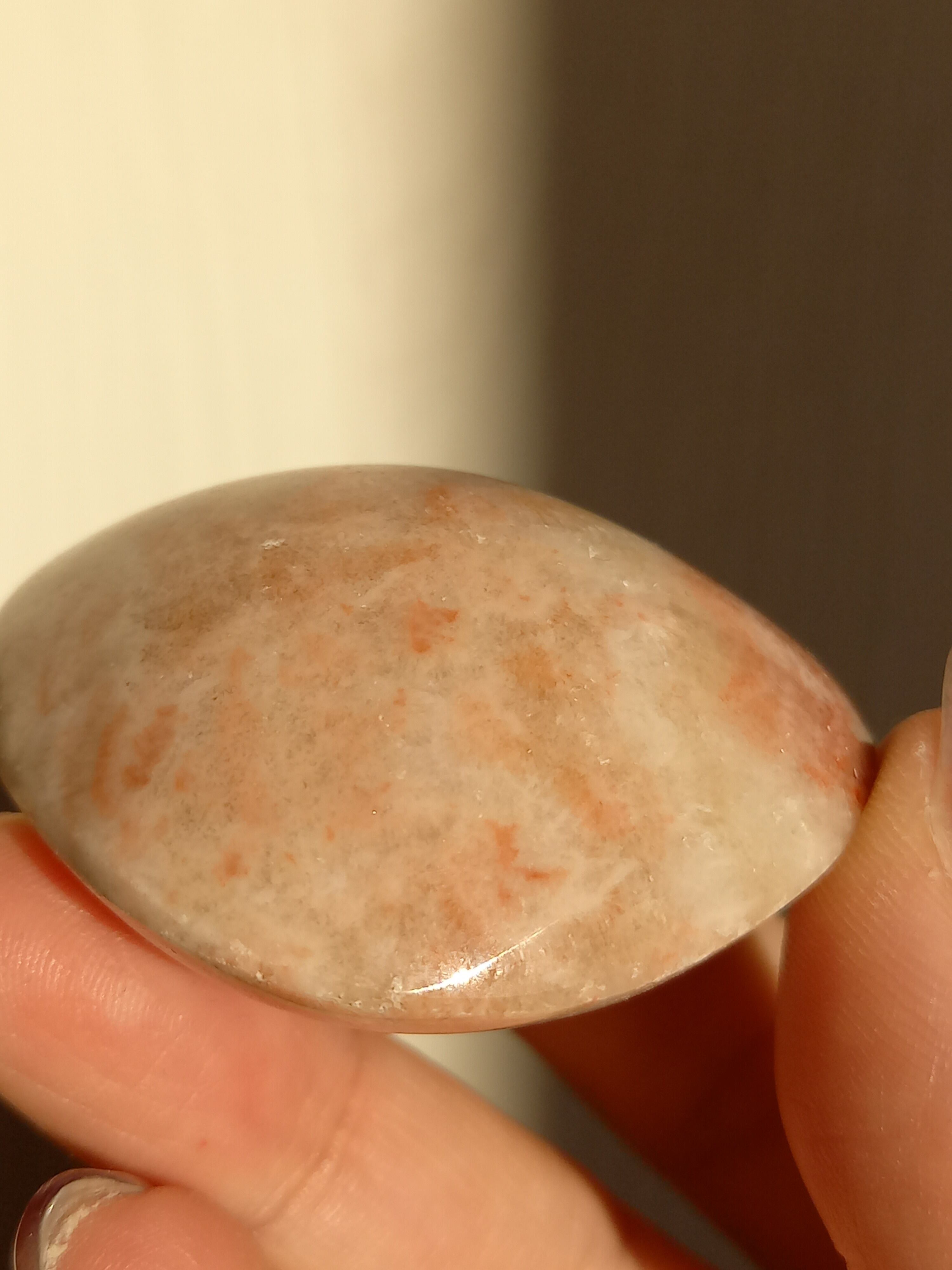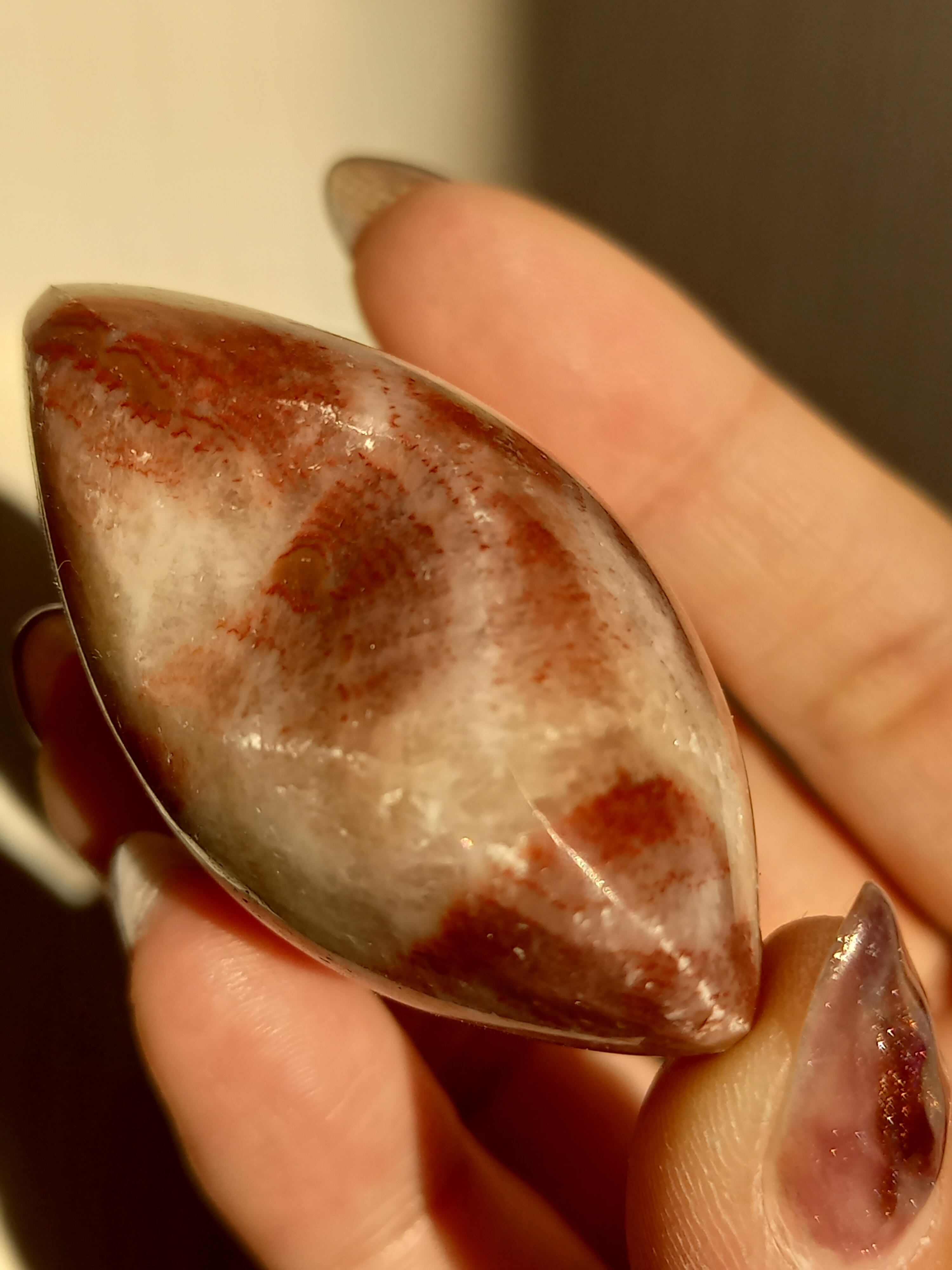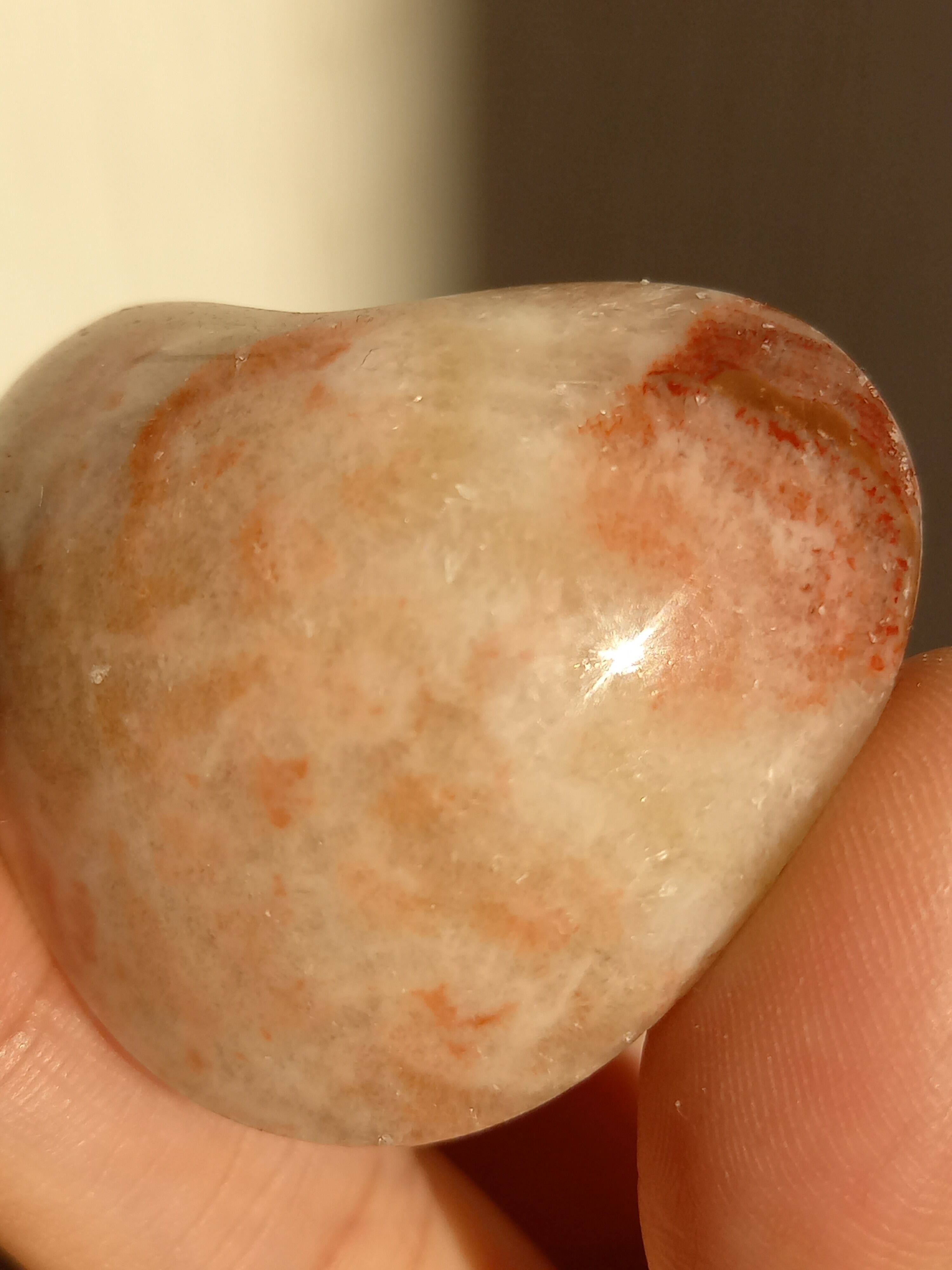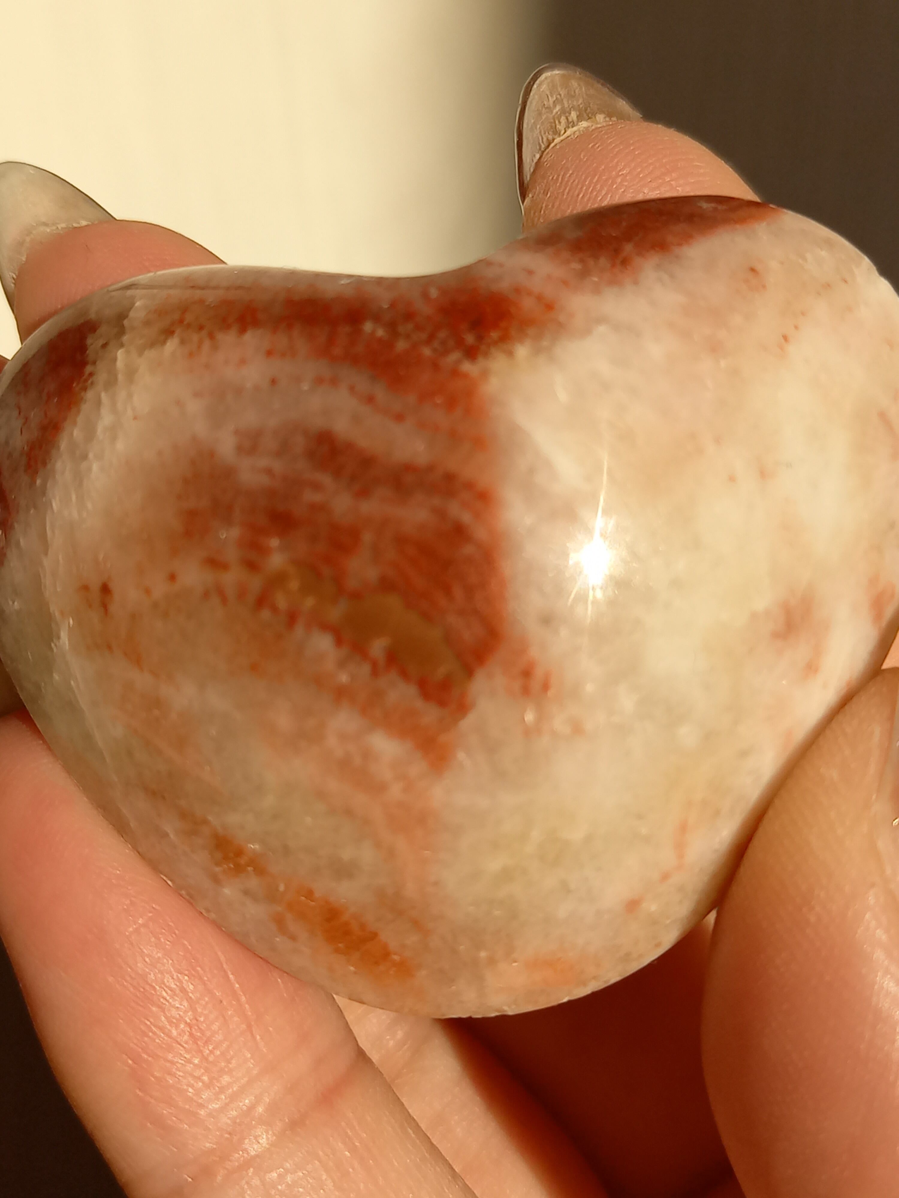 ポークストーンとは、カルサイトの一種で、赤色の部分は酸化鉄の影響で色づいており、アラゴナイト化していると言われてます。