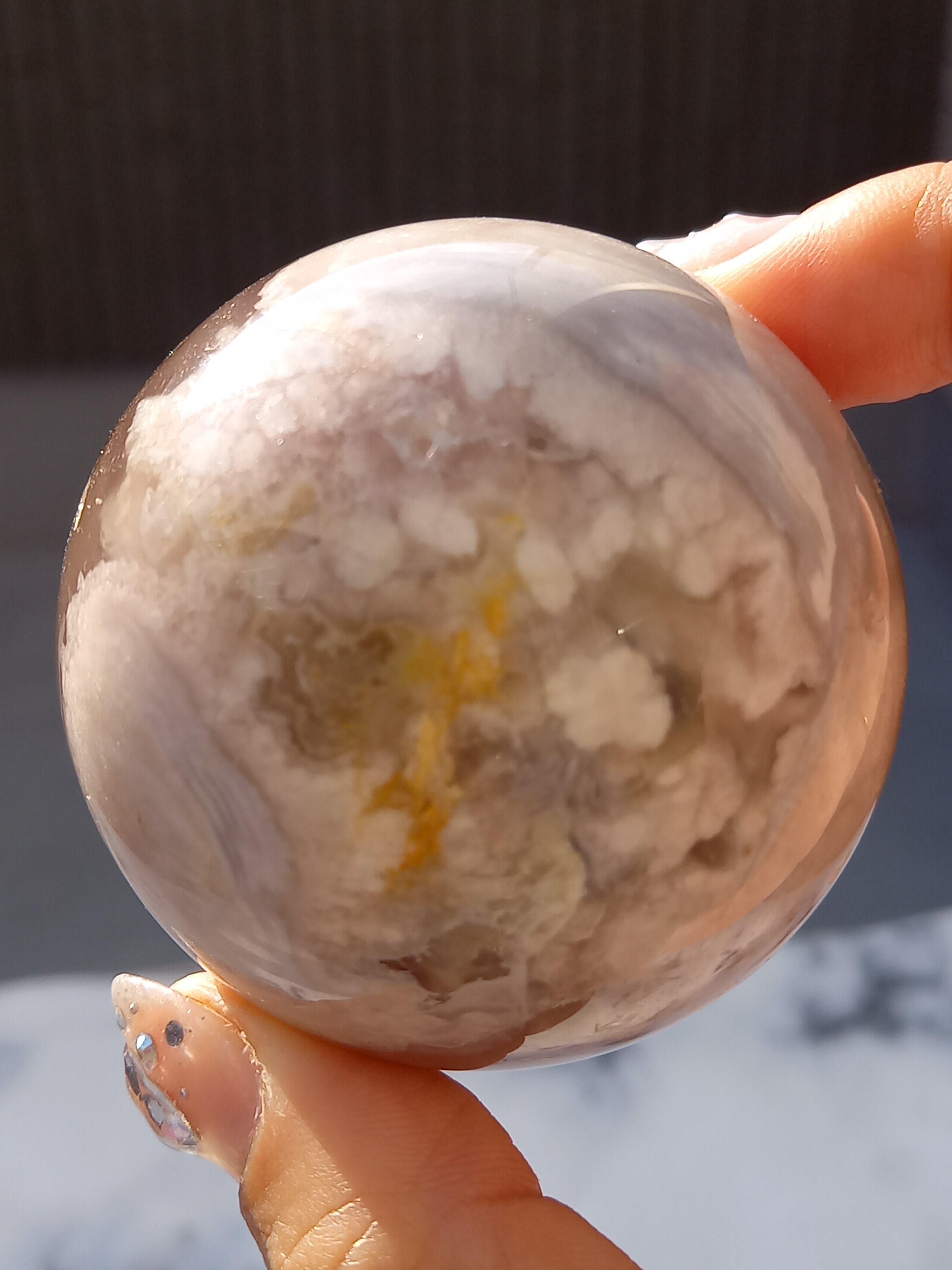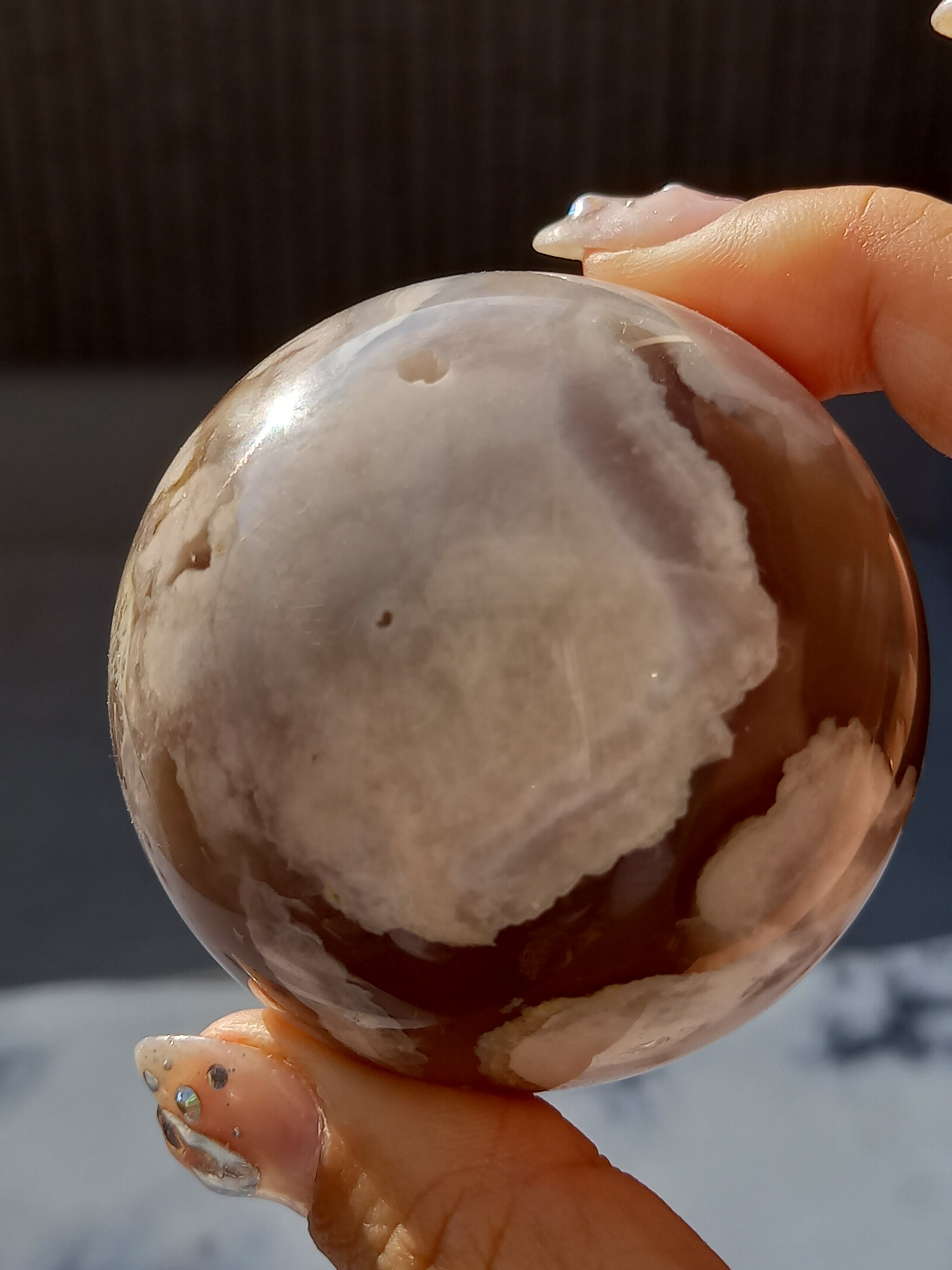 ブラックフラワーアゲート(夜桜瑪瑙)スフィア