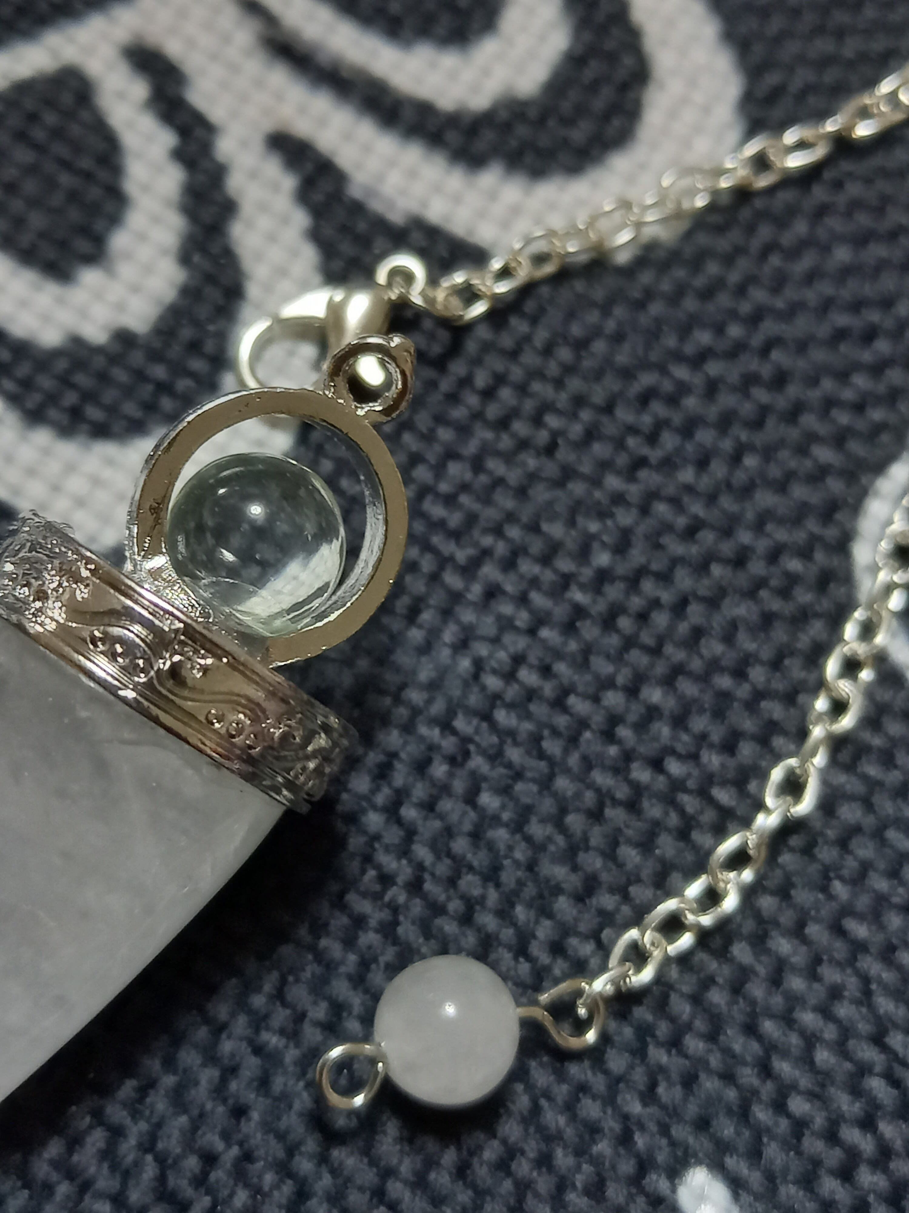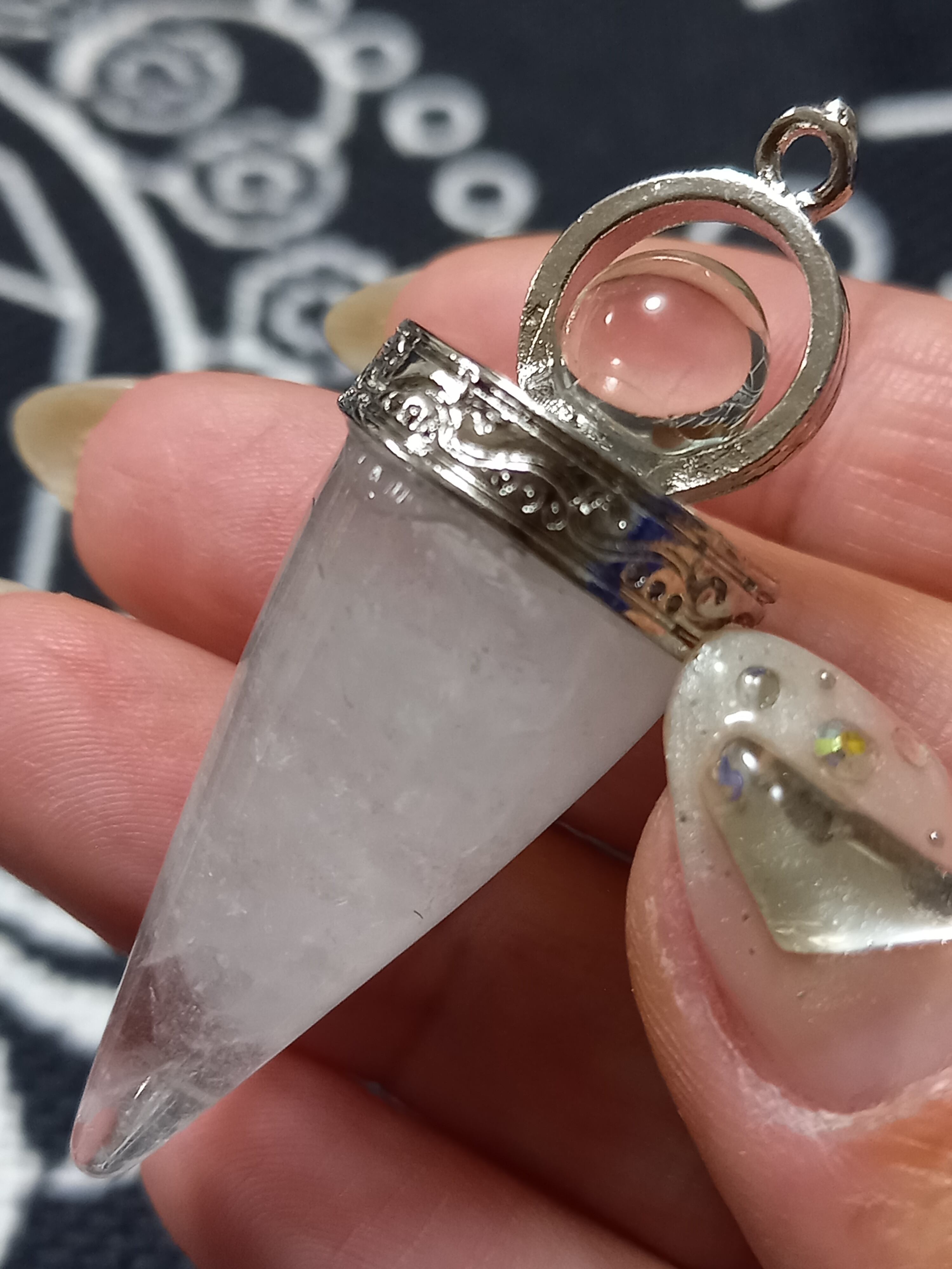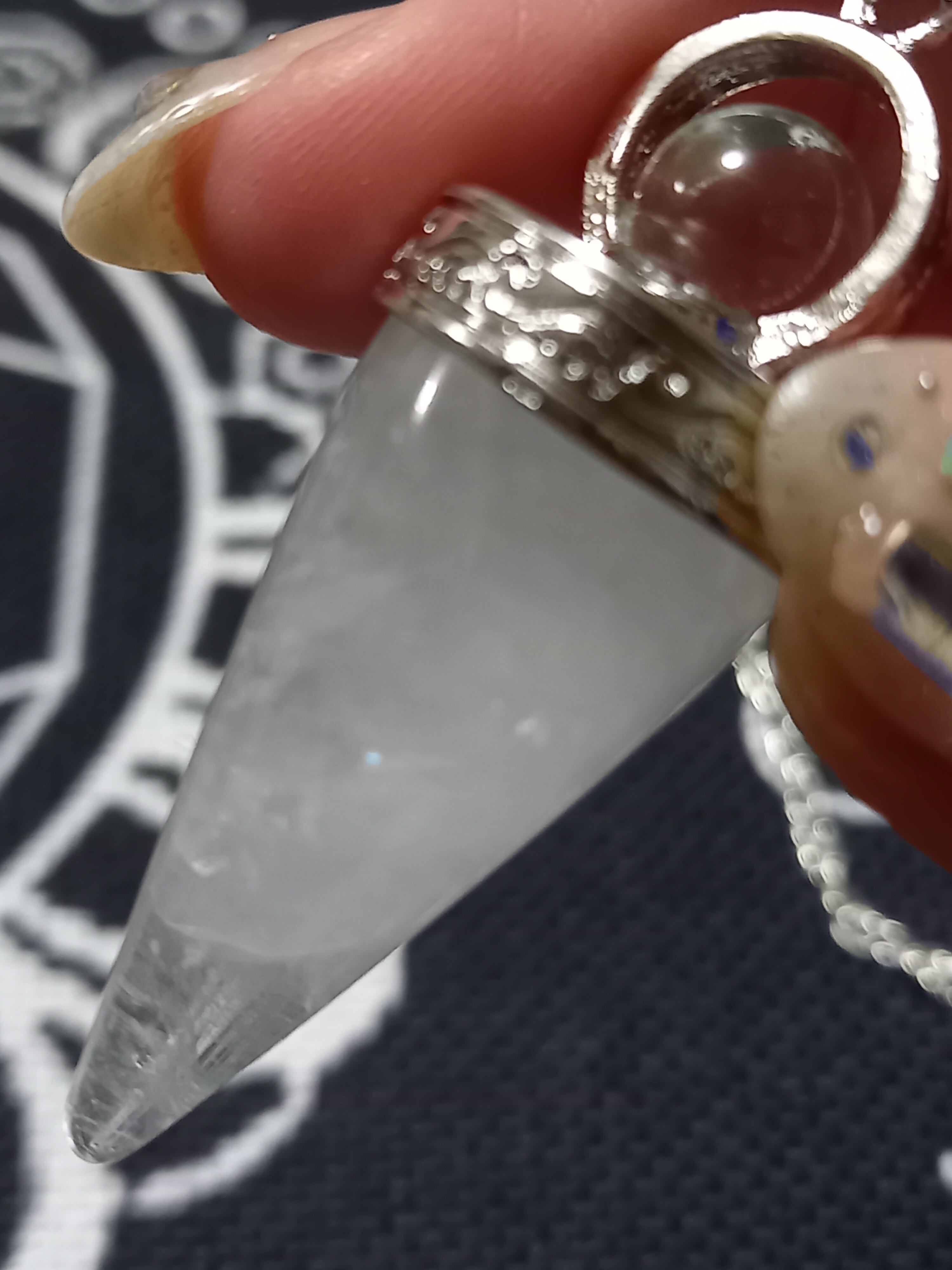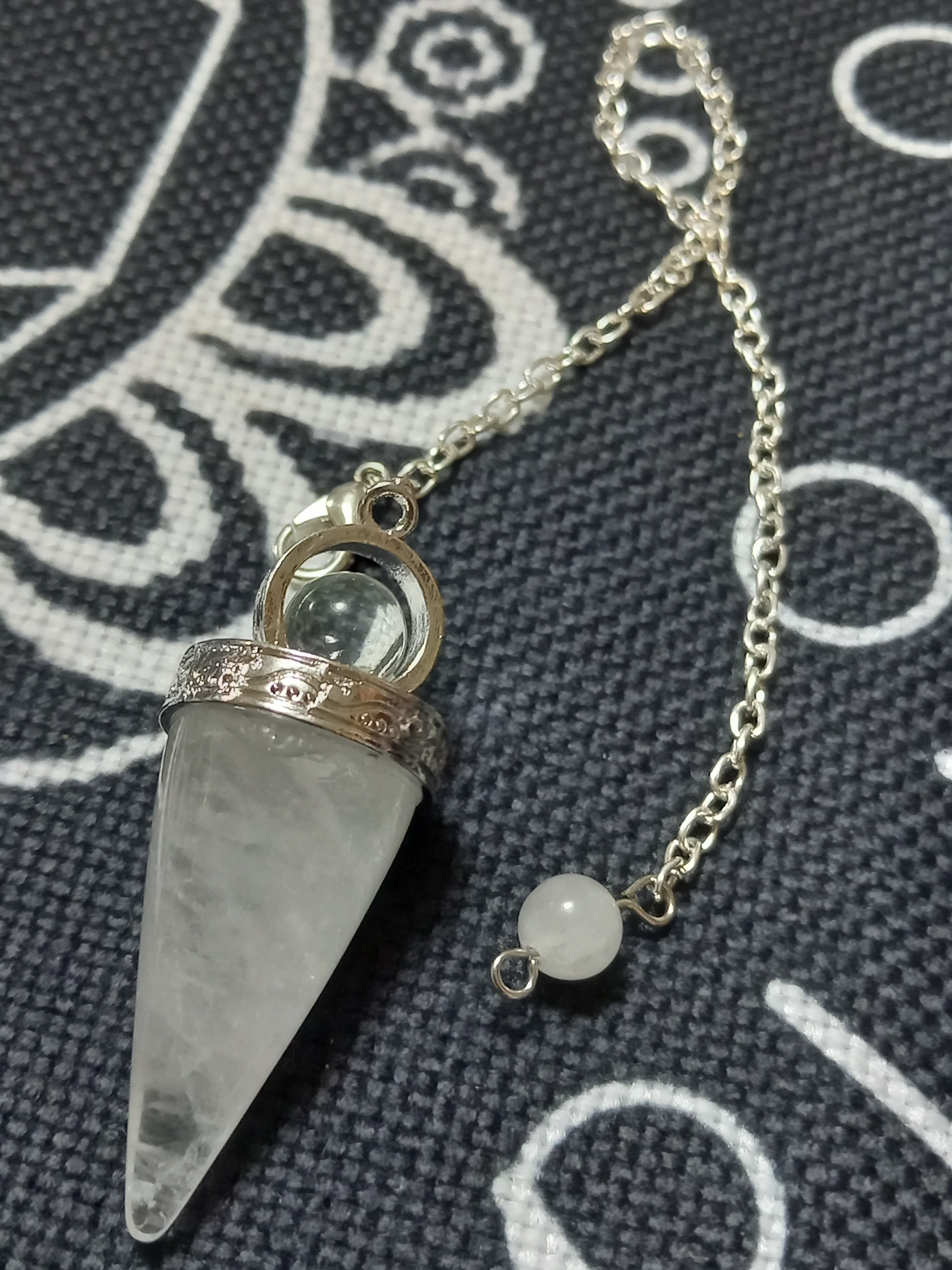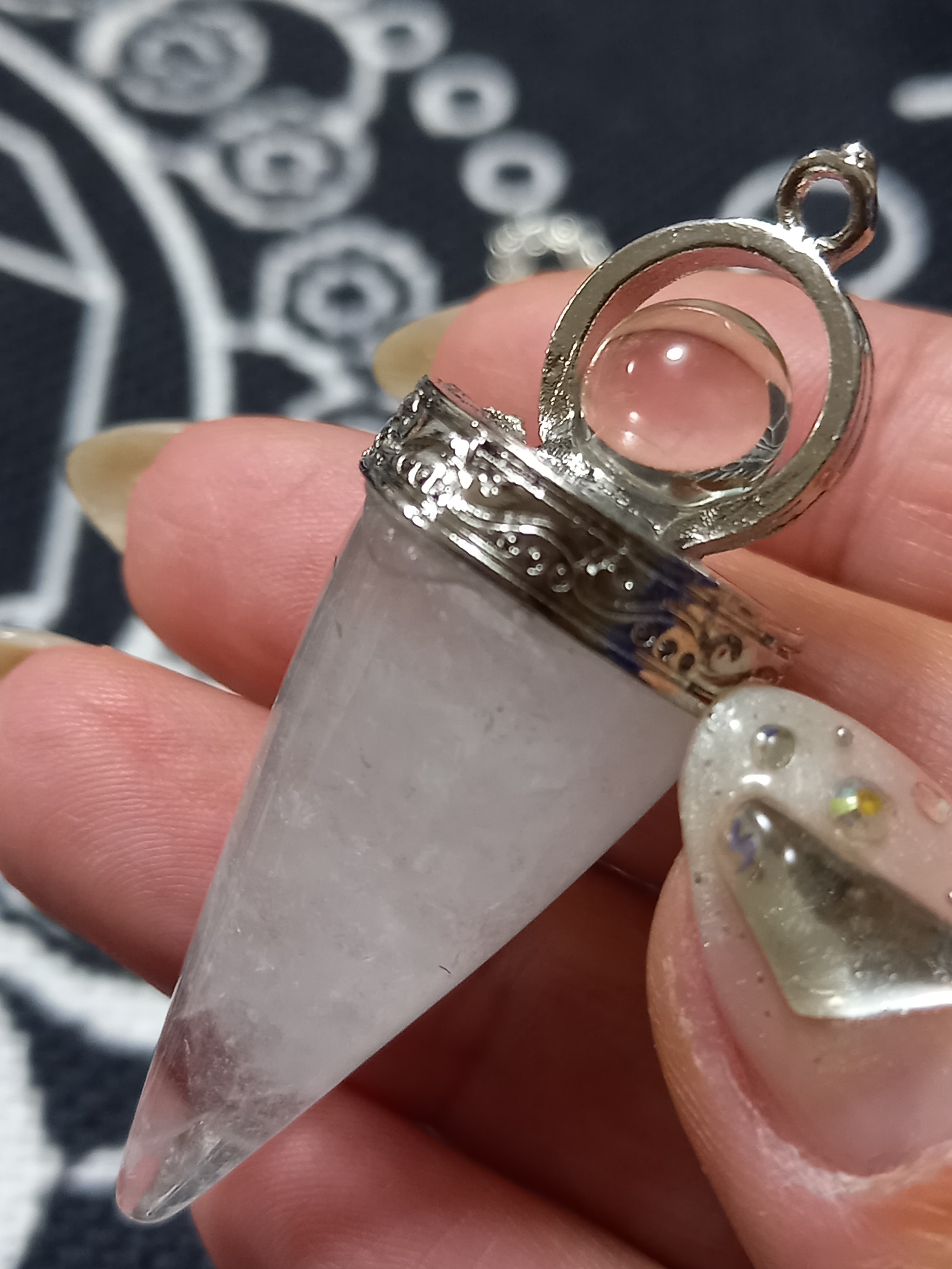 ペンデュラムとは日本語で「振り子」のことです。 かつてはペンデュラムを使って水脈や鉱脈を探り当てるために使われていました。 現在は、ダウジング占いのアイテムやアクセサリーとして使われています。