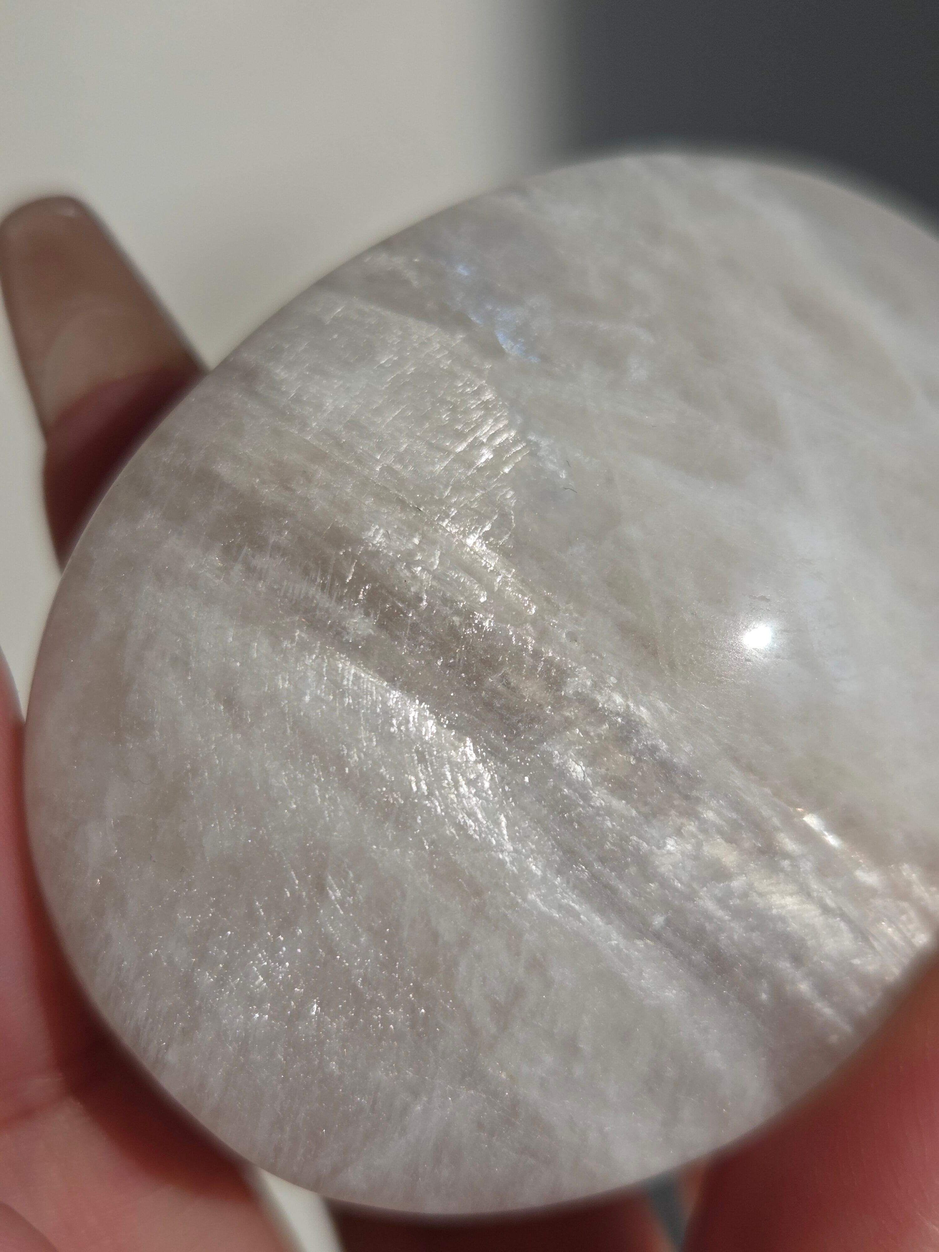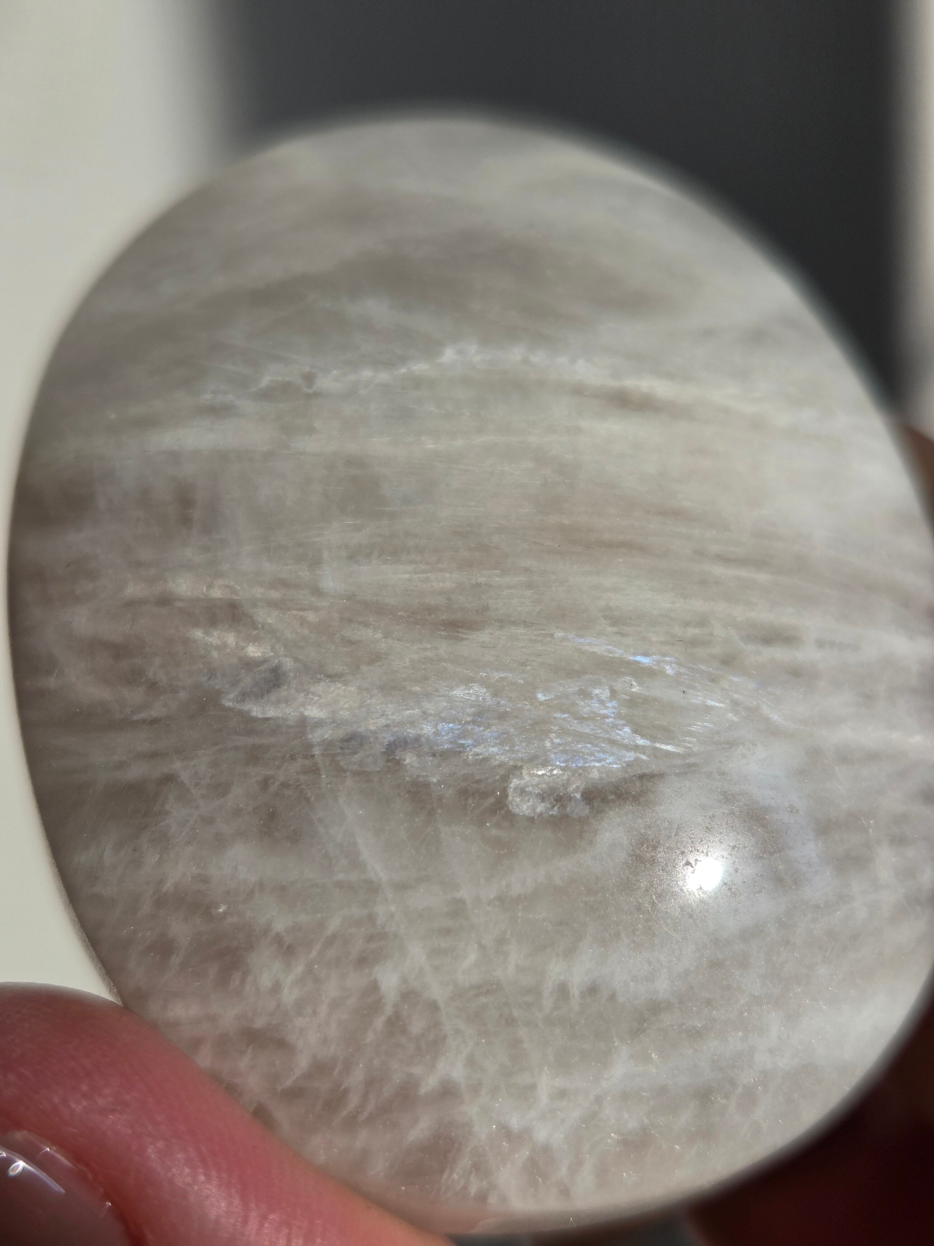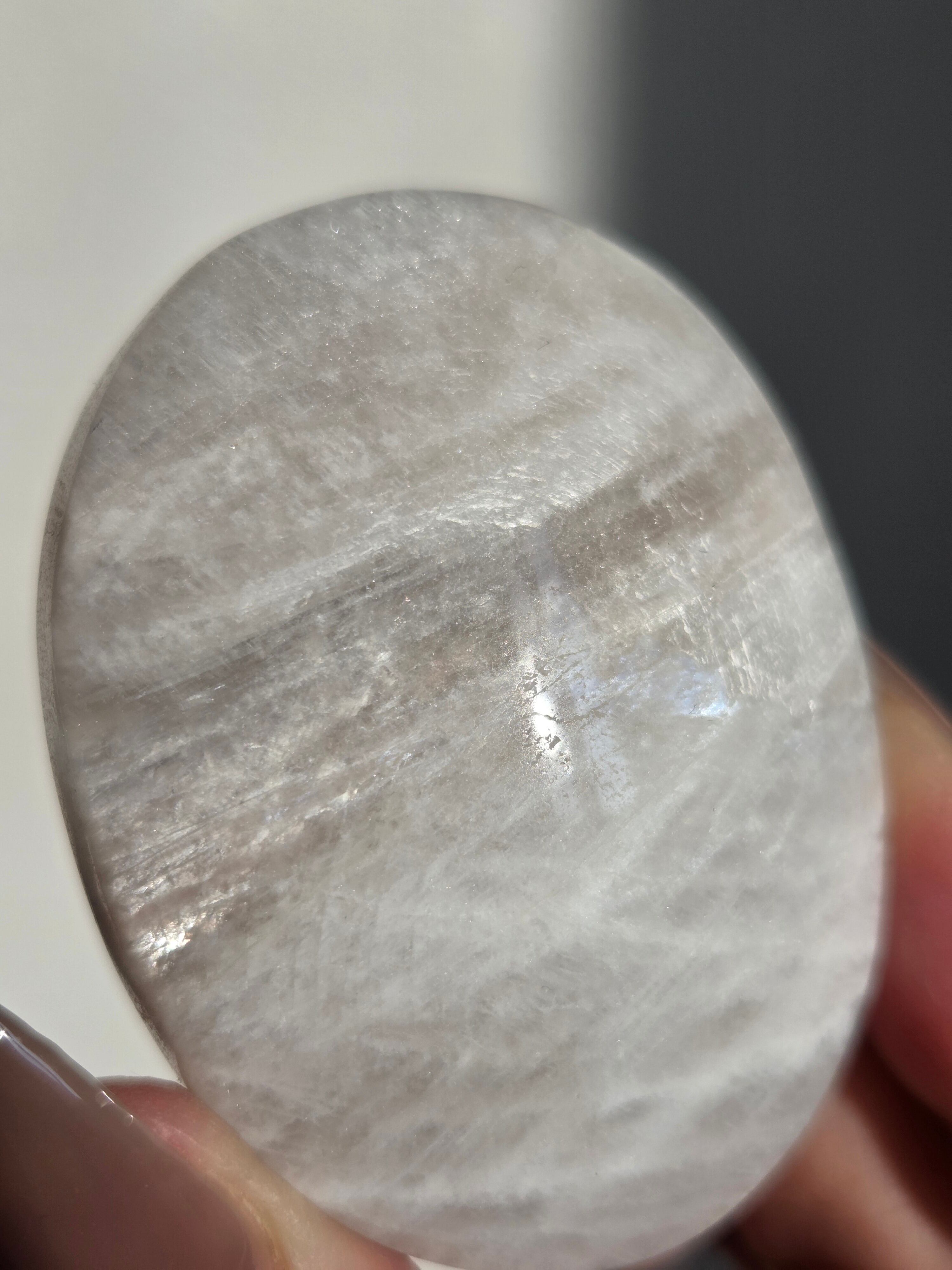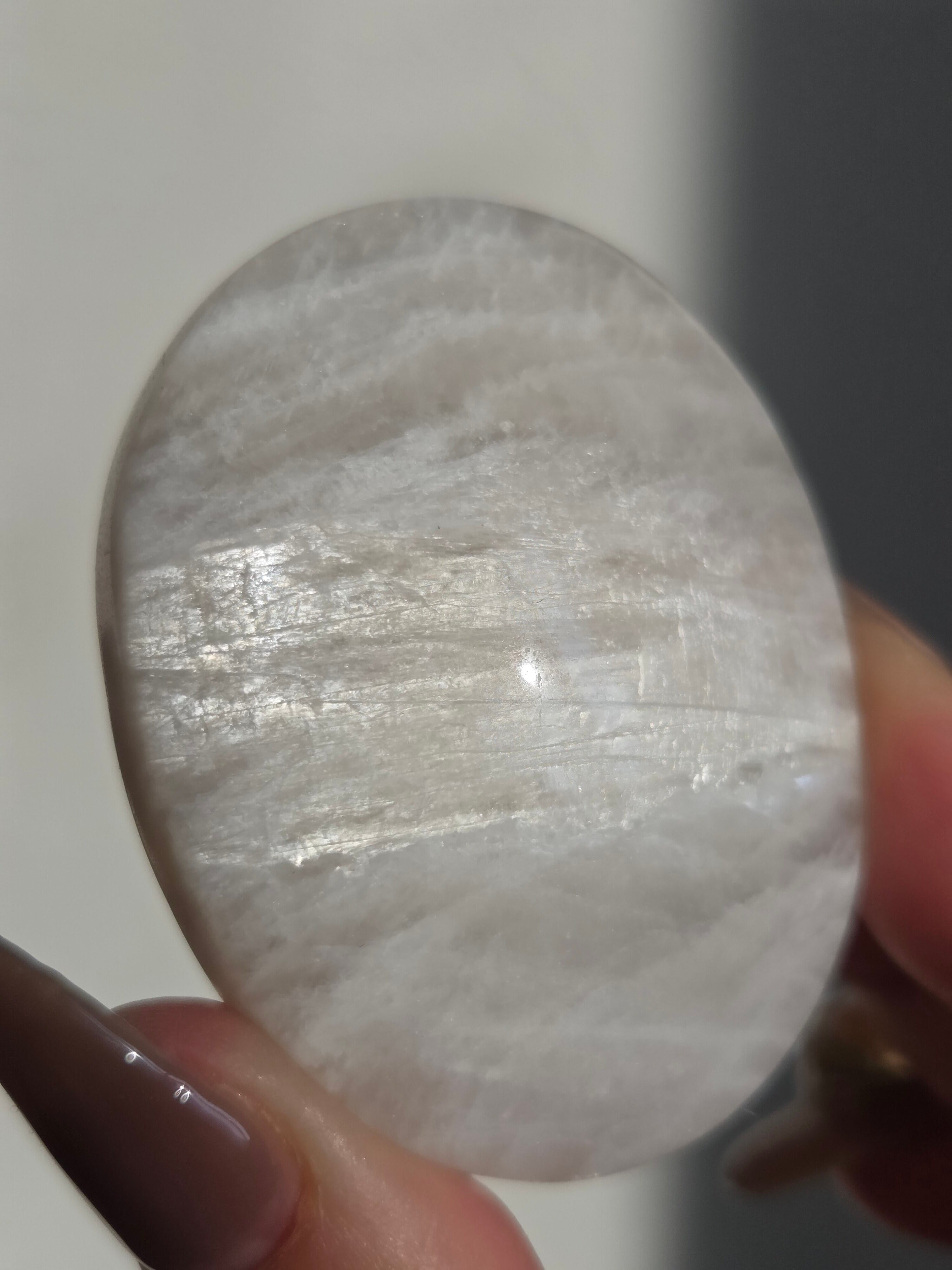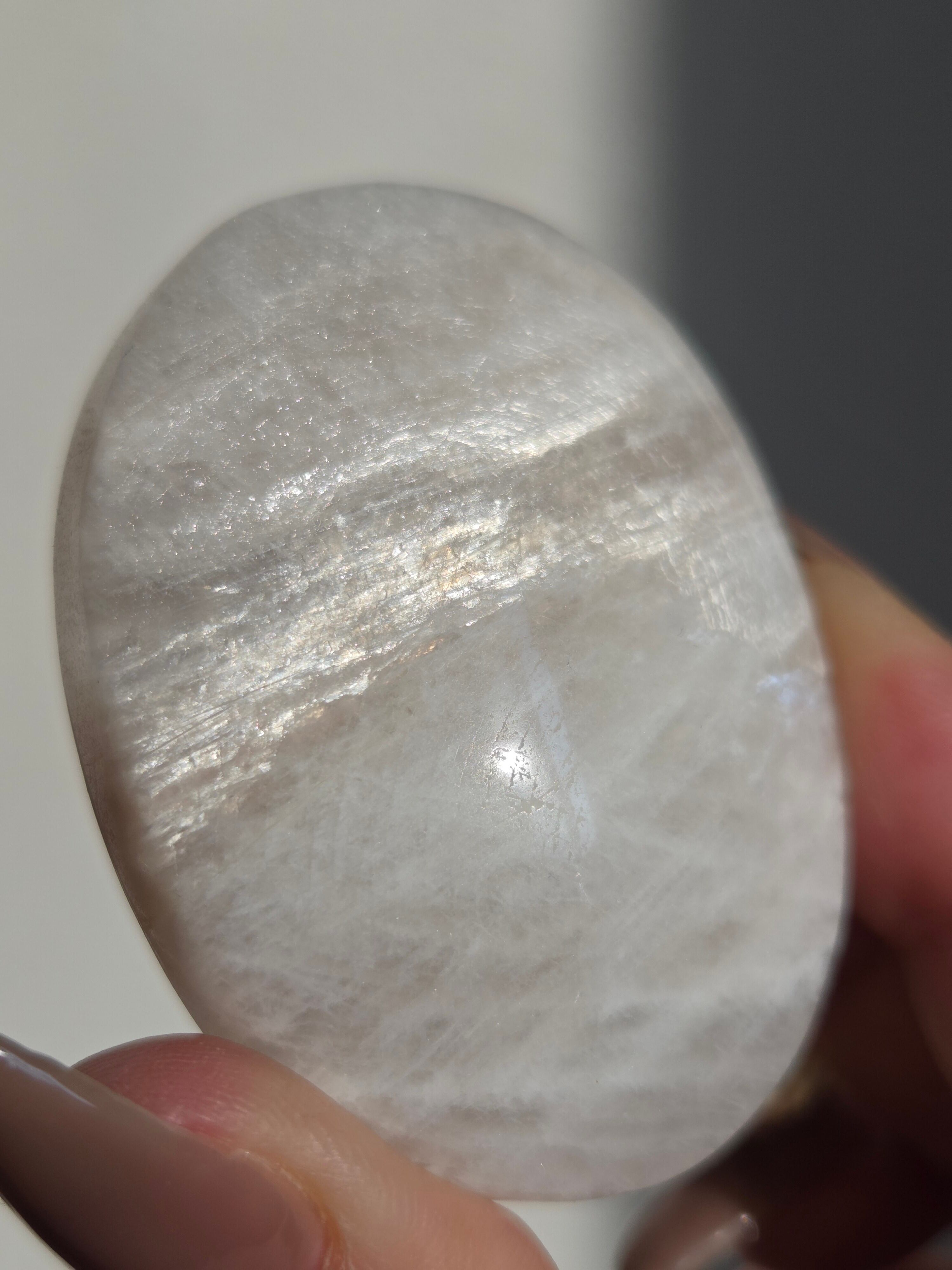 真っ白なムーンストーンに、シルバーのシラーが美しいです。