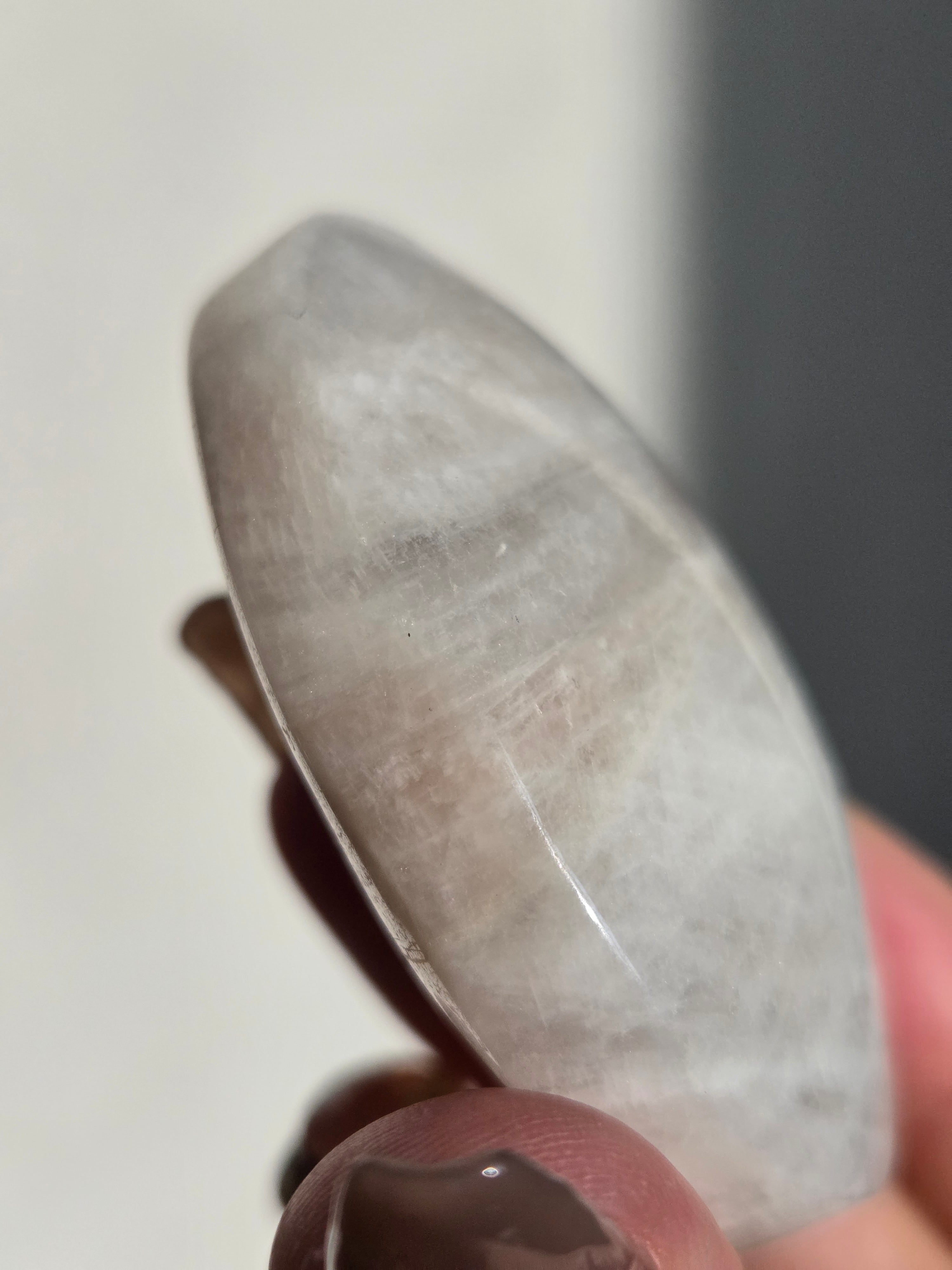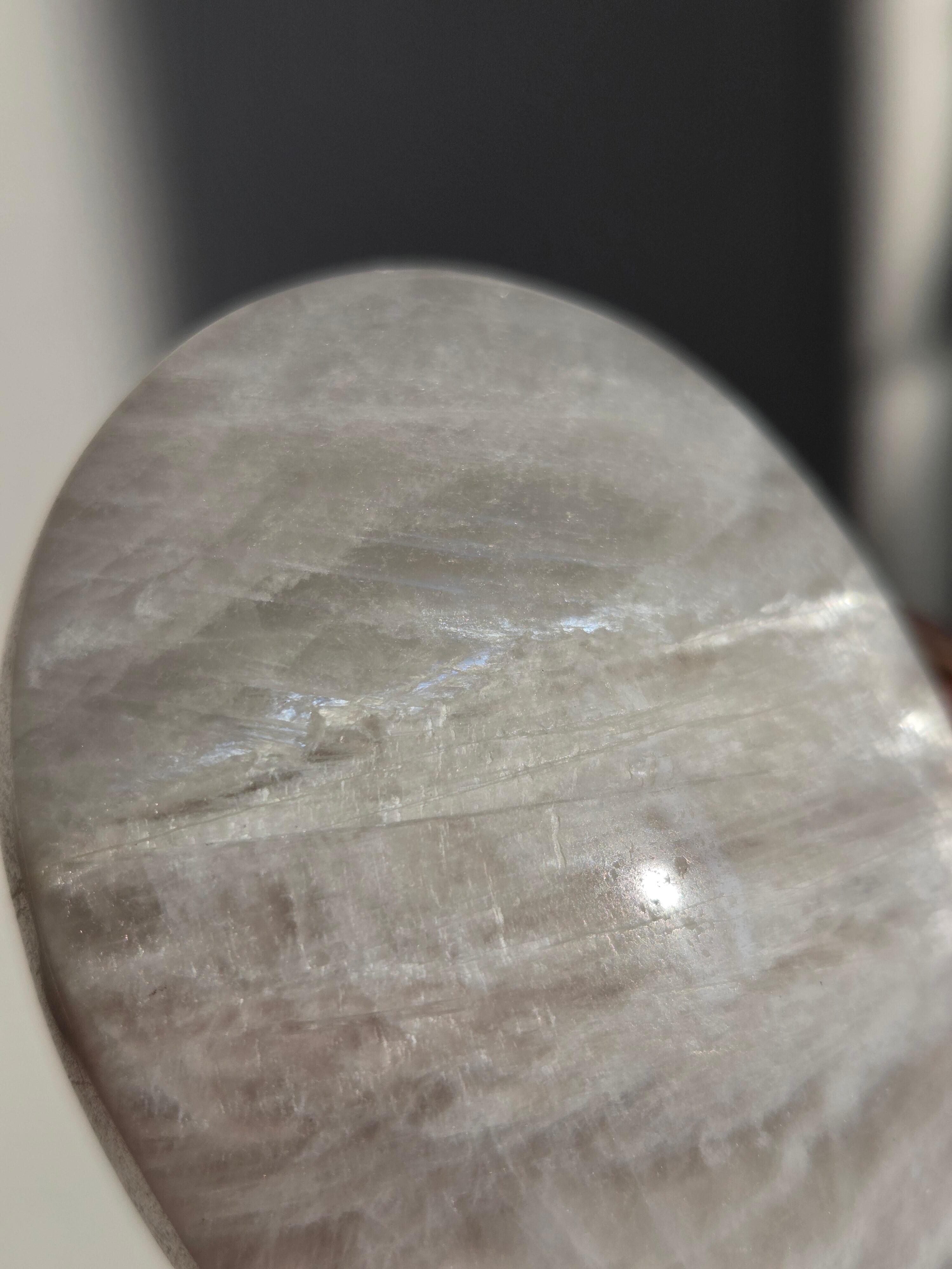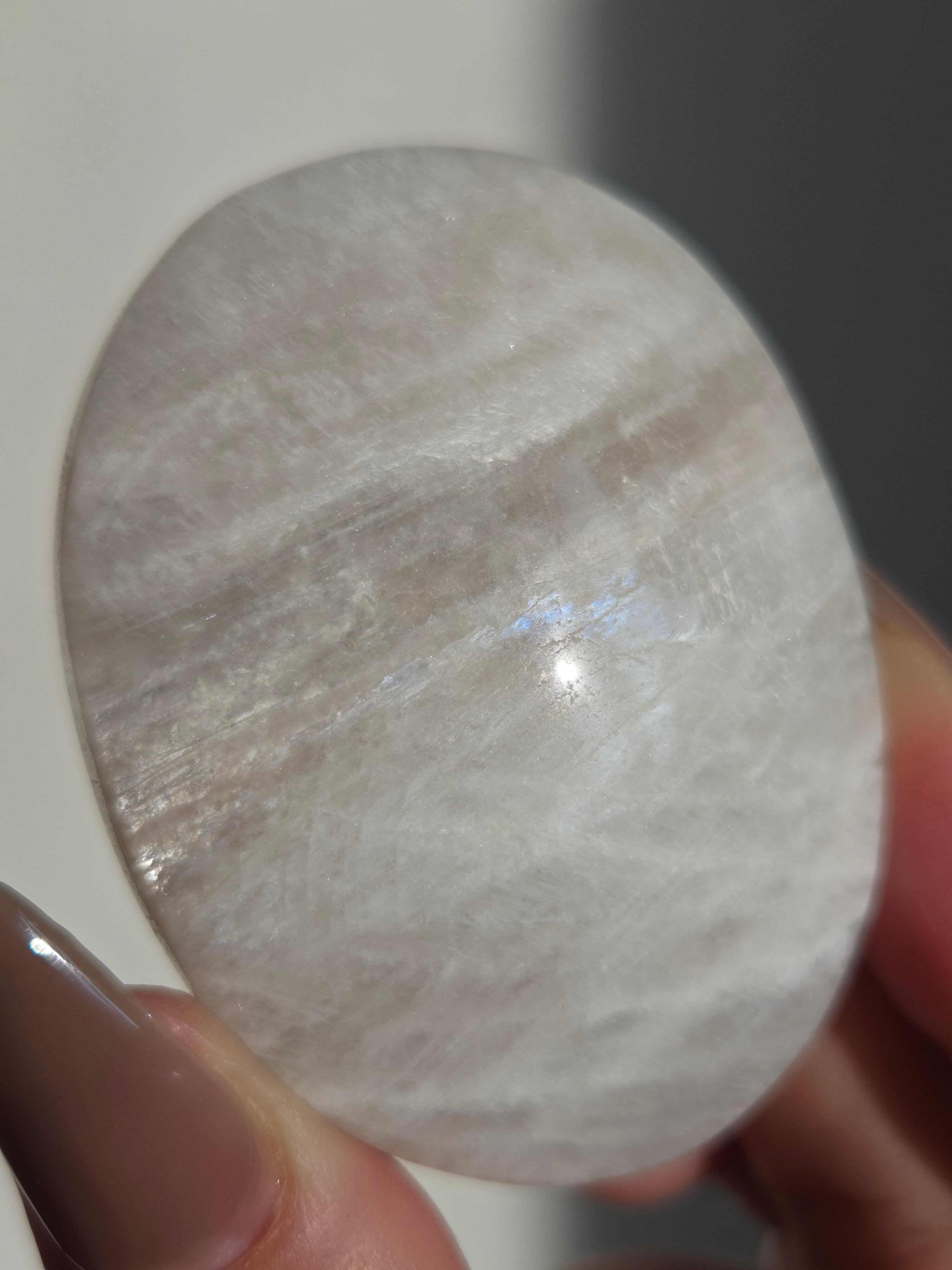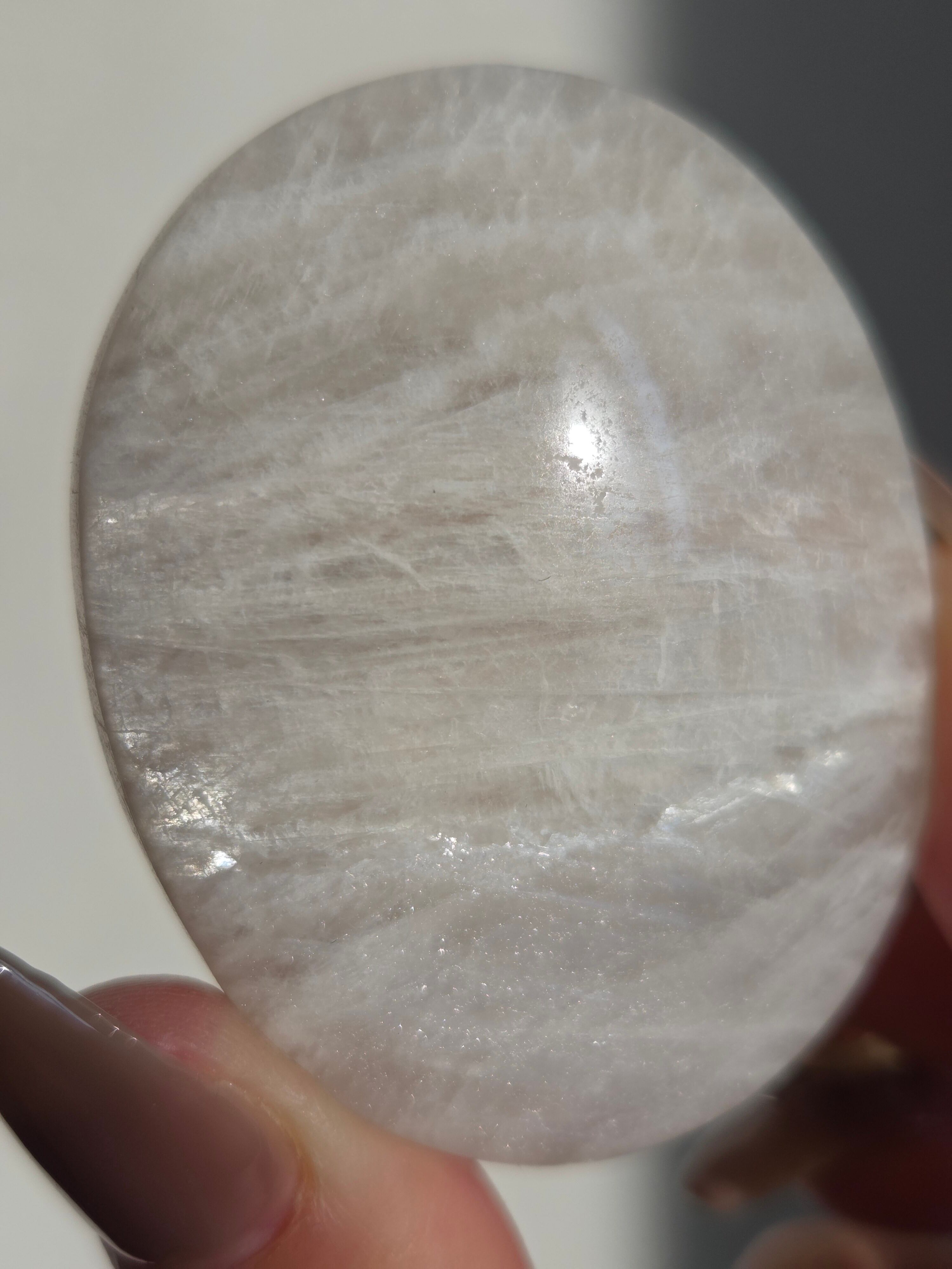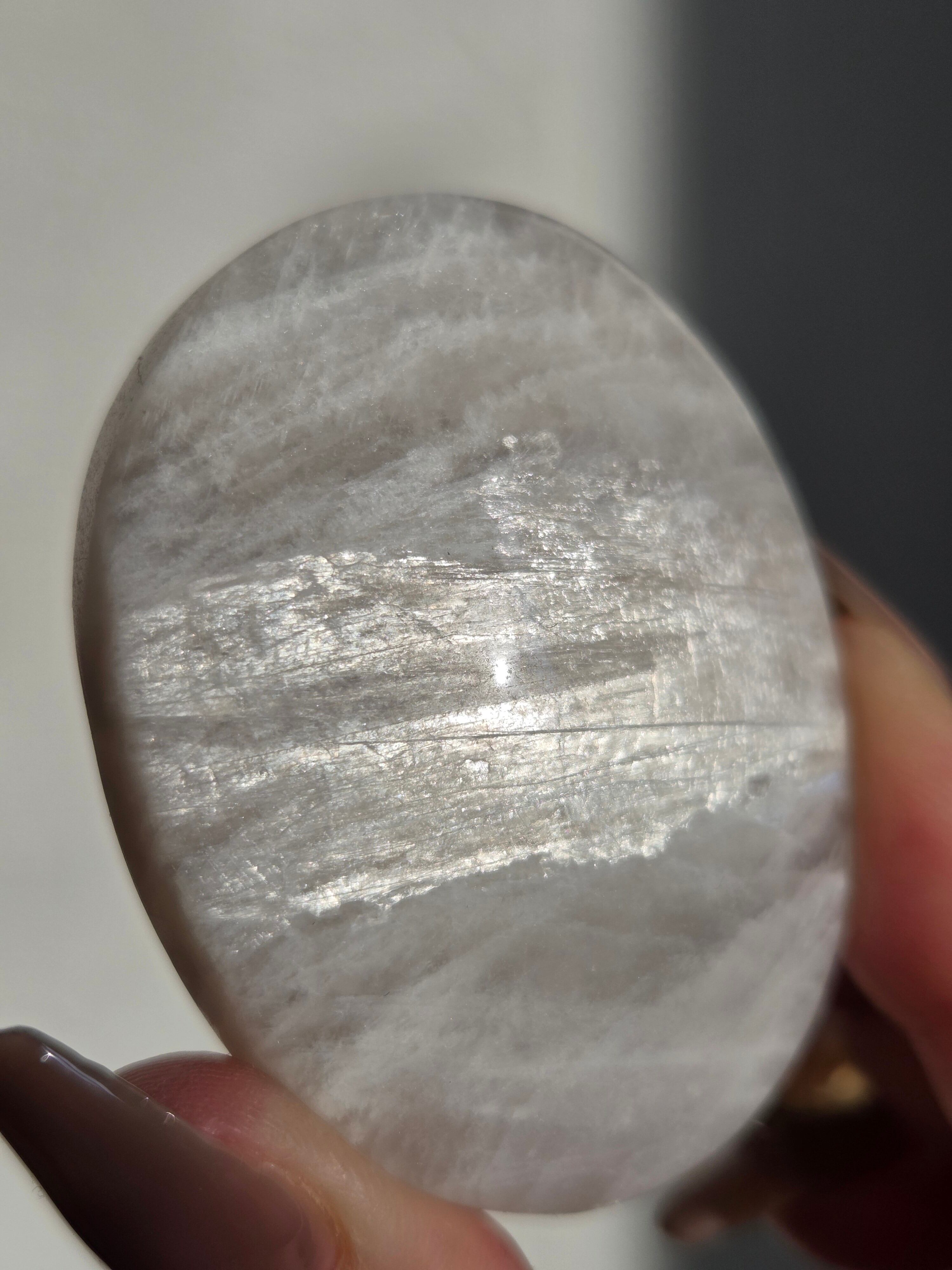 真っ白なムーンストーンに、シルバーのシラーが美しいです。