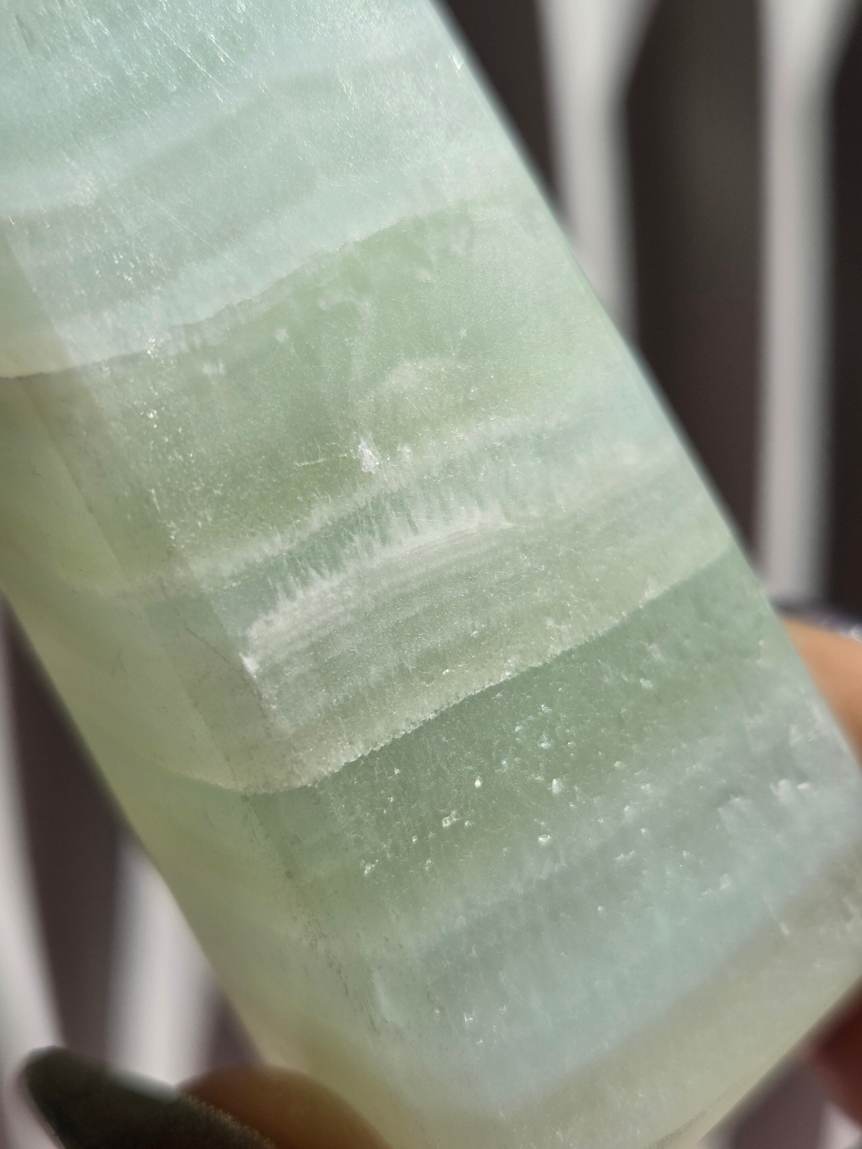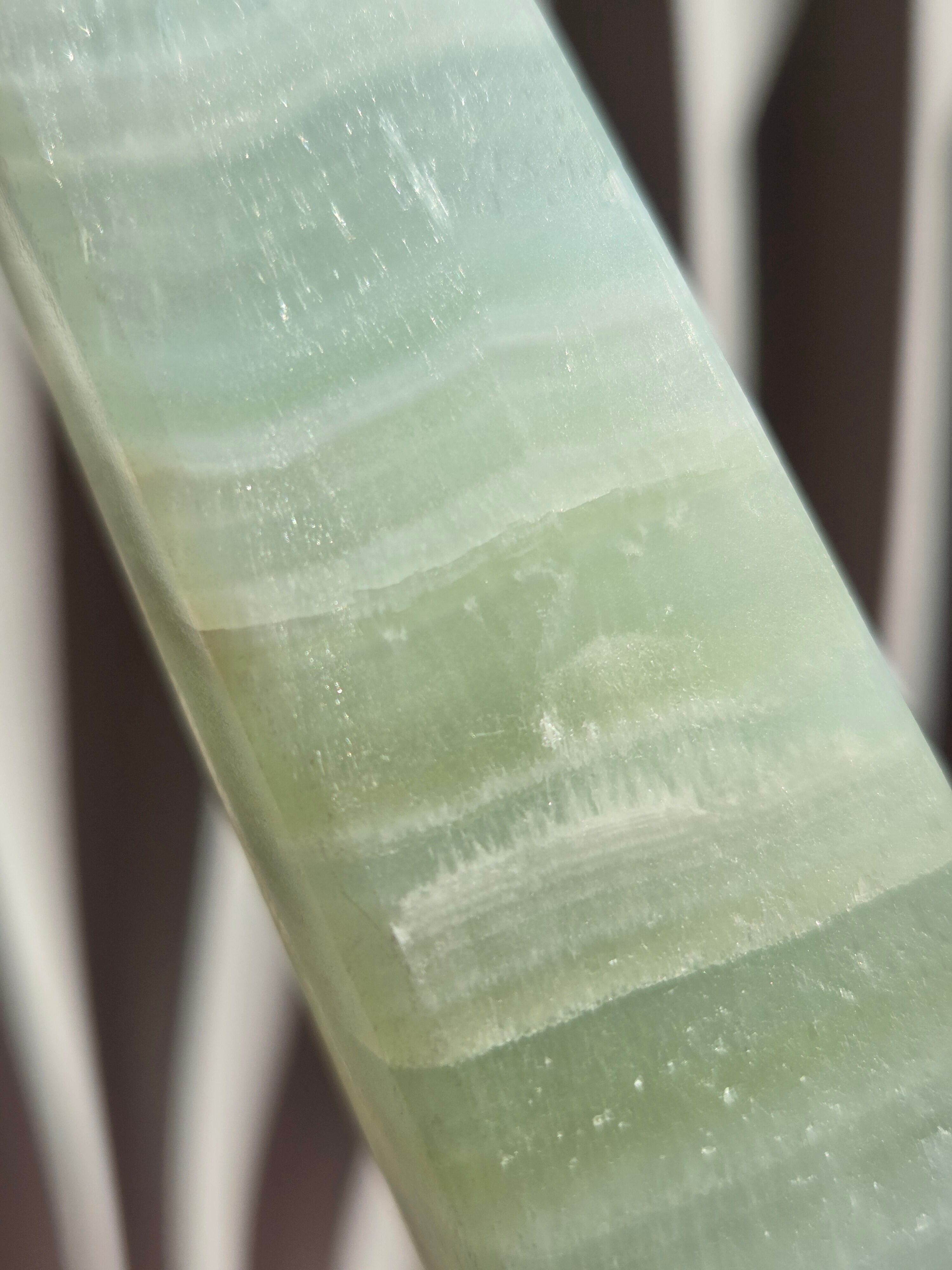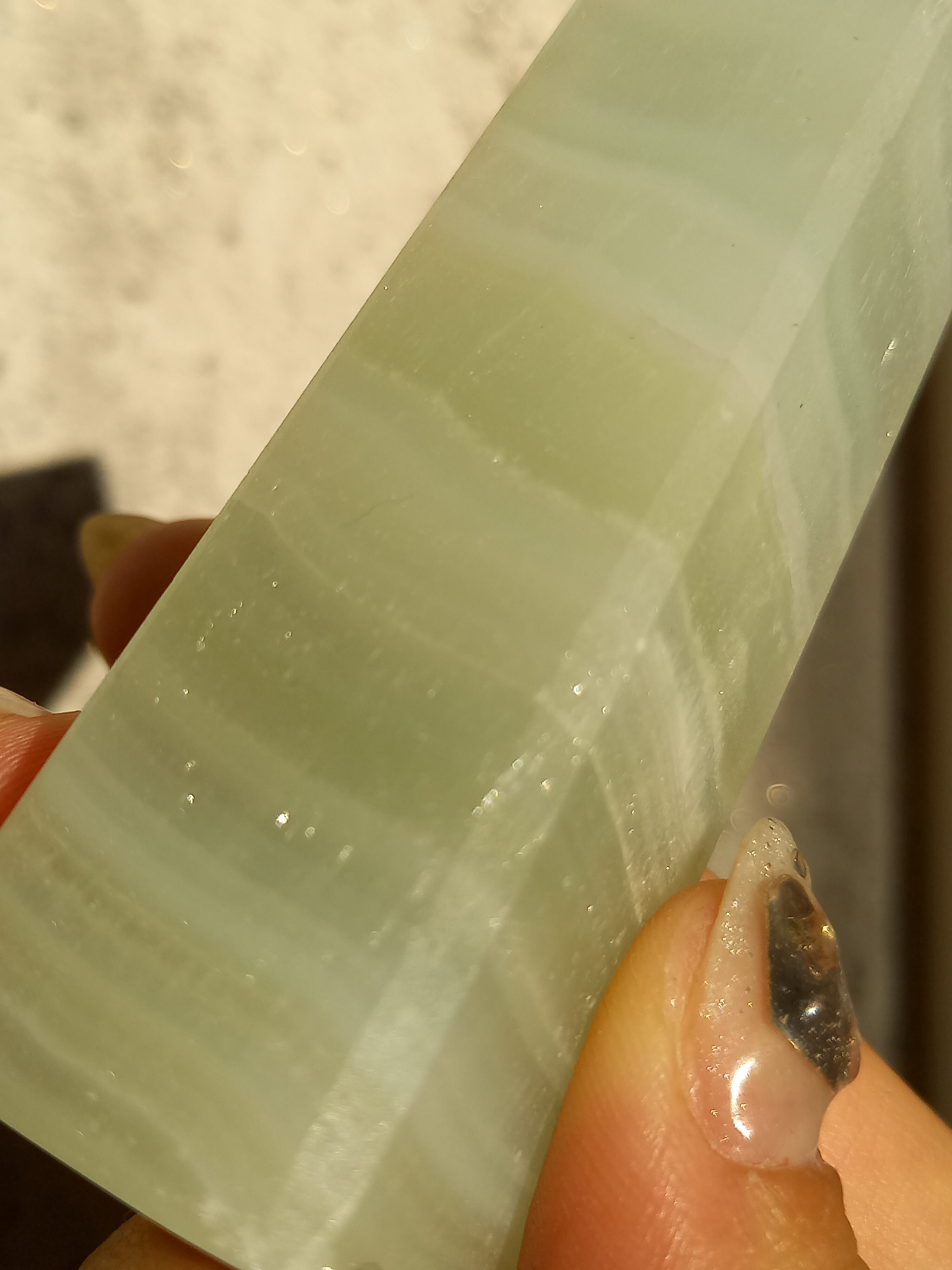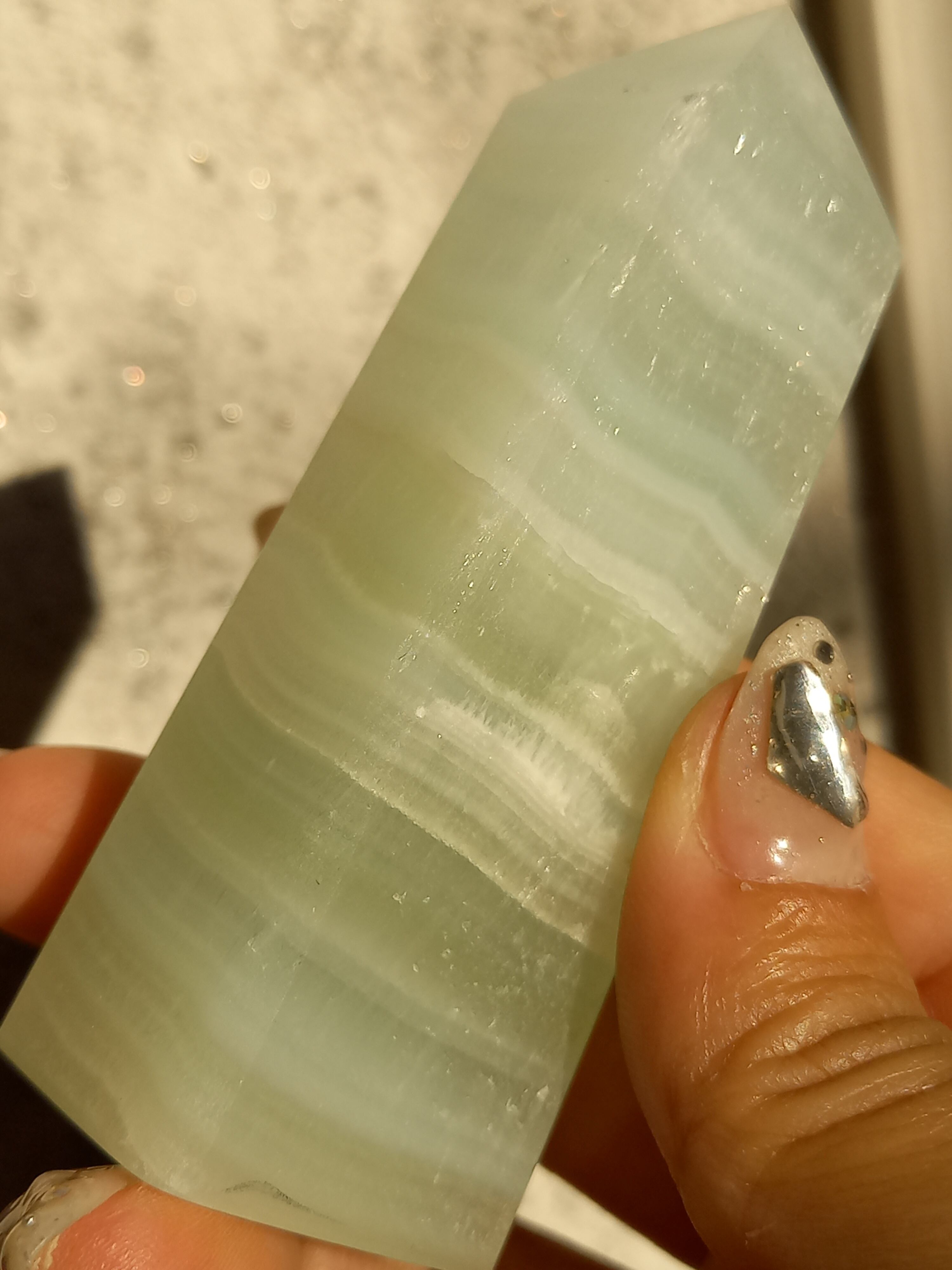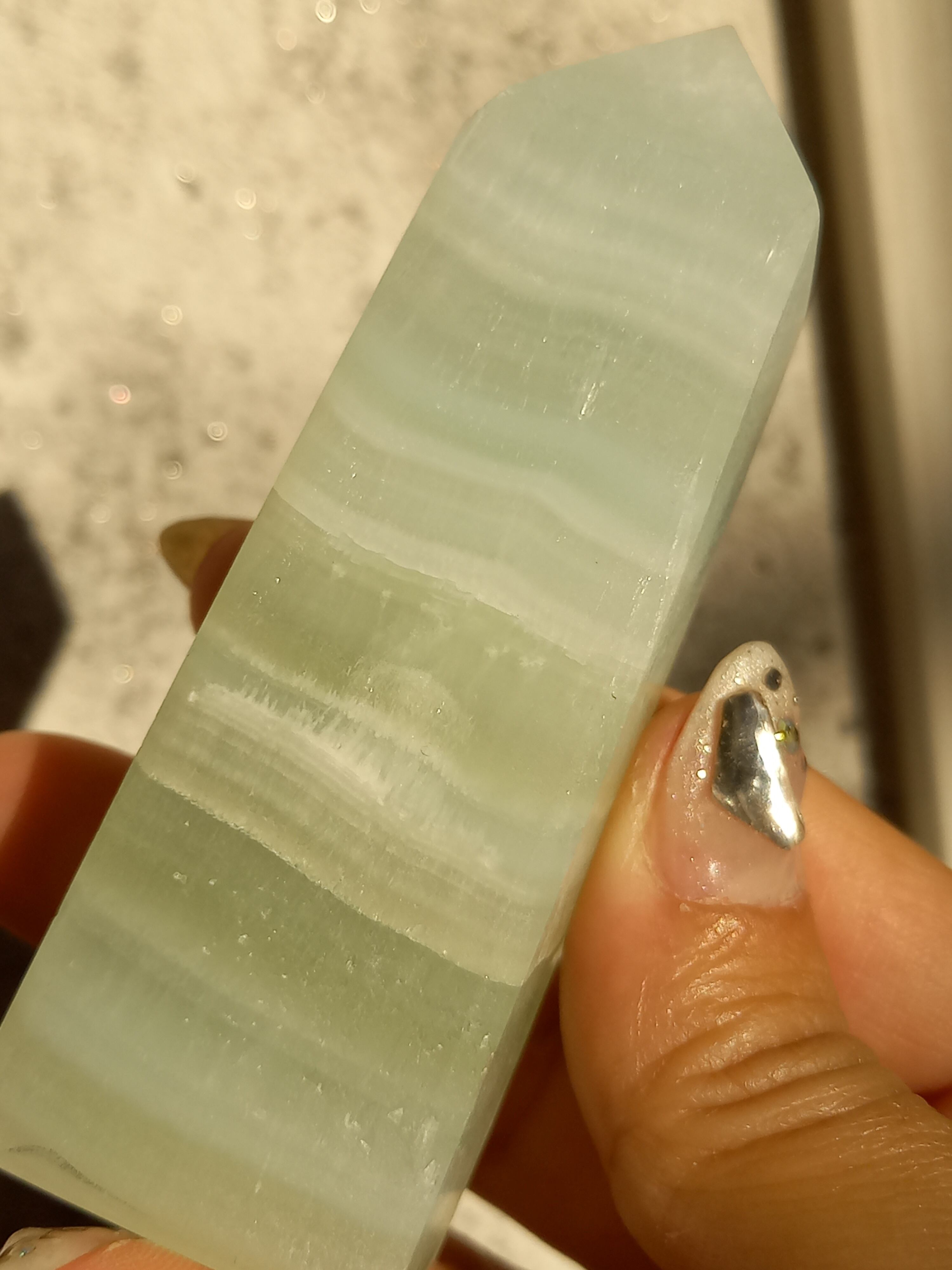 名前の通りピスタチオカラーで、カルサイト特有のシラーが私も大好物です。