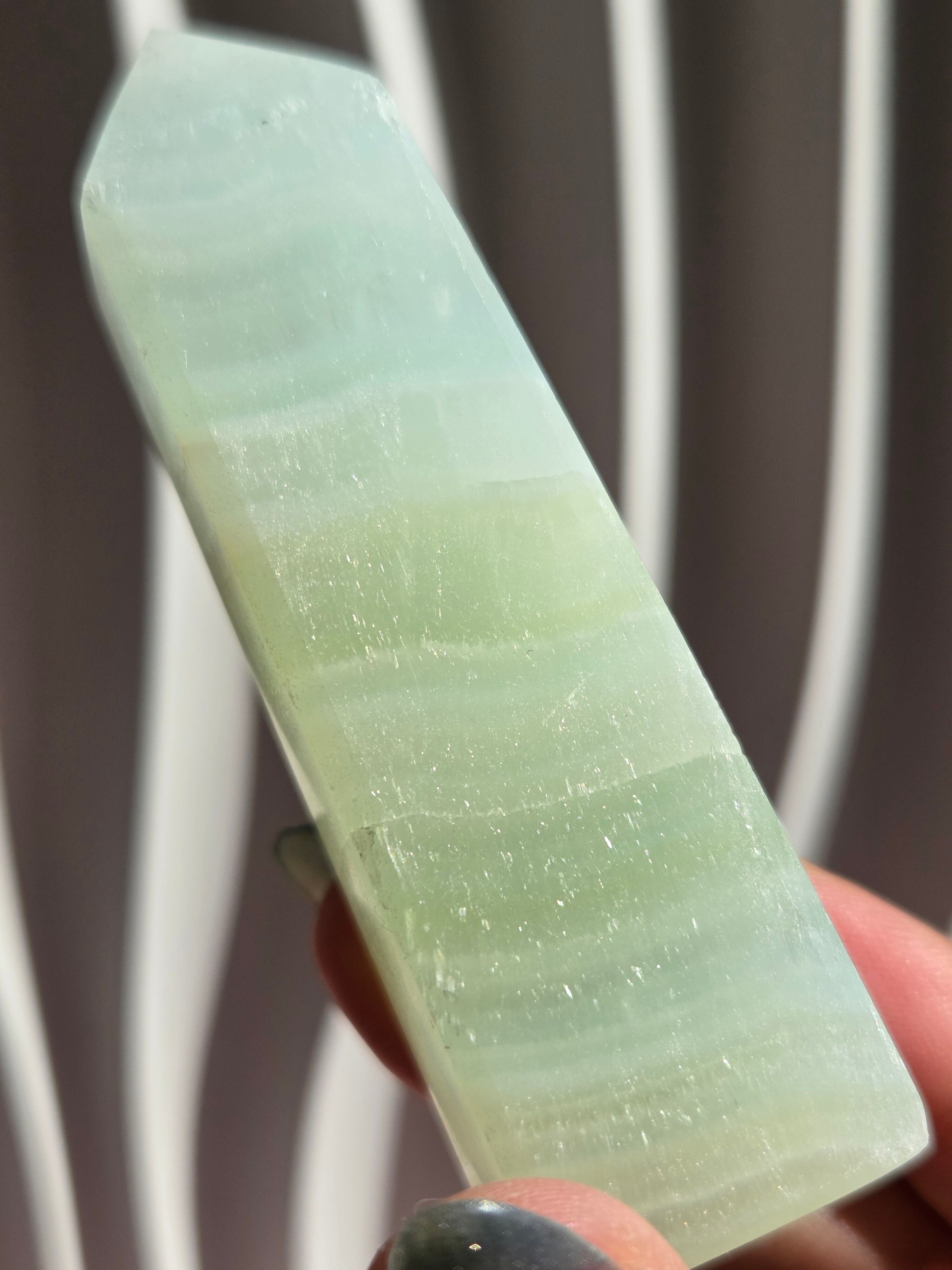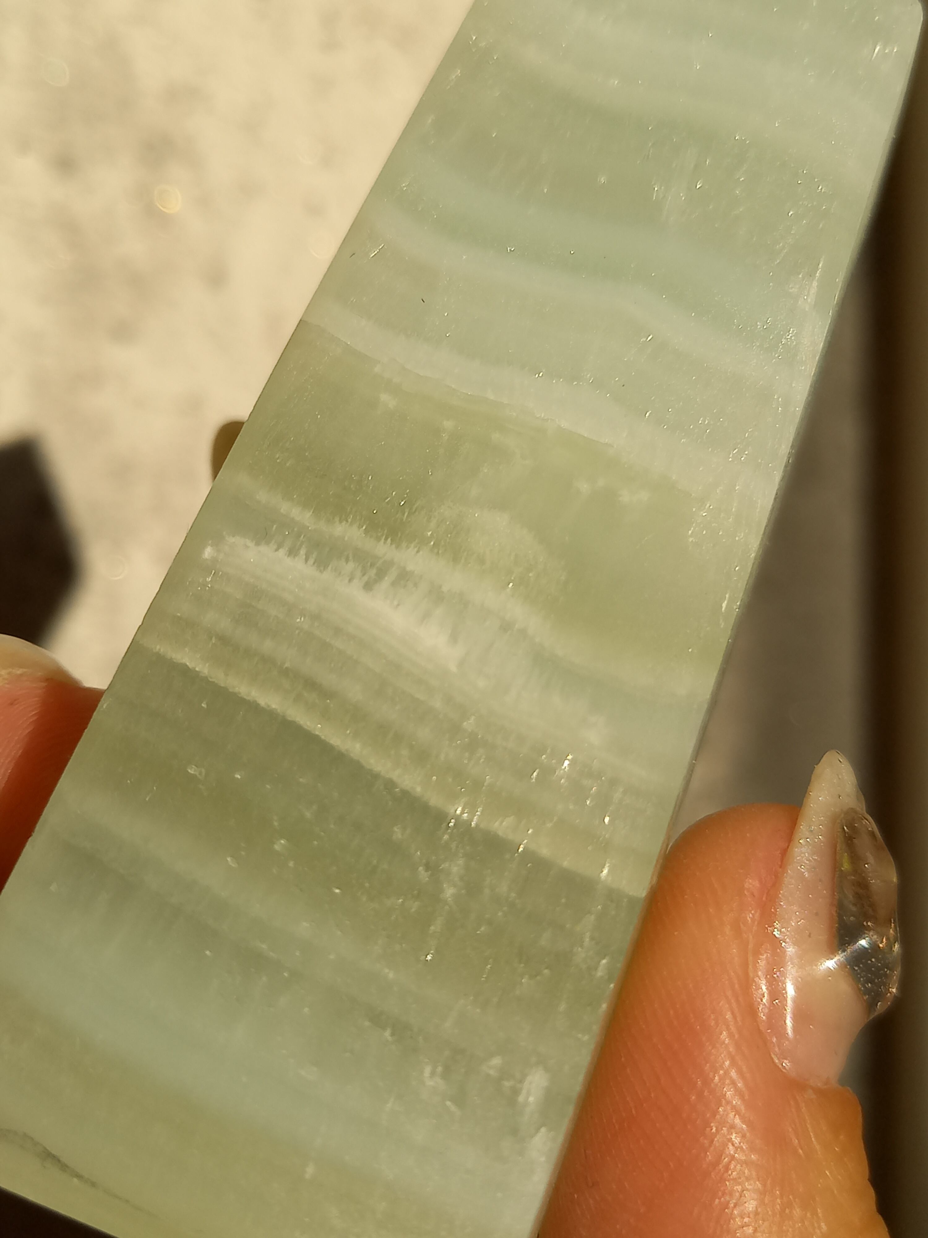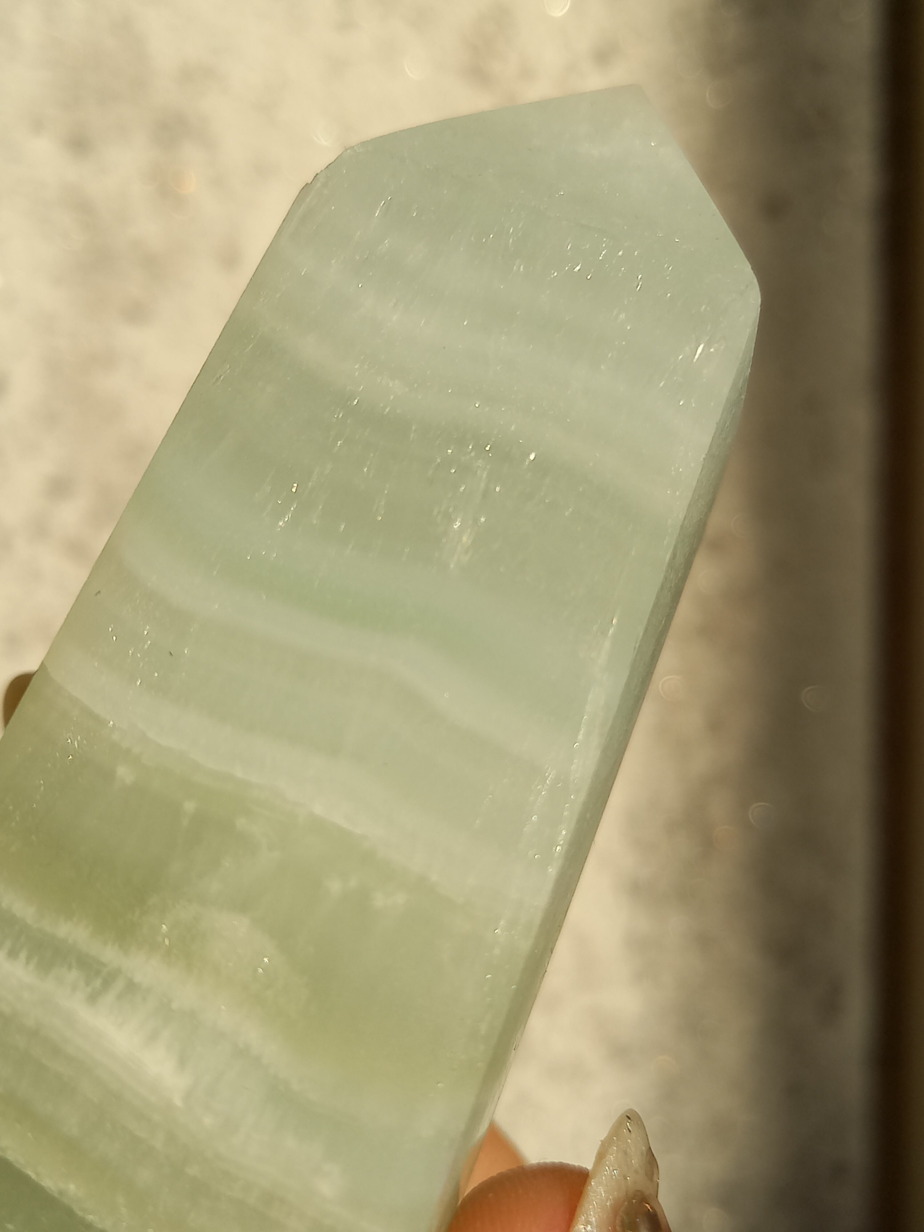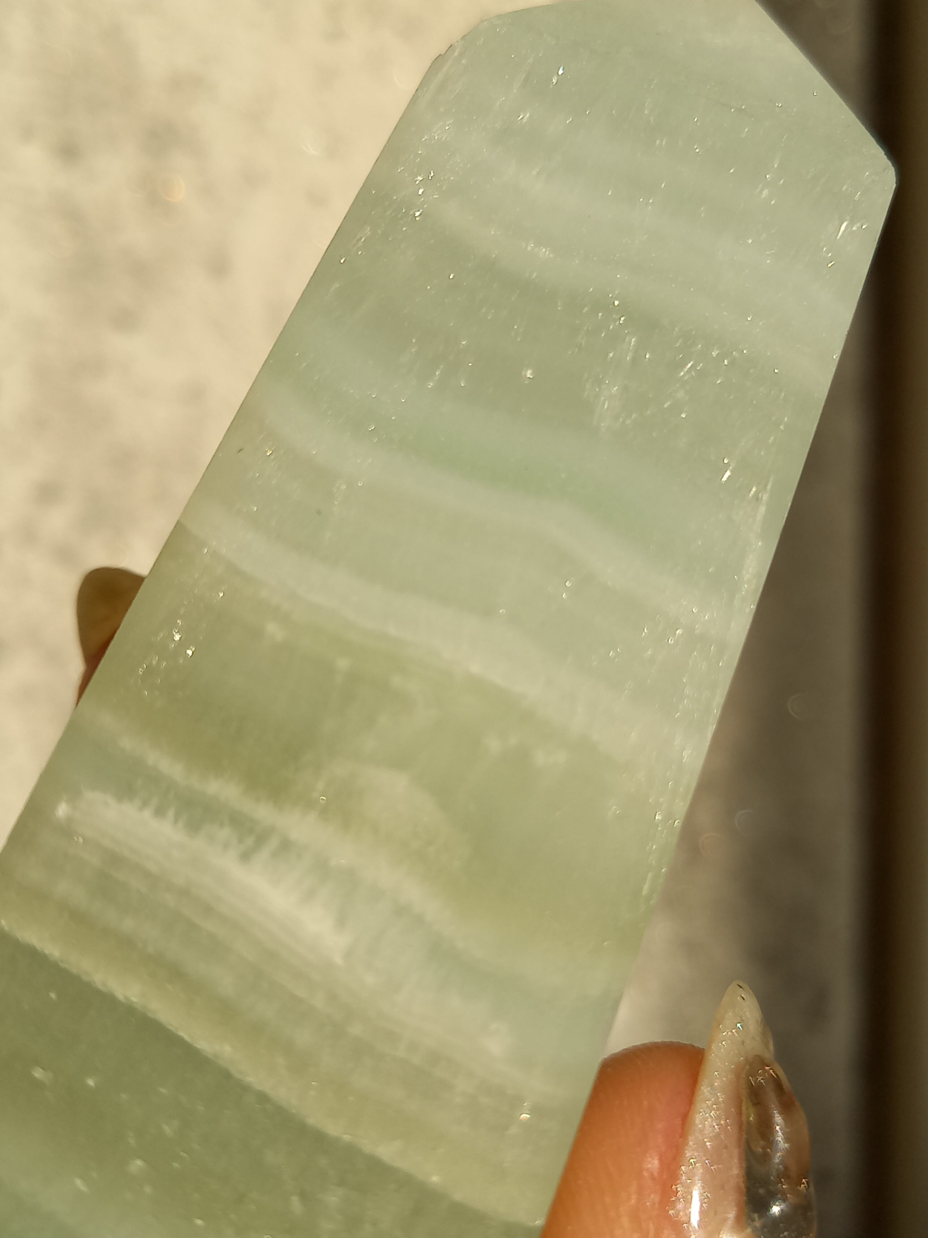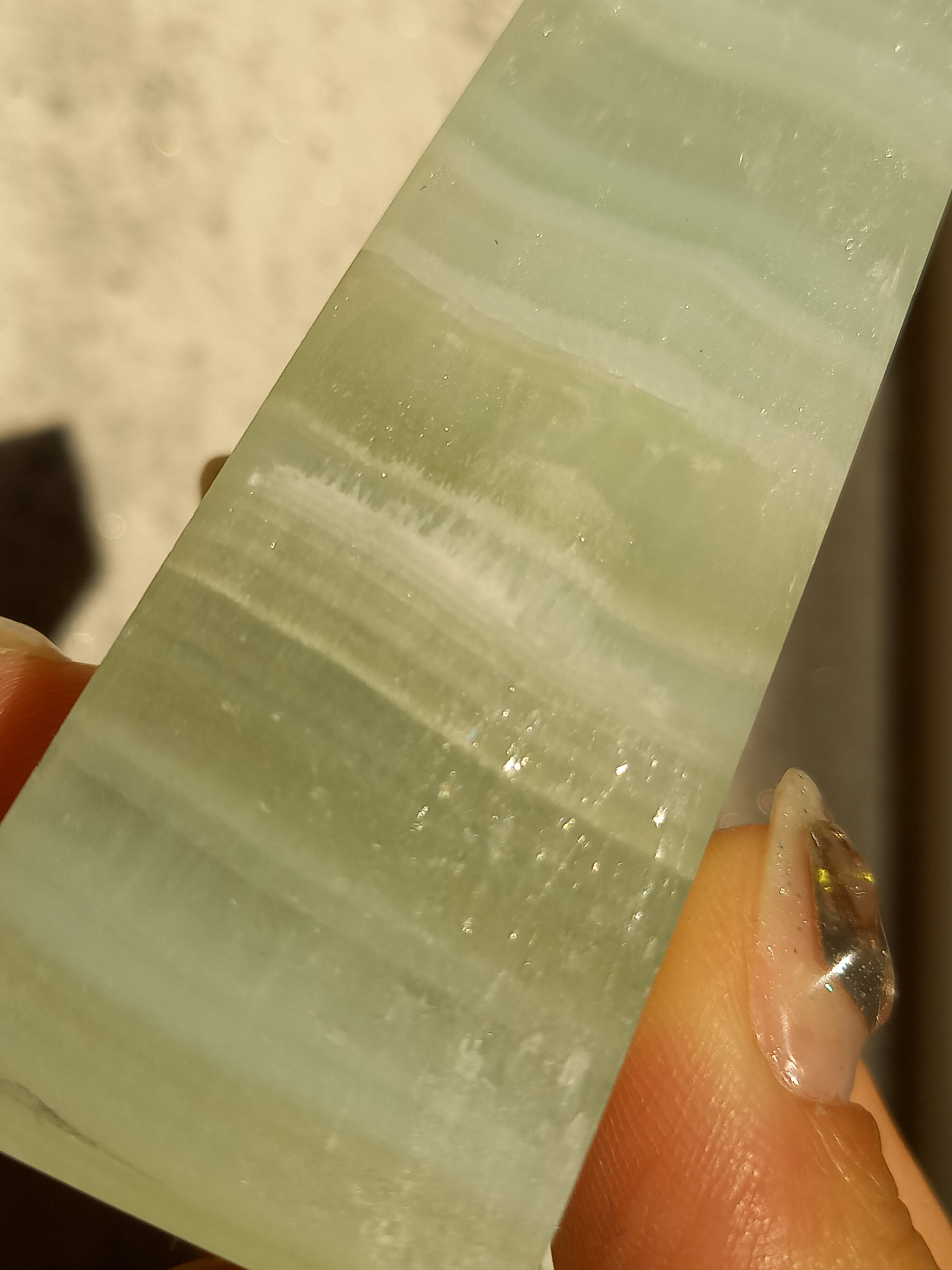 名前の通りピスタチオカラーで、カルサイト特有のシラーが私も大好物です。
