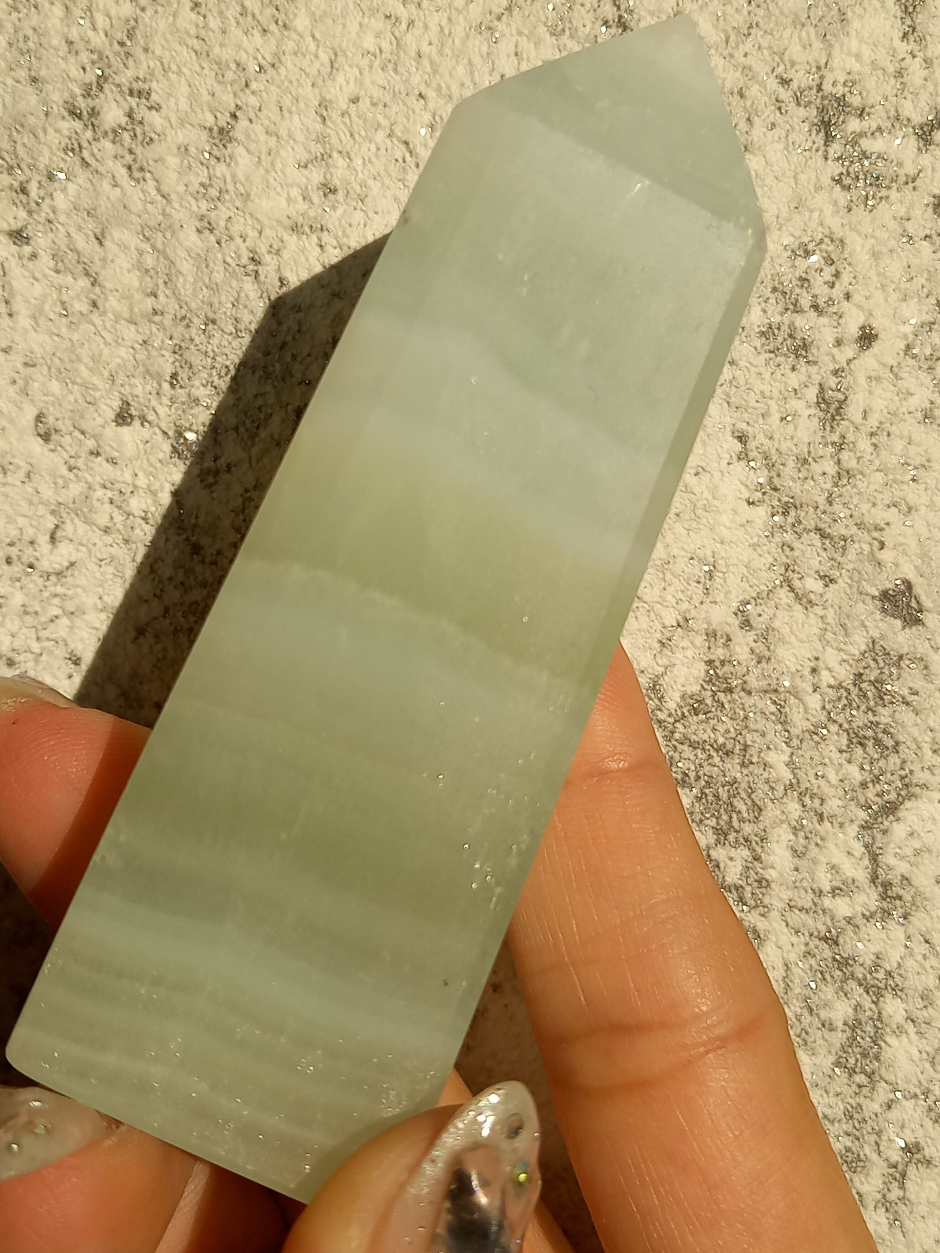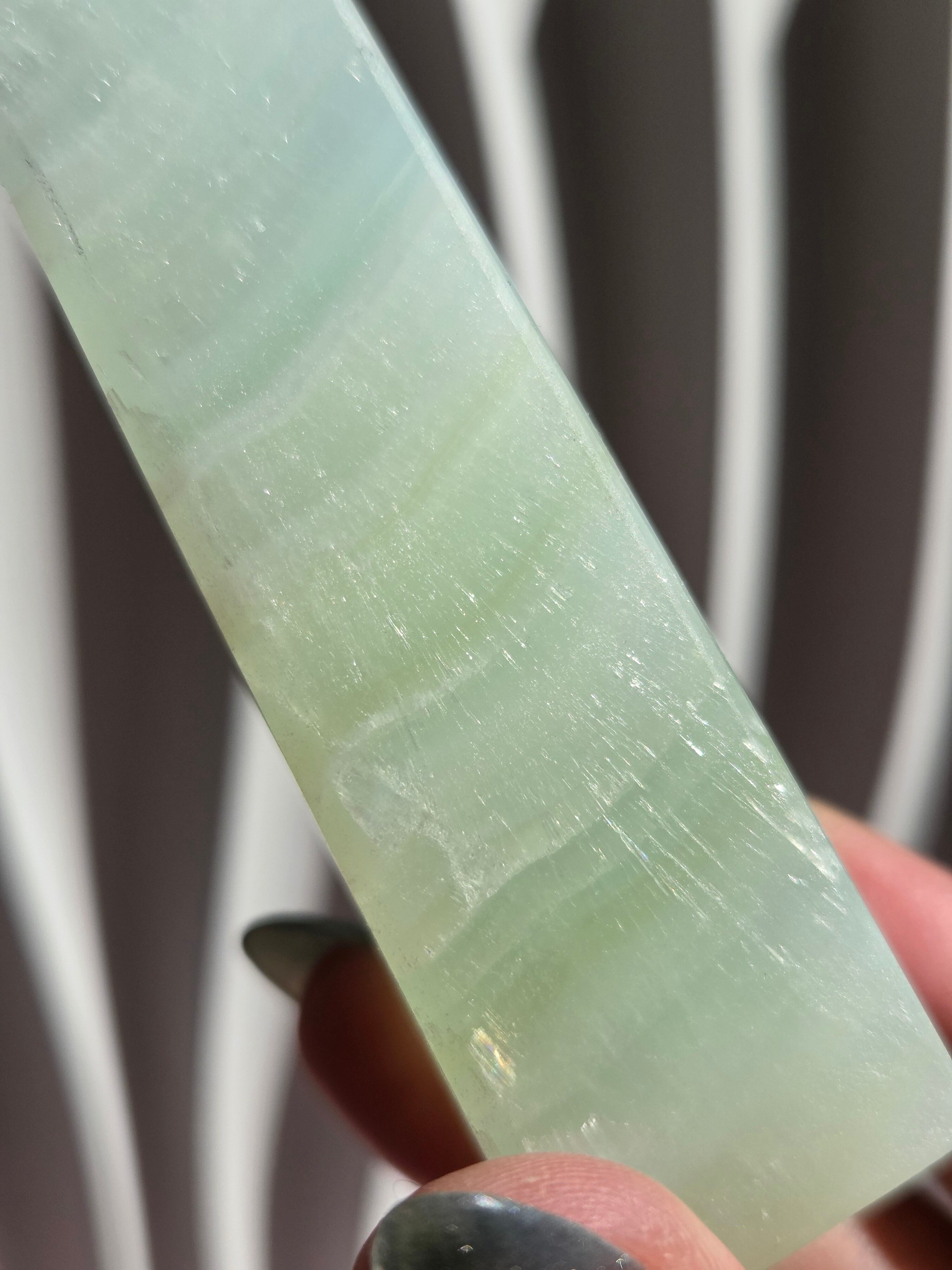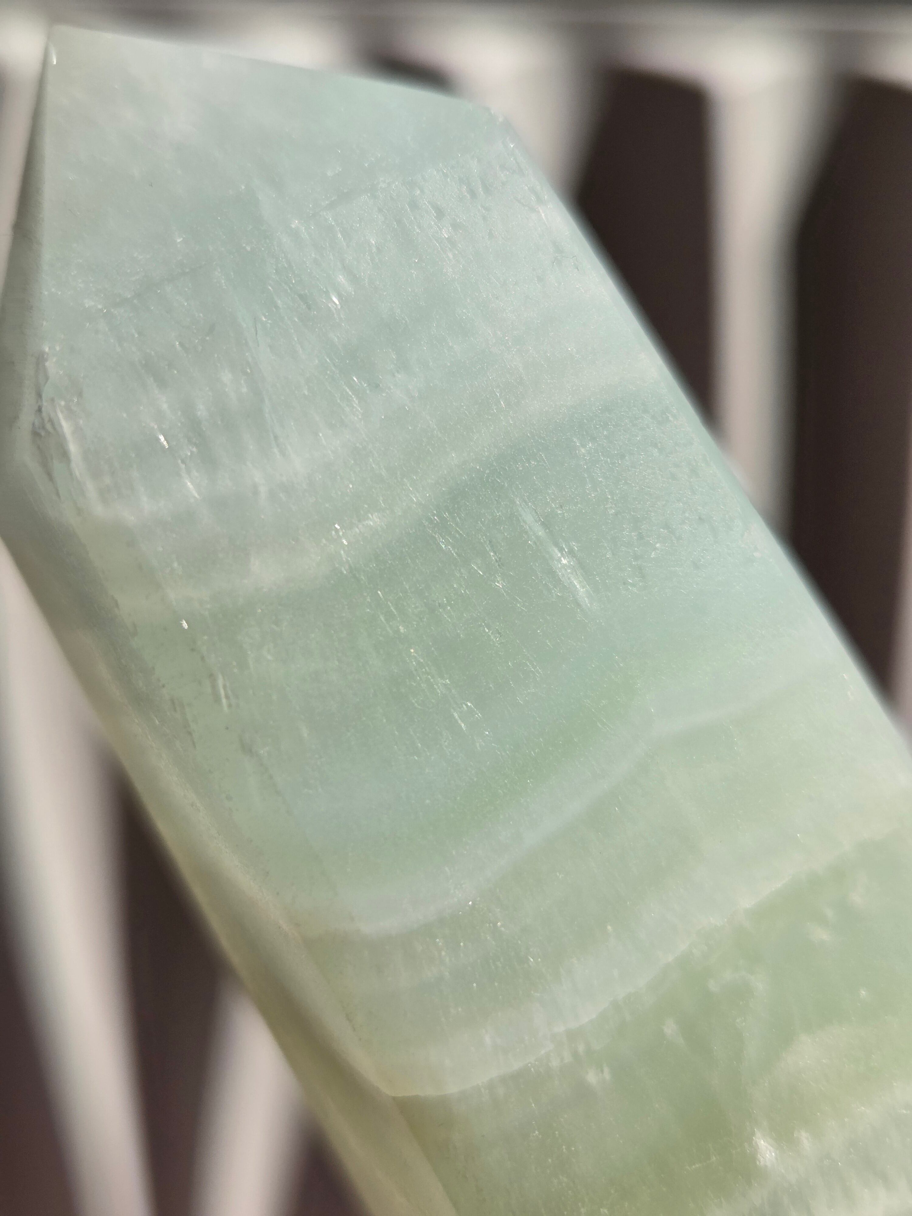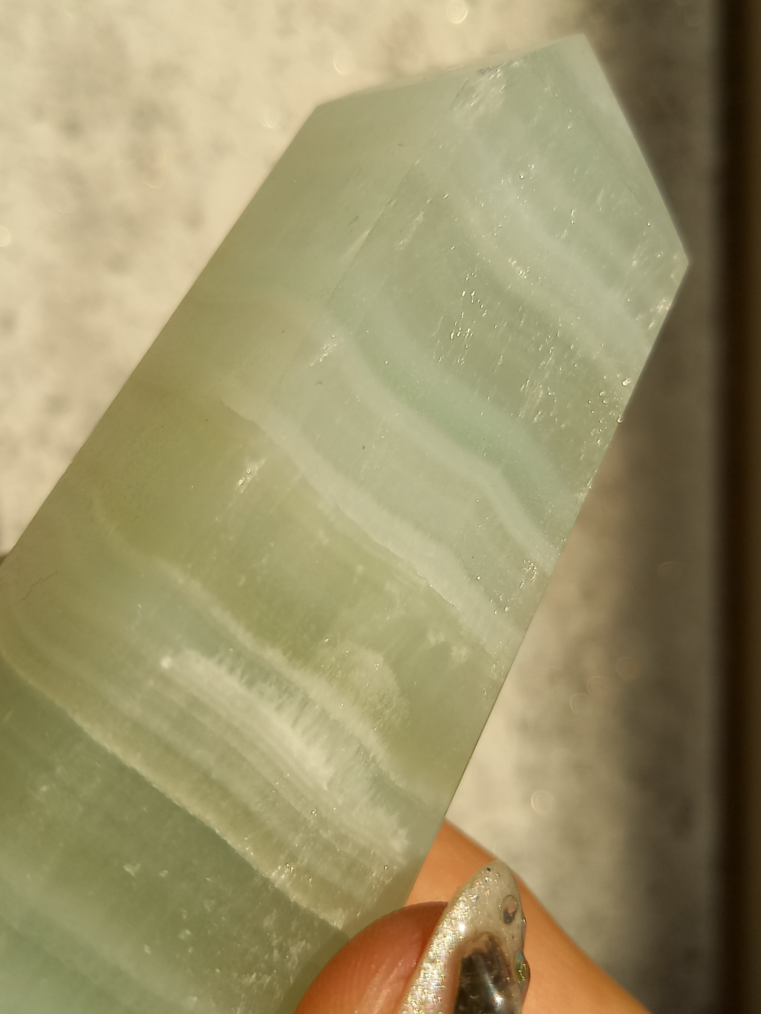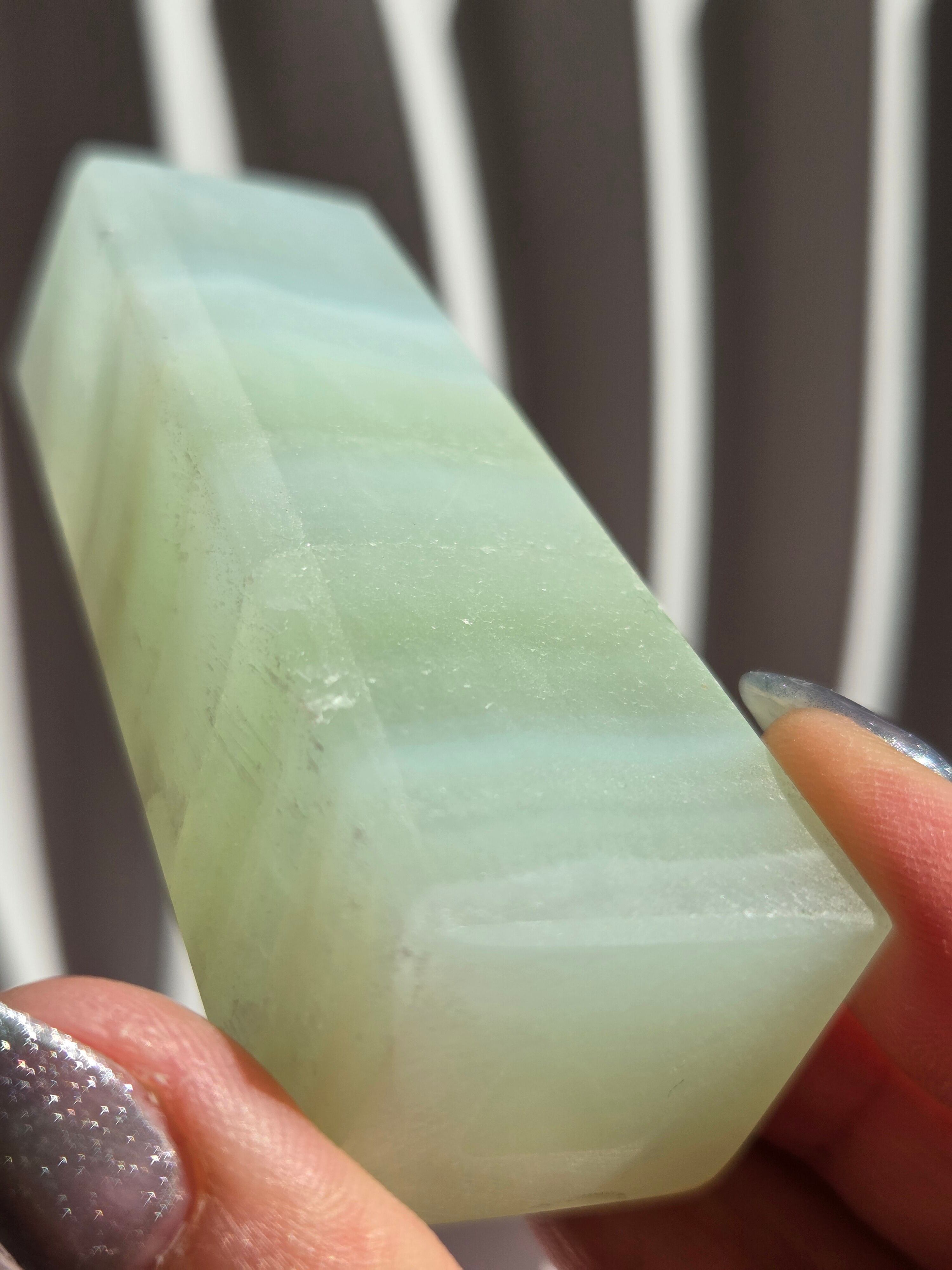 名前の通りピスタチオカラーで、カルサイト特有のシラーが私も大好物です。
