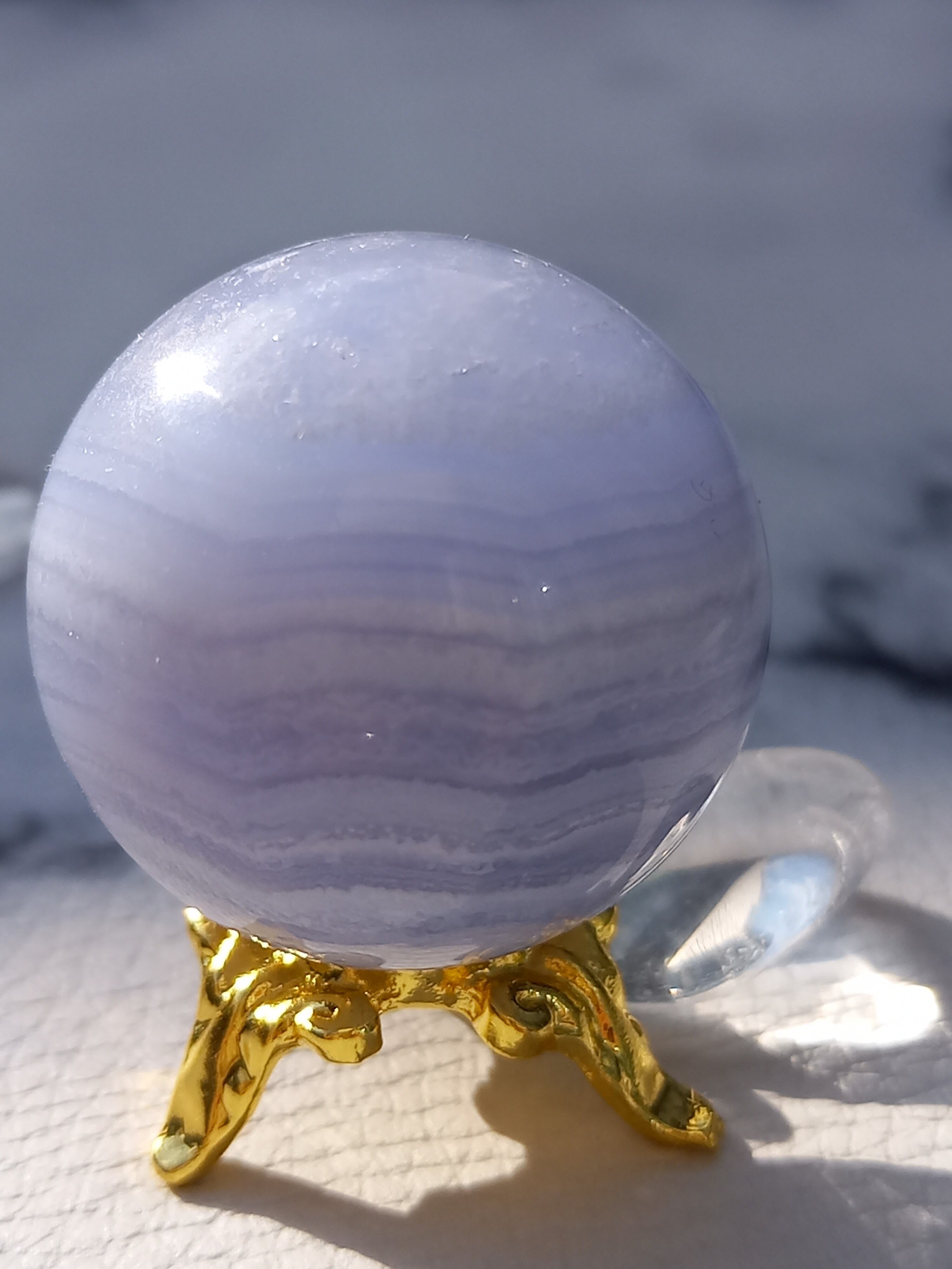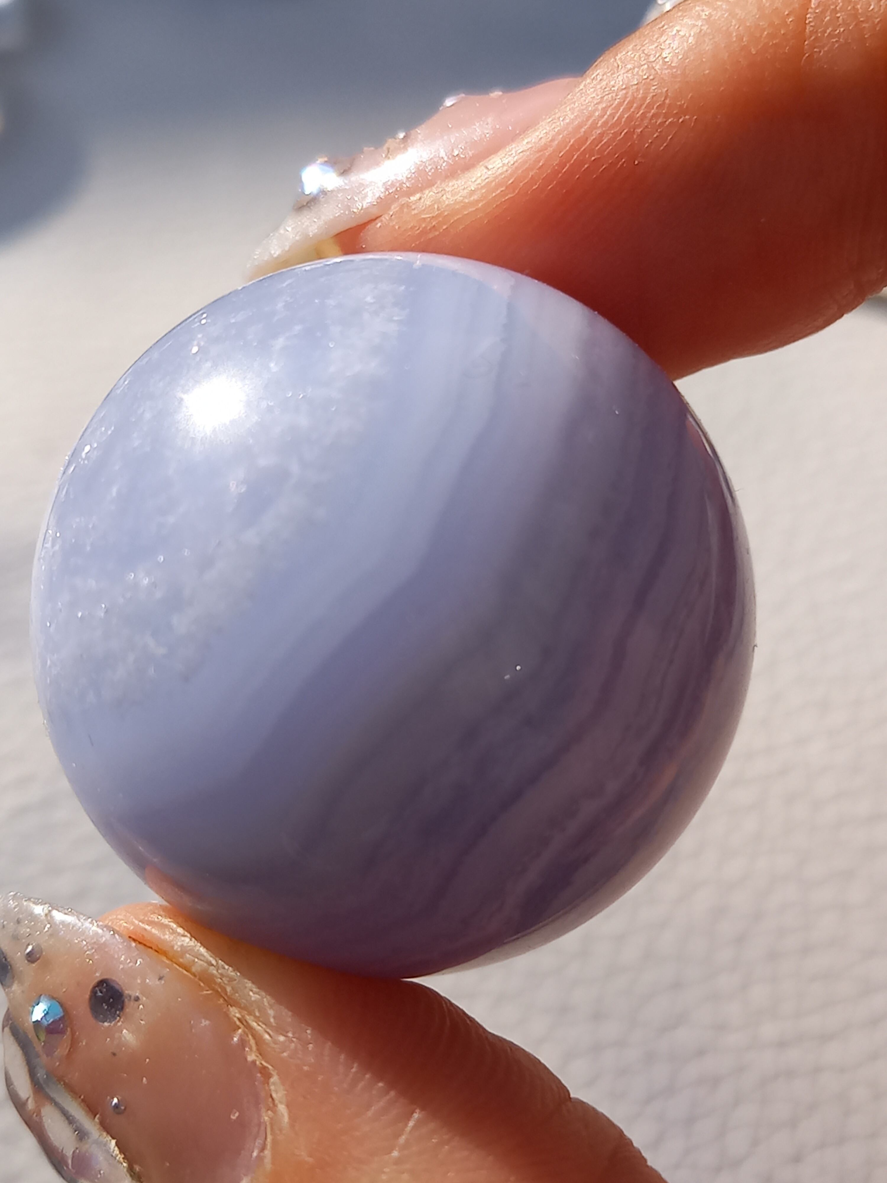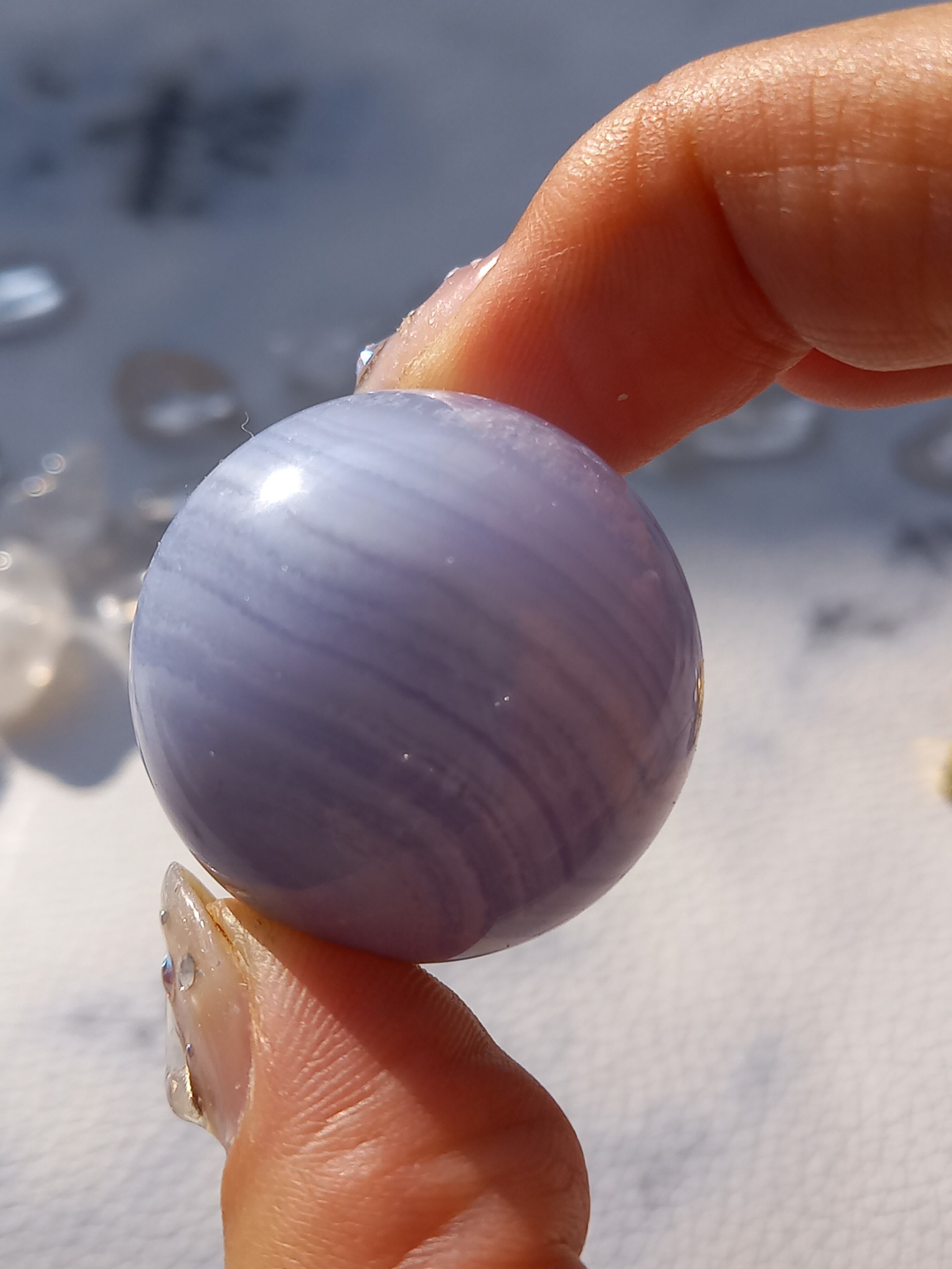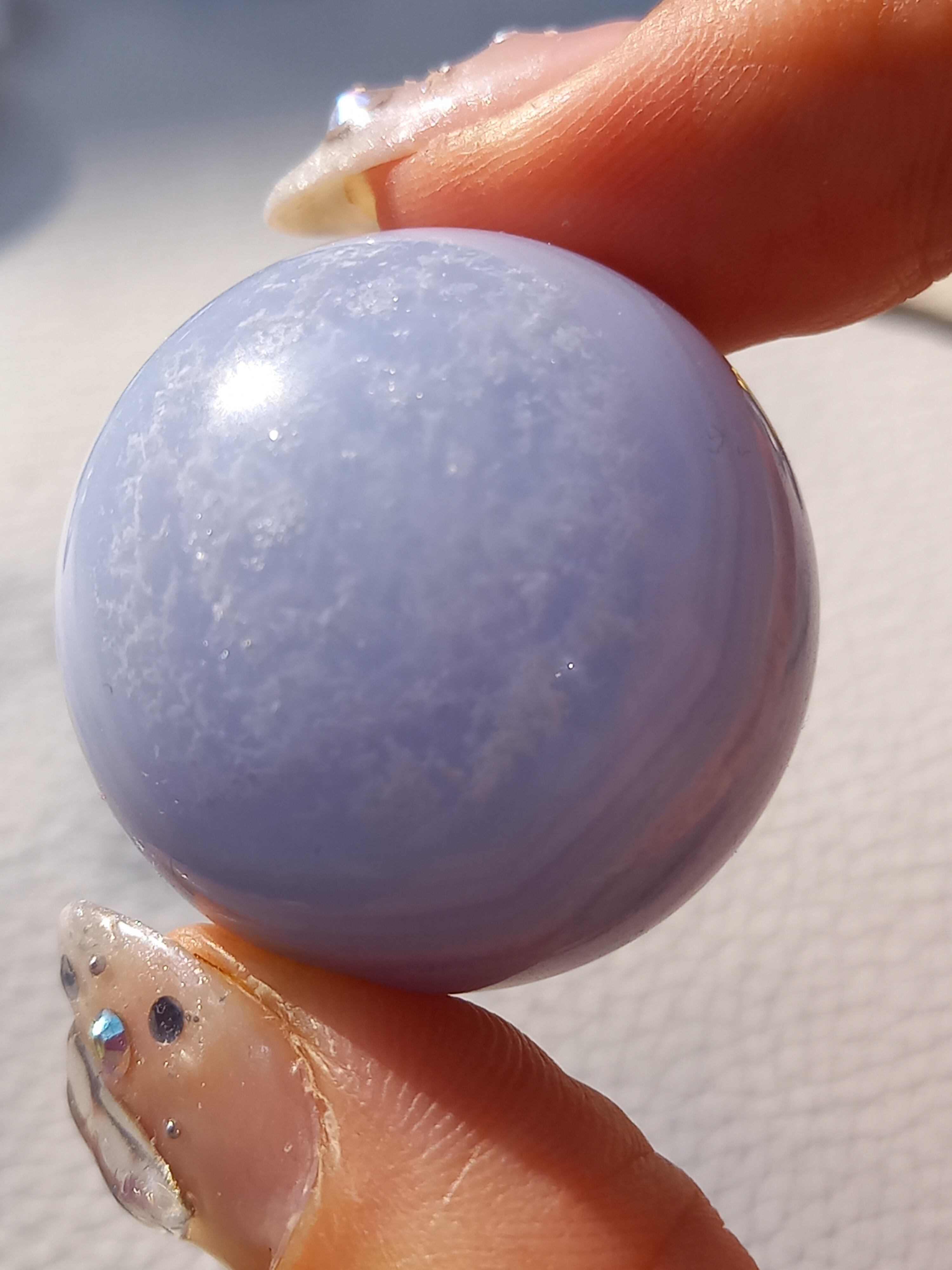 ブルーレースアゲートは、高いヒーリングパワーと鎮静力を持ち、穏やかで平和なエネルギーで包み込んでくれて、ストレスや感情の乱れを取り除き、リラックスさせてくれる効果があると言われています。