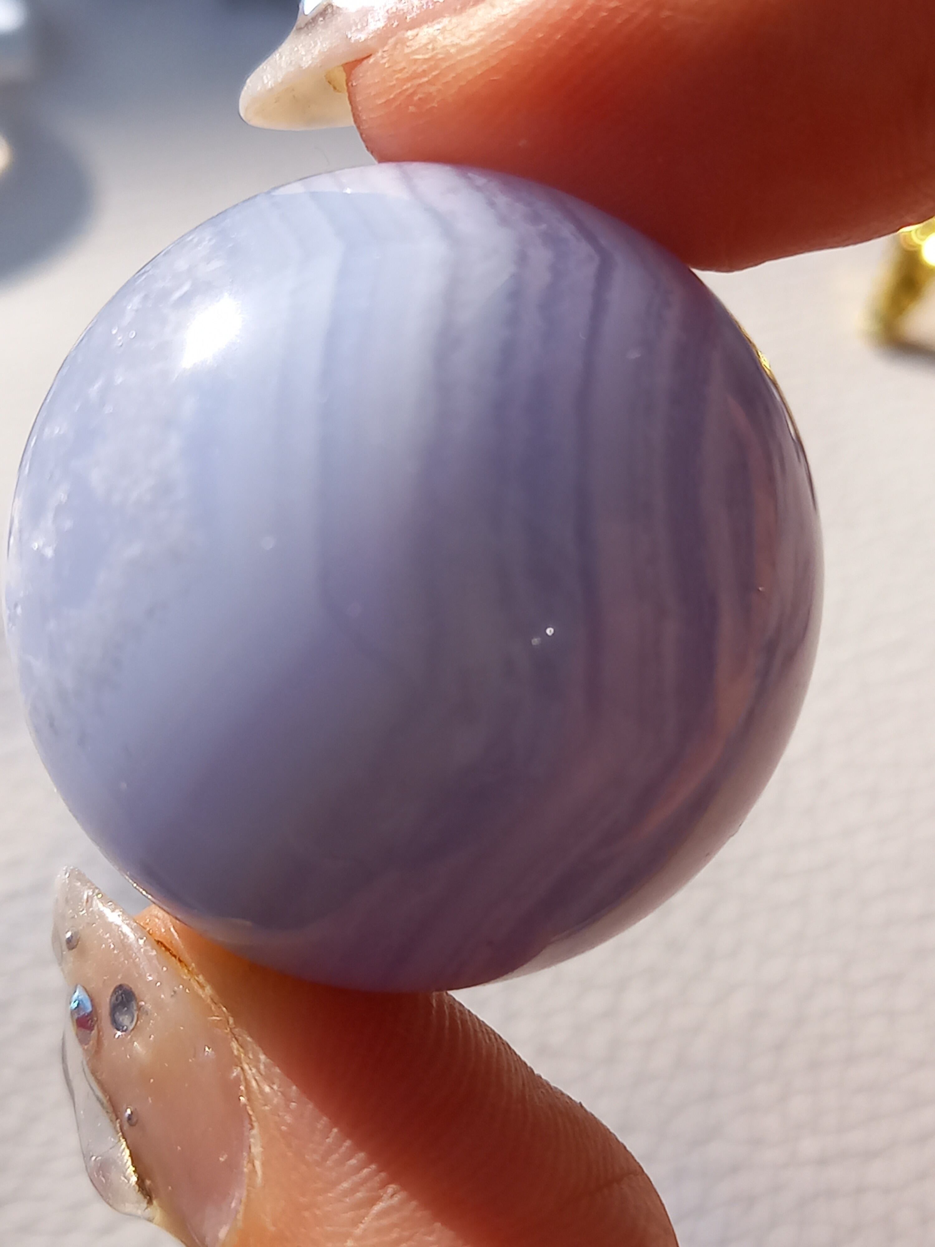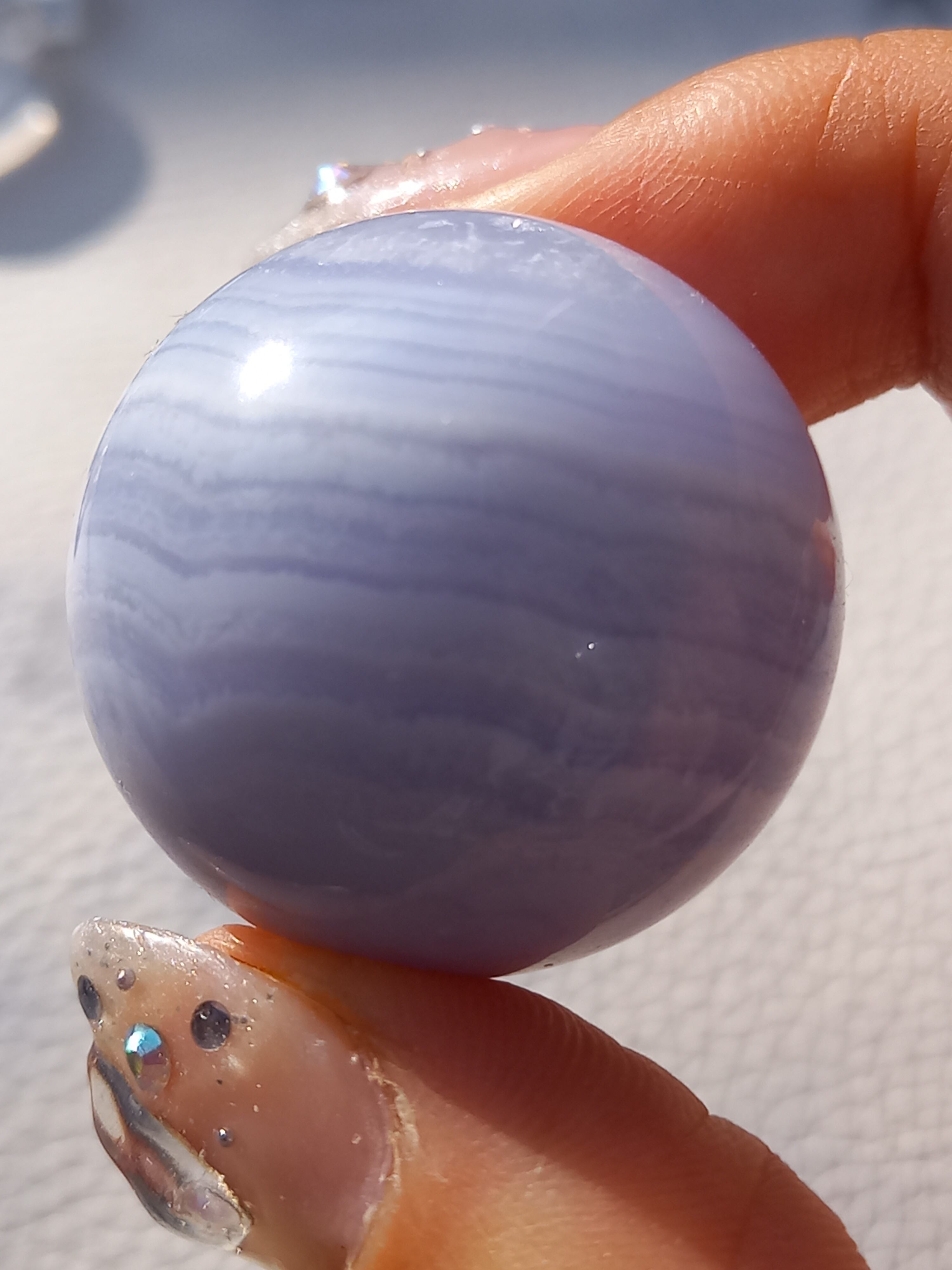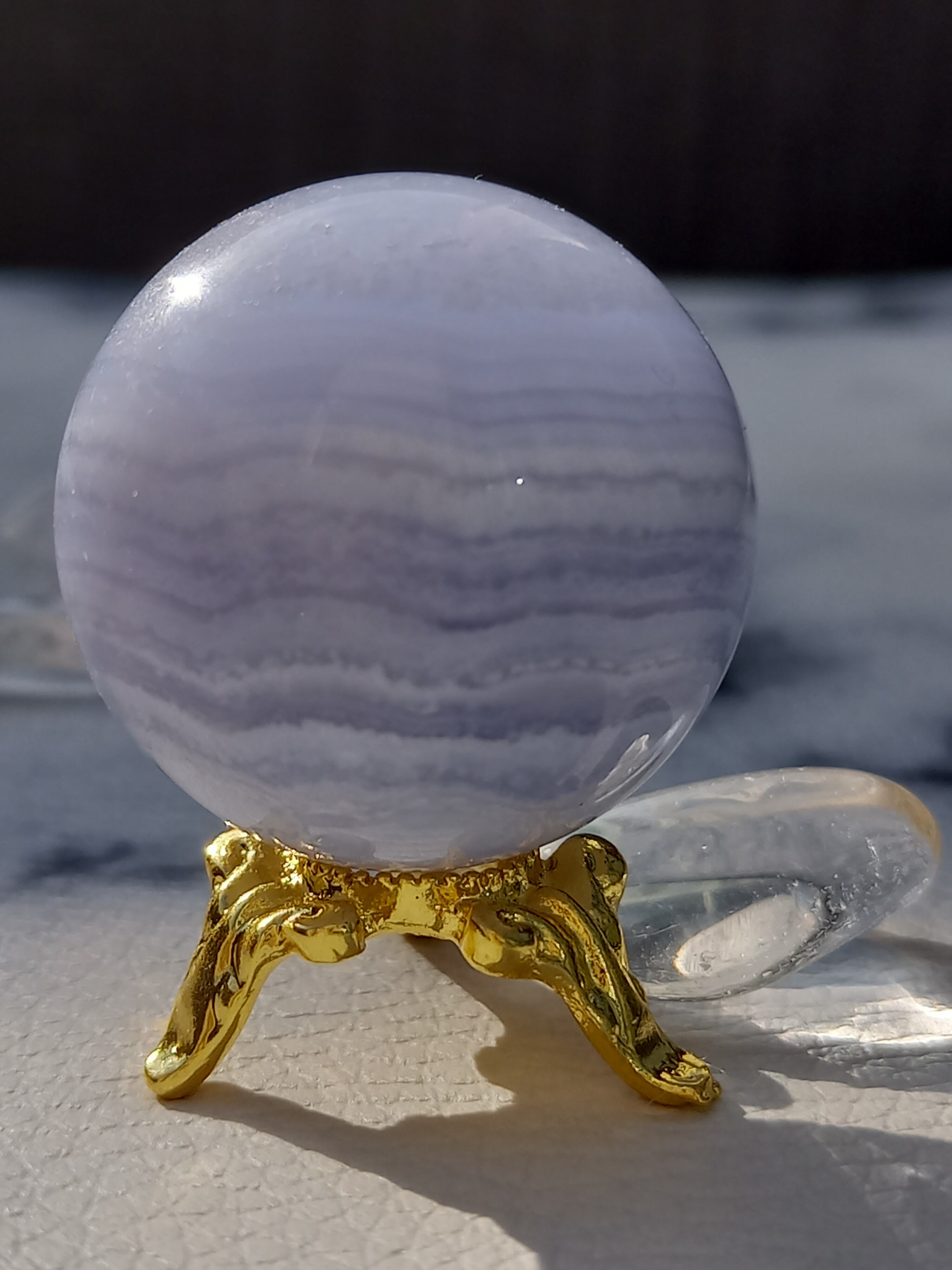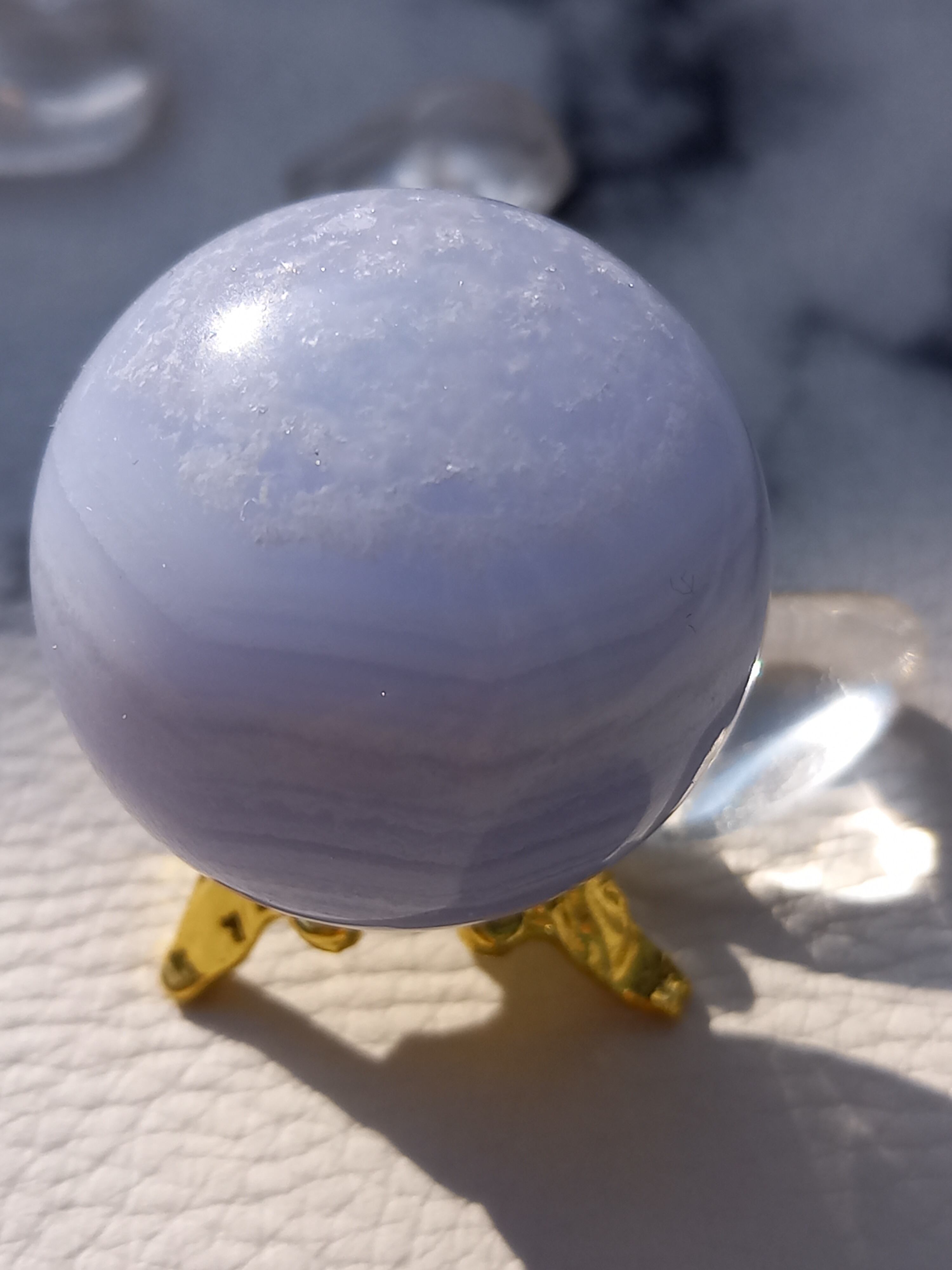 ブルーレースアゲートは、高いヒーリングパワーと鎮静力を持ち、穏やかで平和なエネルギーで包み込んでくれて、ストレスや感情の乱れを取り除き、リラックスさせてくれる効果があると言われています。
