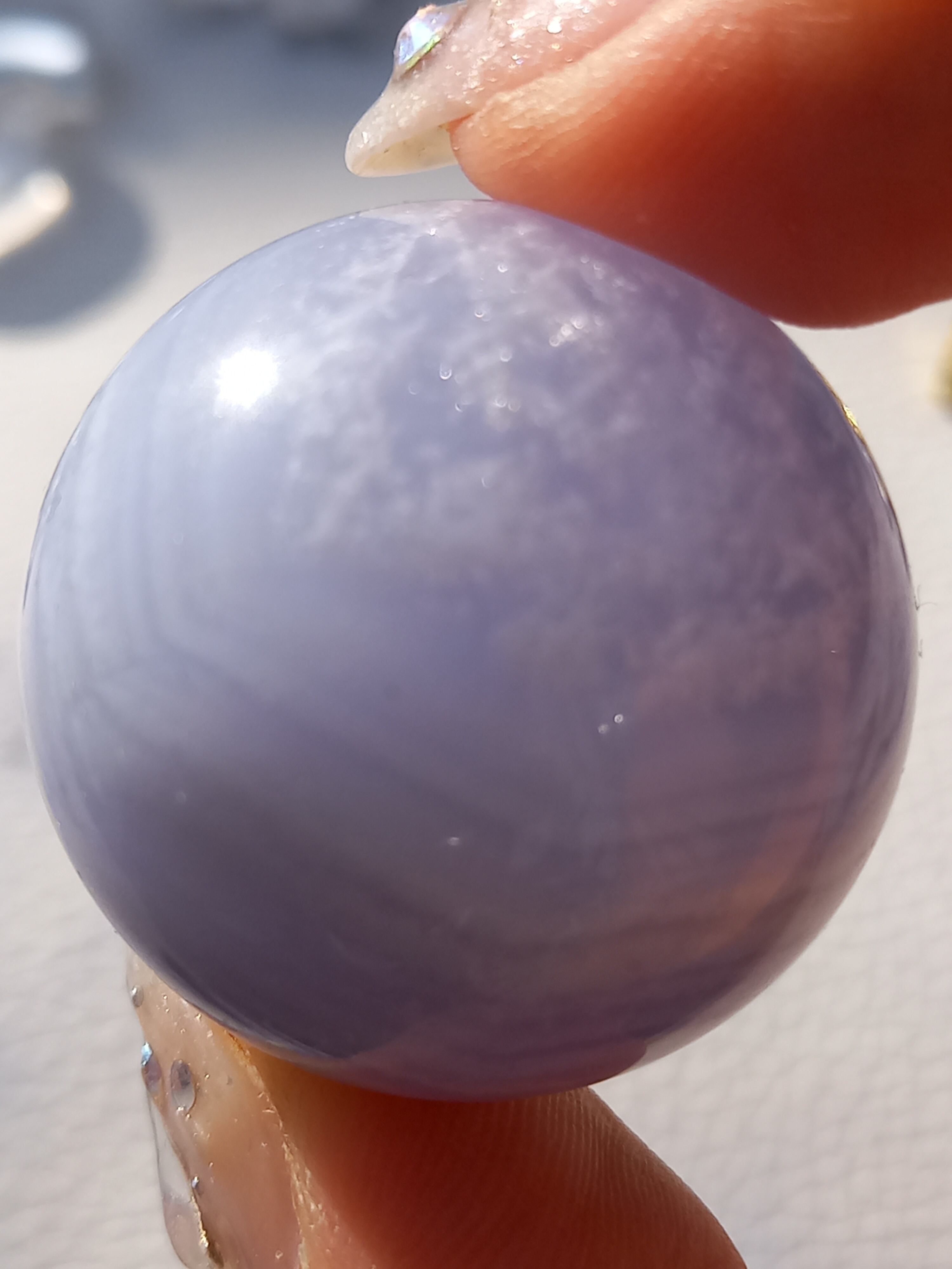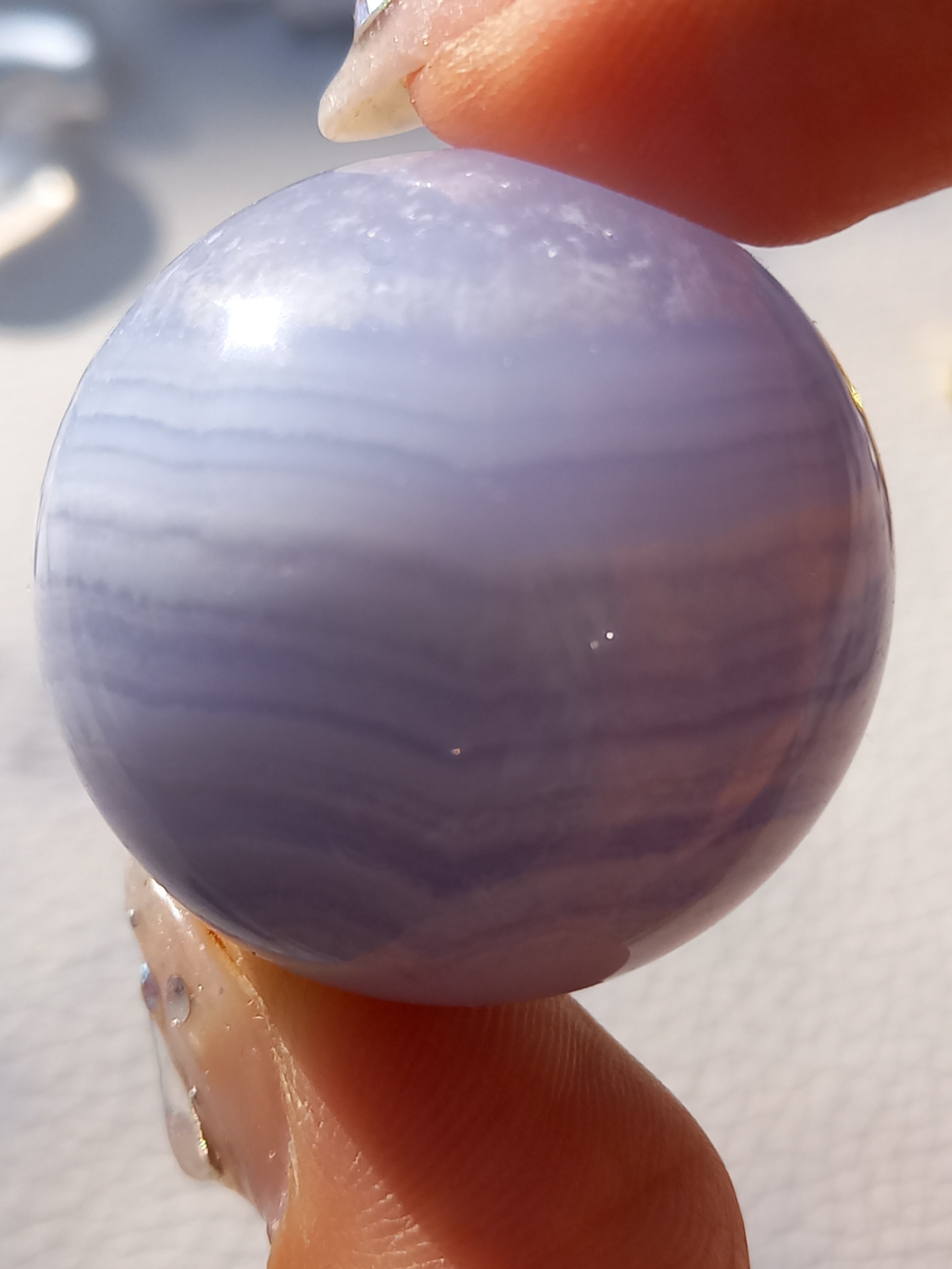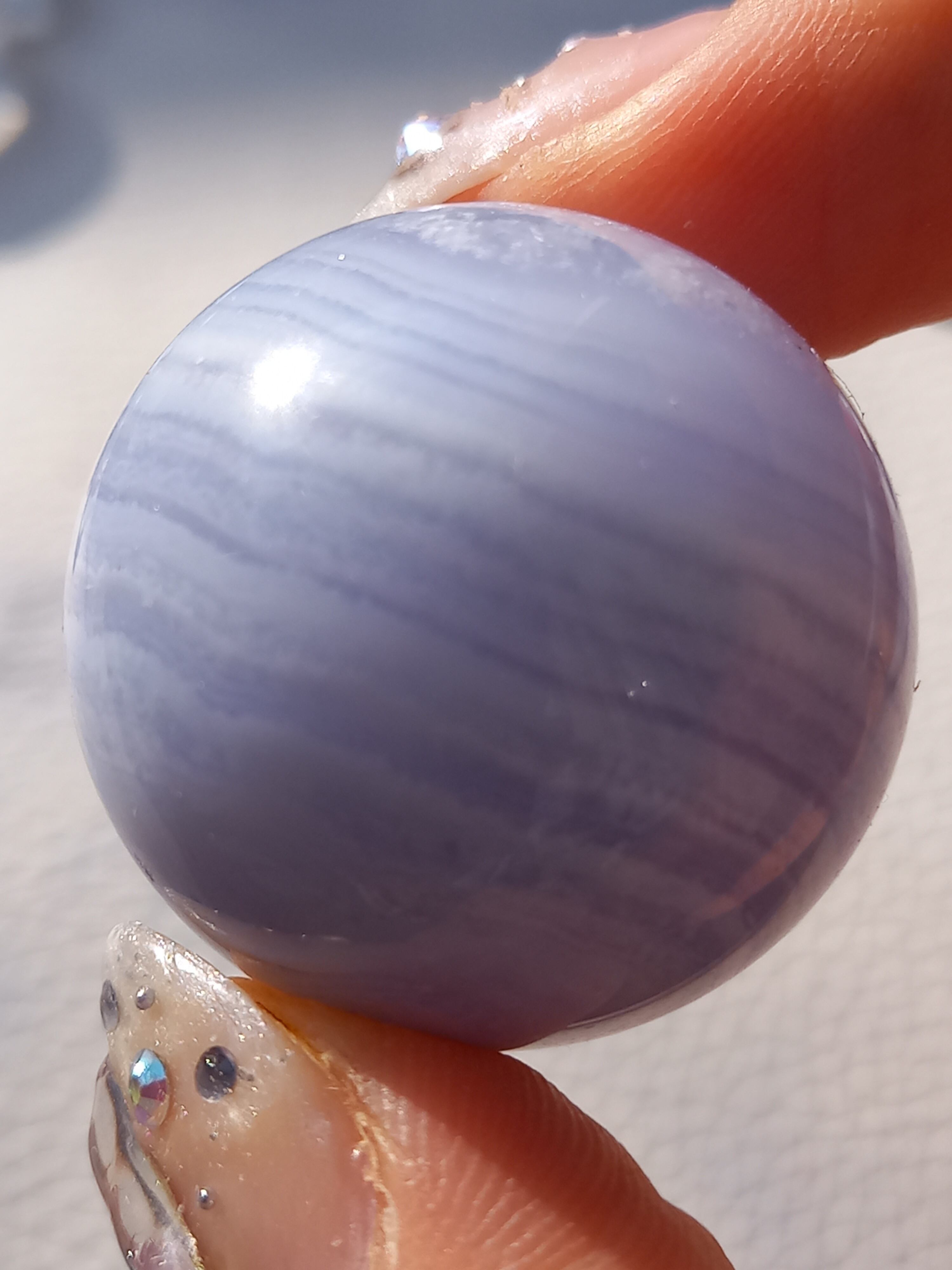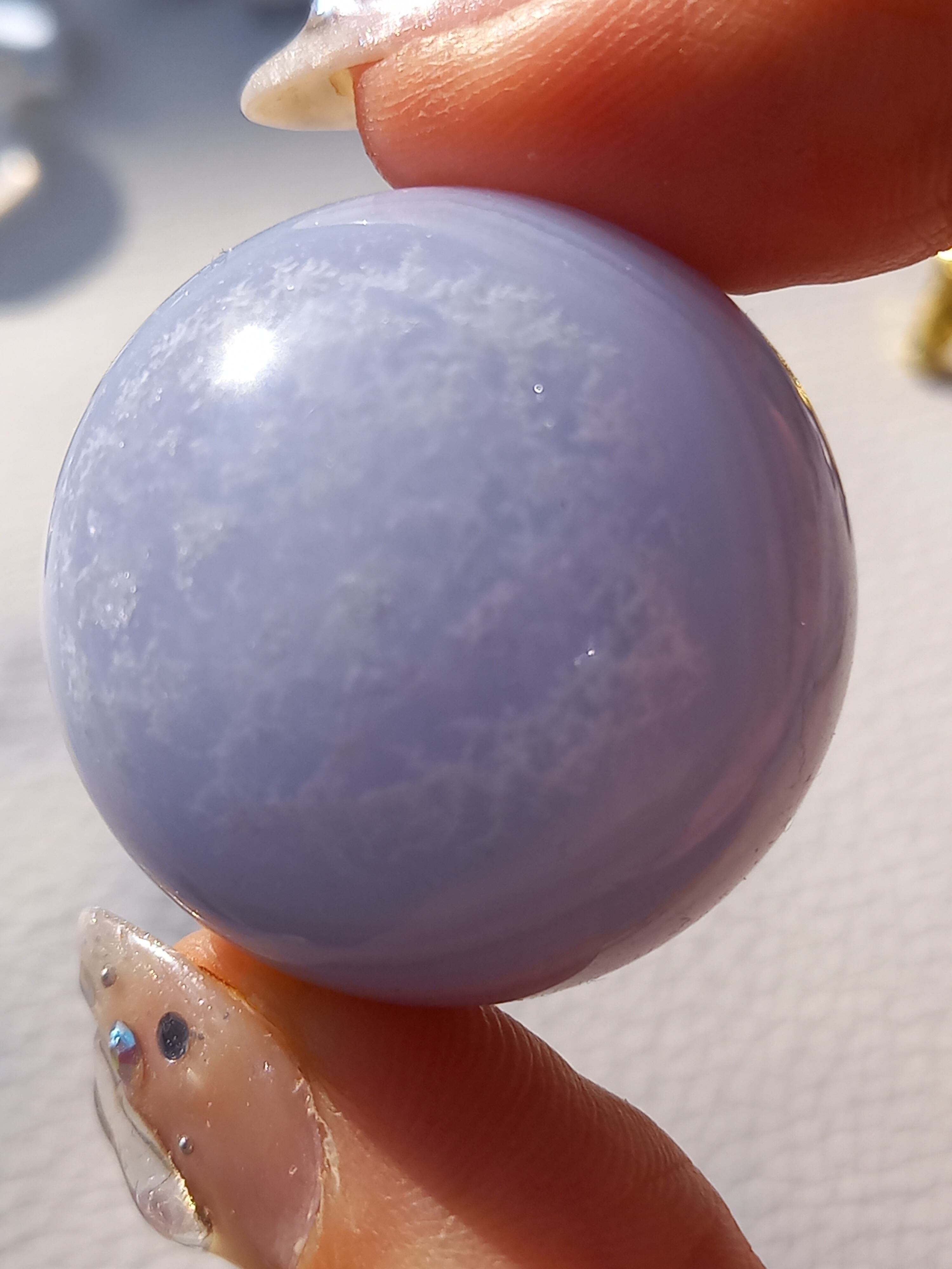 ブルーレースアゲートは、高いヒーリングパワーと鎮静力を持ち、穏やかで平和なエネルギーで包み込んでくれて、ストレスや感情の乱れを取り除き、リラックスさせてくれる効果があると言われています。