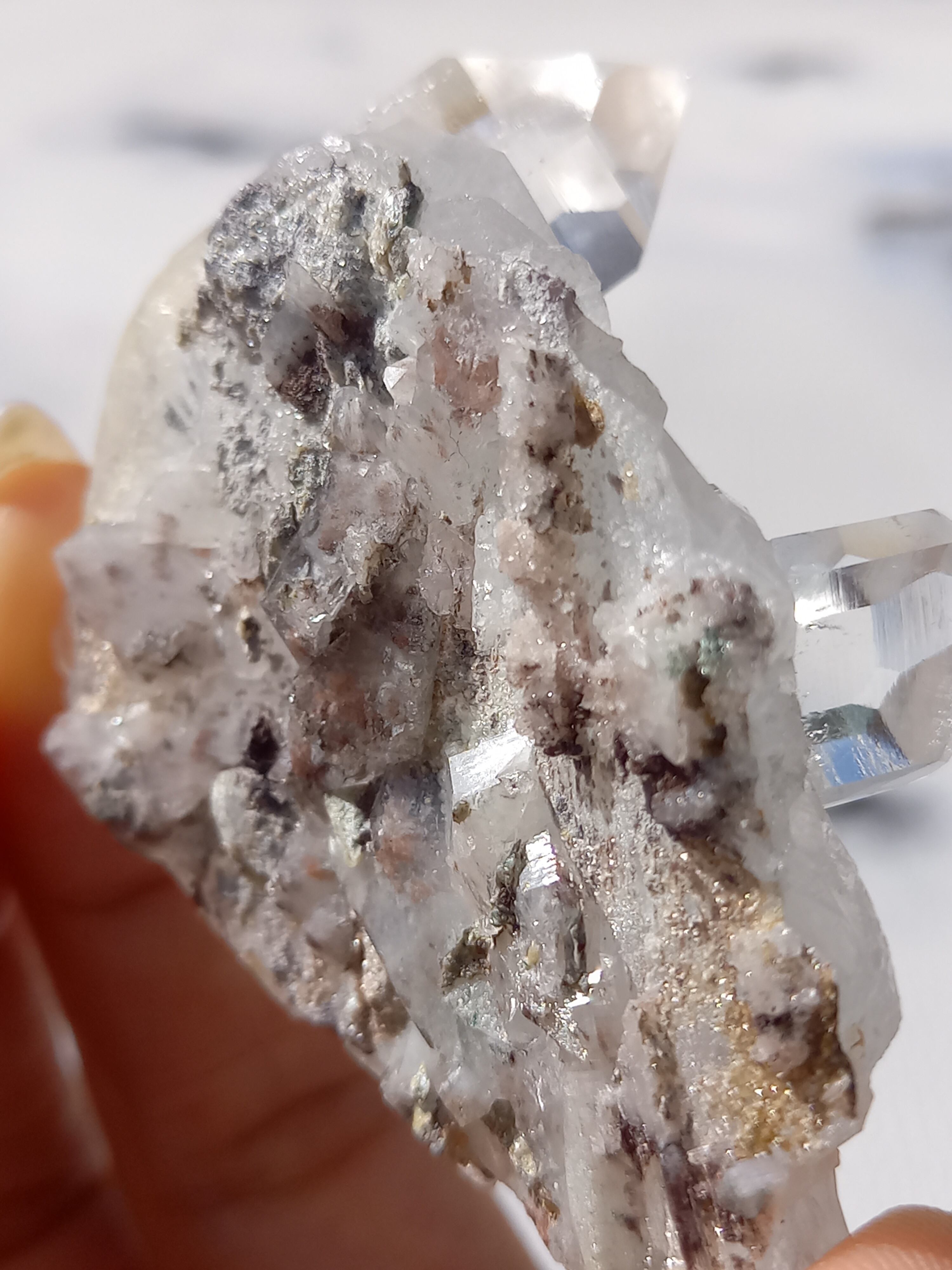 母岩部分も美しく、クォーツ部分が透明度が高すぎる為、ほんのり紫色に色づいて見えます。