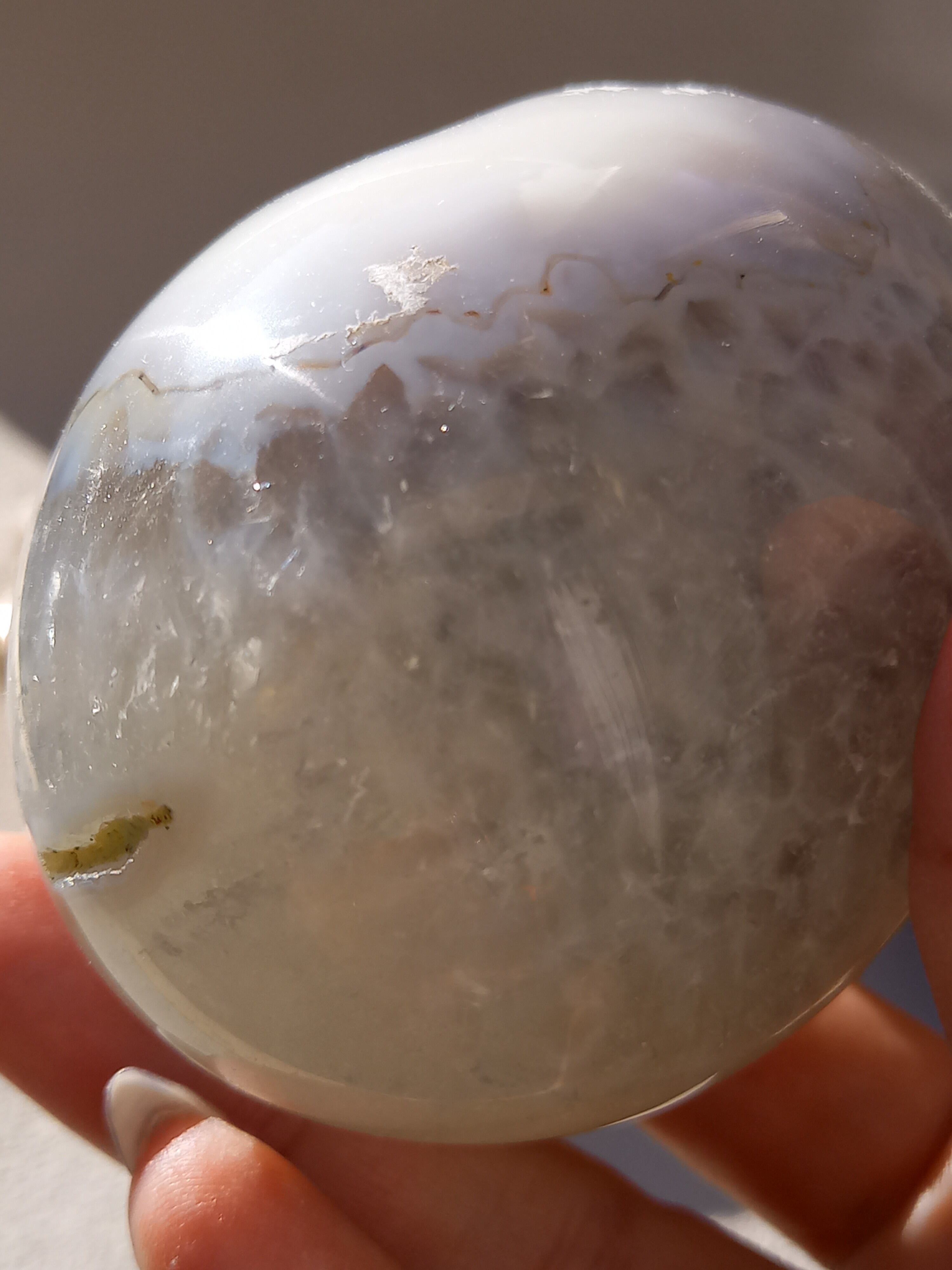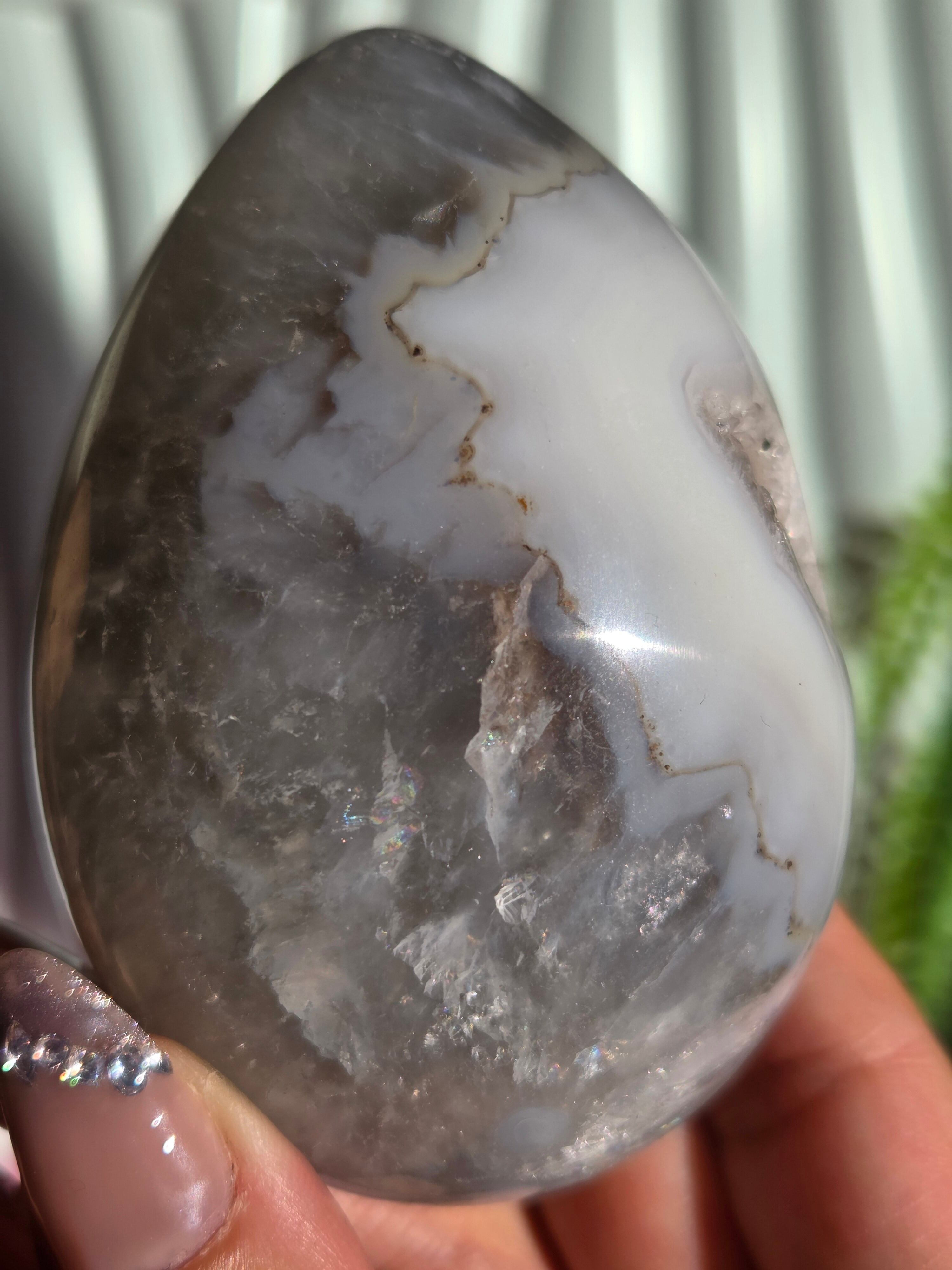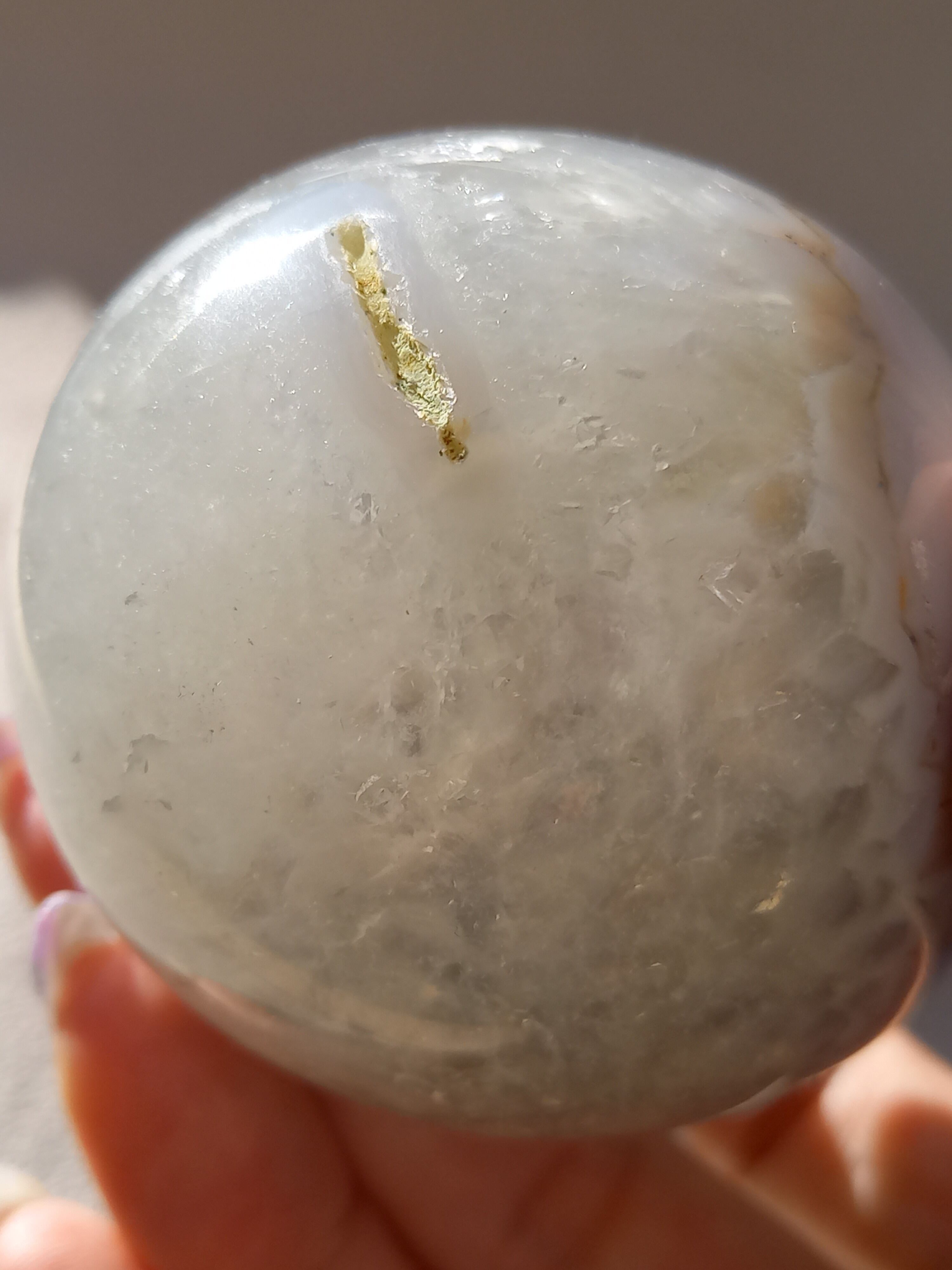 グリーンカラーの為グリーンアメジストのようにも見えるのですが、確定していない為、アゲートジオードエッグとのみ記載しております。