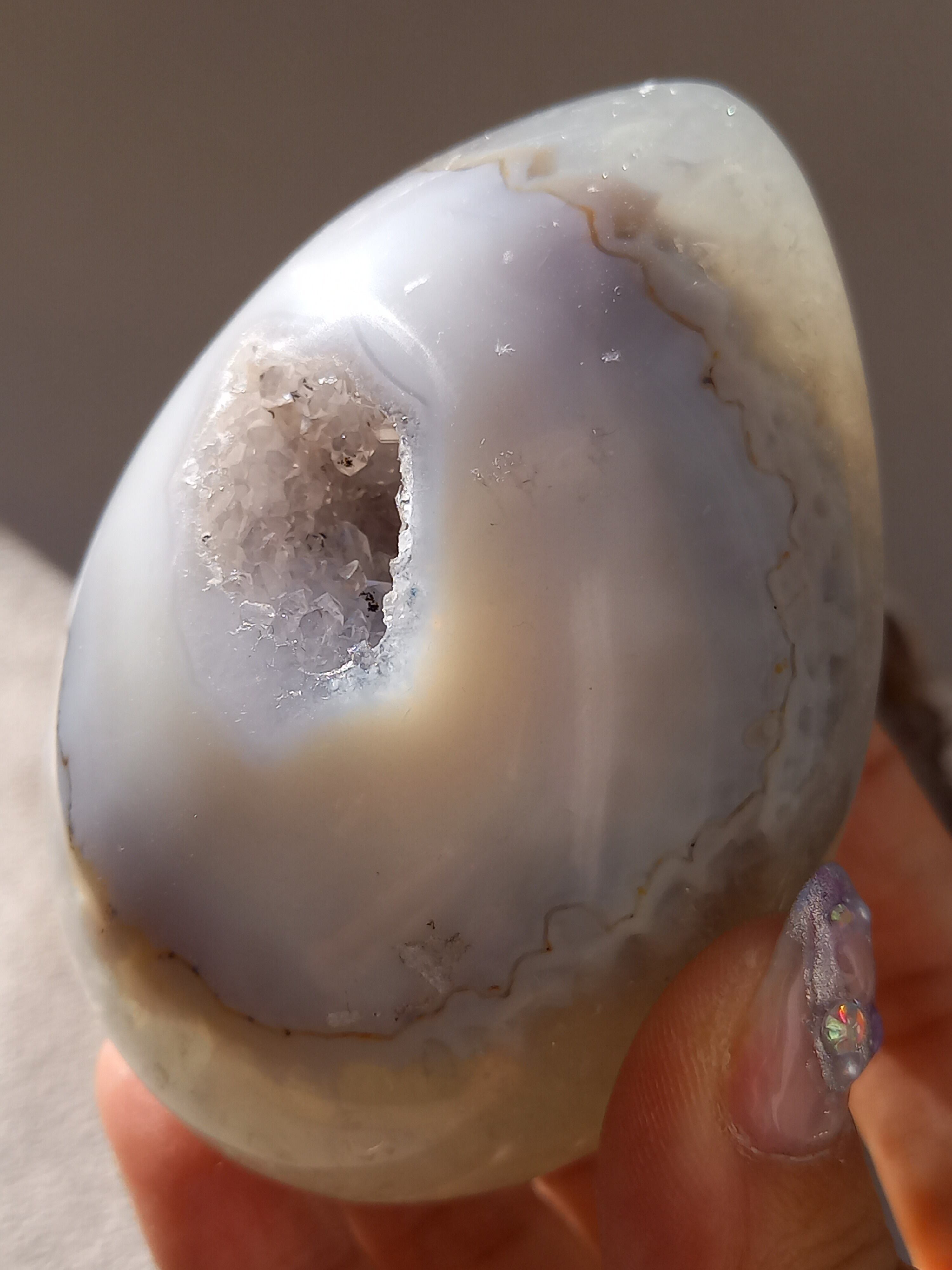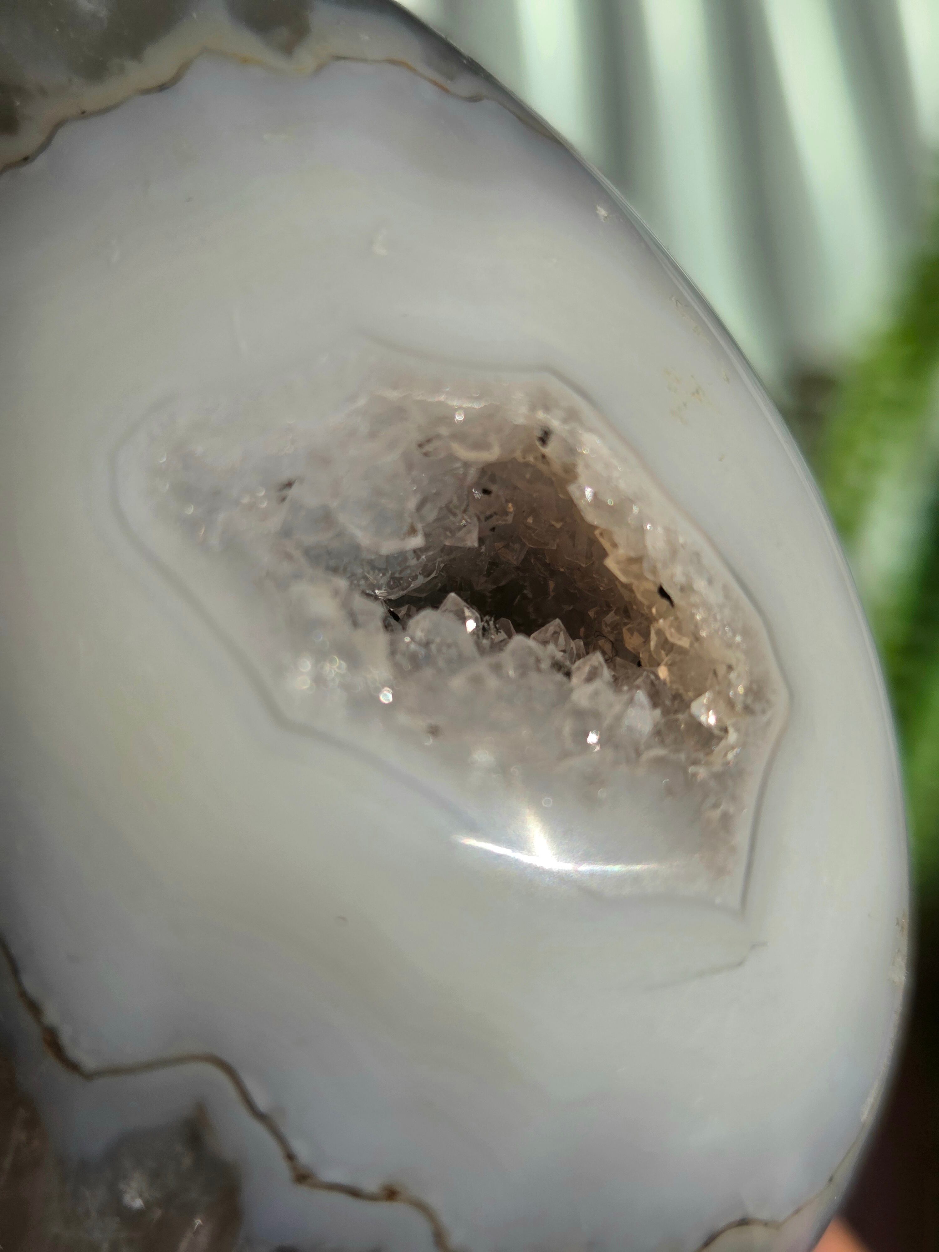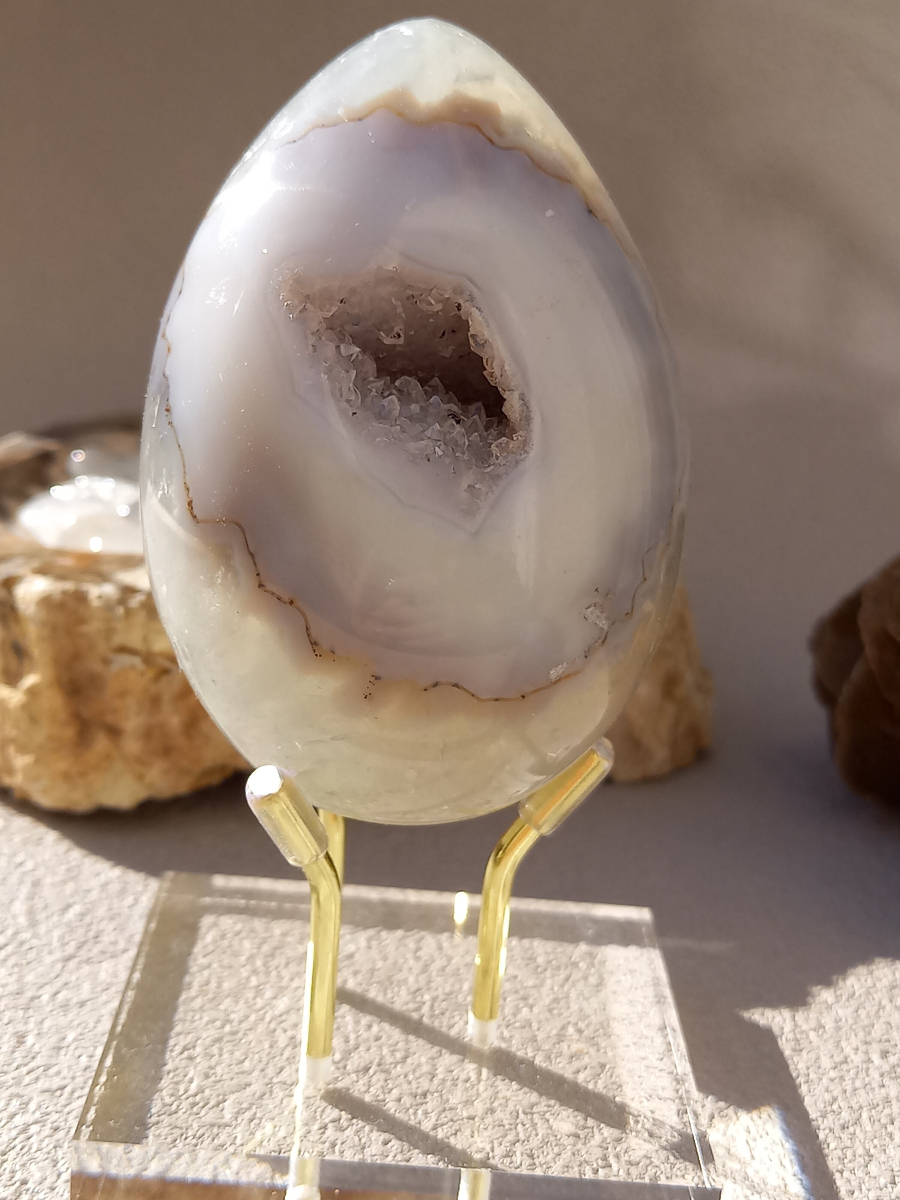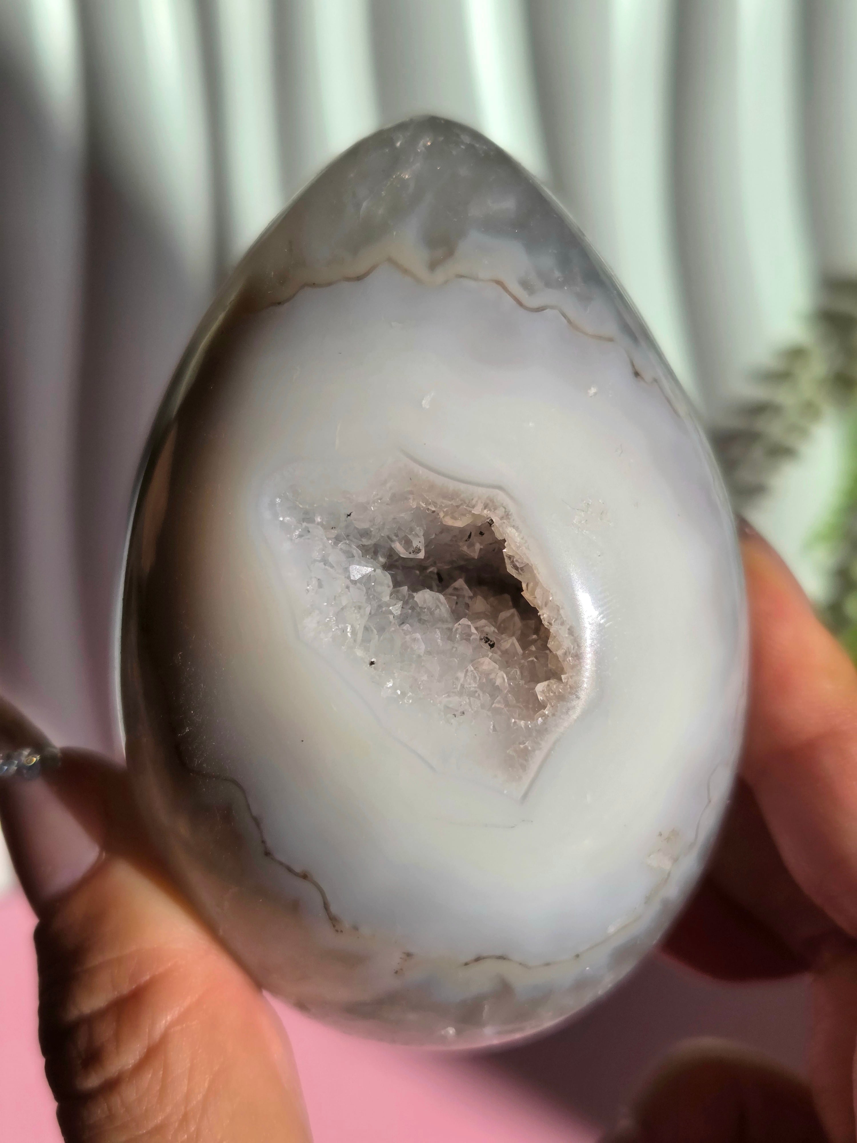 アゲート模様と、真ん中にザクザクのジオードがチャームポイントの子。