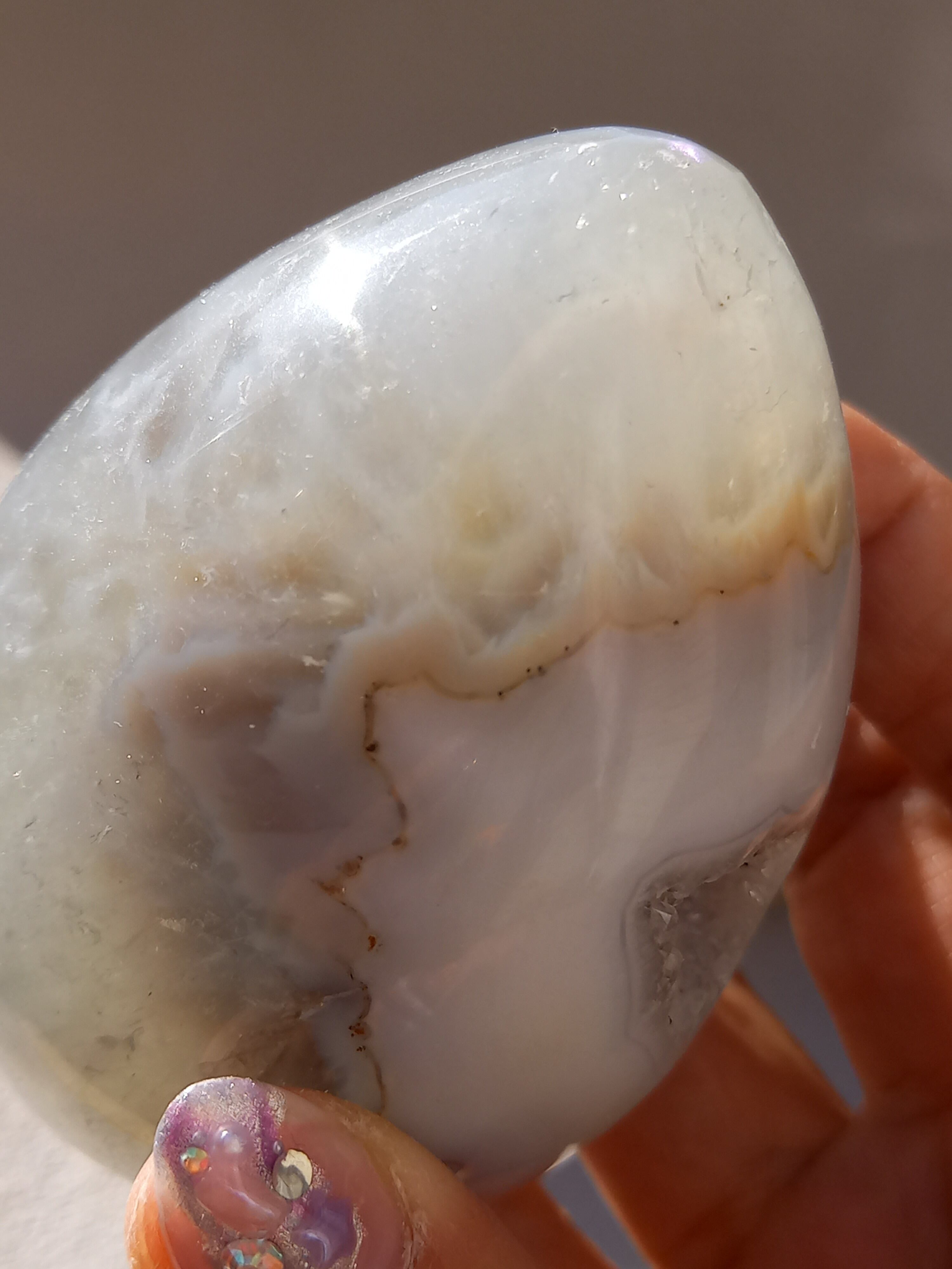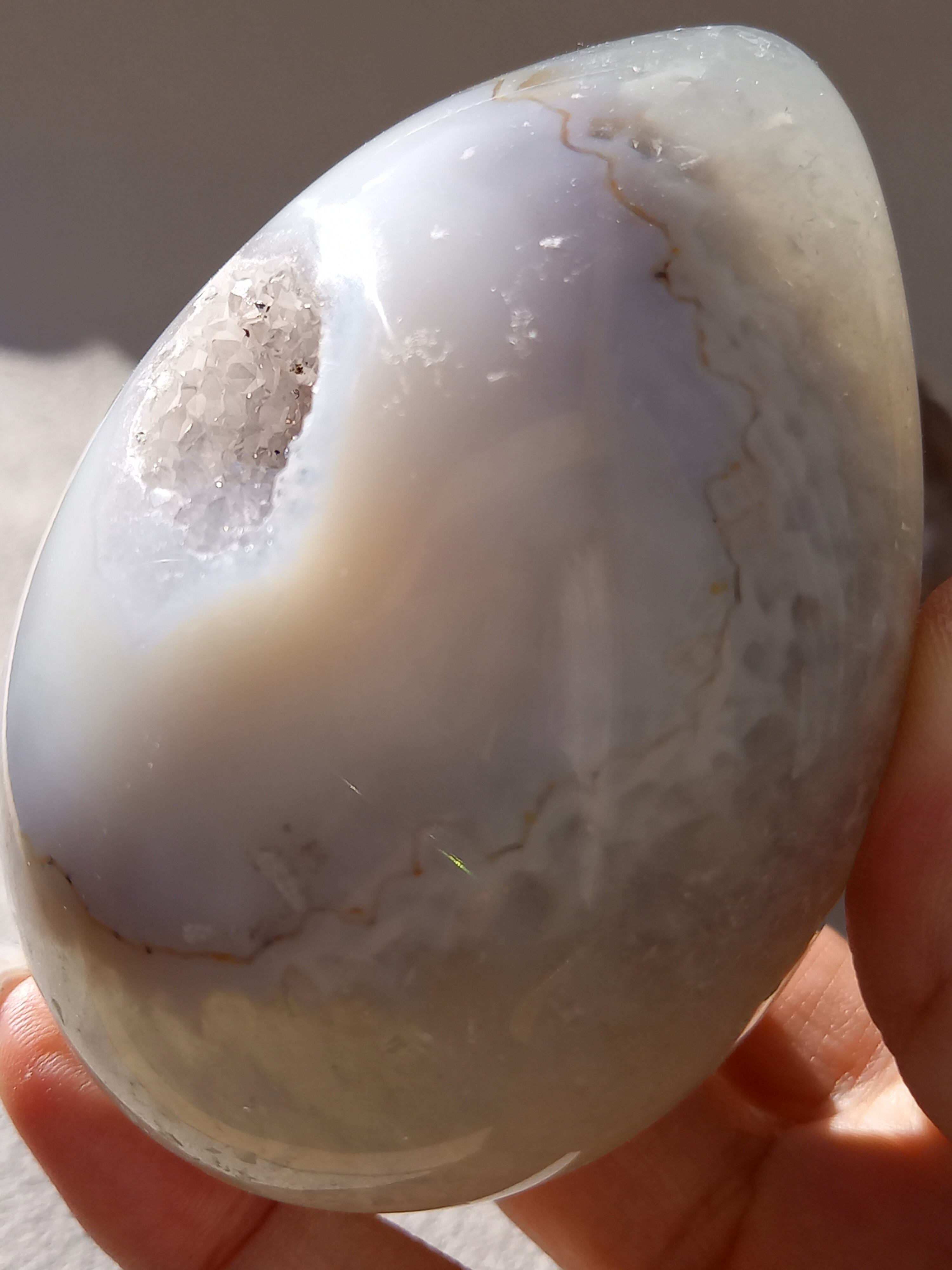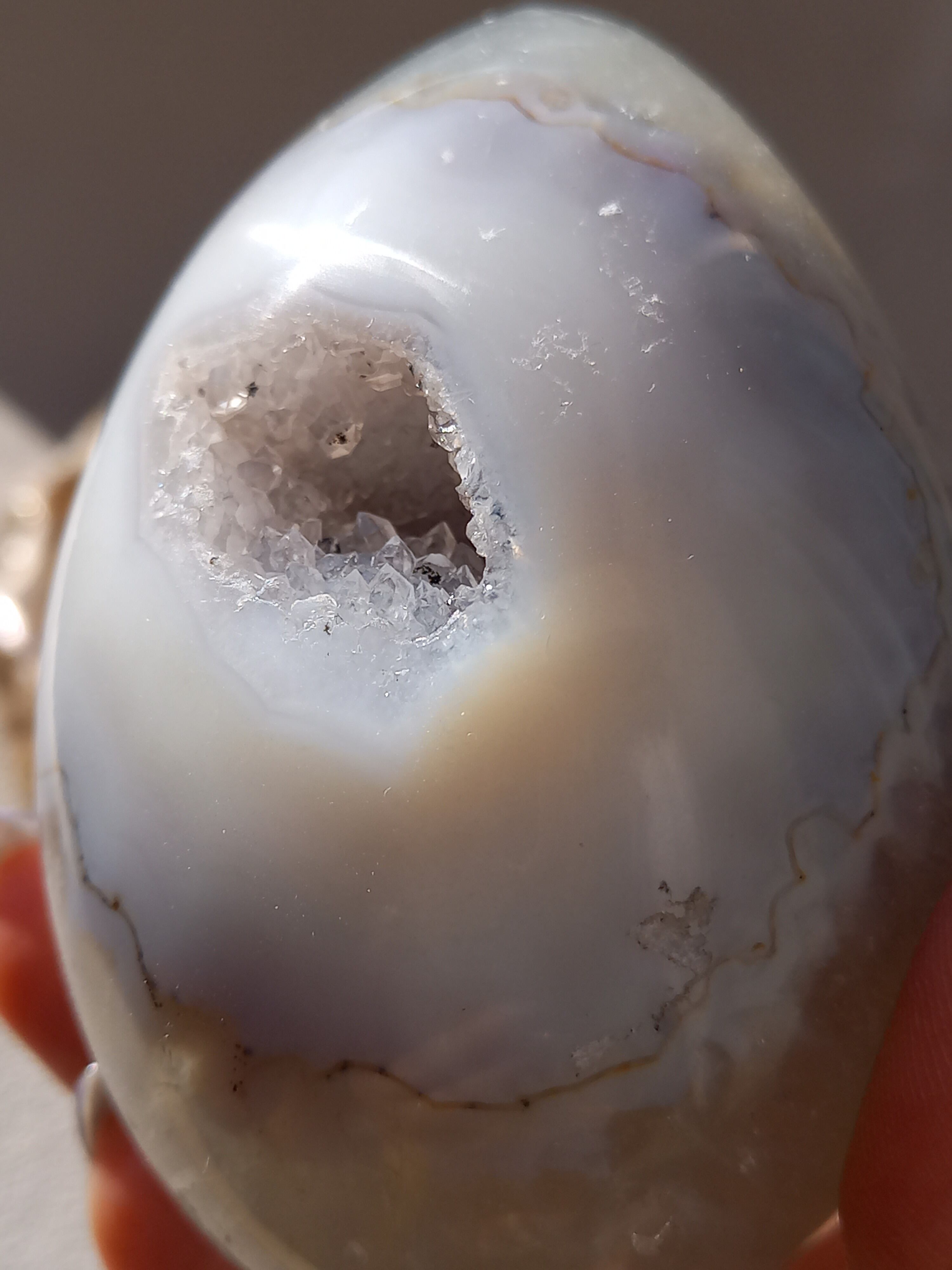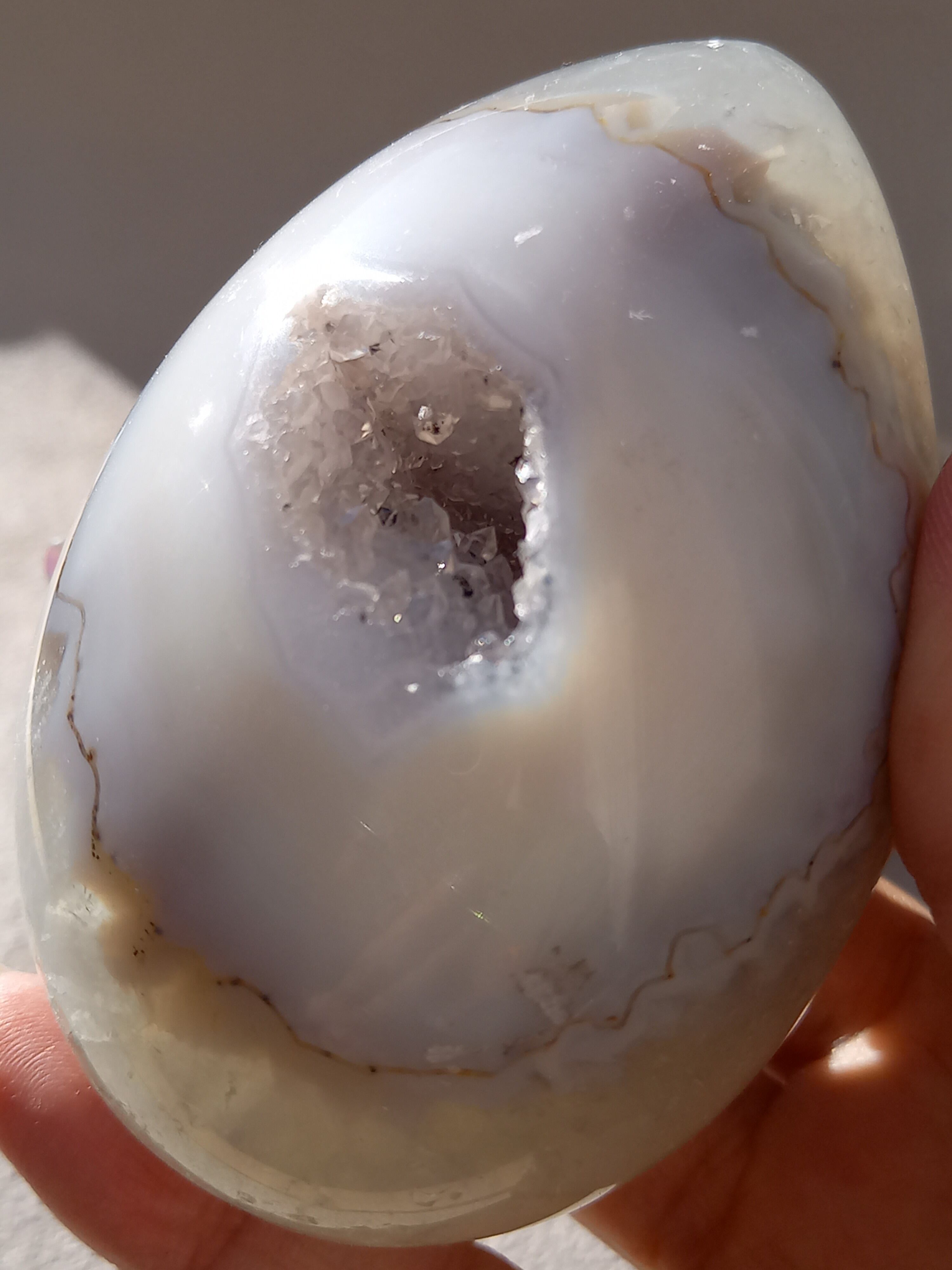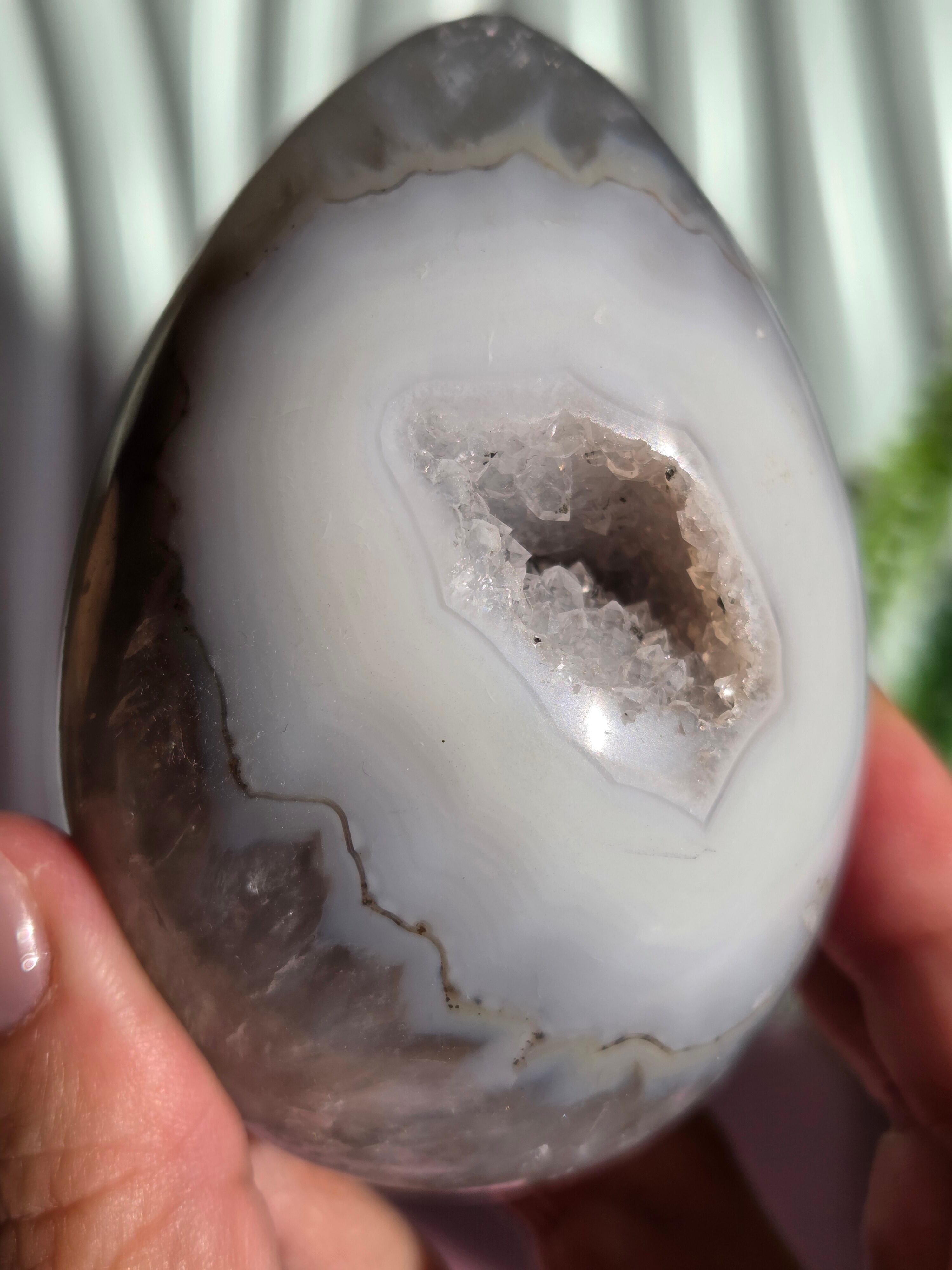 アゲート模様と、真ん中にザクザクのジオードがチャームポイントの子。