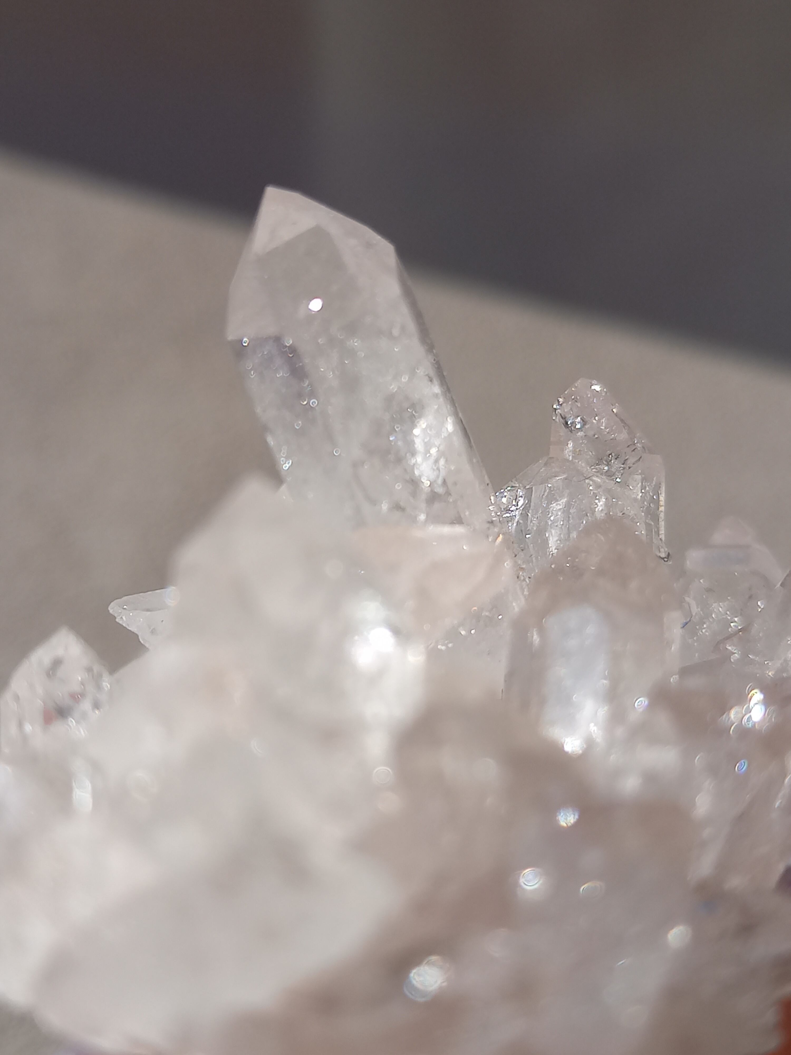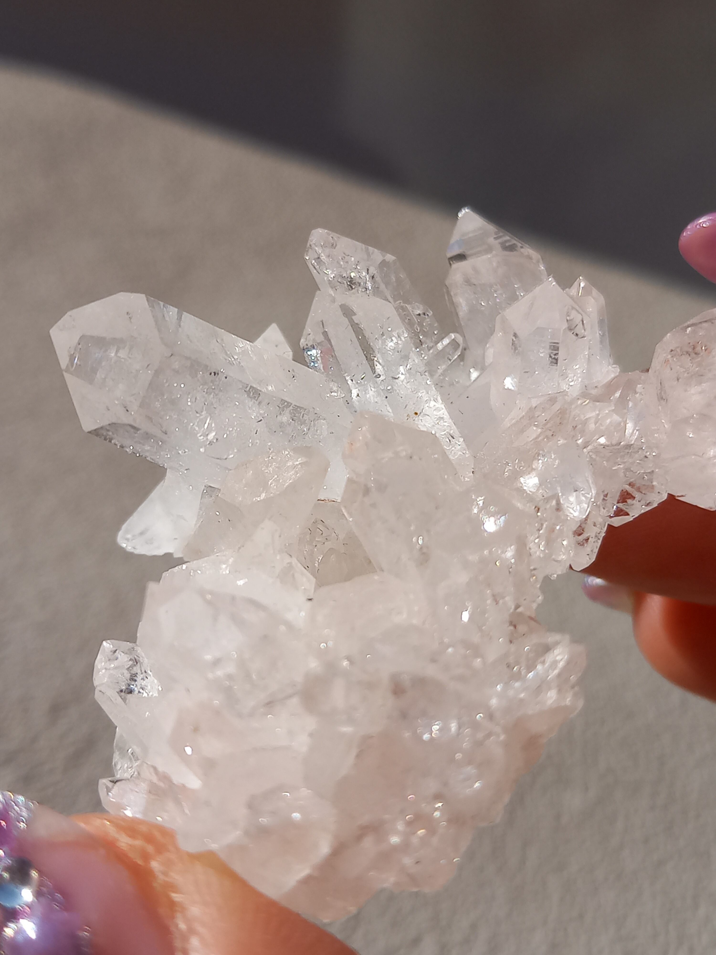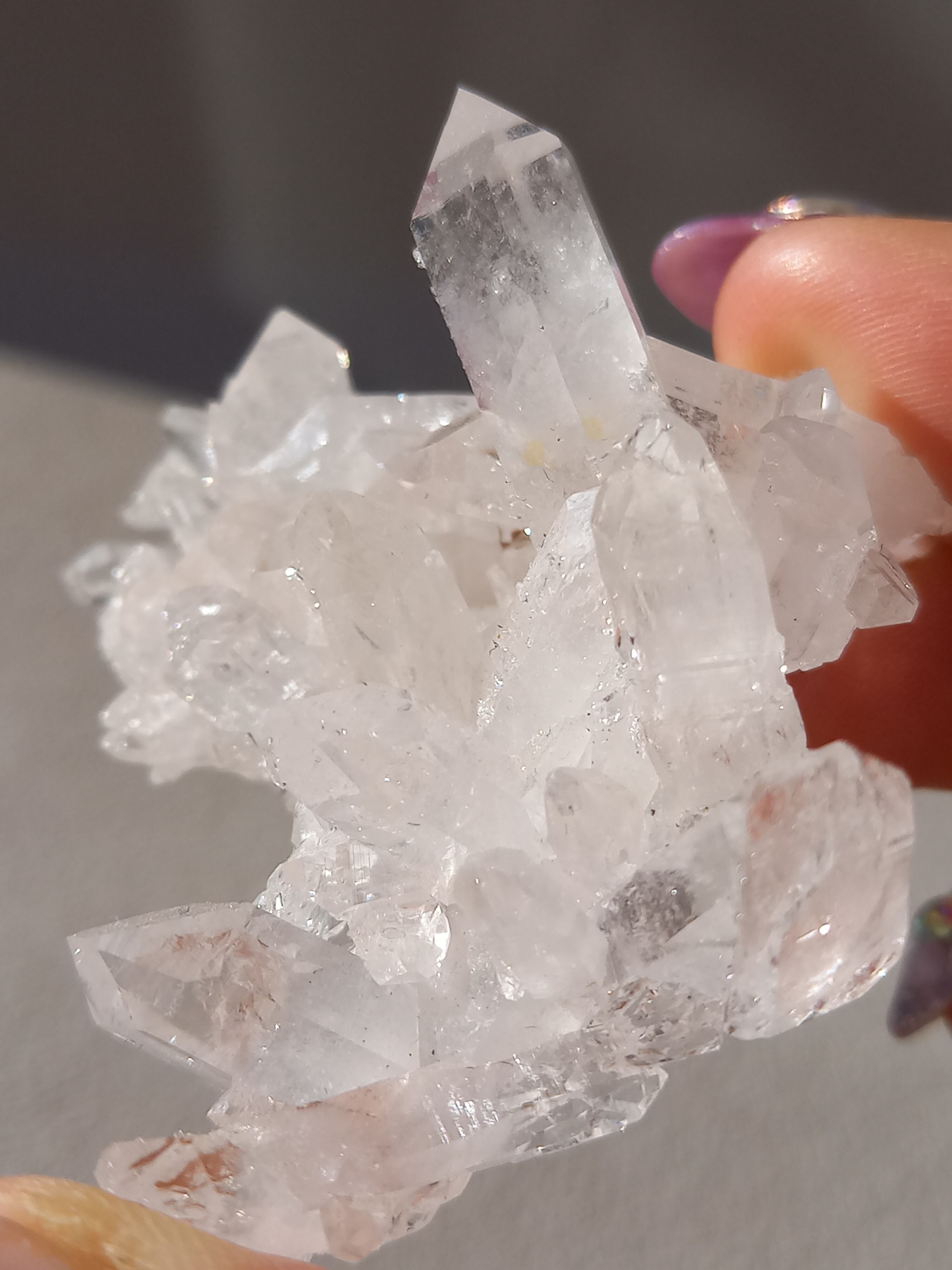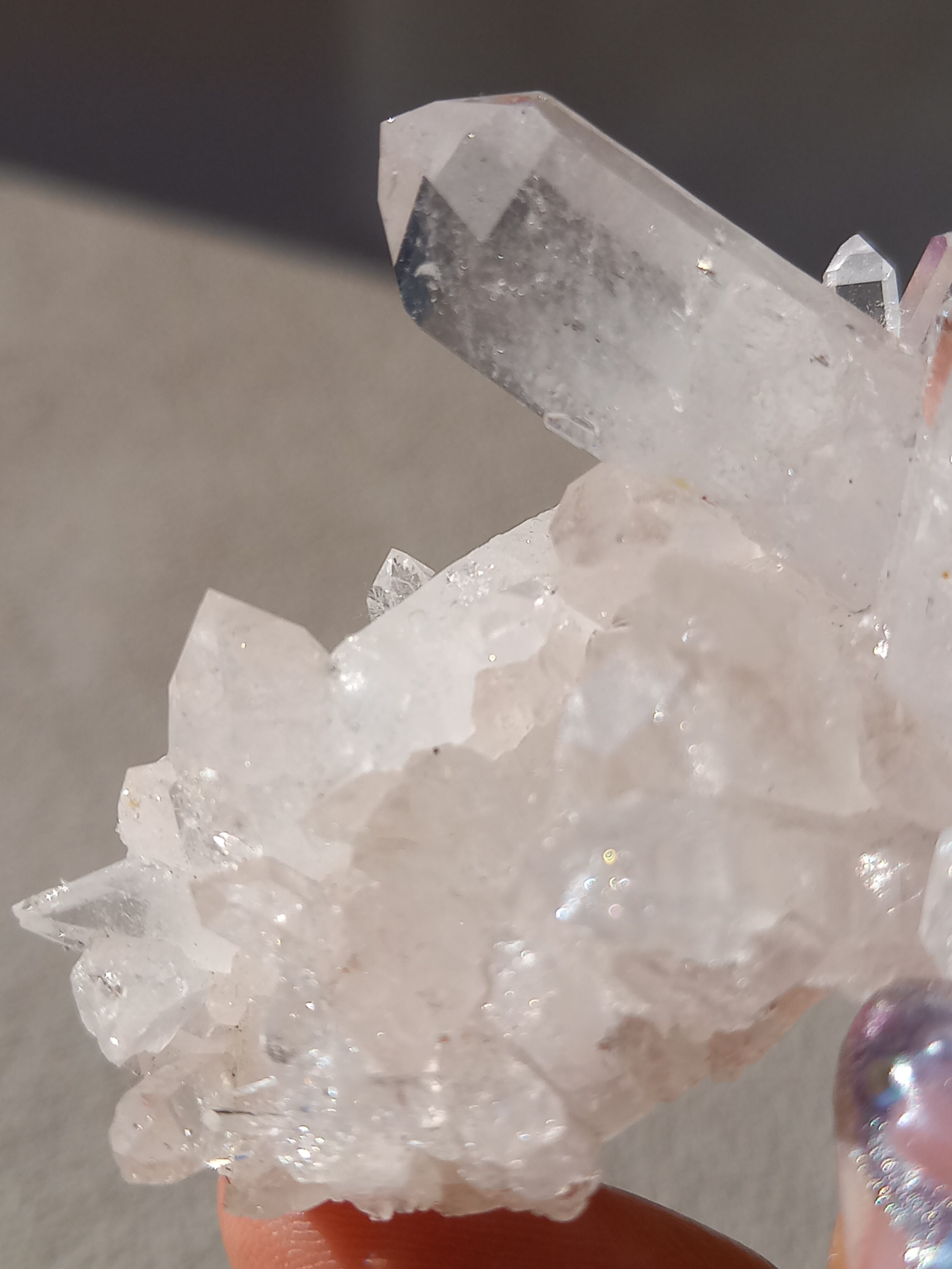 うっすらピンク色の、キラキラな透明感溢れるクォーツがとても素敵です。コロンビア産水晶の特徴は何と言っても抜群の透明度です。 まさに「氷」のようです。その透明度と照りは「世界で一番美しい」とさえいわれる程です。