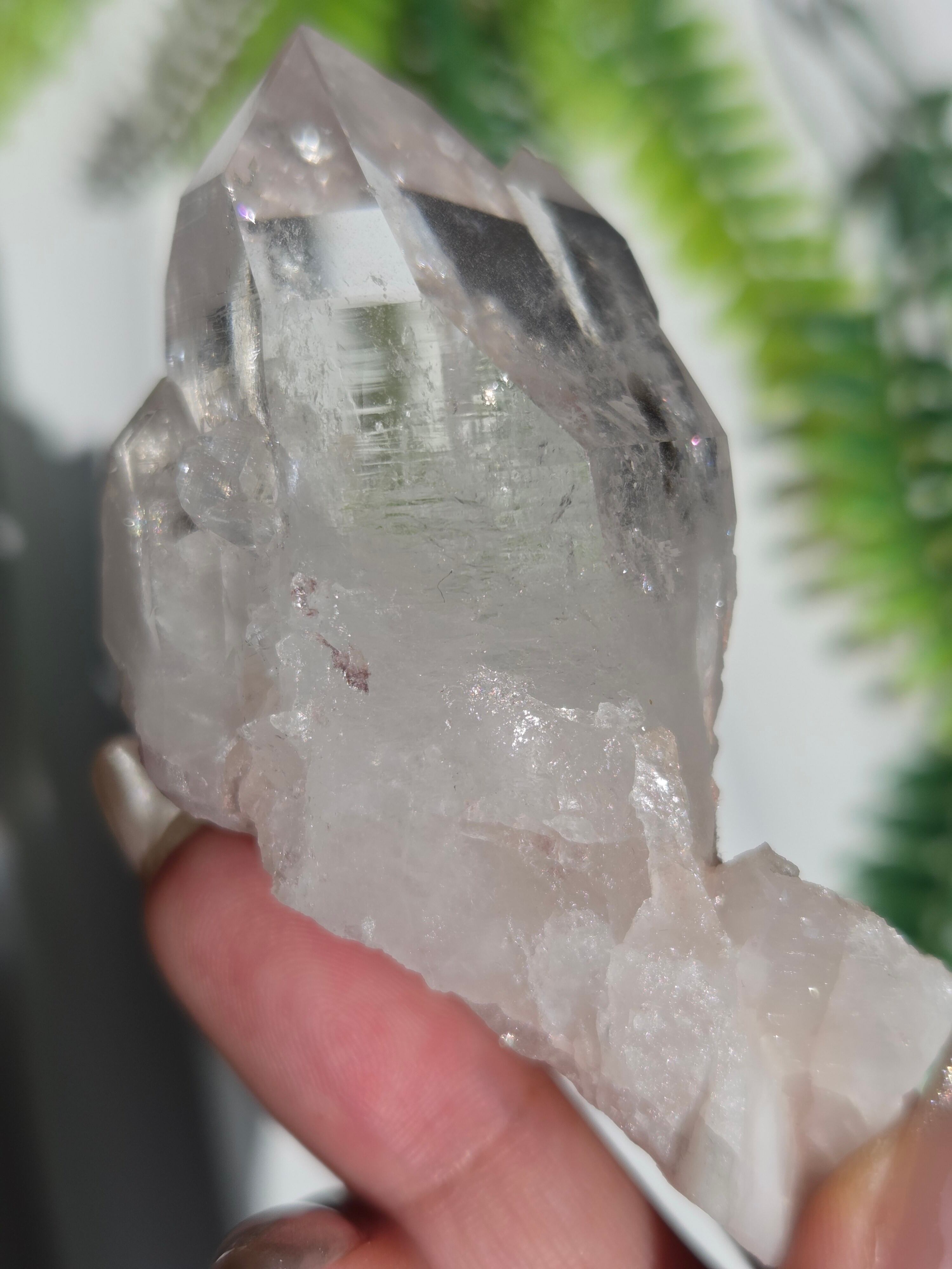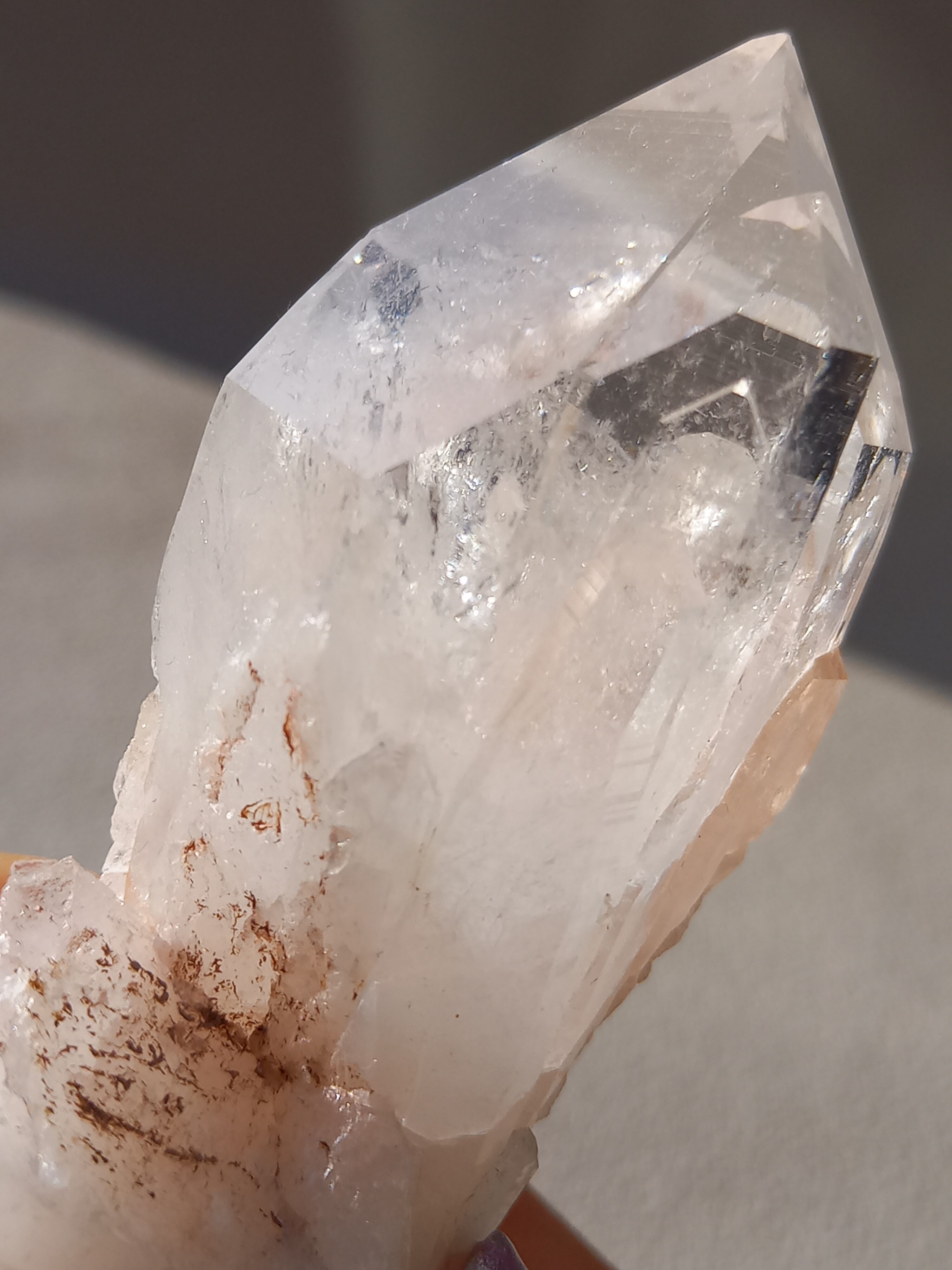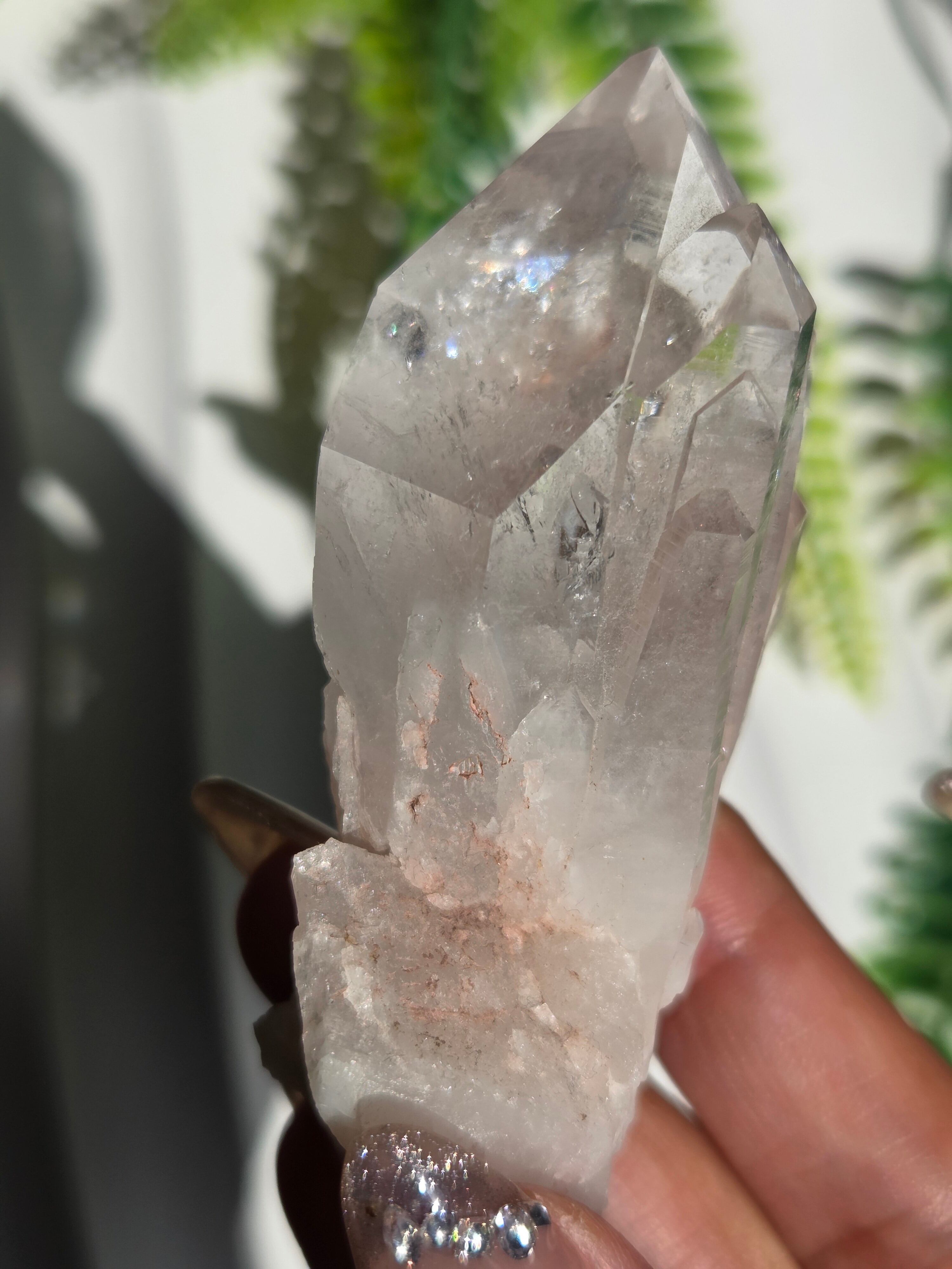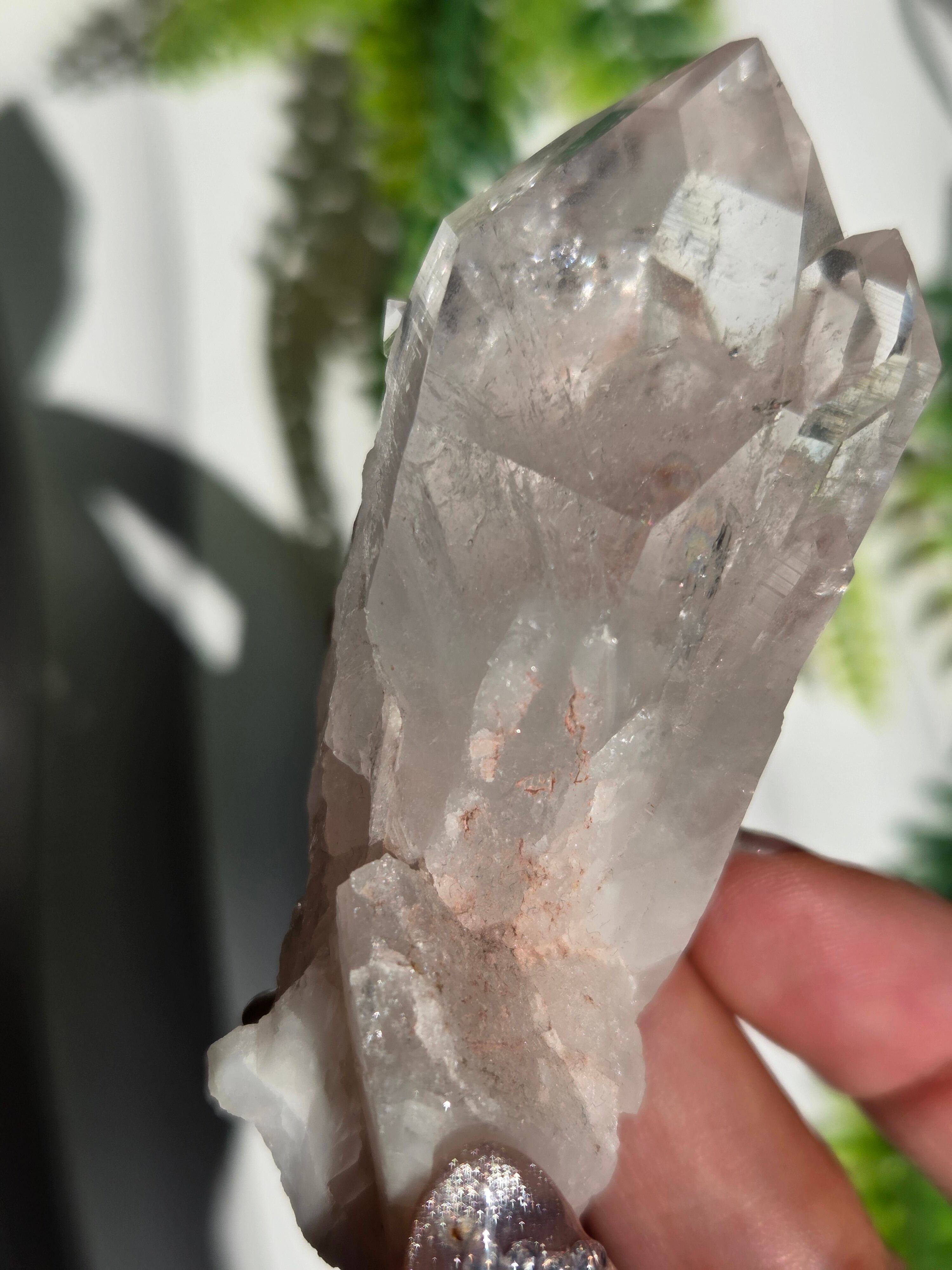 母岩部分も美しく、クォーツ部分が透明度が高すぎる為、ほんのり桃色に色づいて見えます。