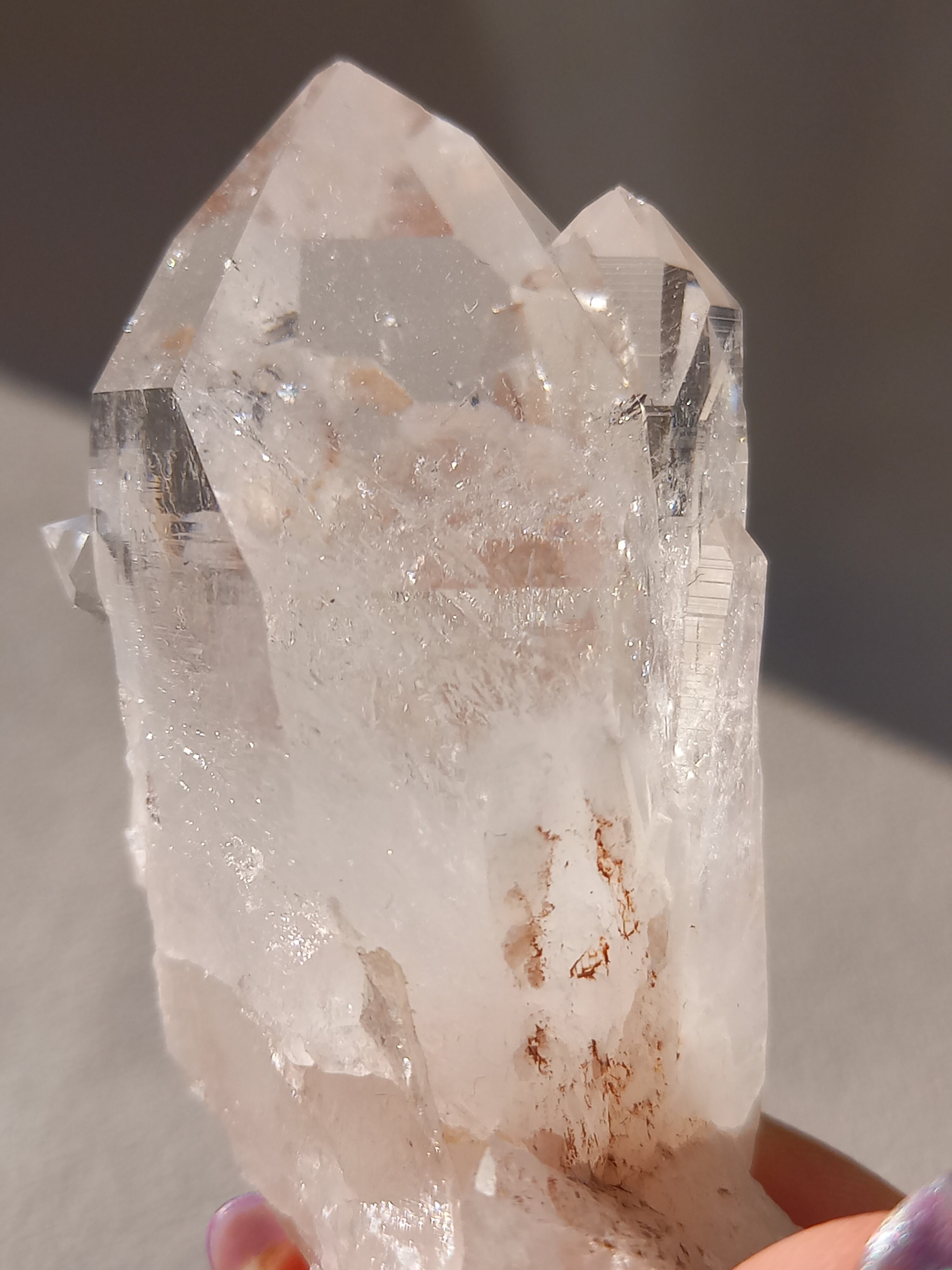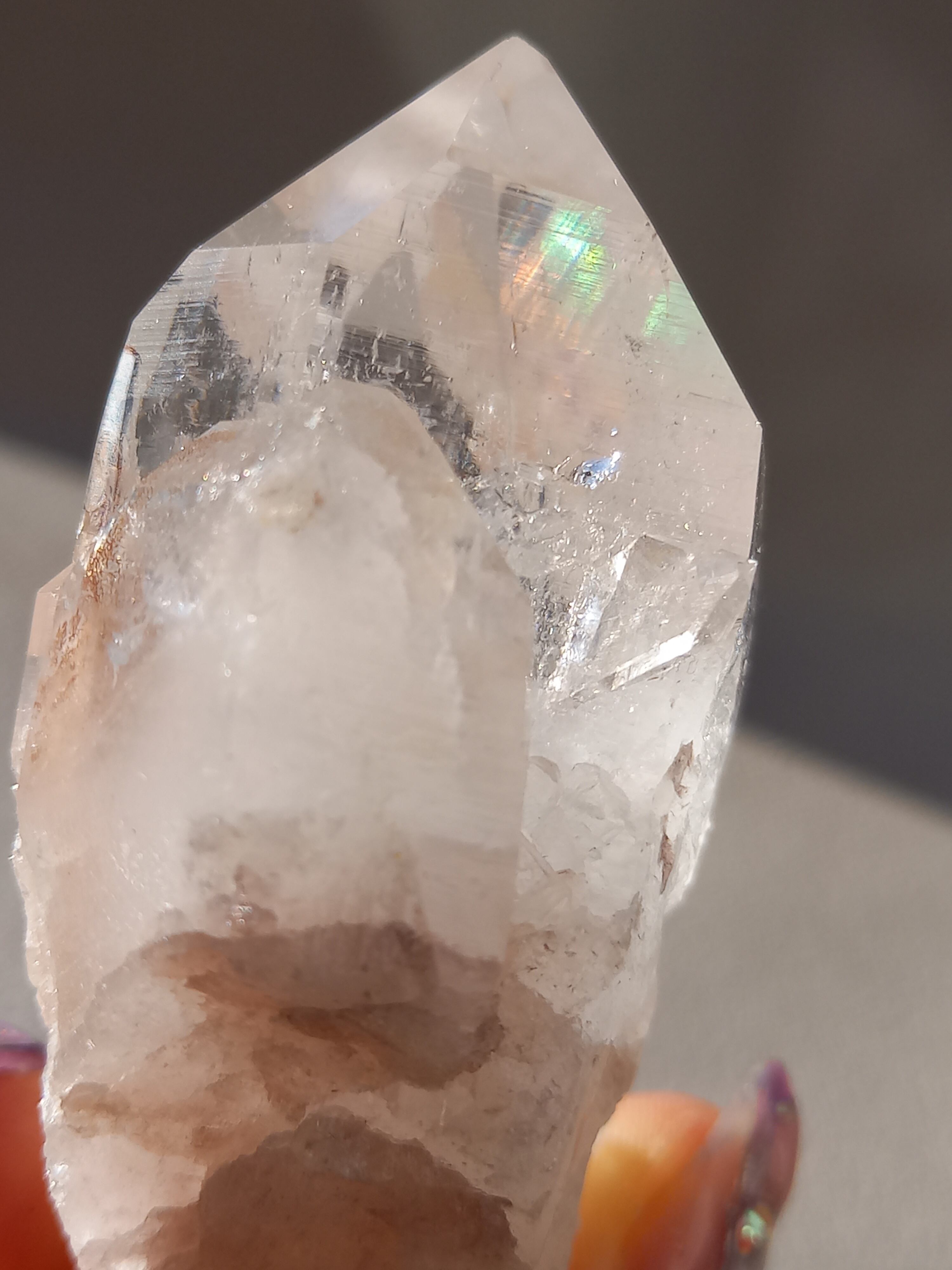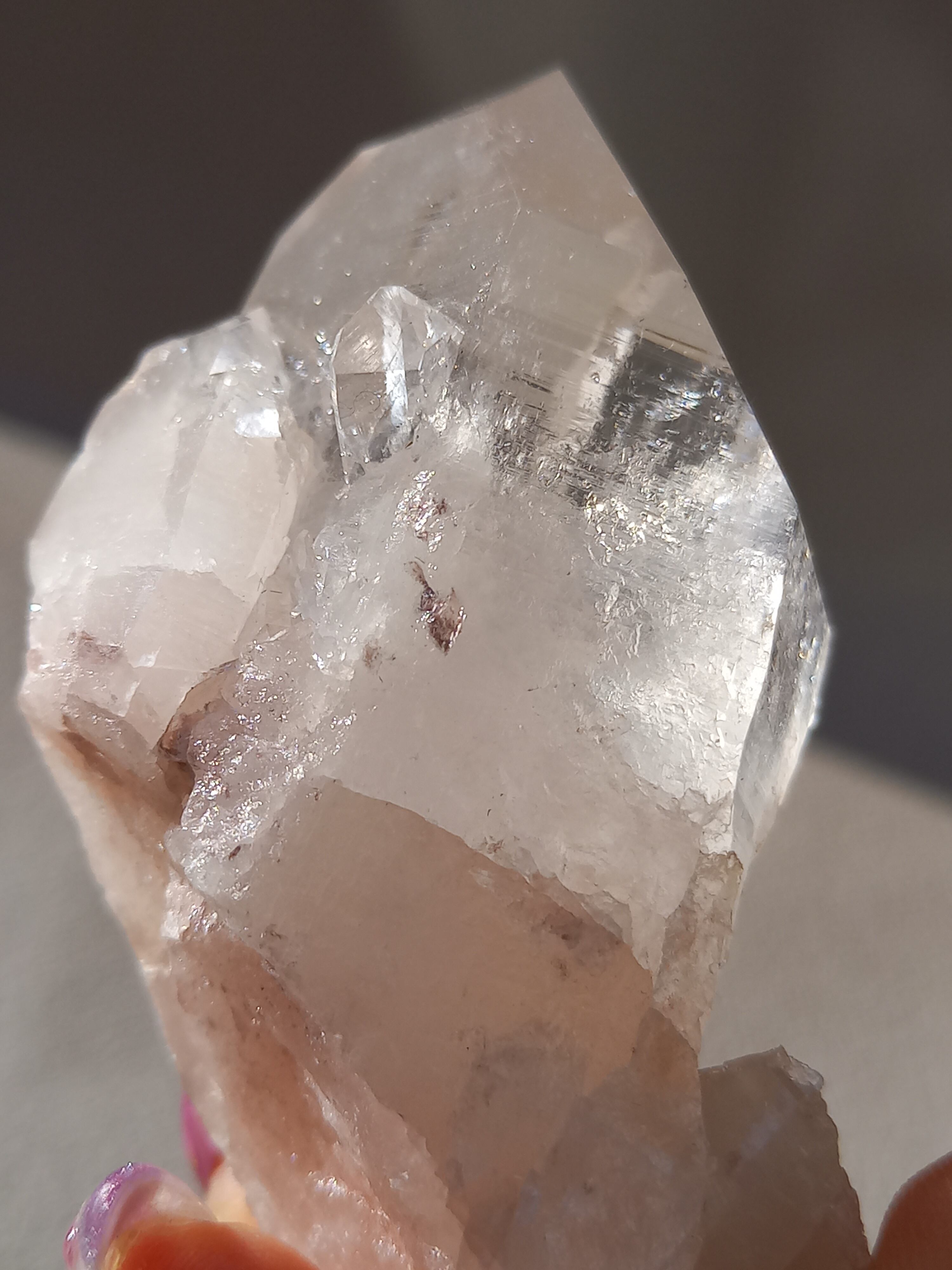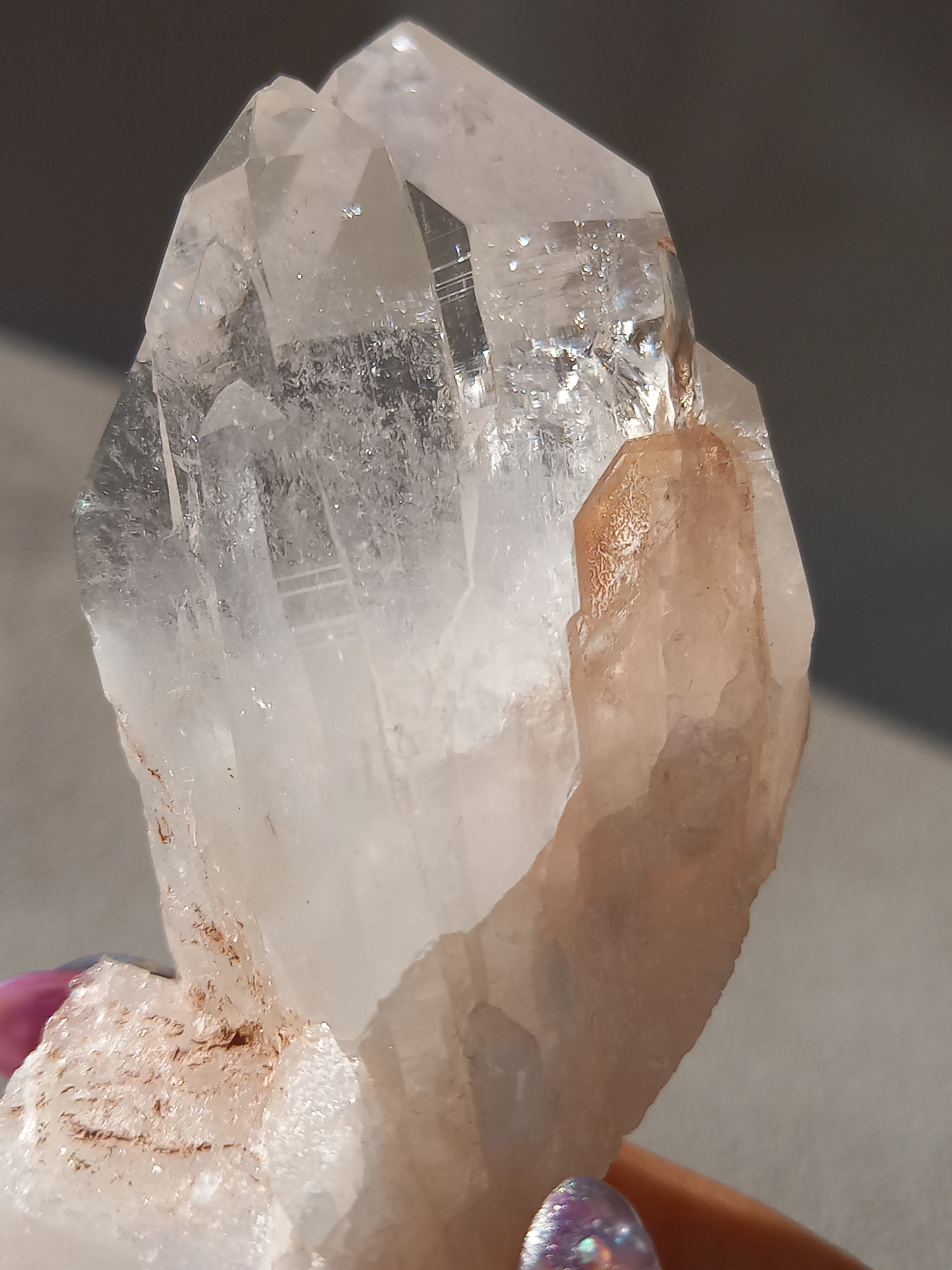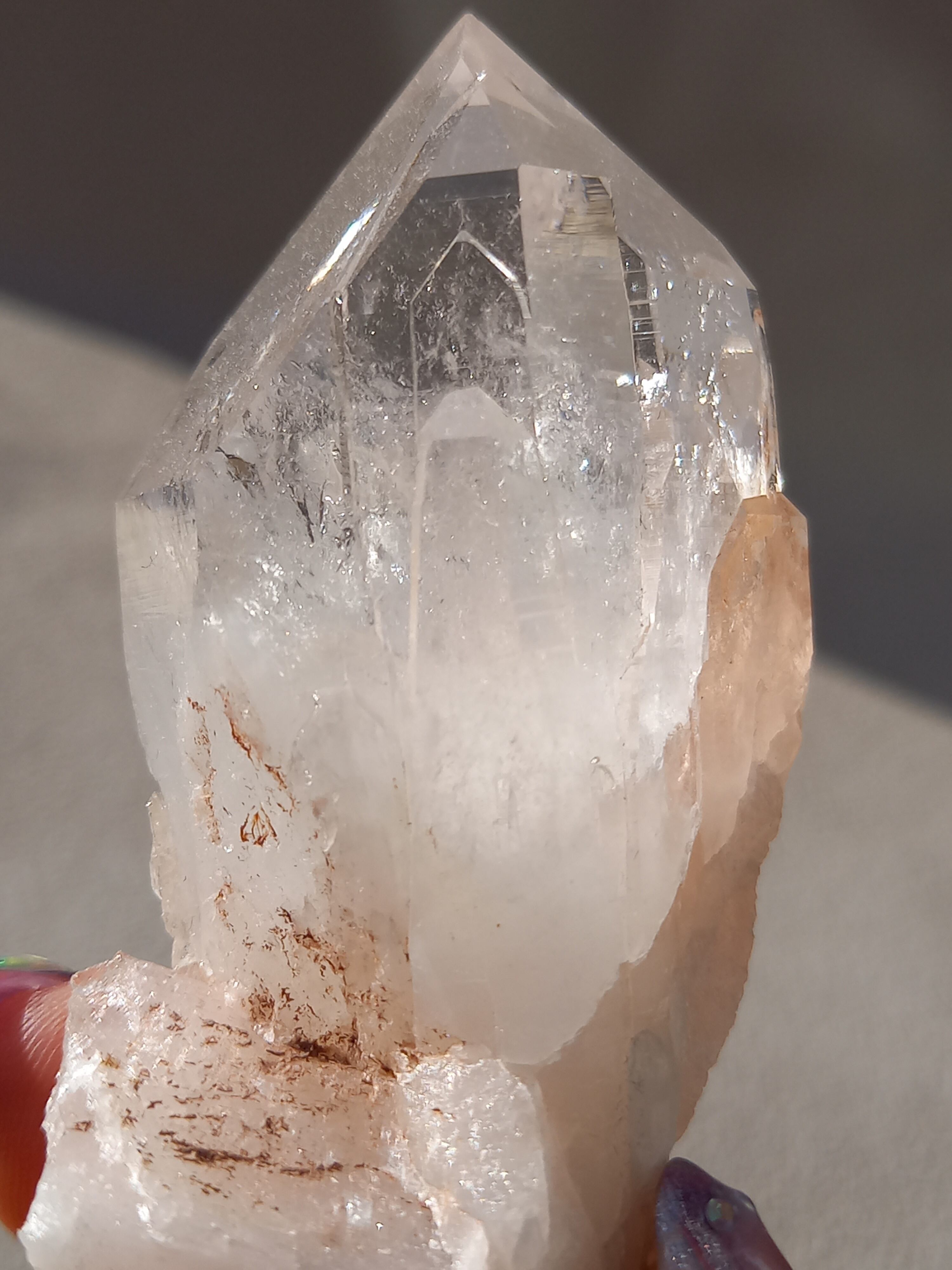 母岩部分も美しく、クォーツ部分が透明度が高すぎる為、ほんのり桃色に色づいて見えます。