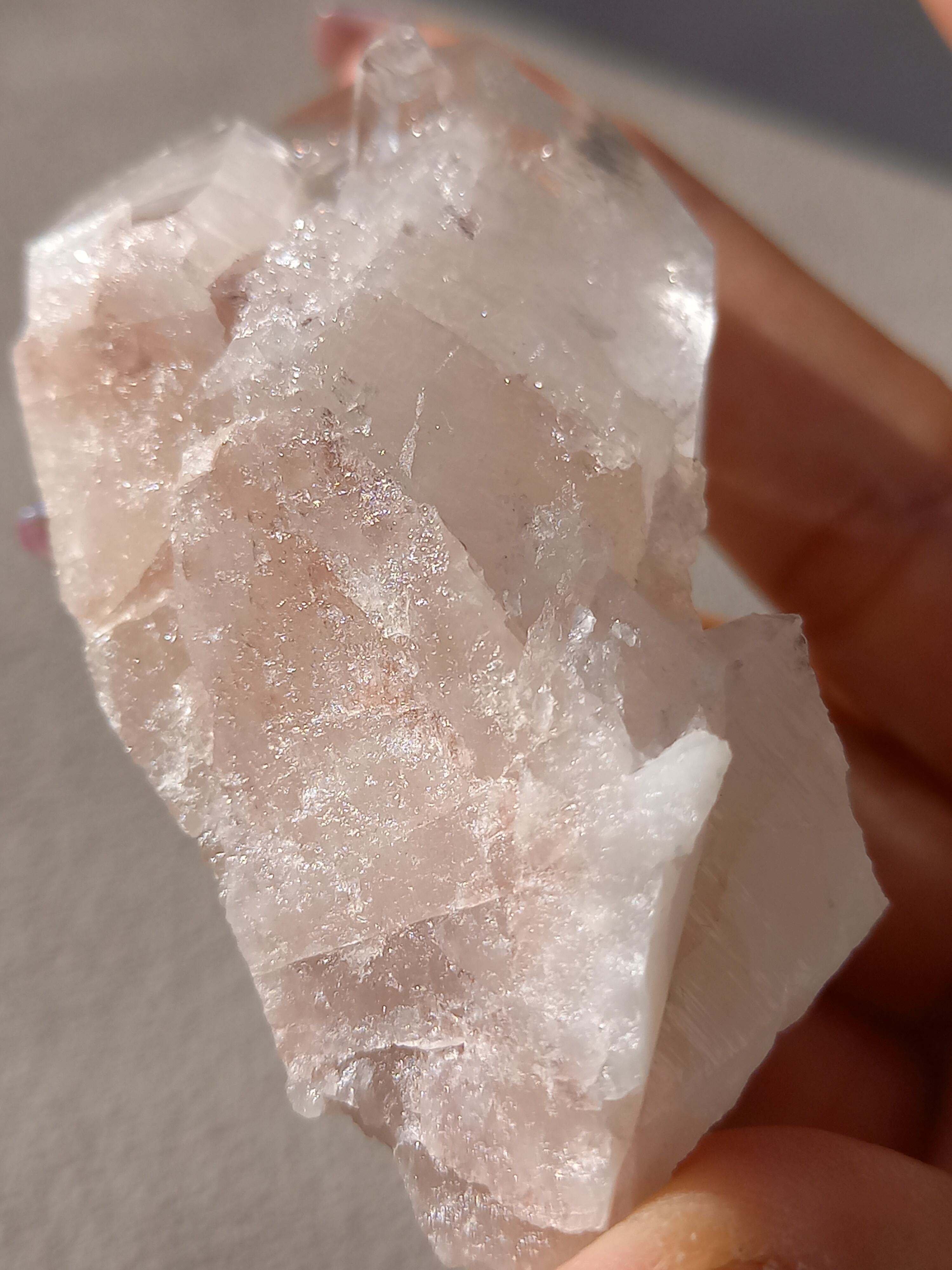 うっすらピンク色の、キラキラな透明感溢れるクォーツがとても素敵です。