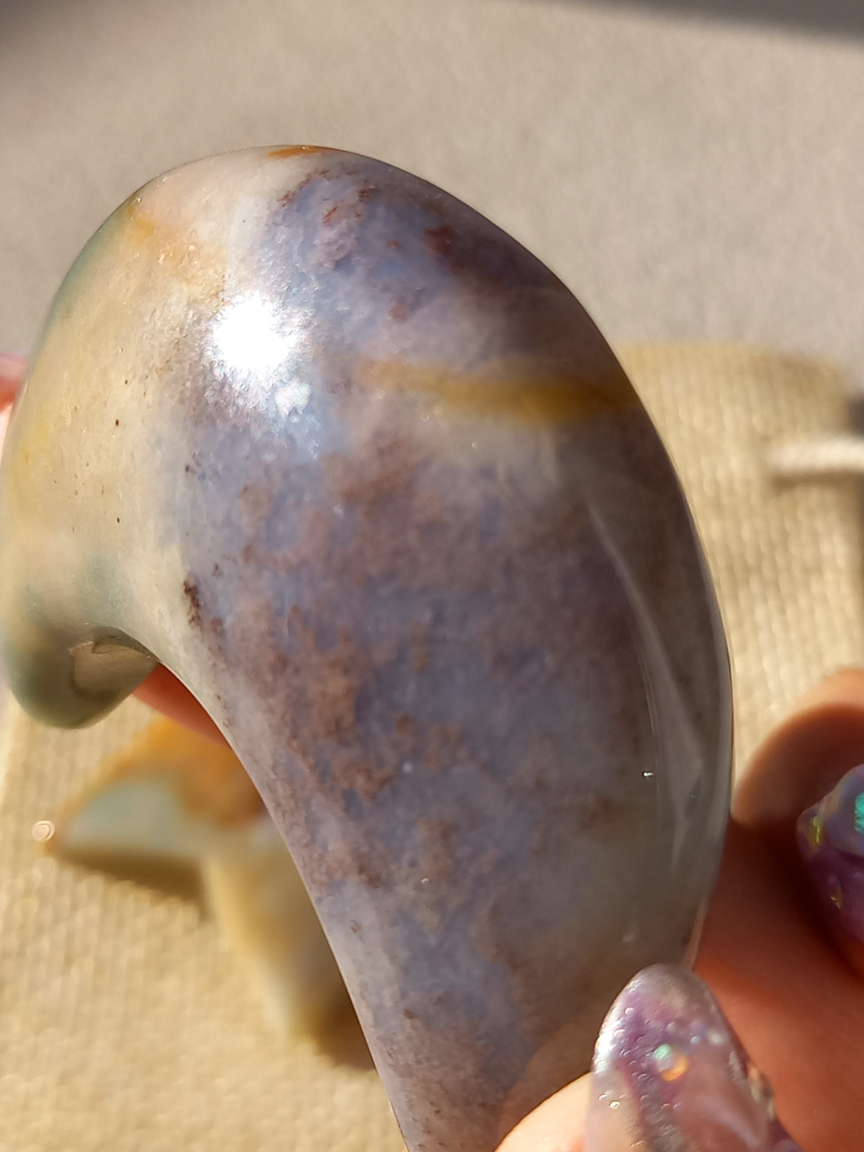 オーシャンジャスパーには高いヒーリング効果があると言われ、精神的な安心感や安定感をもたらし、悩みや問題などの解決へと導いてくれます。 包容力や奉仕の精神を養ってくれる石でもあります。 また、隠れた魅力・才能を引き出してくれる石でもあり