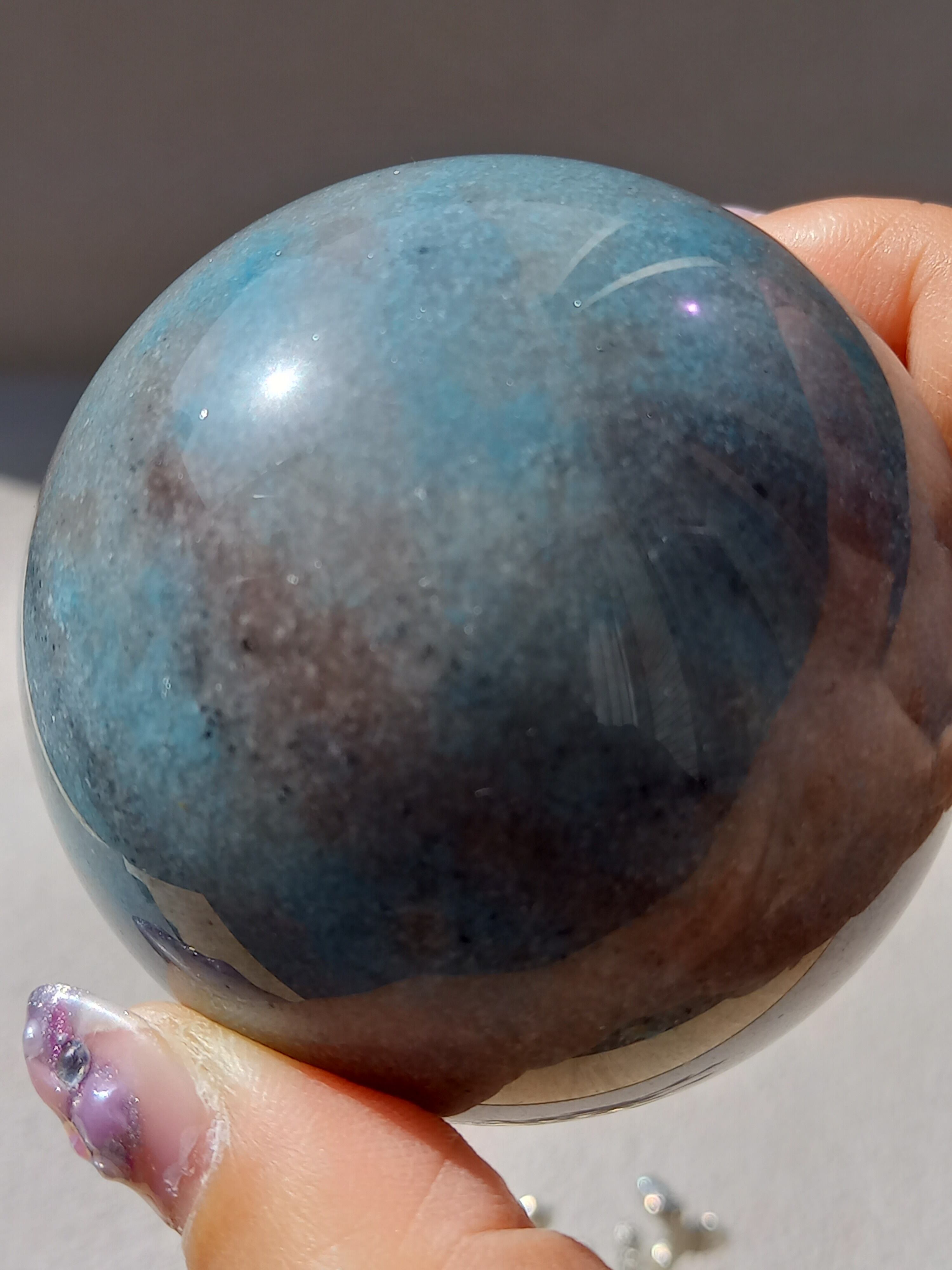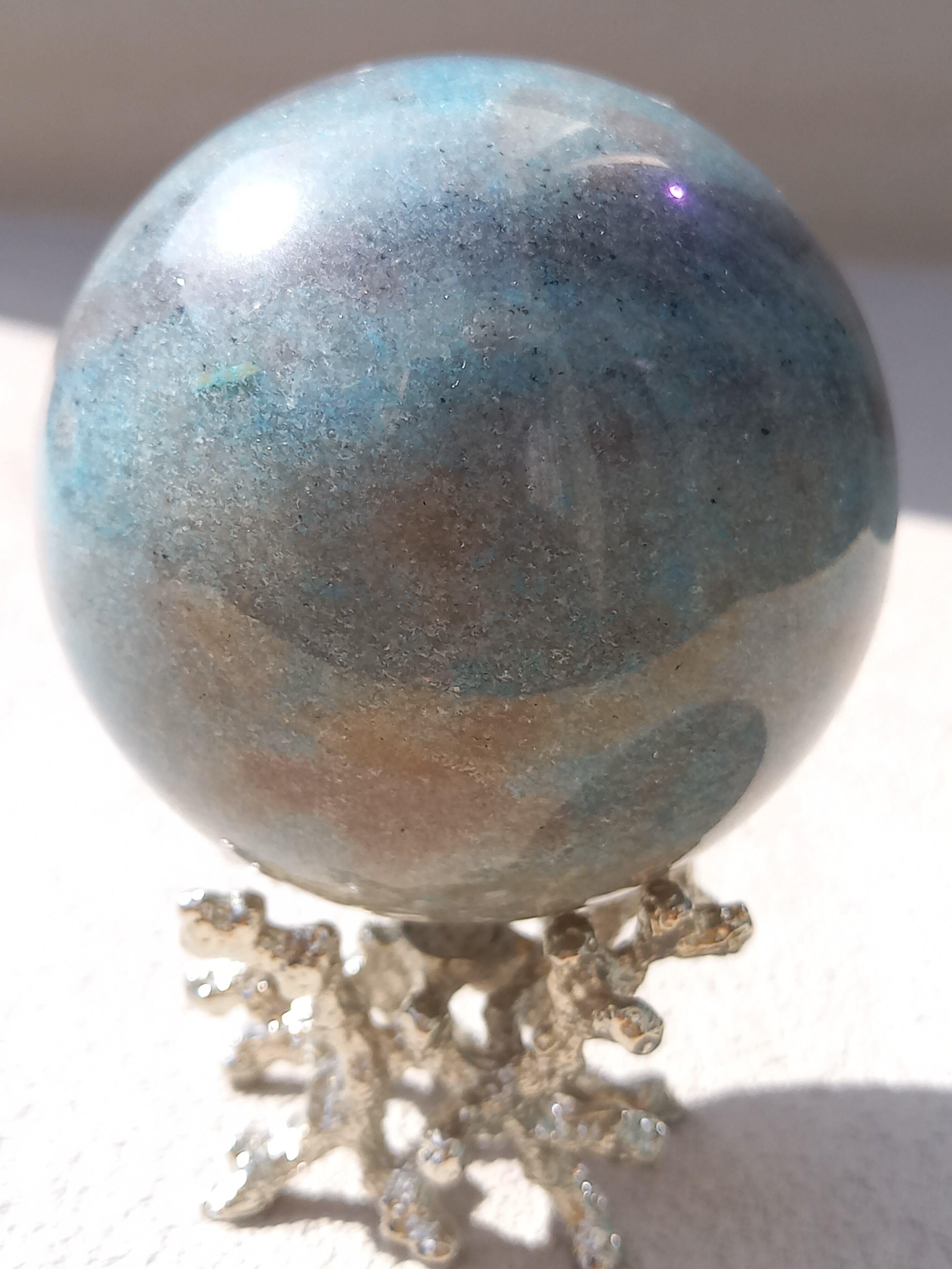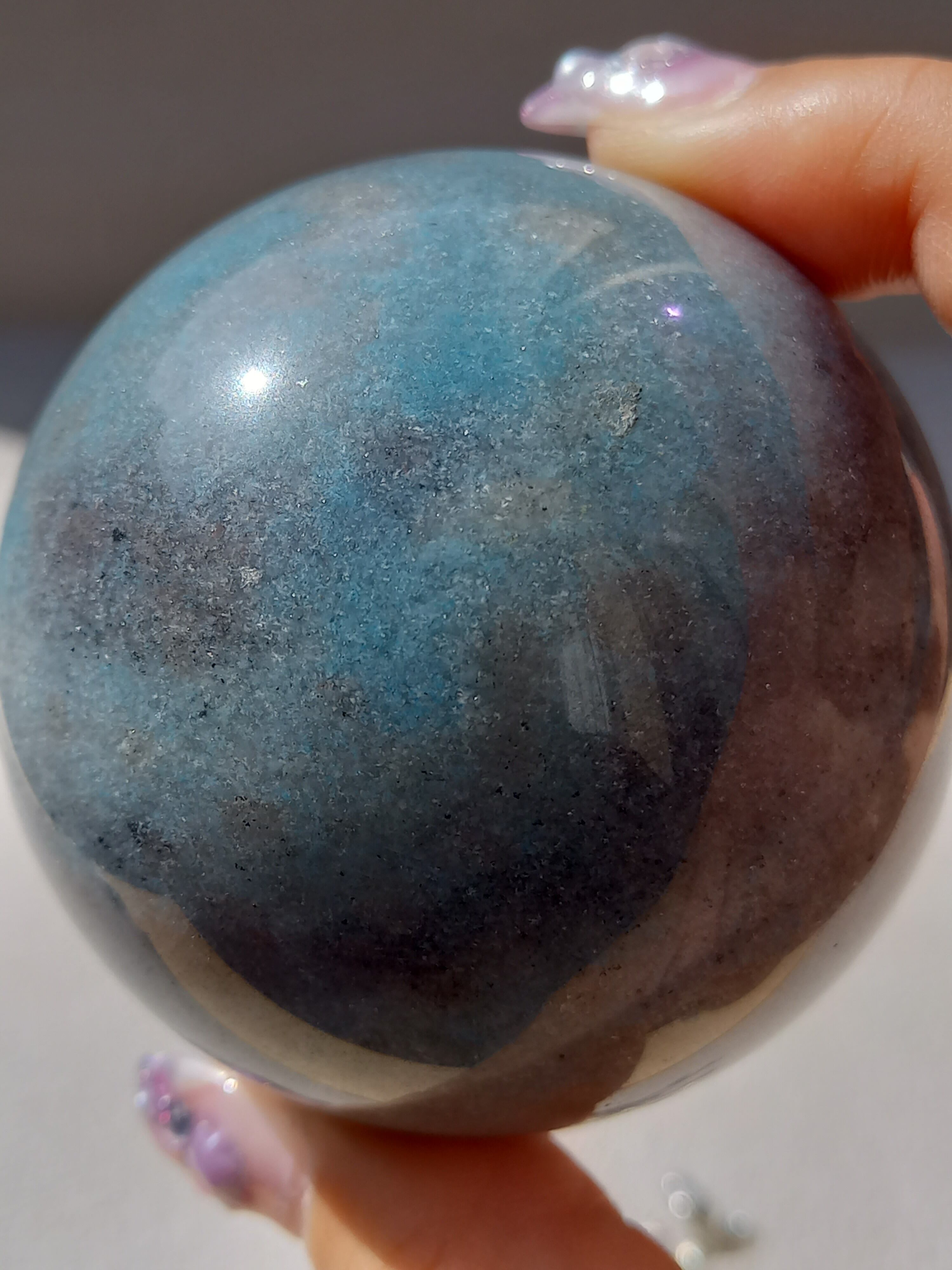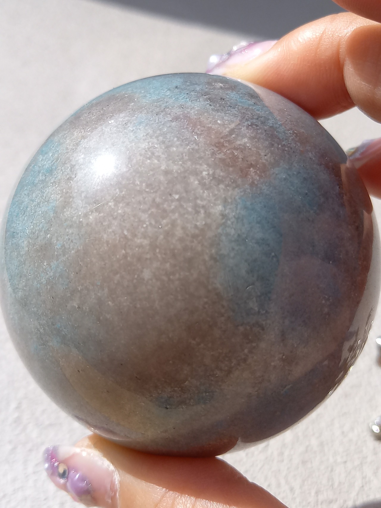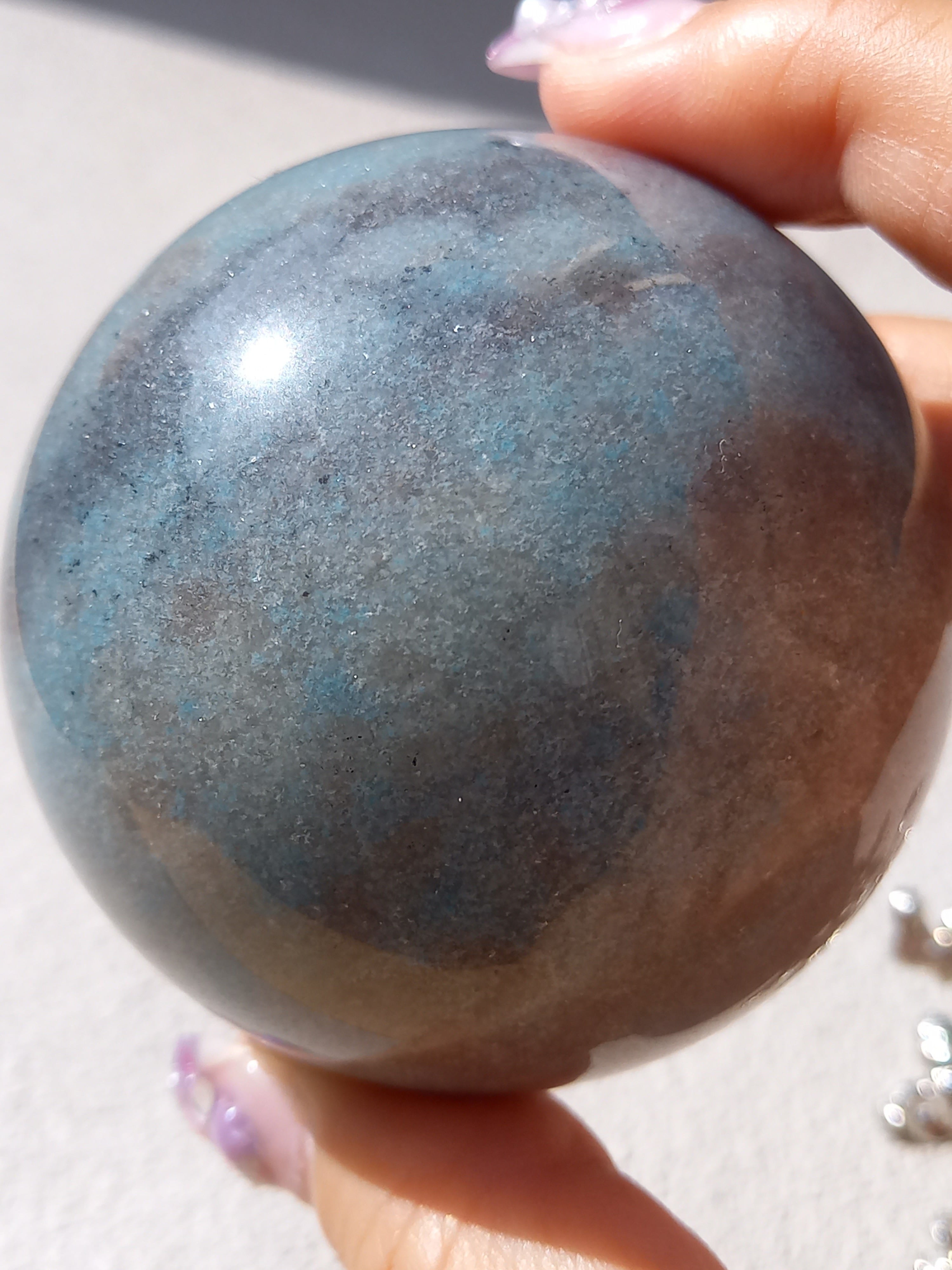 ラズライト(天藍石)とスコルザライト(鉄天藍石)、そしてクォーツァイト(珪岩)が共生している石。 色味が妖精のように優しい水色であることから、北欧で「妖精」を意味するトロールが語源となっています。持ち主の負の感情を浄化し幸福感や愛情、思いやりの精神を引き出すことで心を活性化させるとされています。