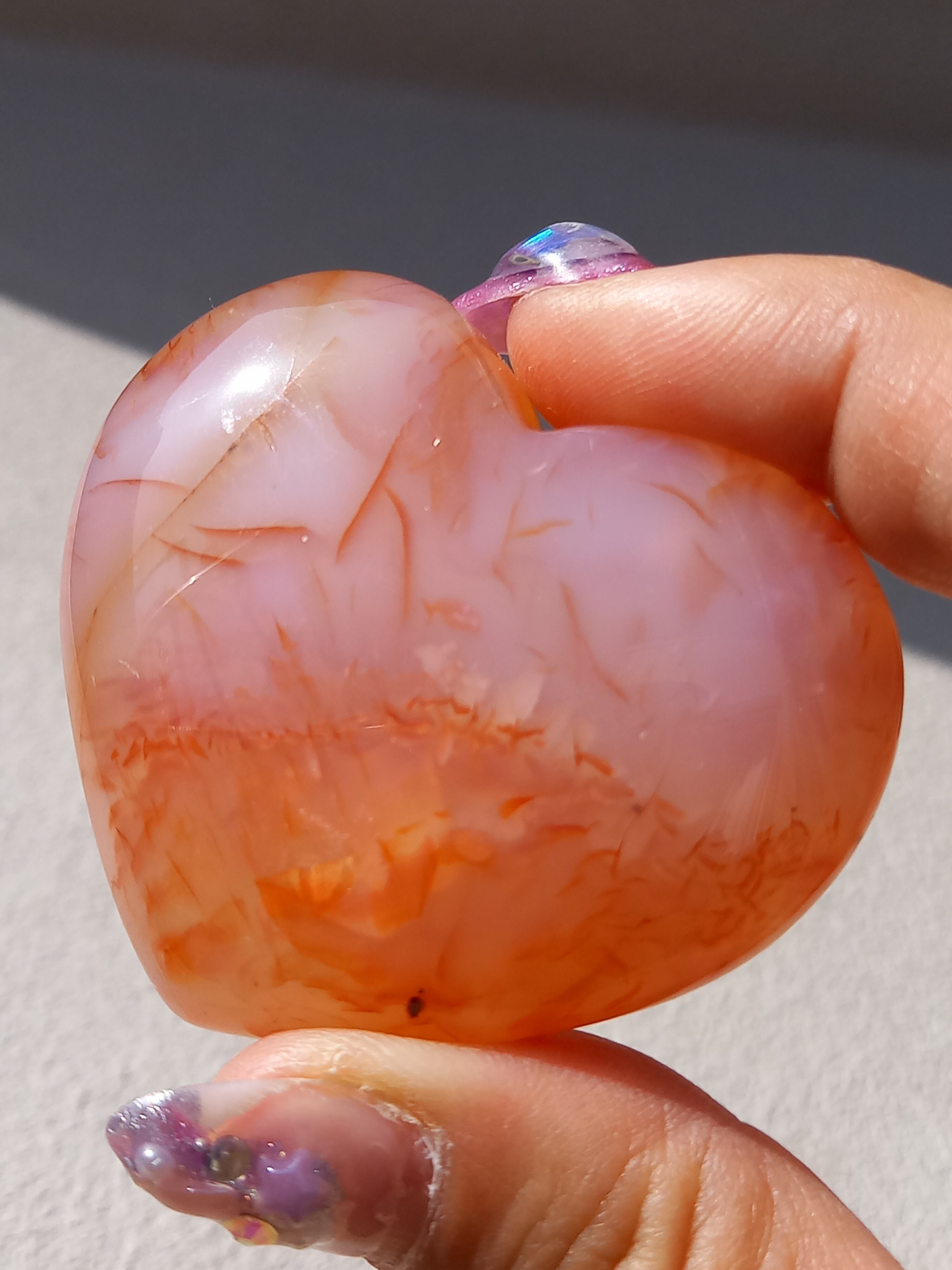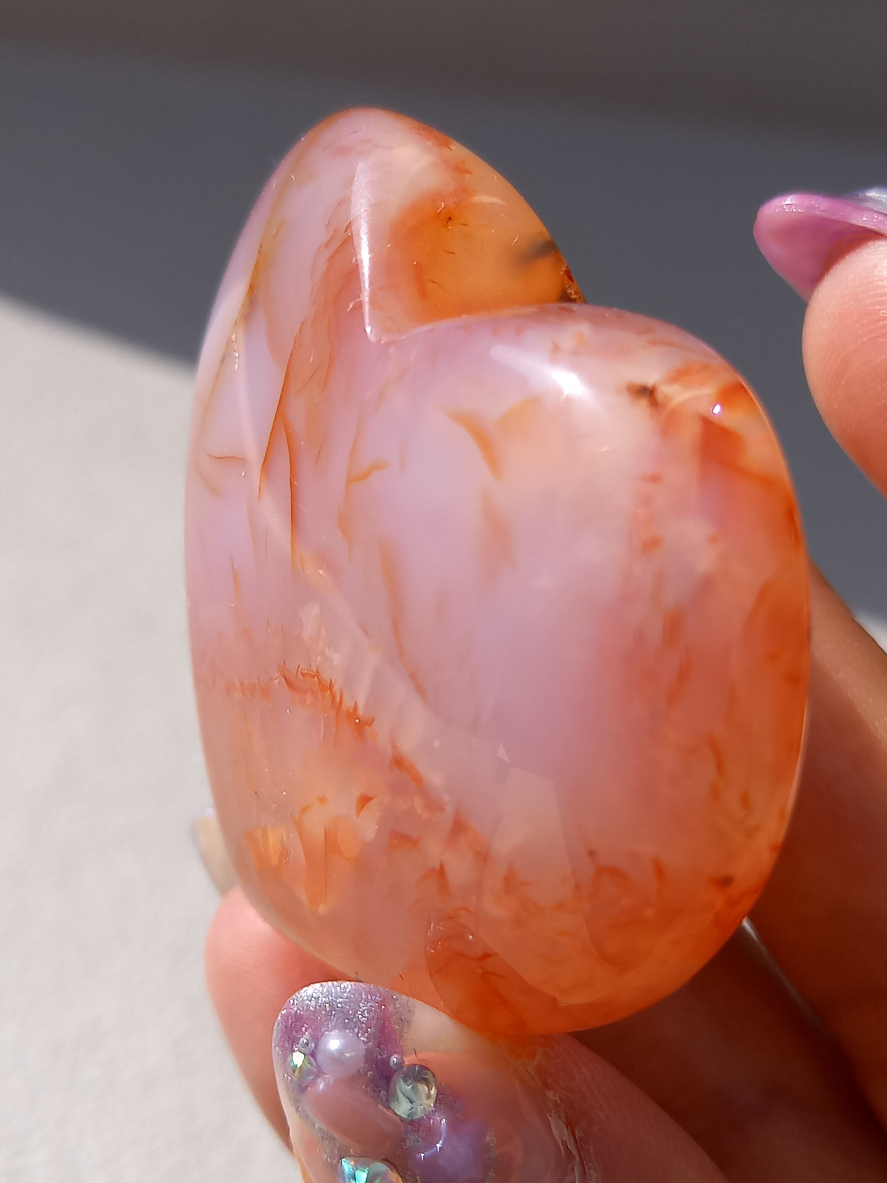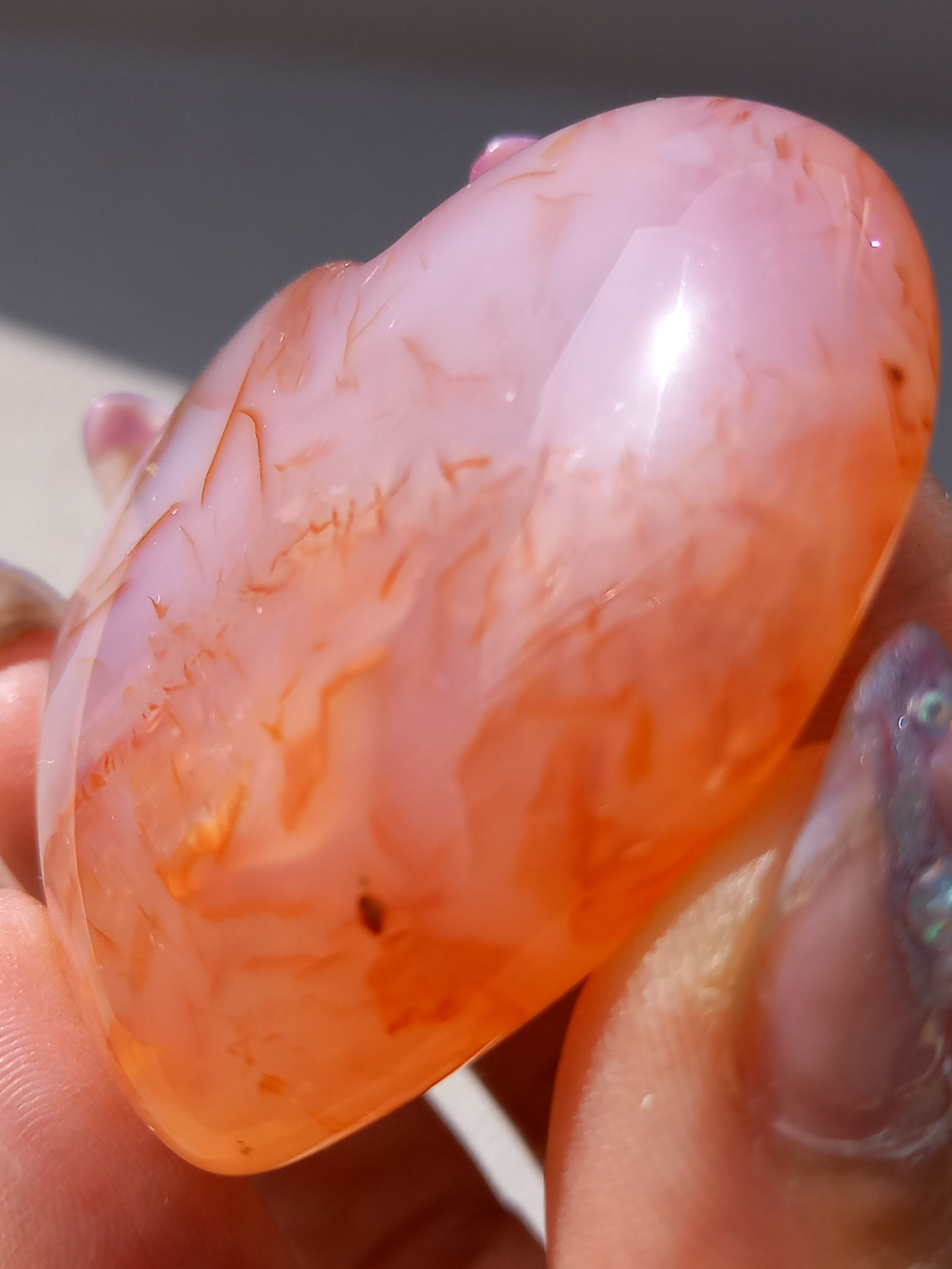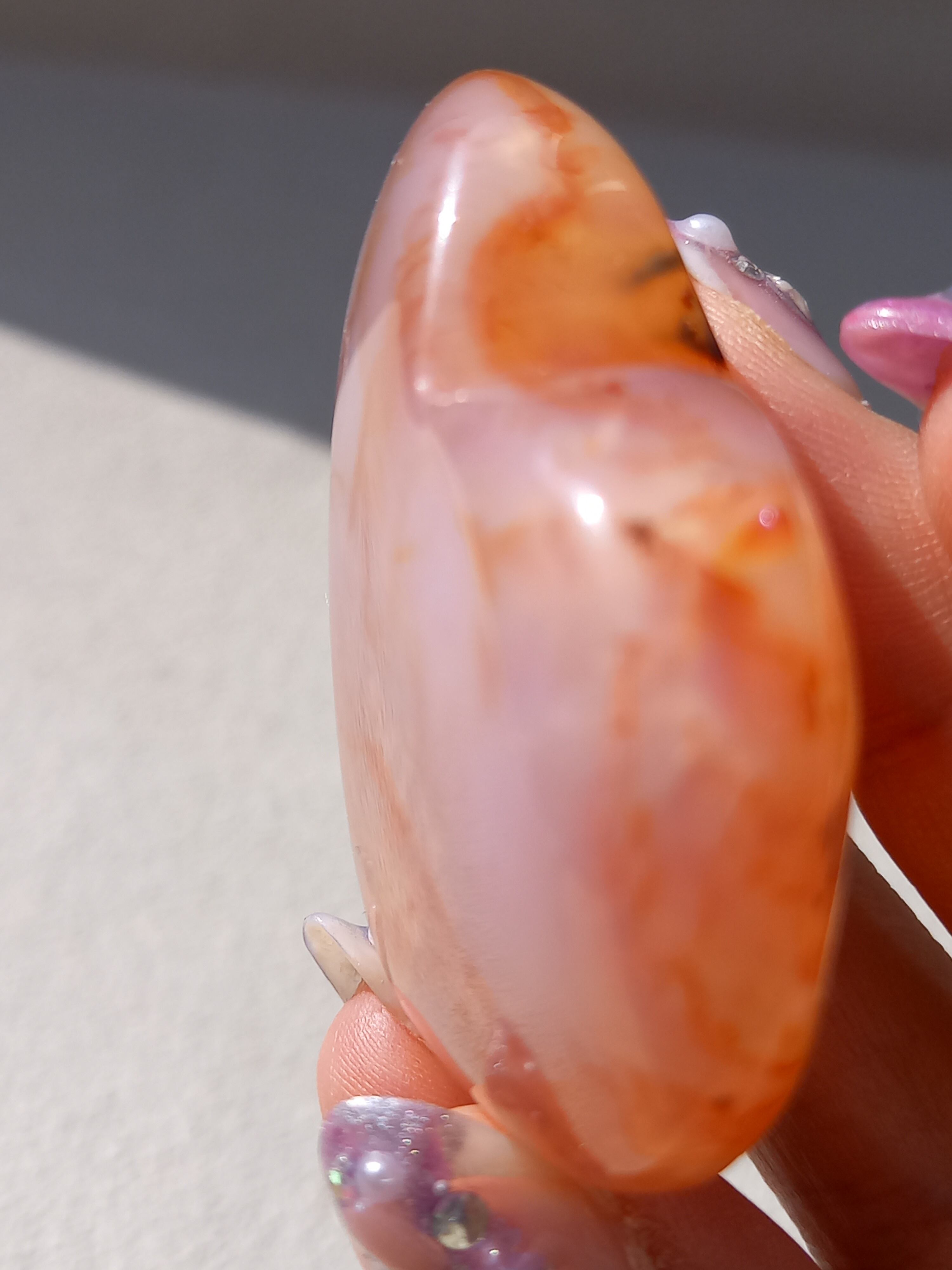 カーネリアンの鮮やかなオレンジカラーと、パープルピンクカラーが混ざりあったキュートな雰囲気の子です。