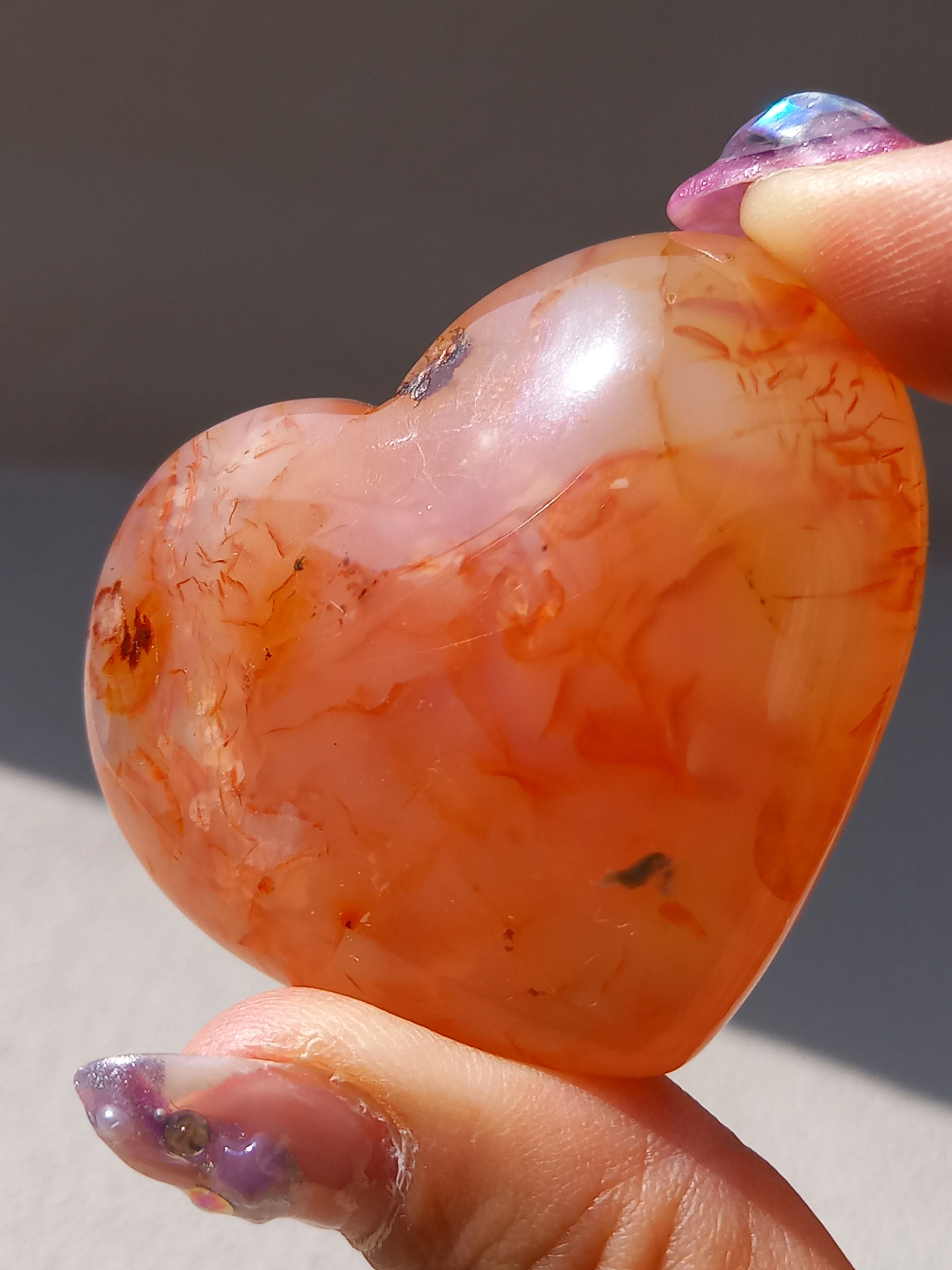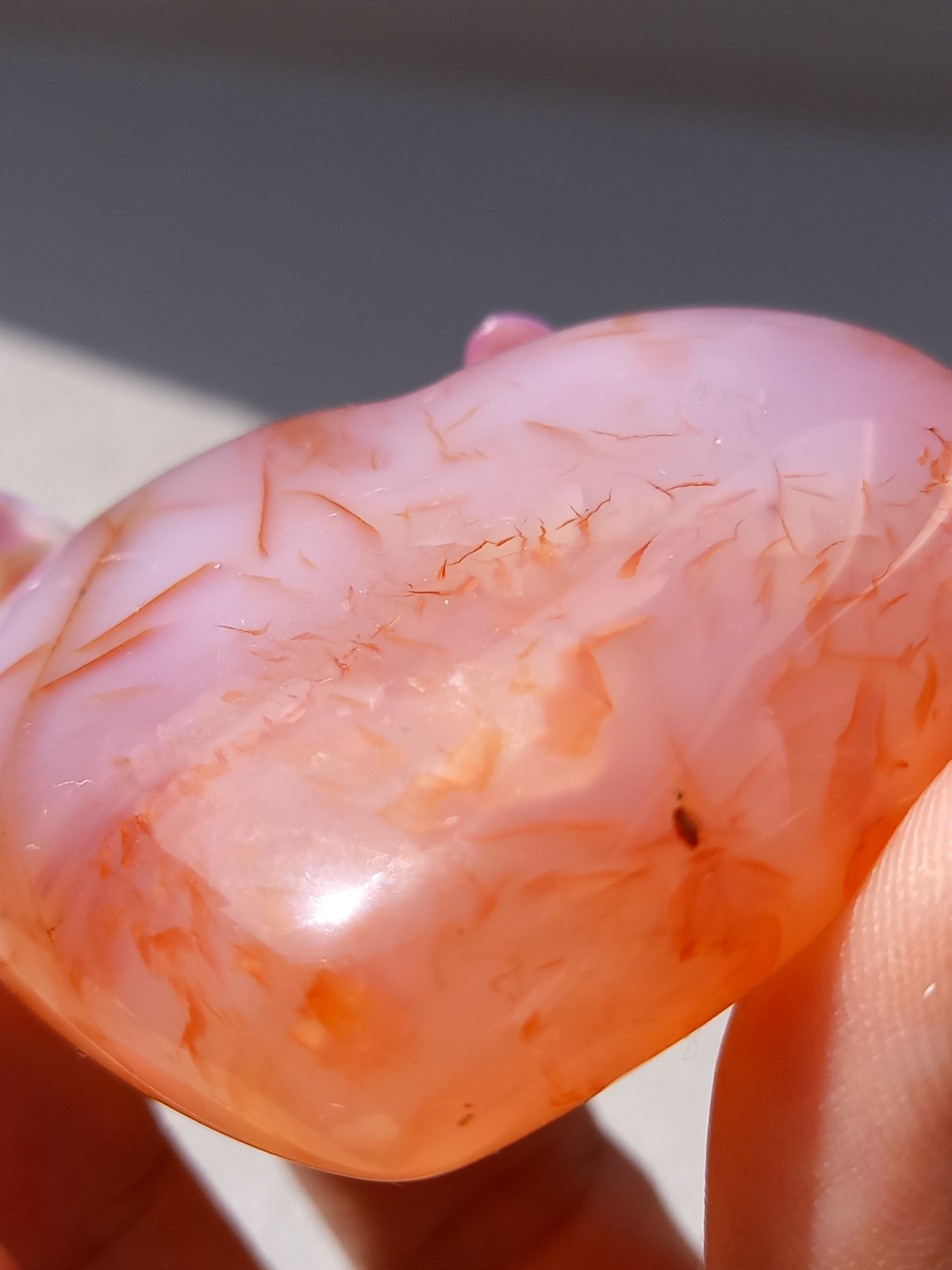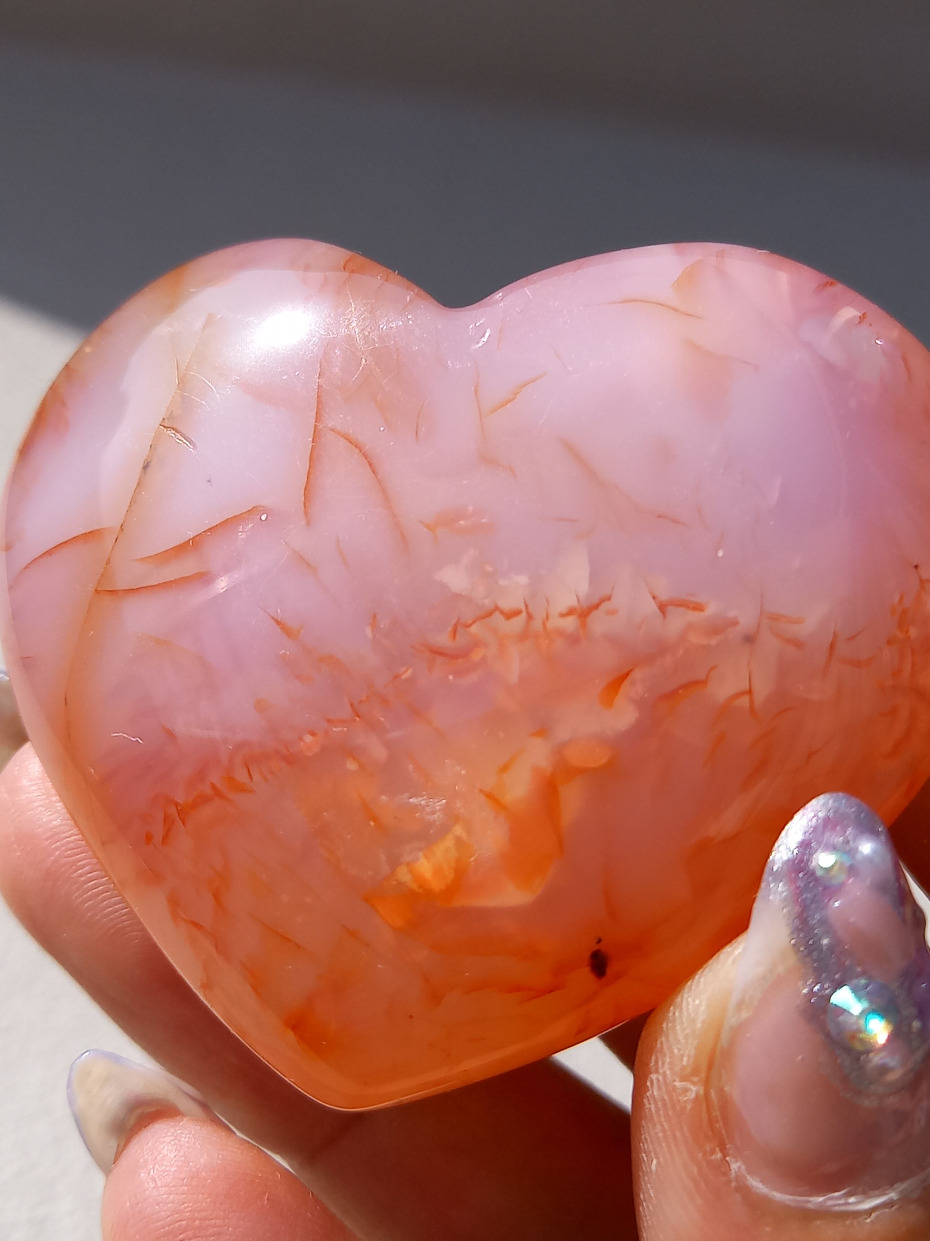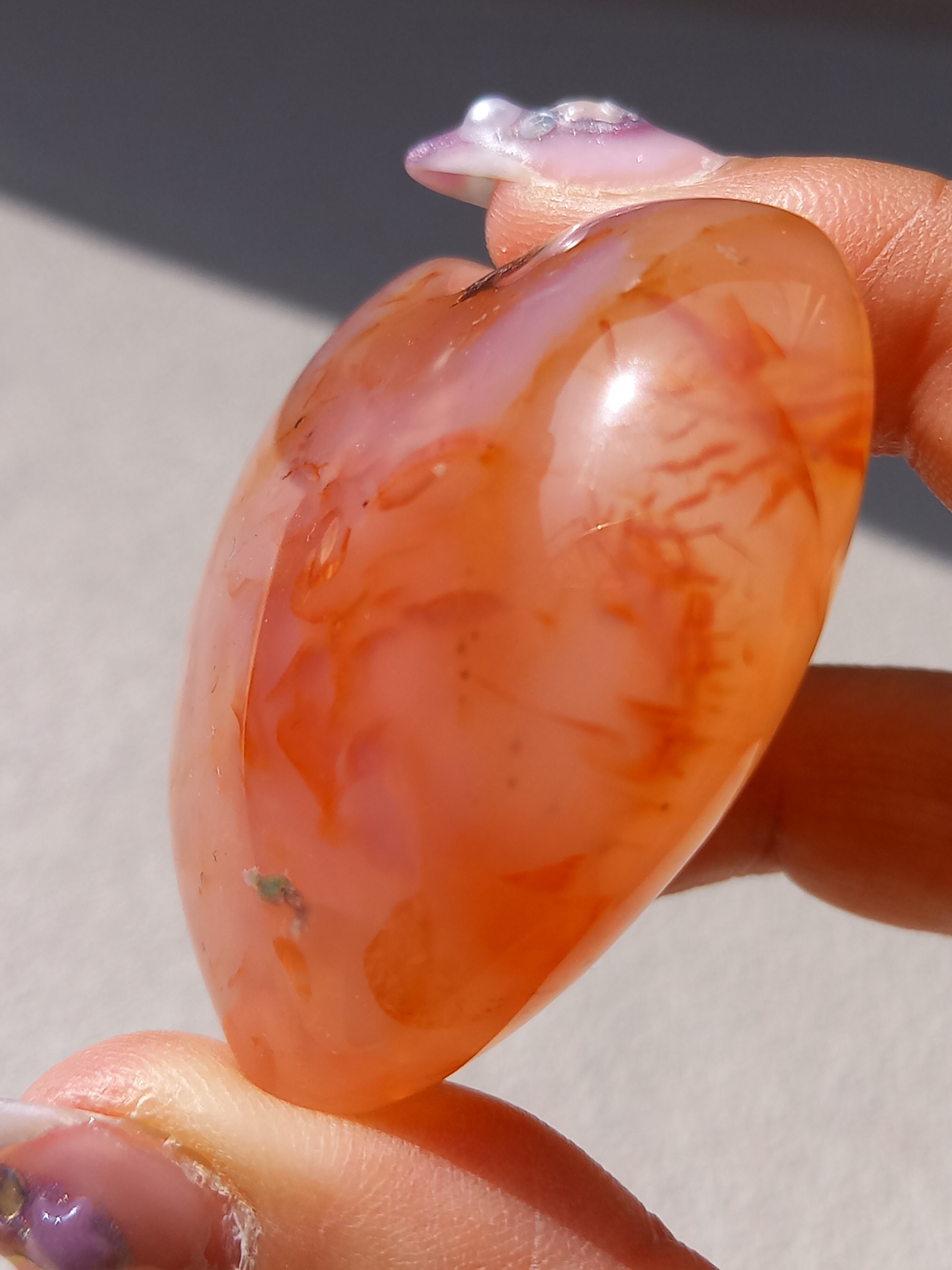 カーネリアンの鮮やかなオレンジカラーと、パープルピンクカラーが混ざりあったキュートな雰囲気の子です。