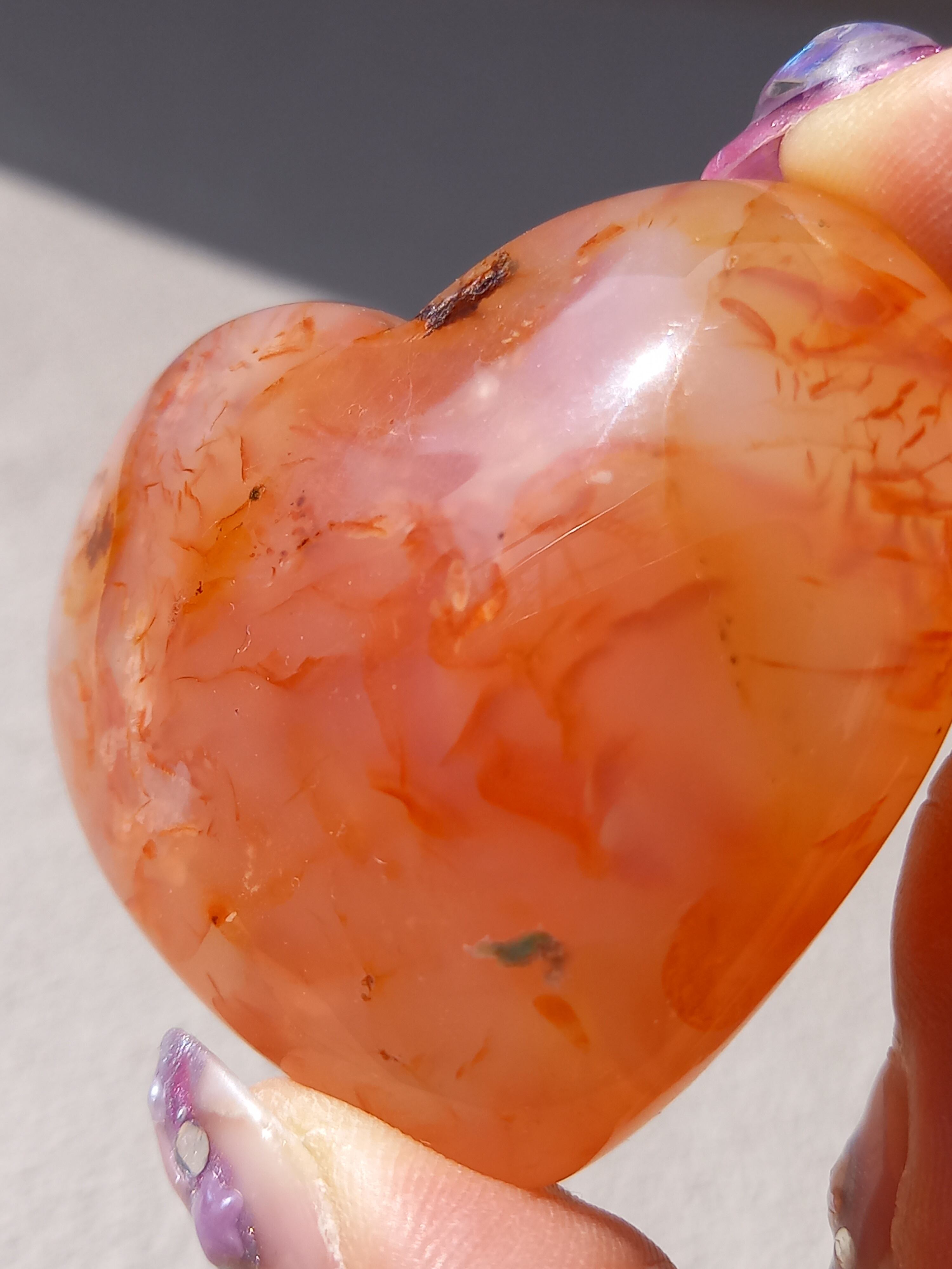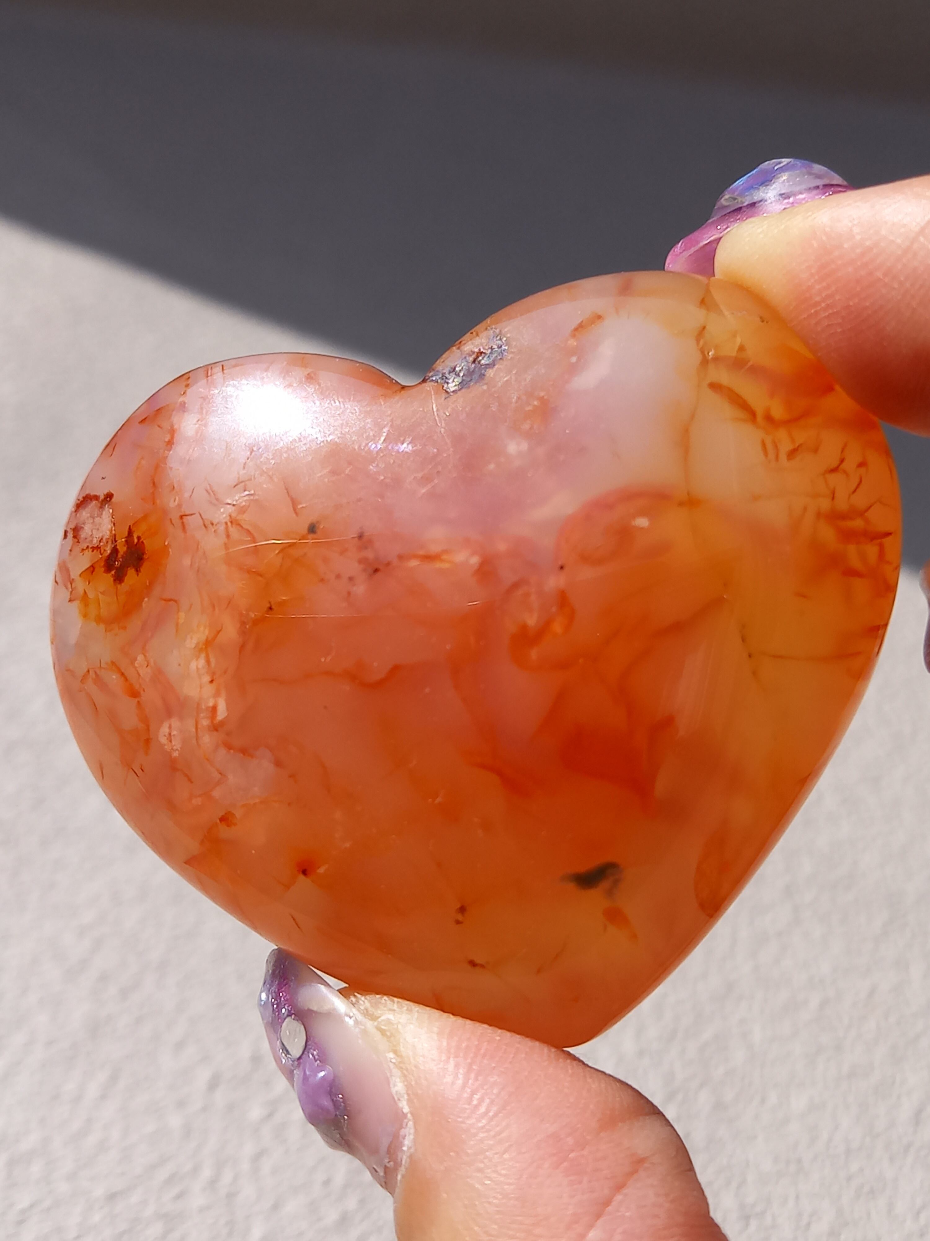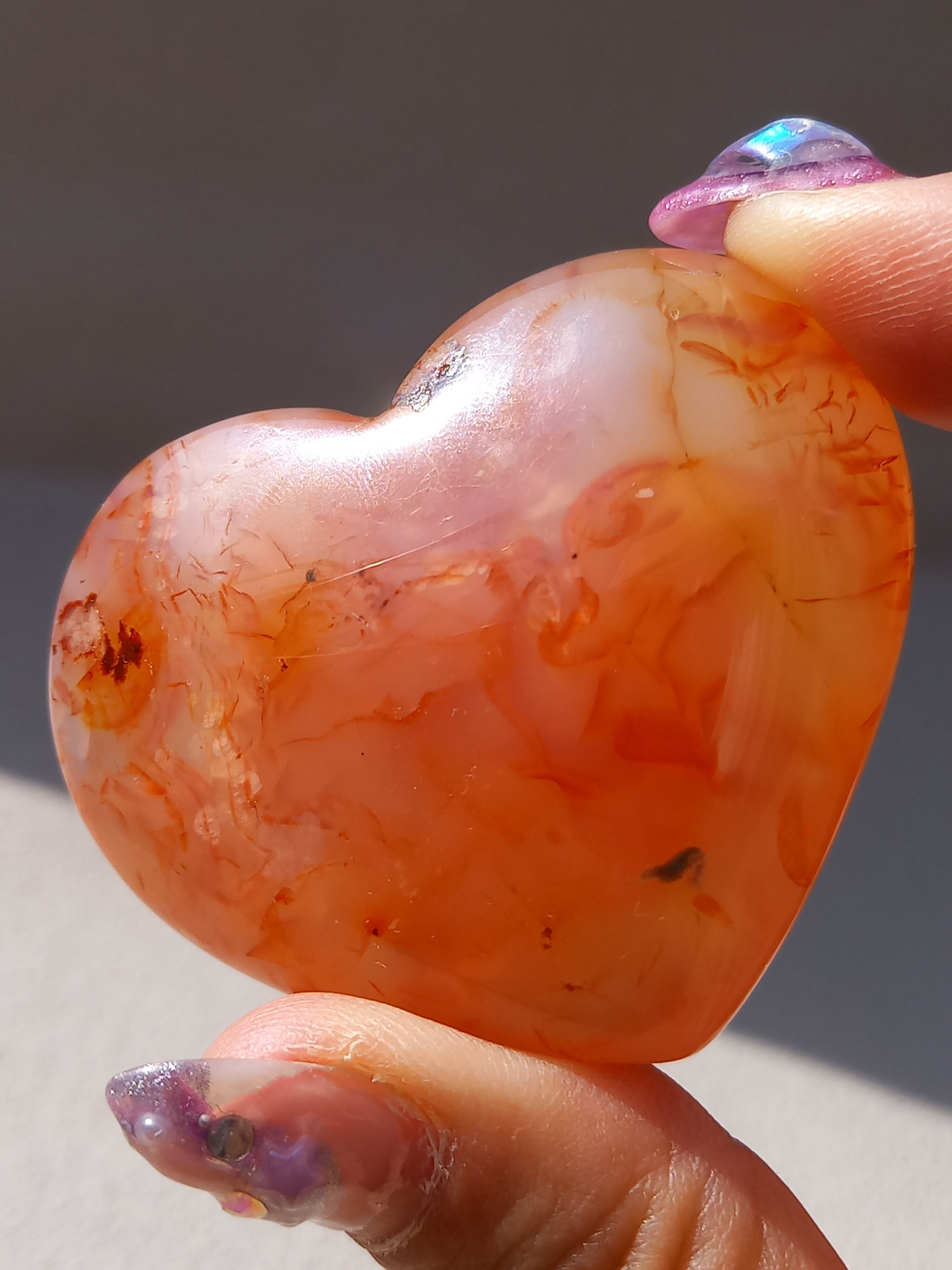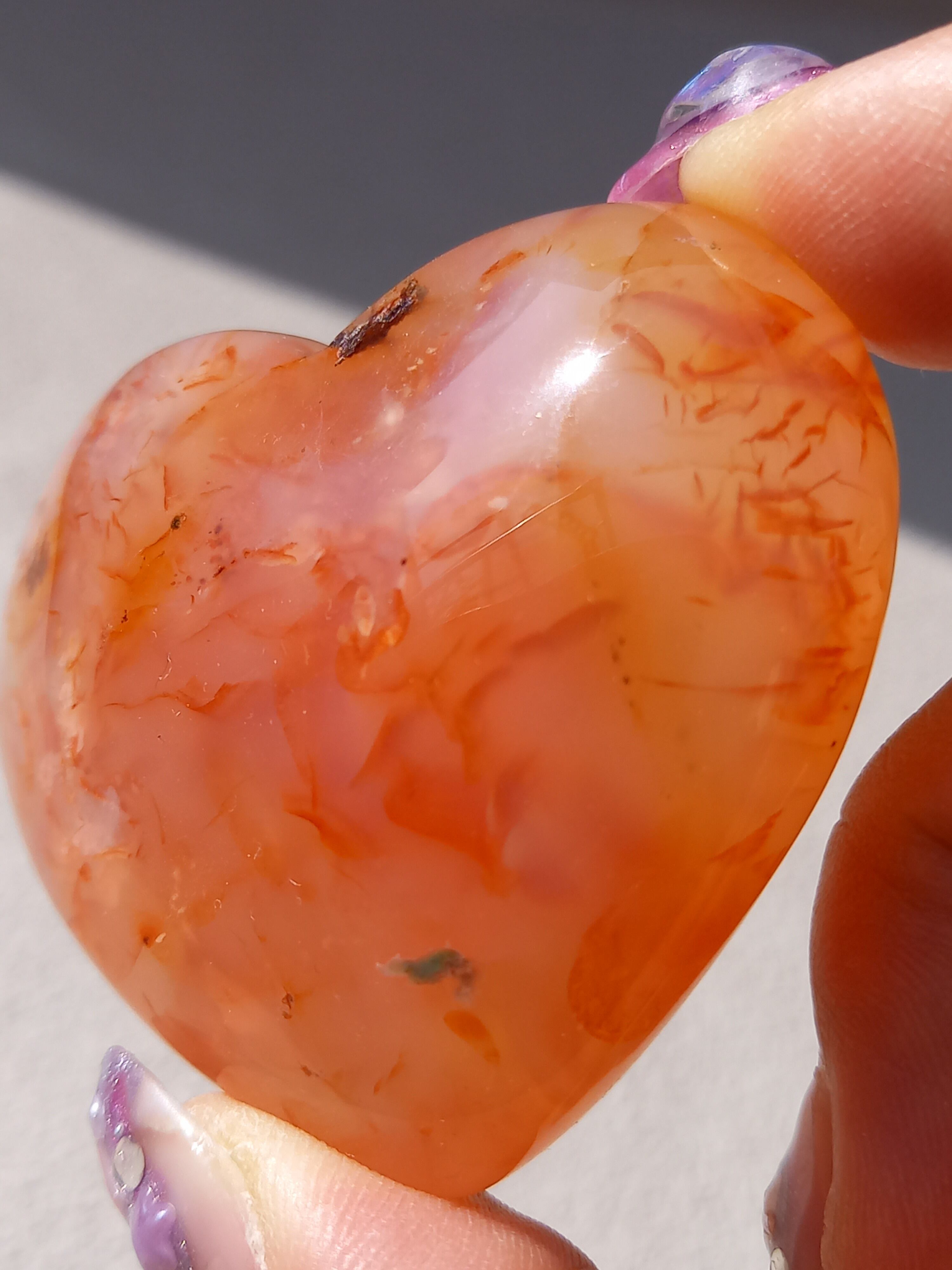 カーネリアンの鮮やかなオレンジカラーと、パープルピンクカラーが混ざりあったキュートな雰囲気の子です。